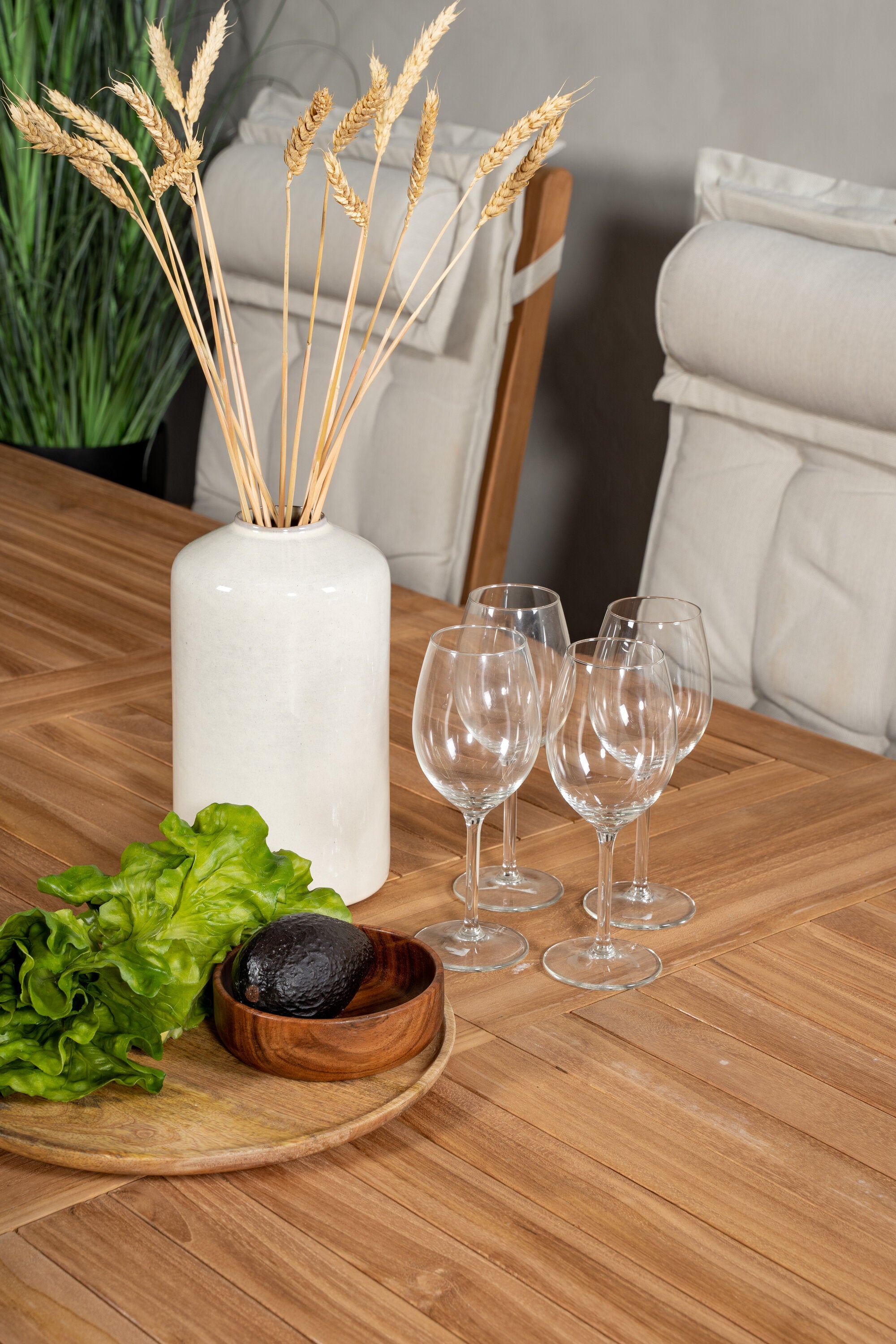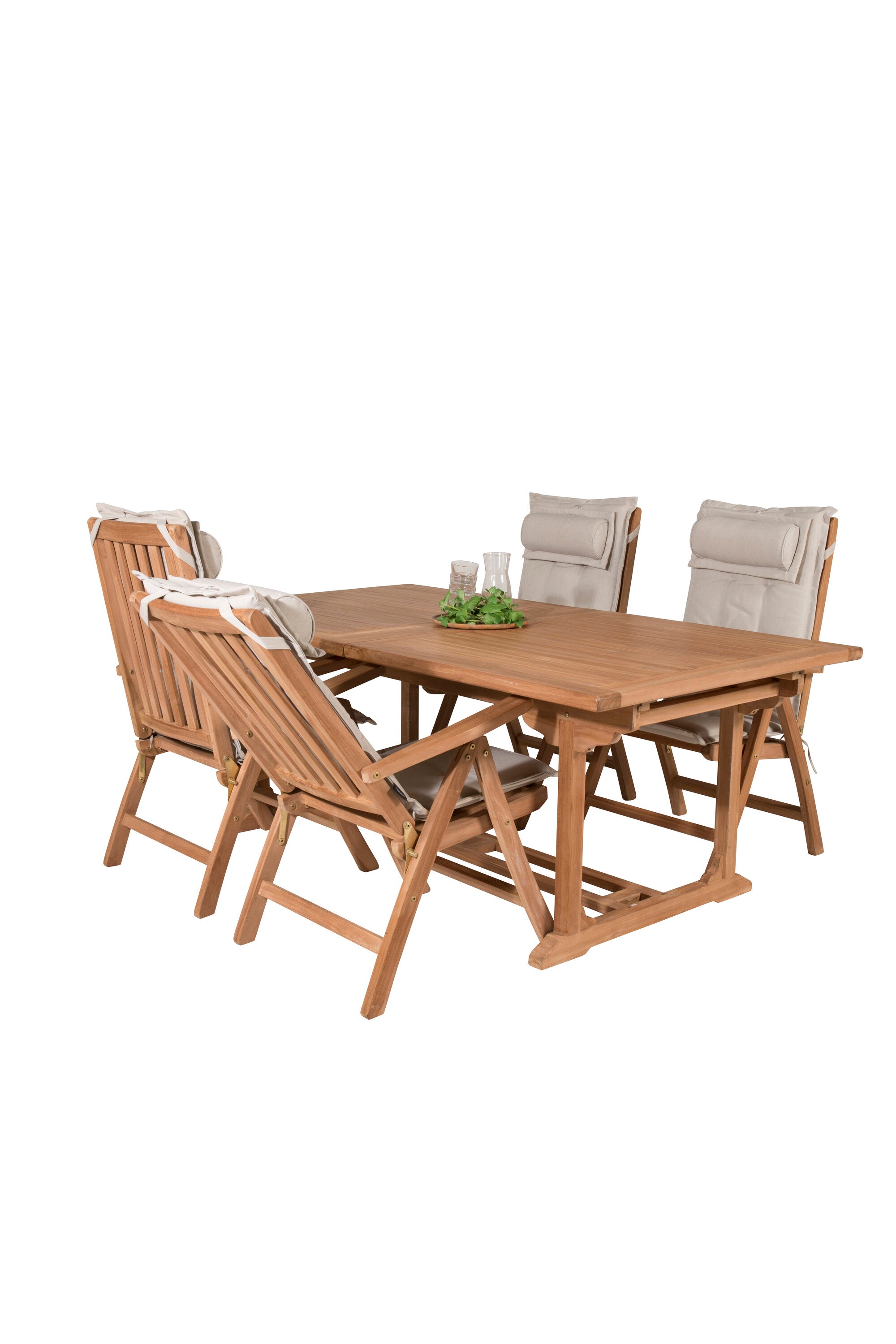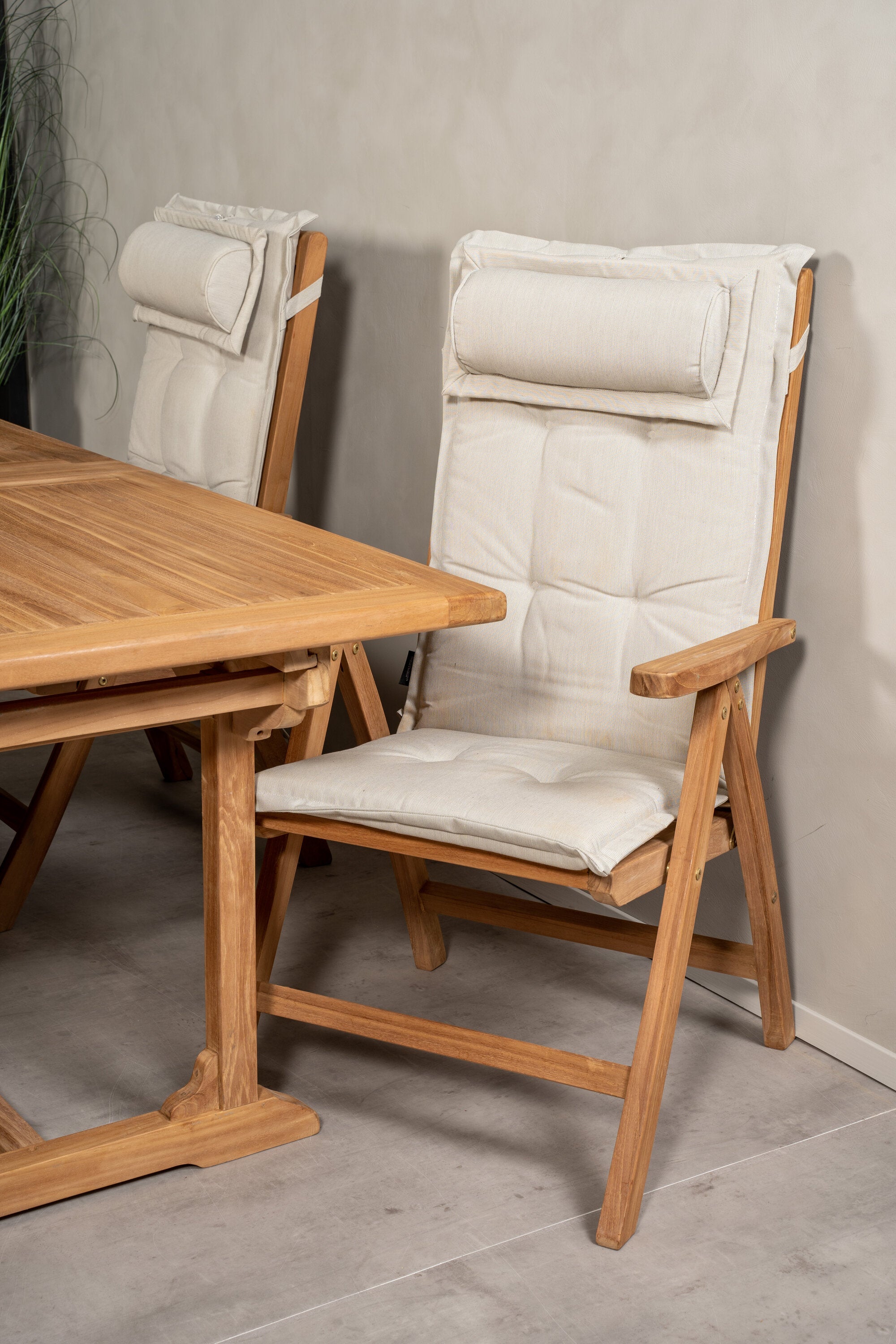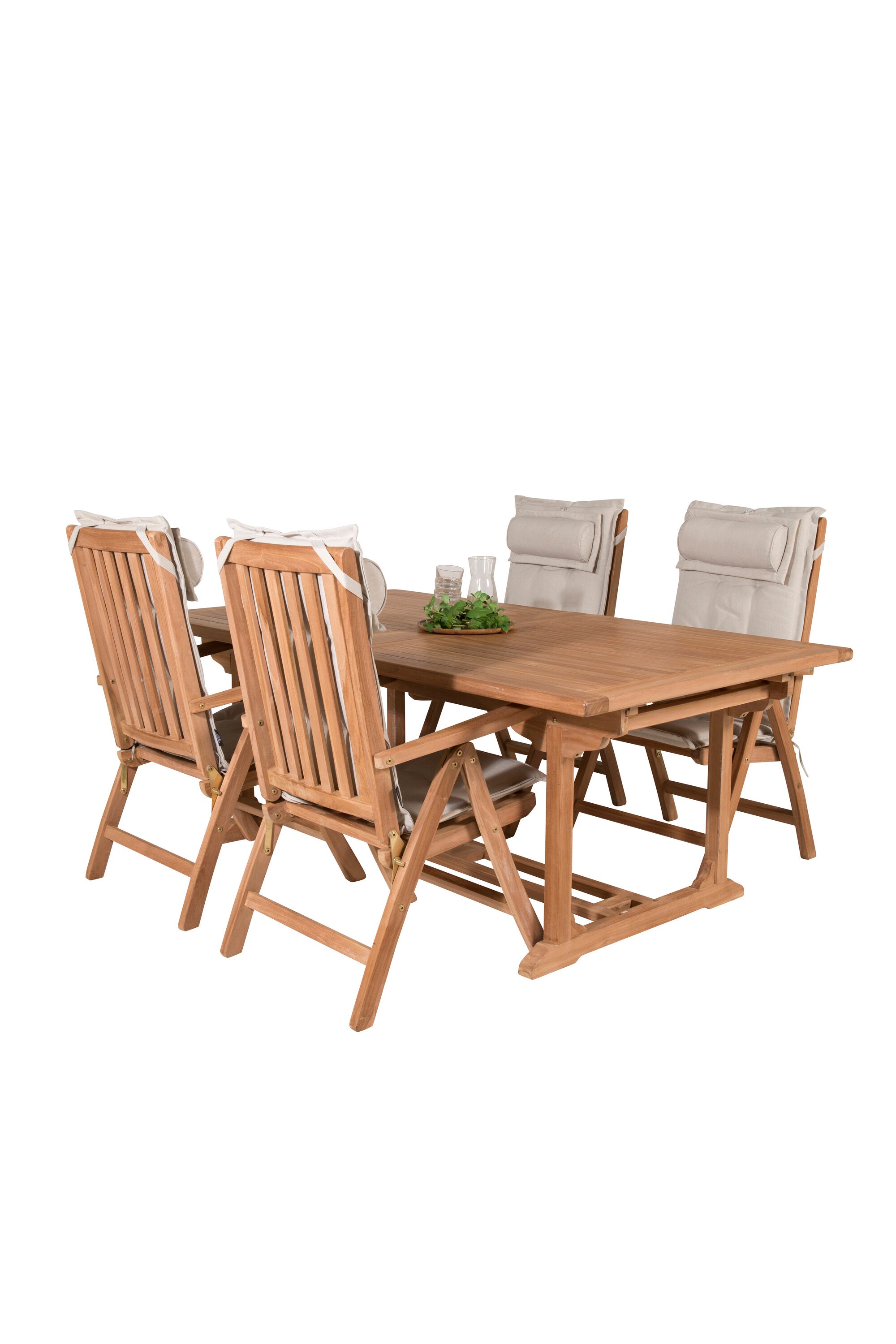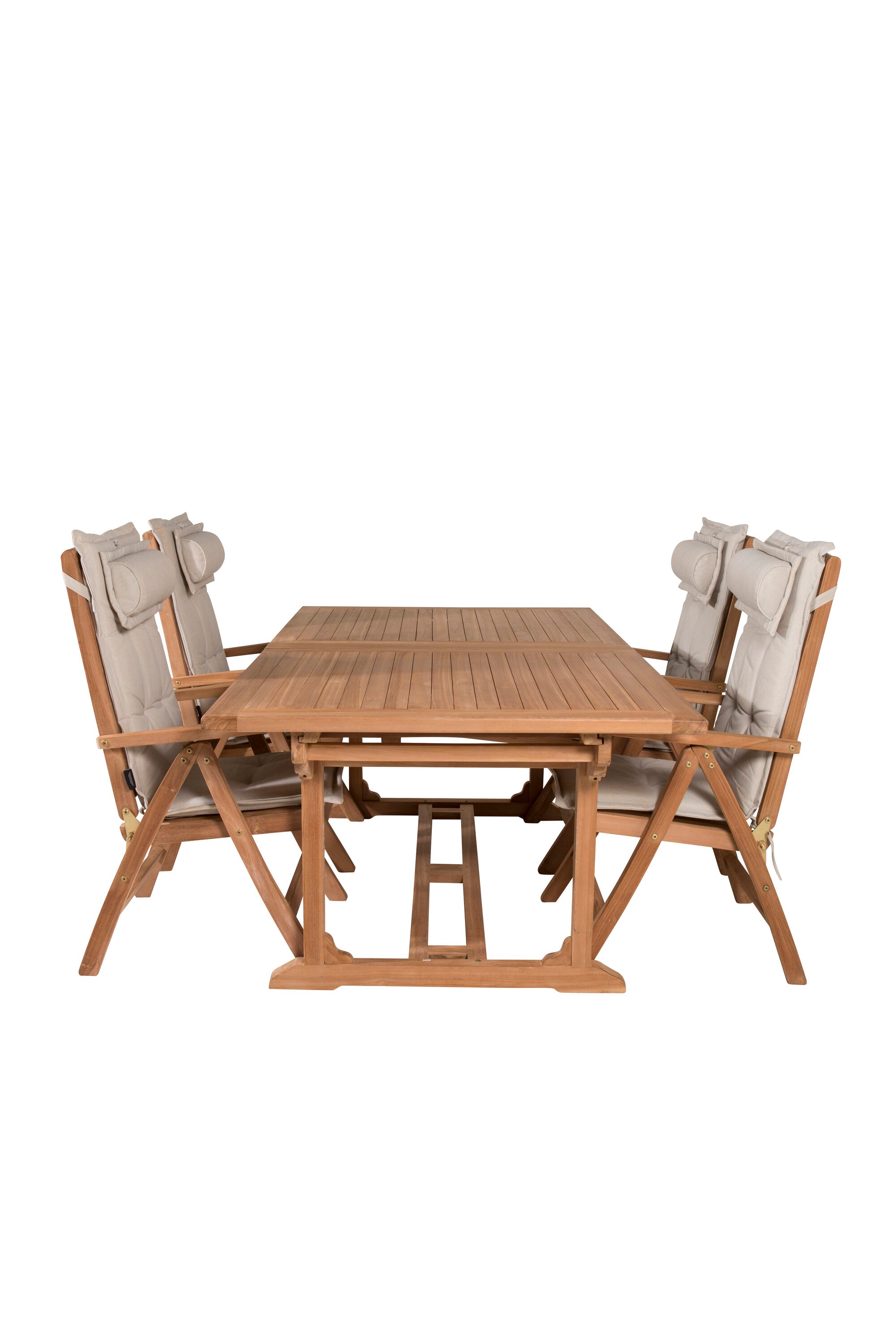 Jídelní stůl Kenya 195/295*110*H75 - Teak+Keňa 5-polohová skládací židle - Teak_