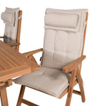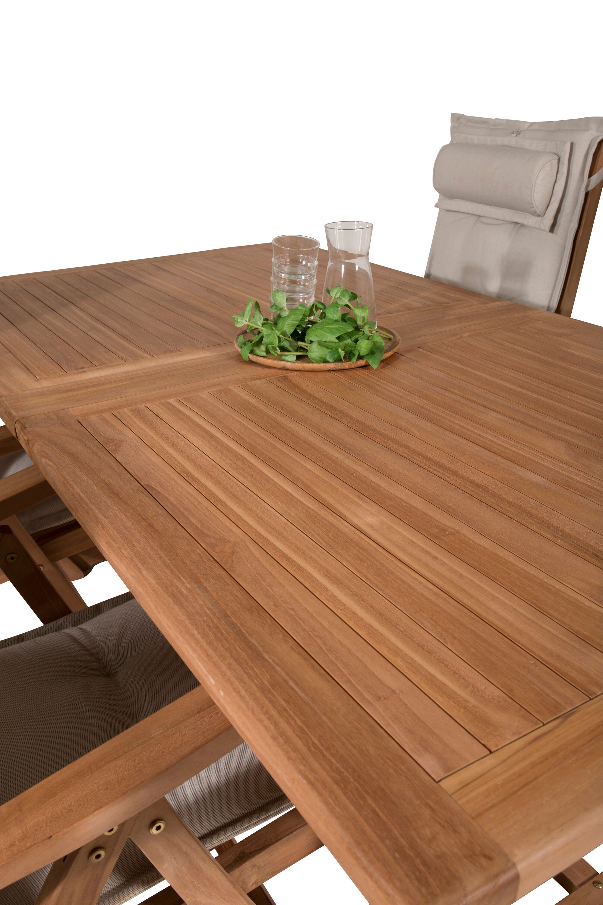 Klasické a elegantní! Naše potravinová skupina se skládacími židlemi Kenya spolu s rozkládacím jídelním stolem ze stejné série vytváří díky svému souvislému dřevěnému vzhledu hřejivý a útulný pocit na každé terase!