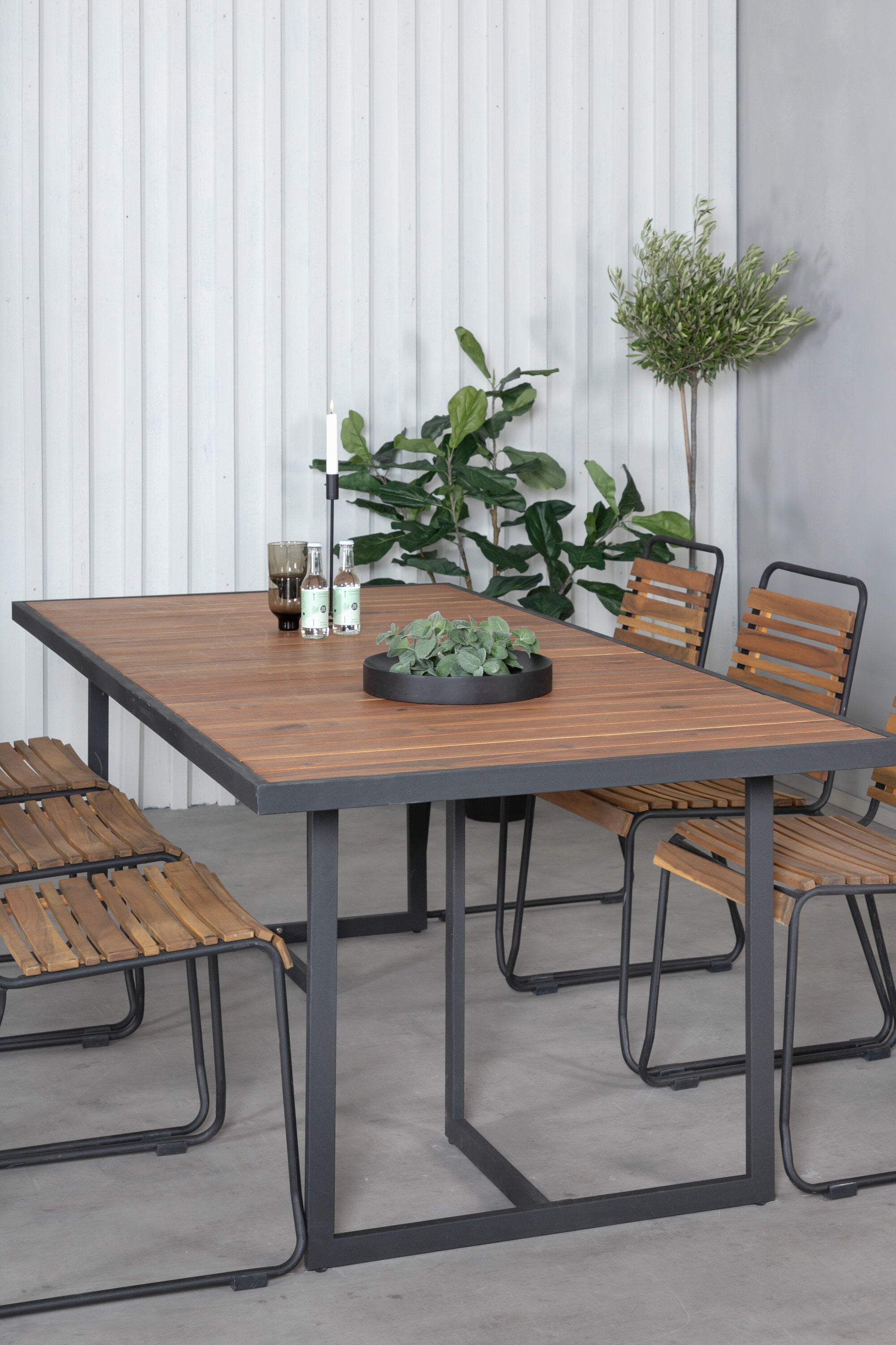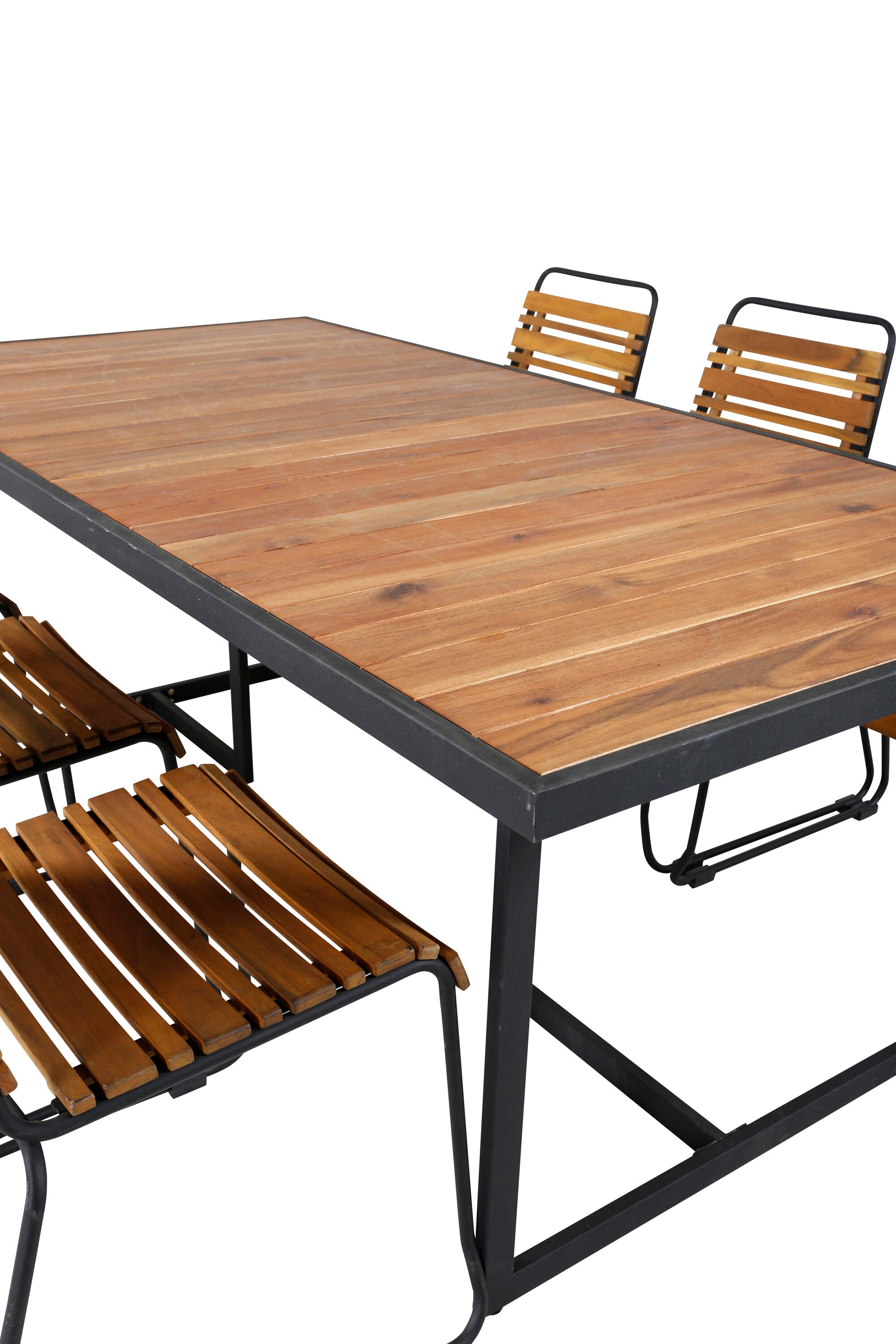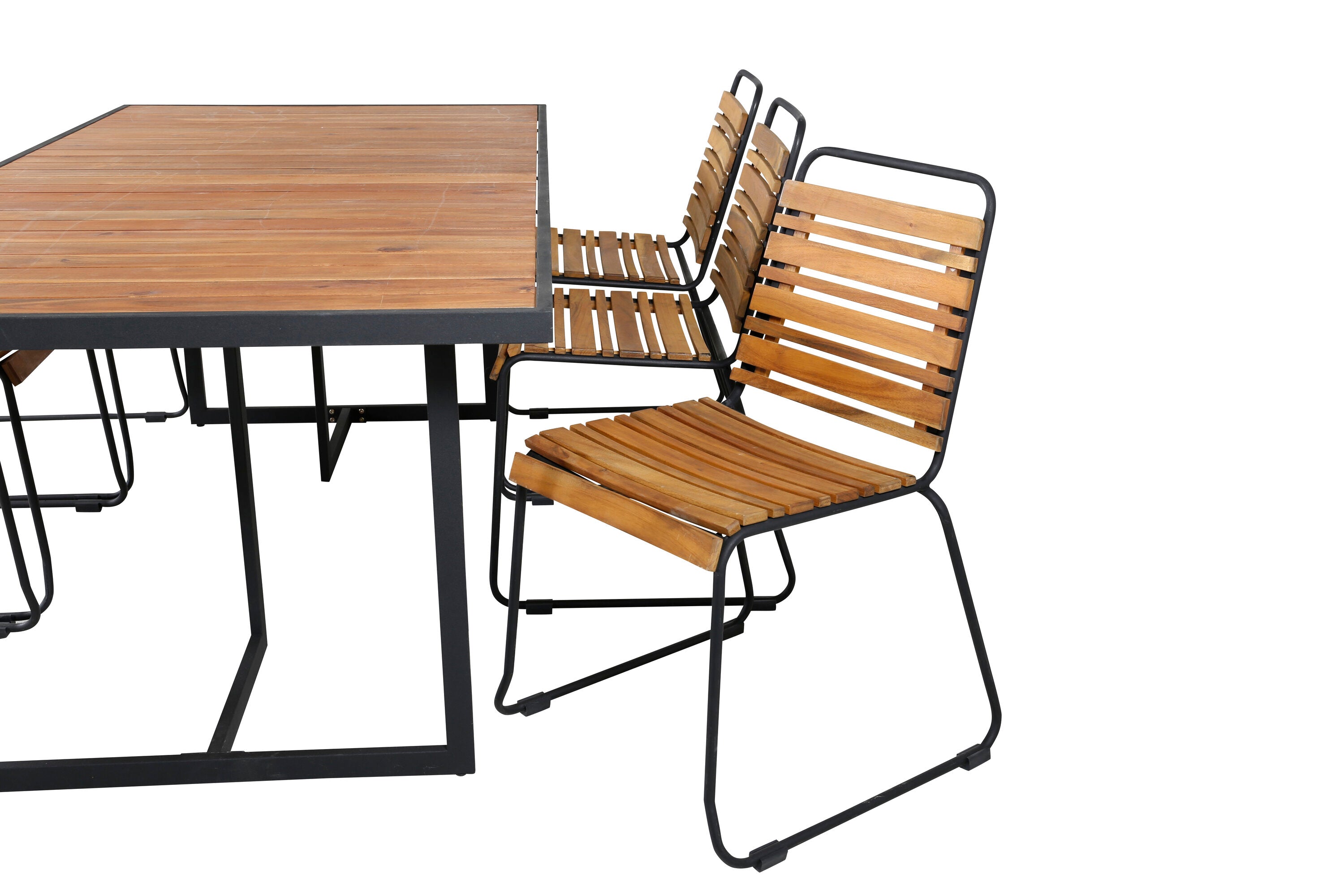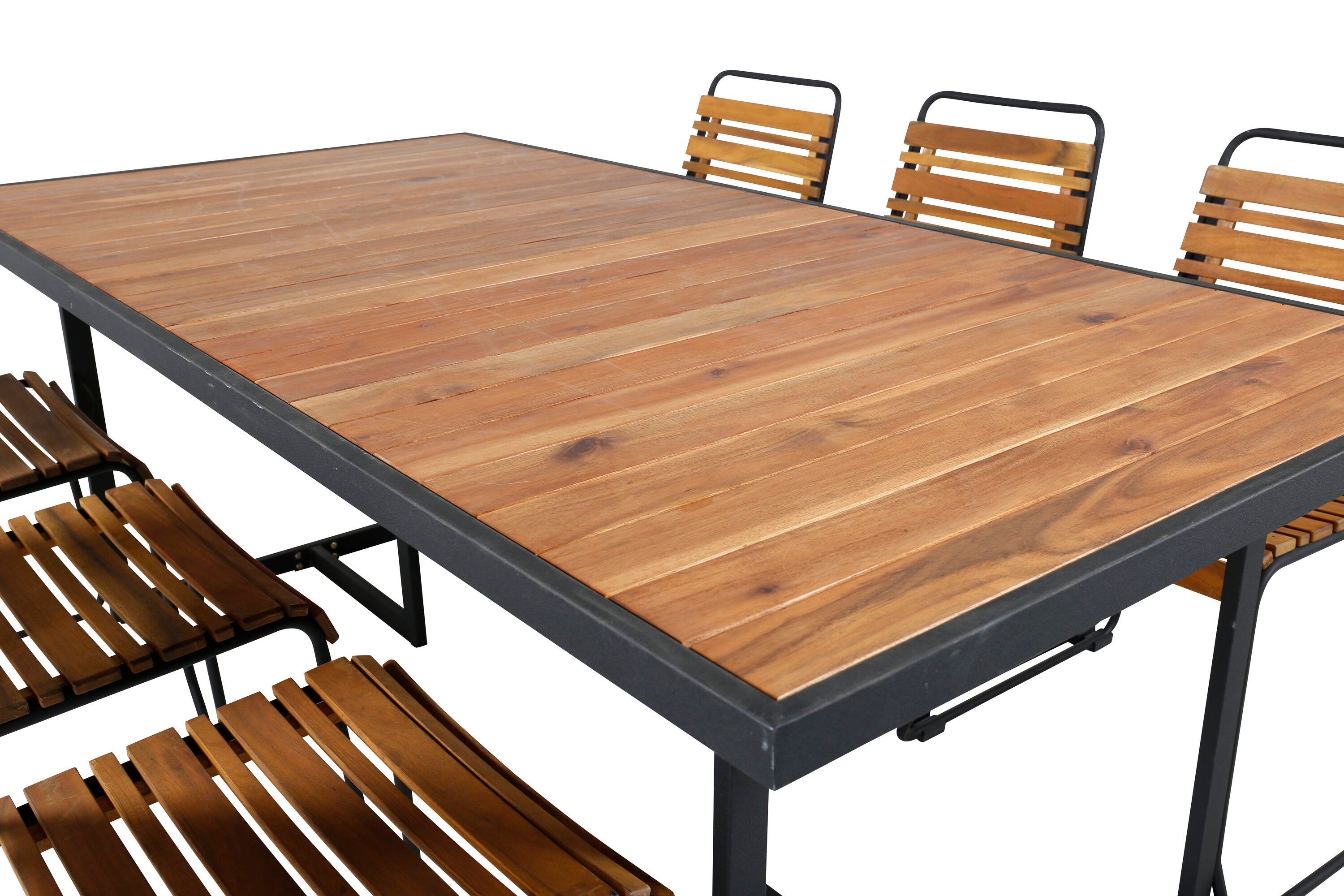 Jídelní stůl Khung - černá ocel / akácie (teklook) - 200*100 cm + jídelní židle Bois - černá Alu / akácie_6