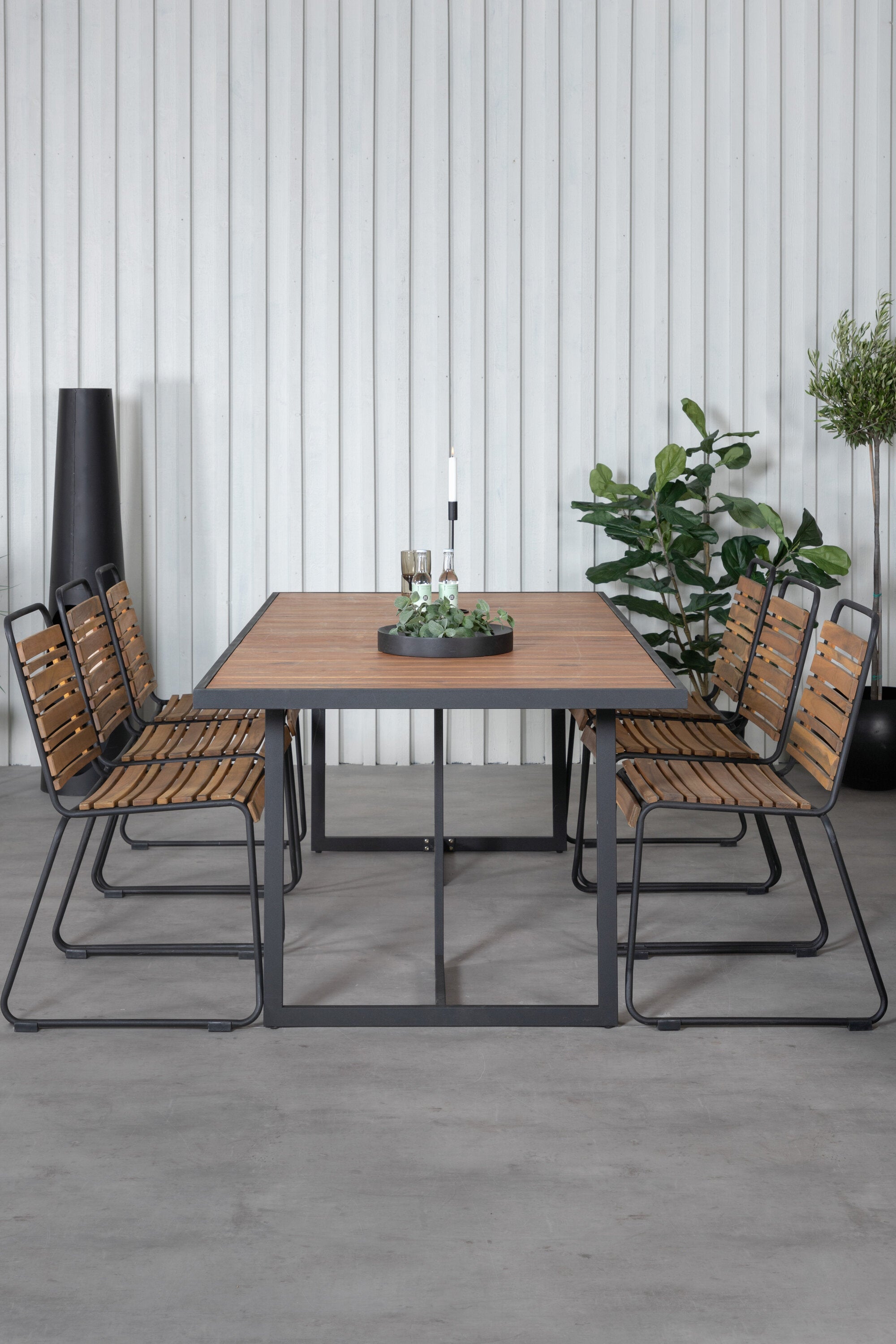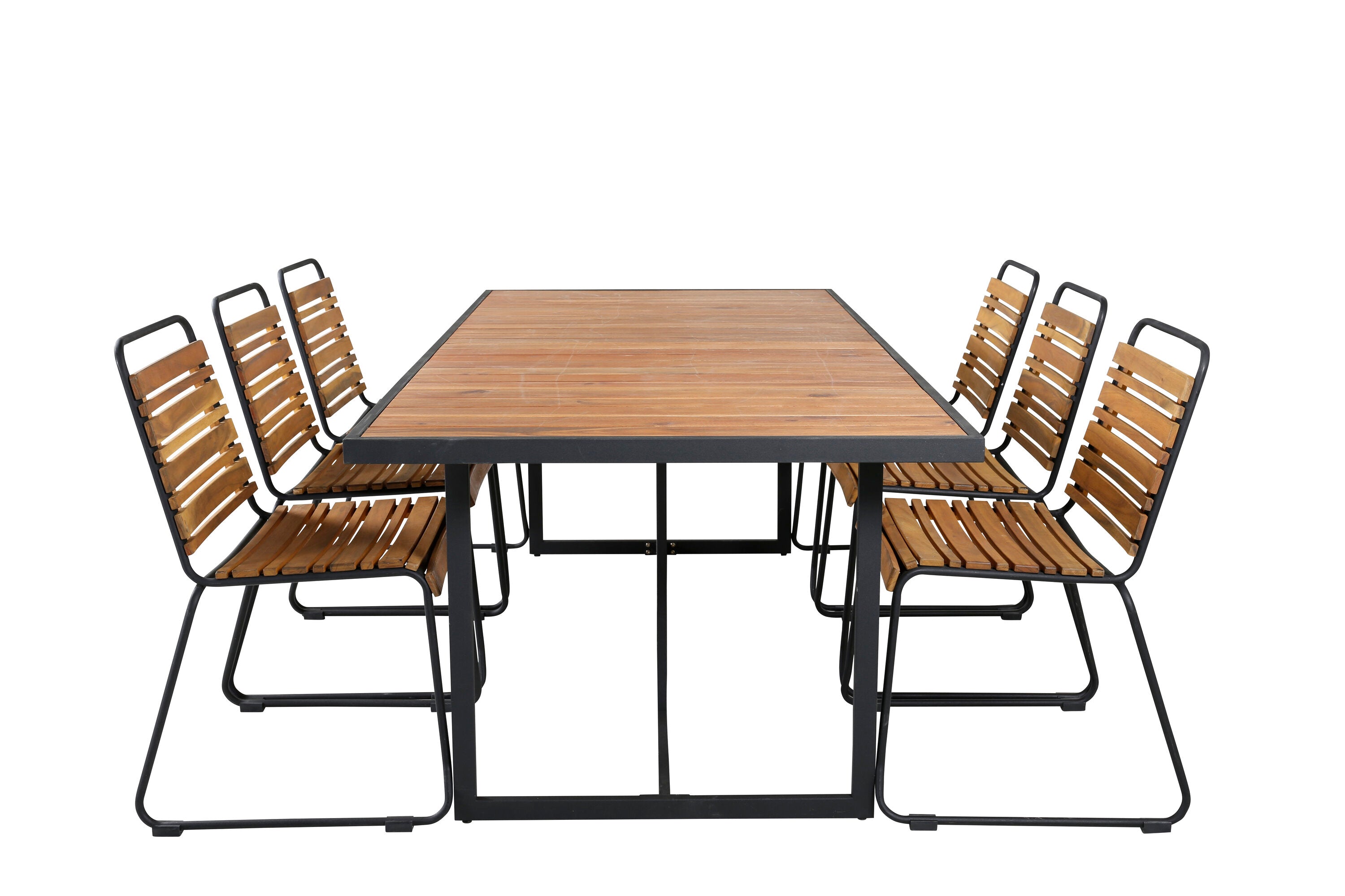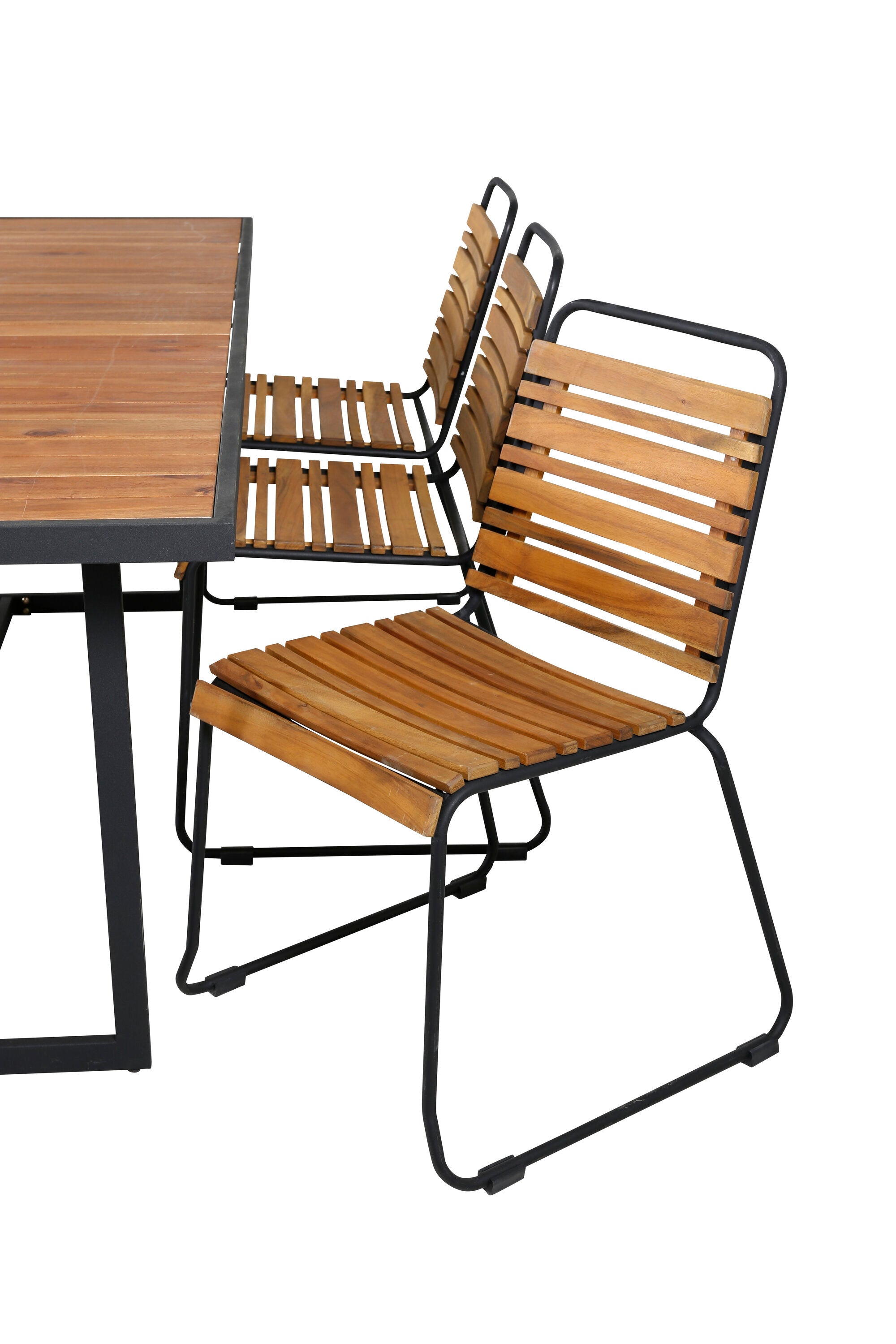 Jídelní stůl Khung - černá ocel / akácie (teklook) - 200*100 cm + jídelní židle Bois - černá Alu / akácie_6