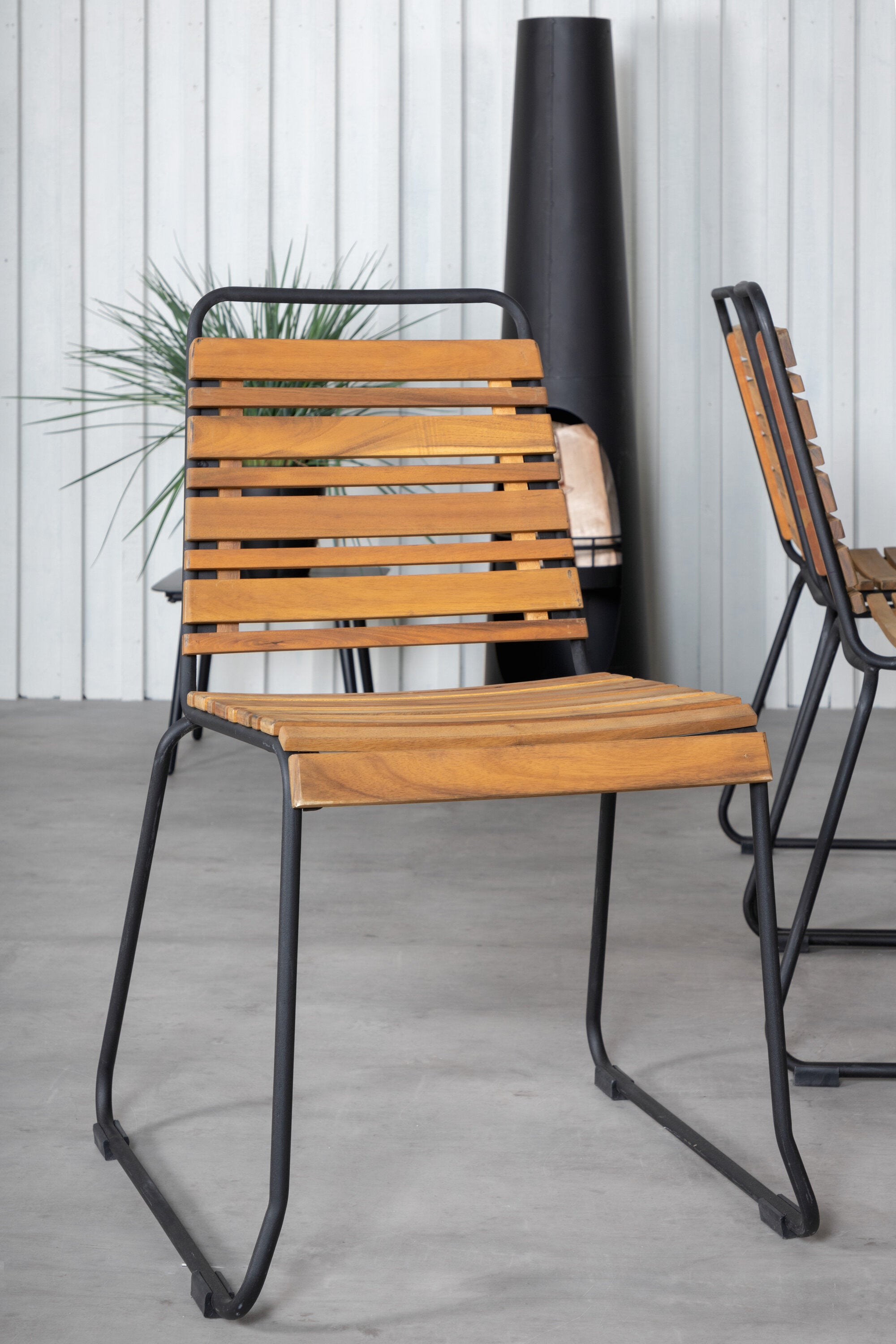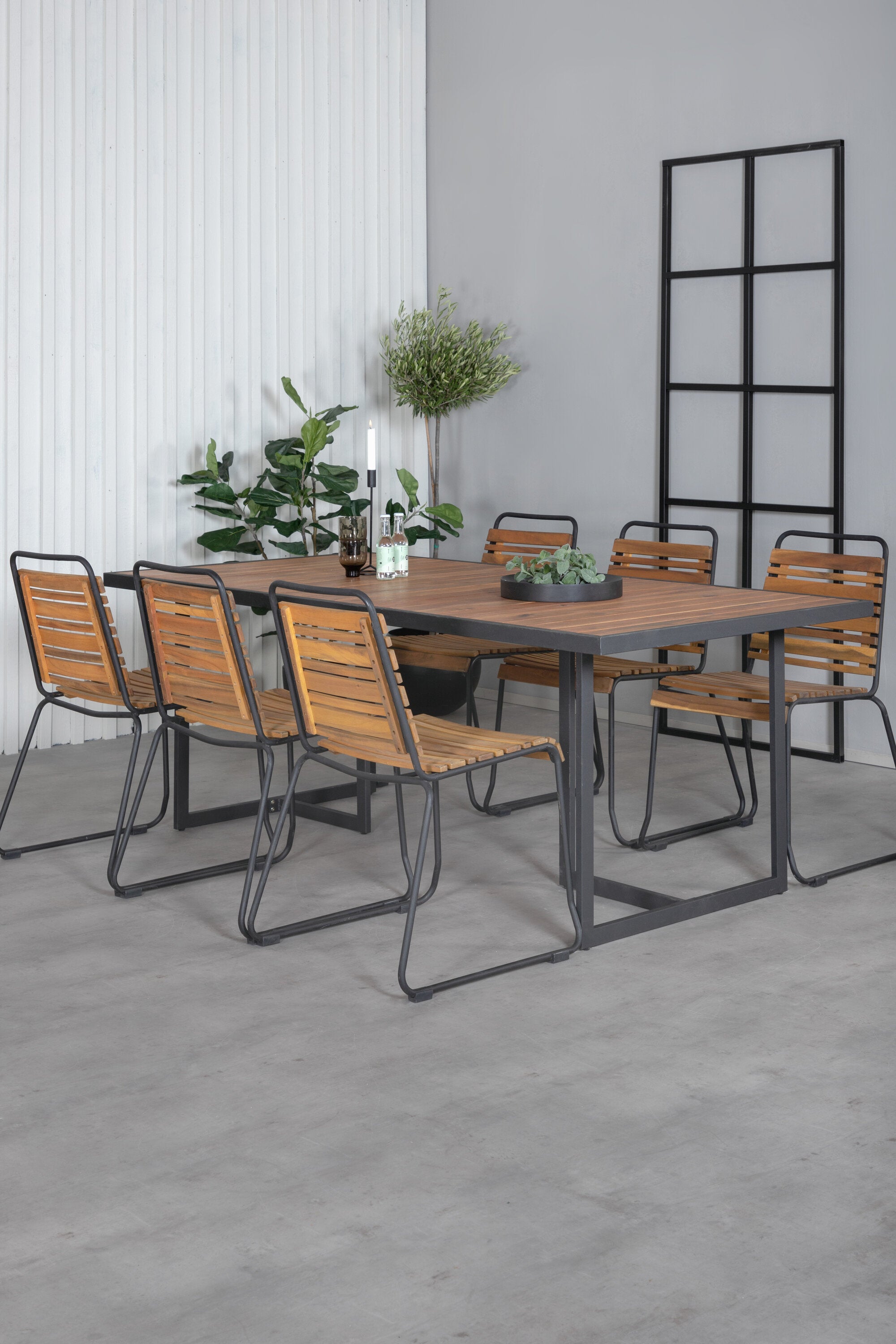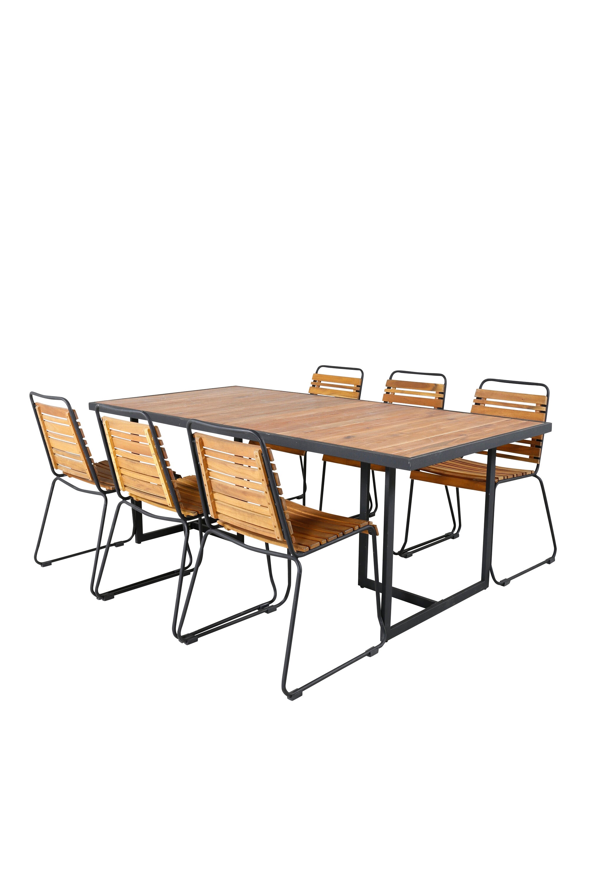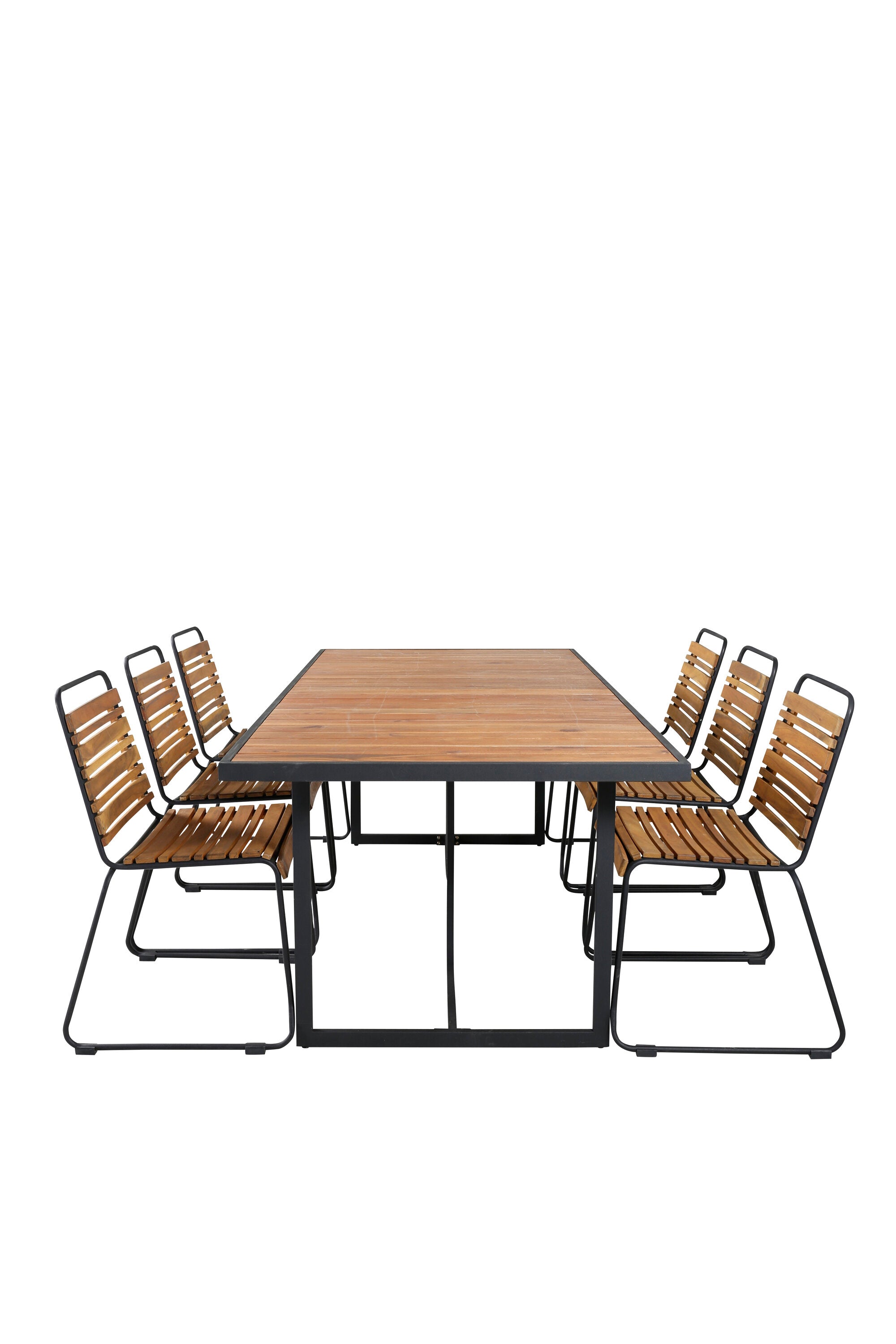 Jídelní stůl Khung - černá ocel / akácie (teklook) - 200*100 cm + jídelní židle Bois - černá Alu / akácie_6
