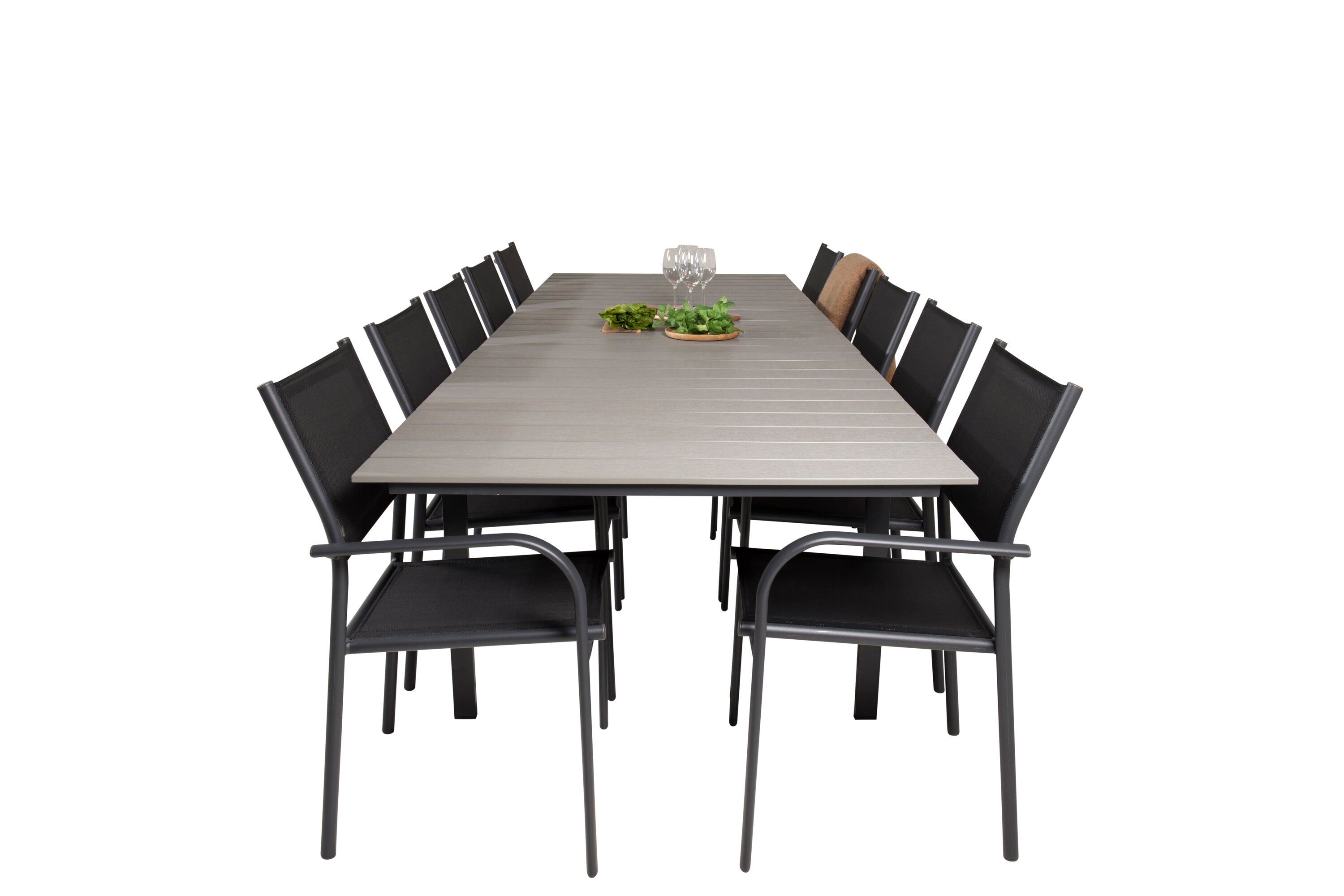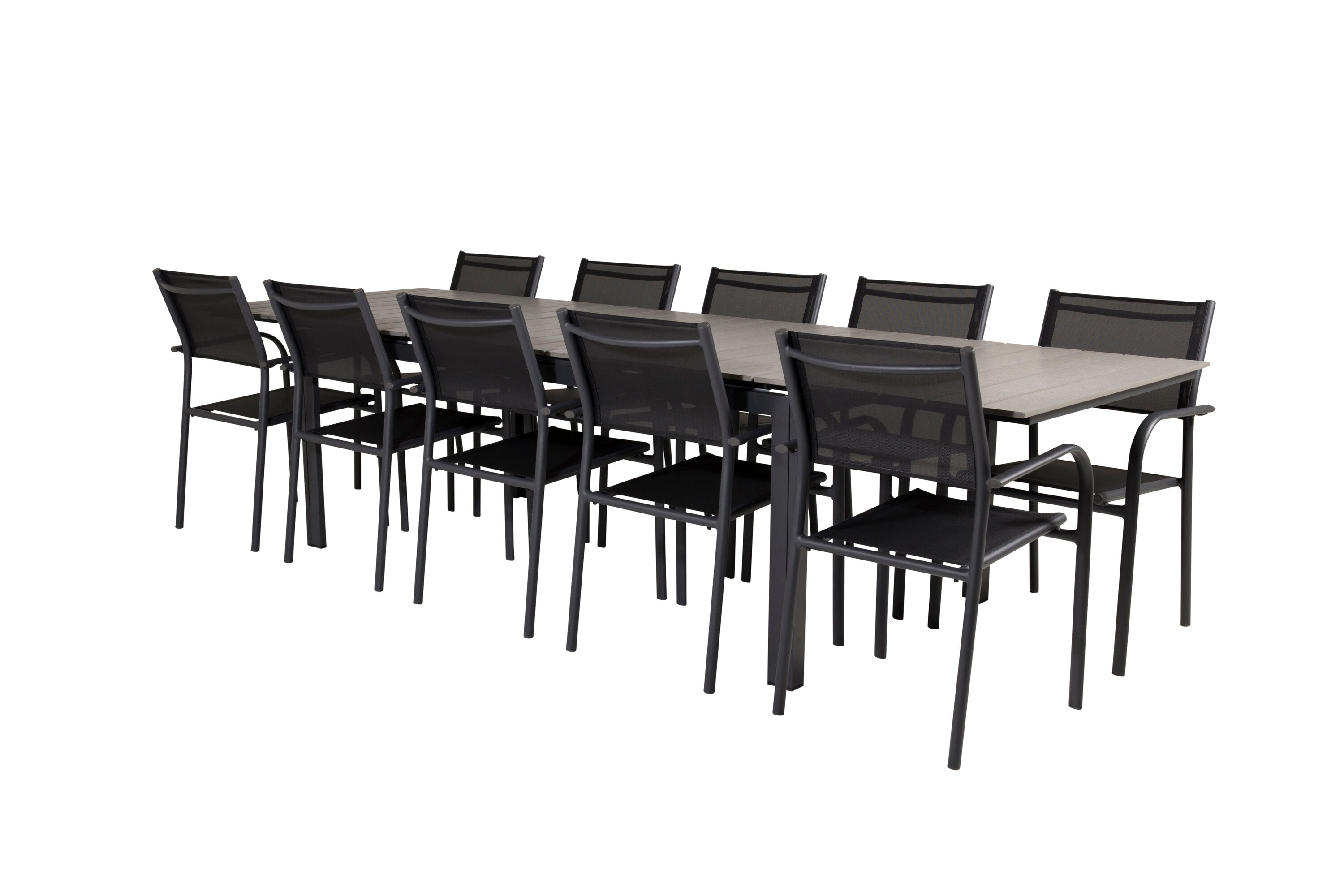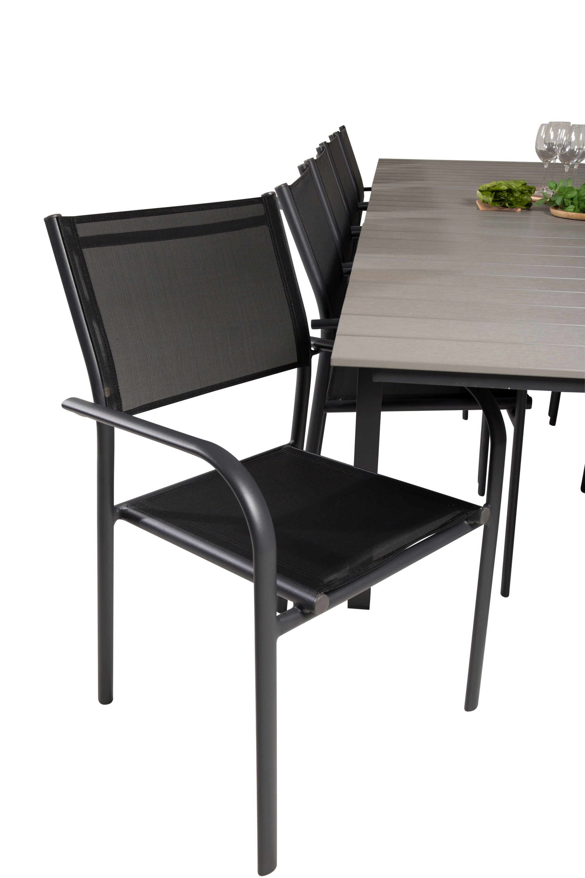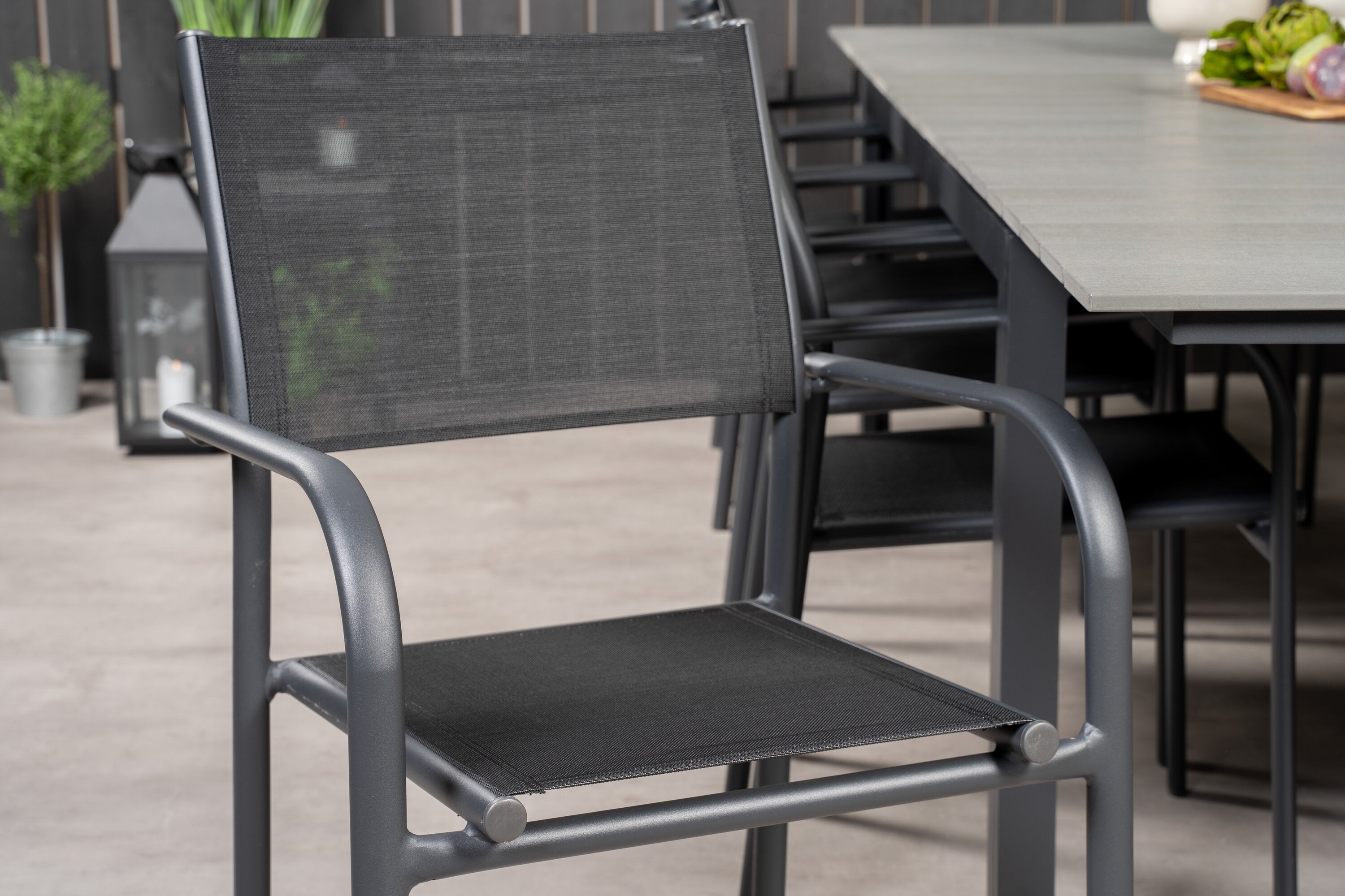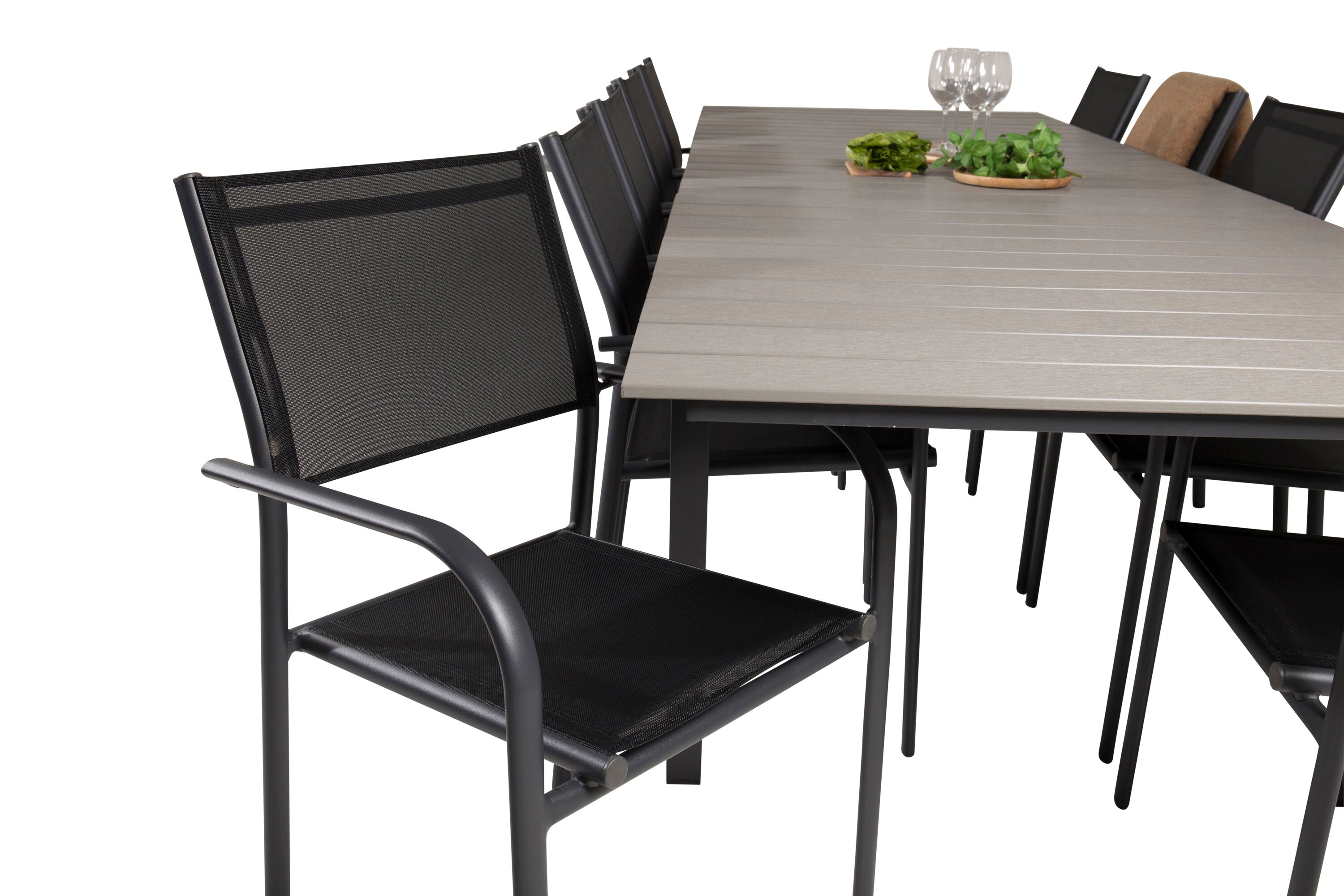 Jídelní stůl Levels 224/324*100 - Černá Aintwood + křeslo Santorini (stohovatelné) - Černá alu / Černá Textilene_10