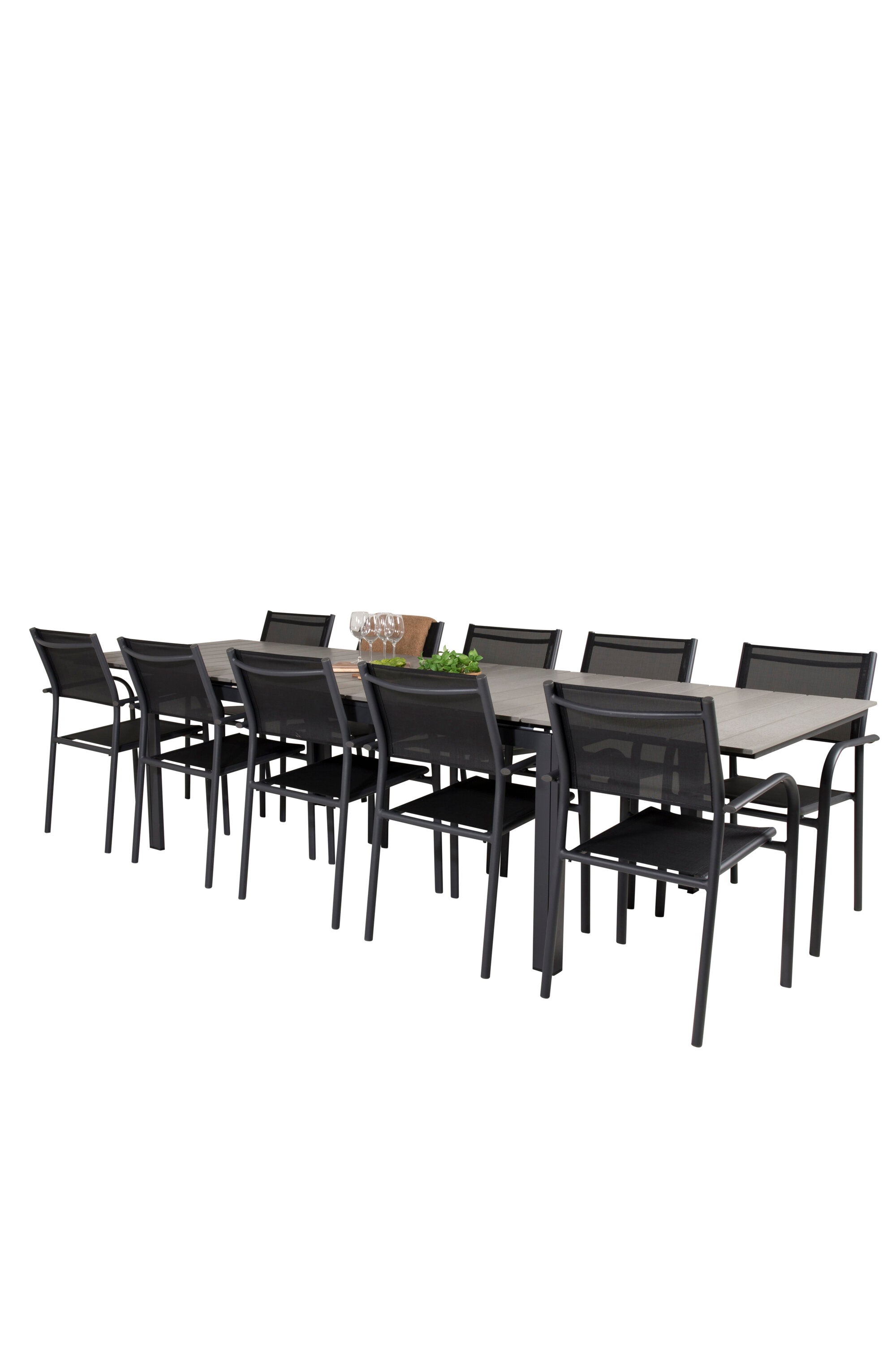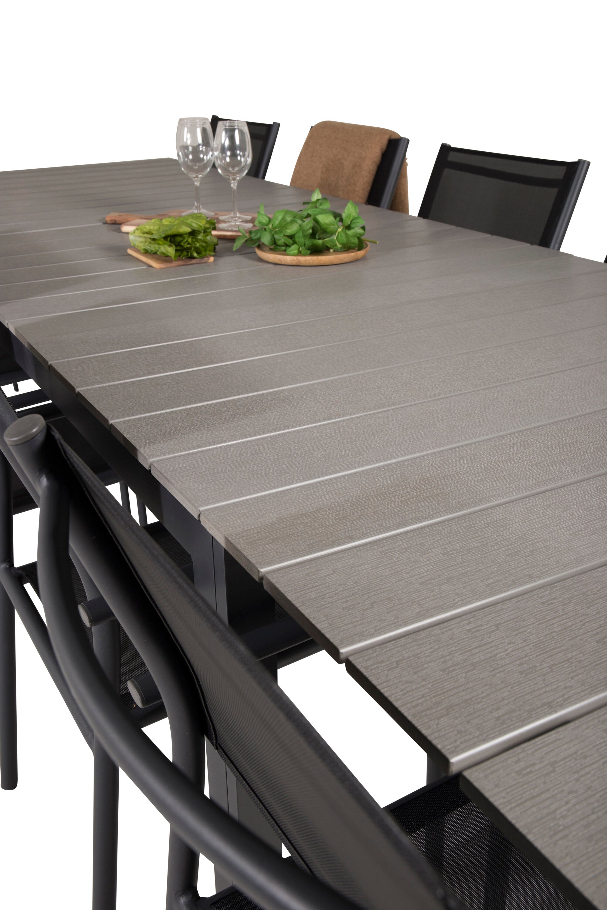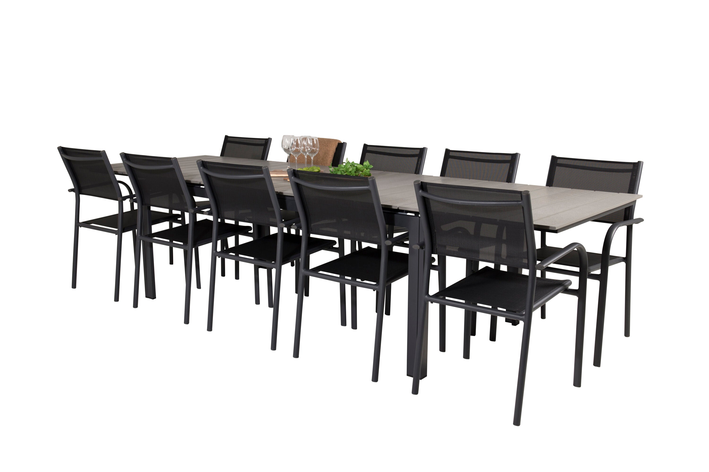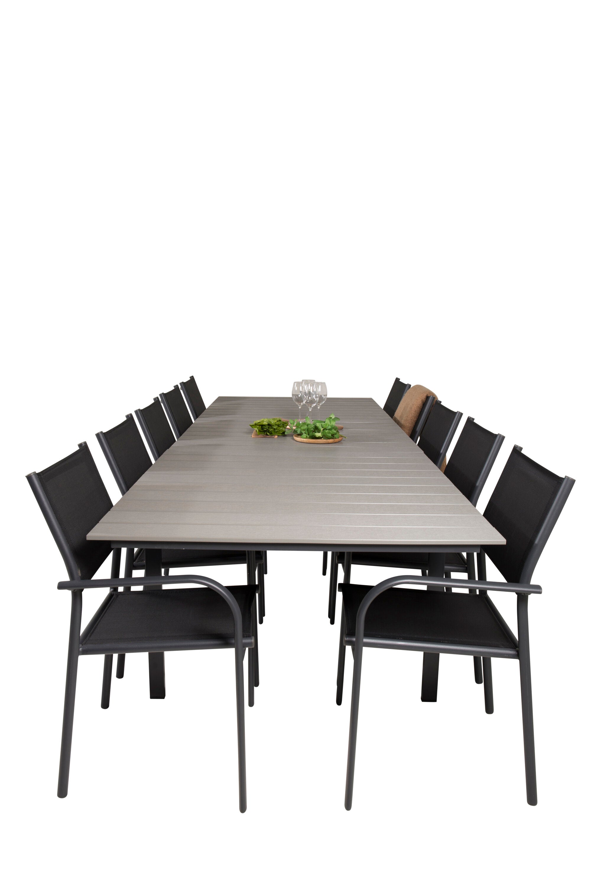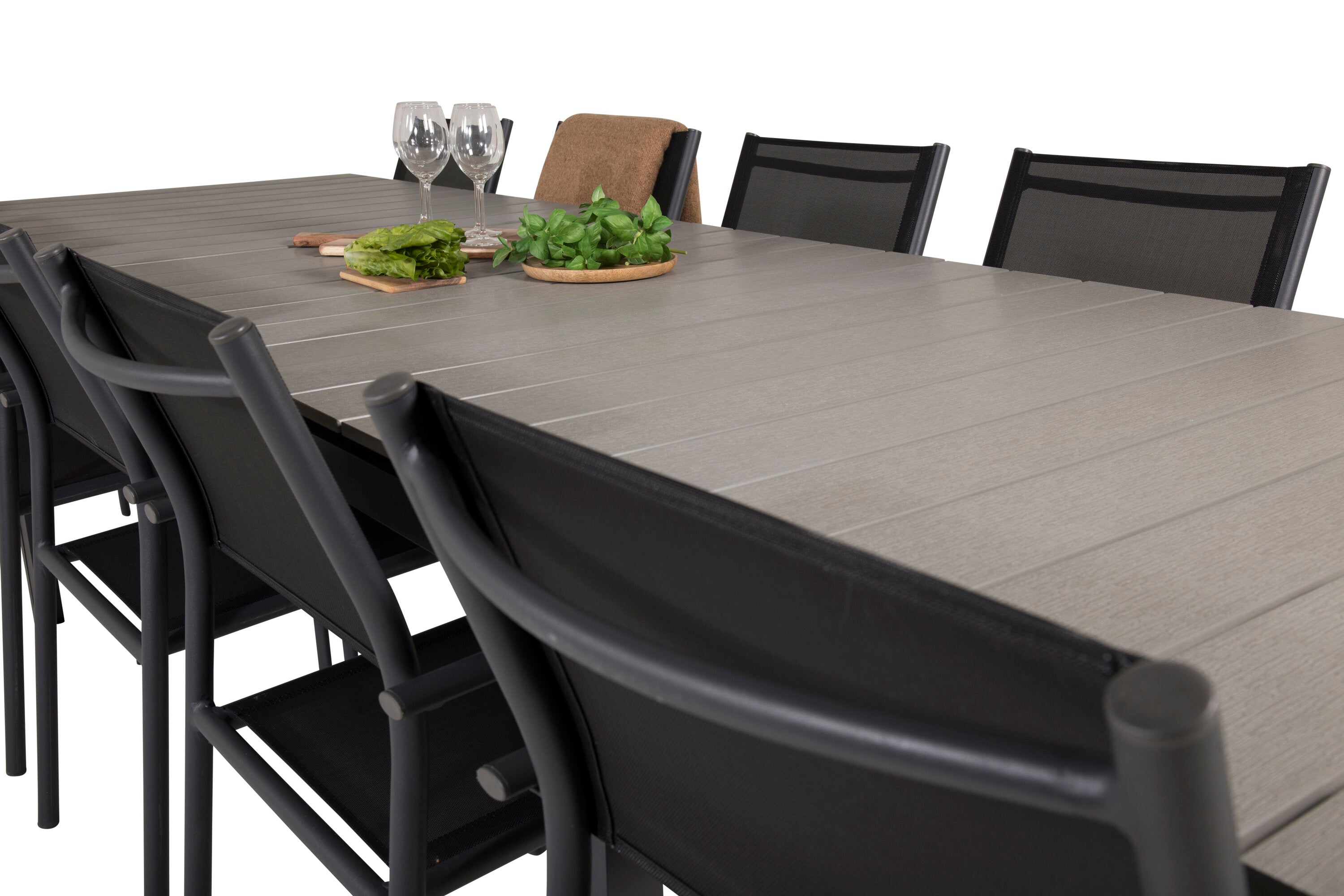 Jídelní stůl Levels 224/324*100 - Černá Aintwood + křeslo Santorini (stohovatelné) - Černá alu / Černá Textilene_10