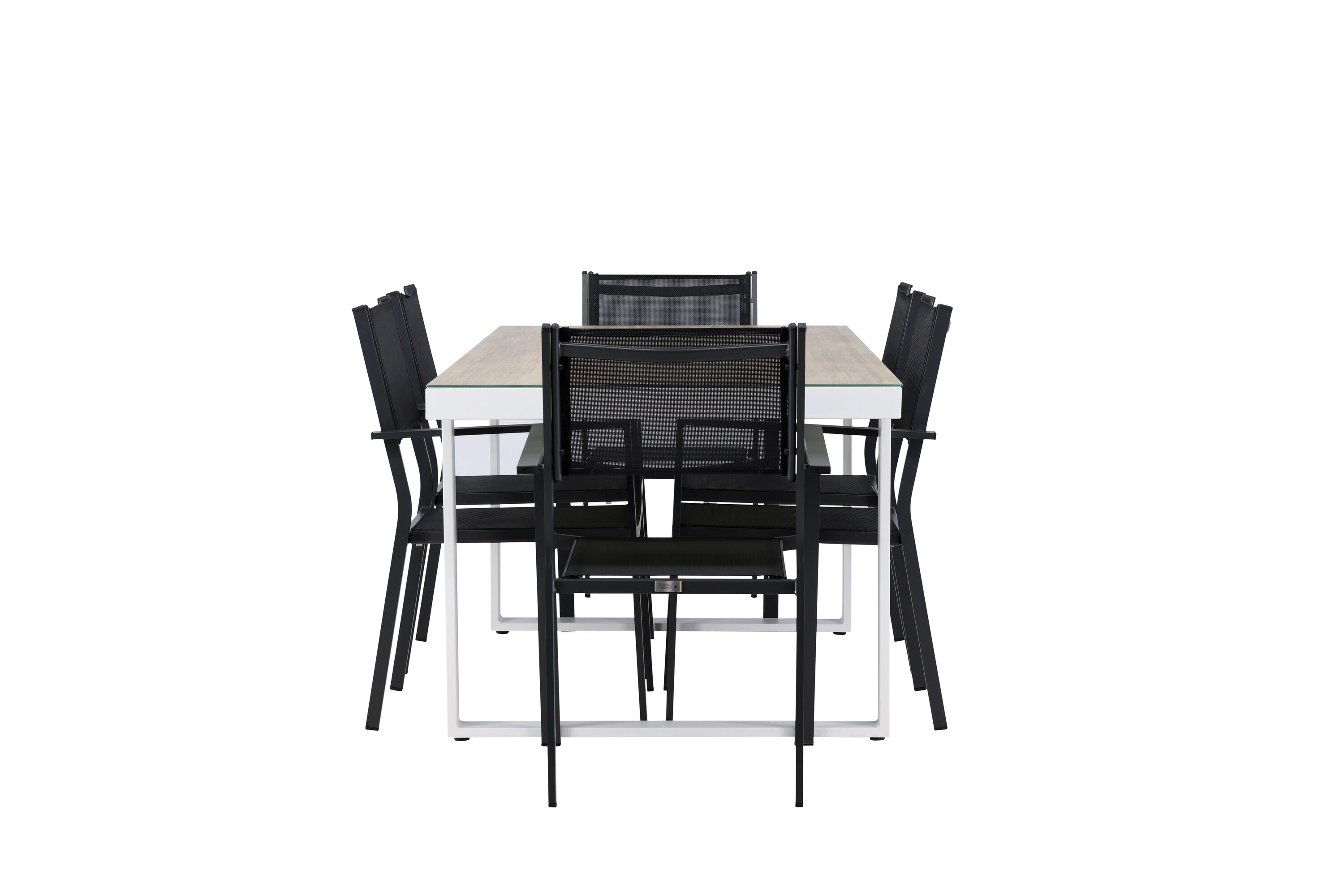 Tento jídelní set je dodáván se šesti pohodlnými židlemi, takže je ideální pro velké rodinné večeře nebo slavnostní setkání pod širým nebem. S jídelním setem Merlo a Copacabana můžete vytvořit příjemné a stylové venkovní prostředí, kde si vy i vaši hosté můžete naplno užít nádherné chvíle.