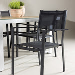 Židle Copacabana jsou také vyrobeny z hliníku a mají hlubokou černou barvu, která do vašeho venkovního prostoru přináší kontrastní a moderní estetiku. Díky elegantnímu designu a pohodlnému sezení jsou ideální pro relaxační jídlo nebo společenská setkání venku.