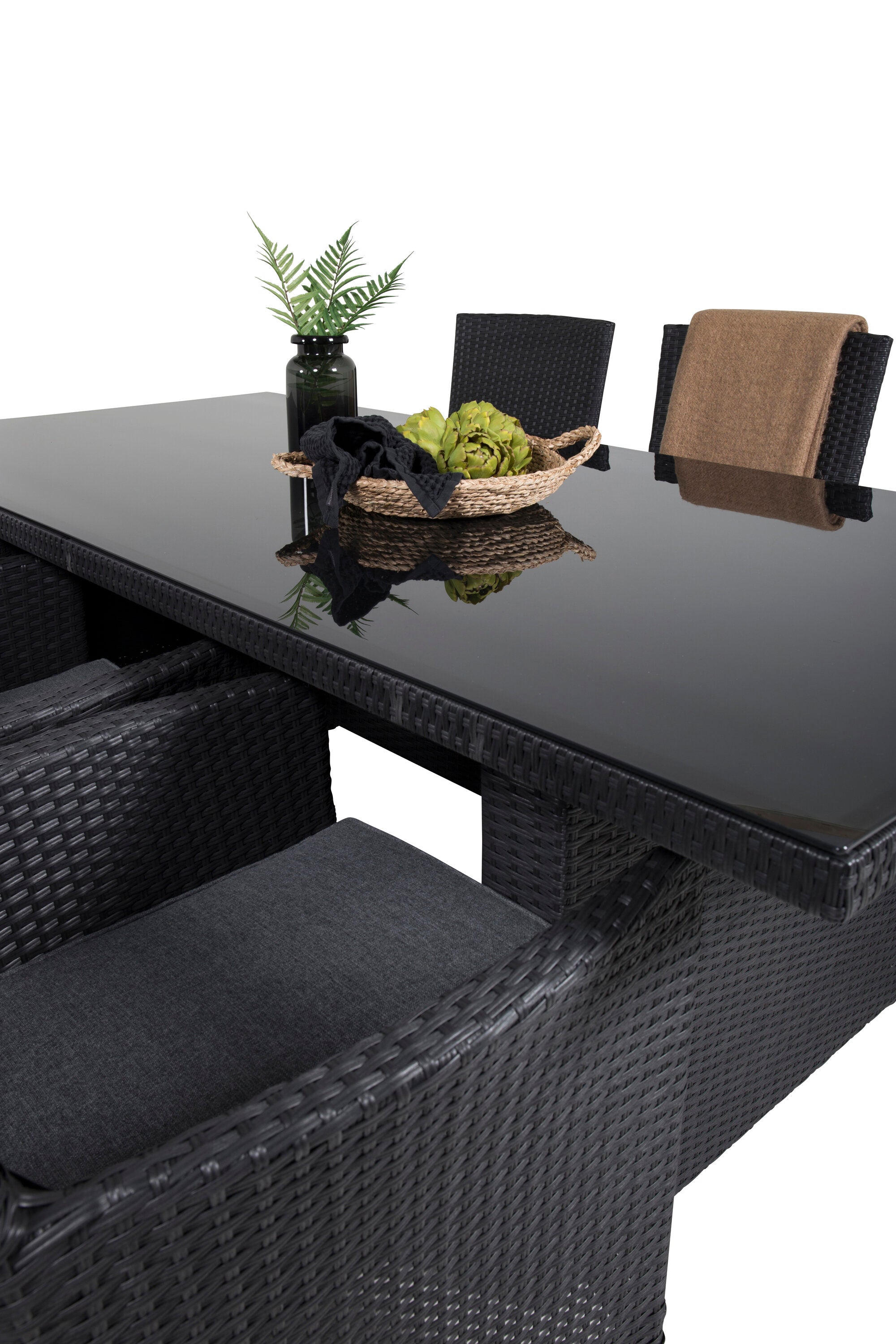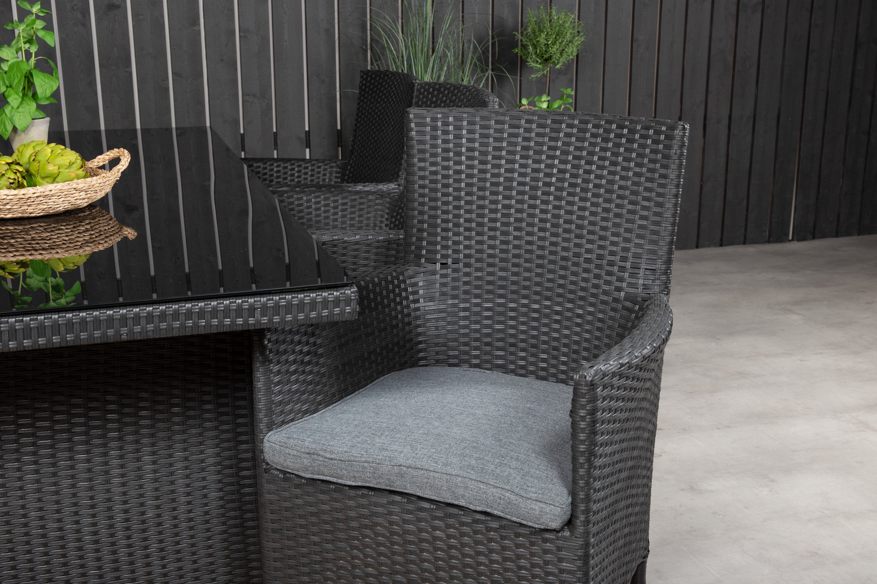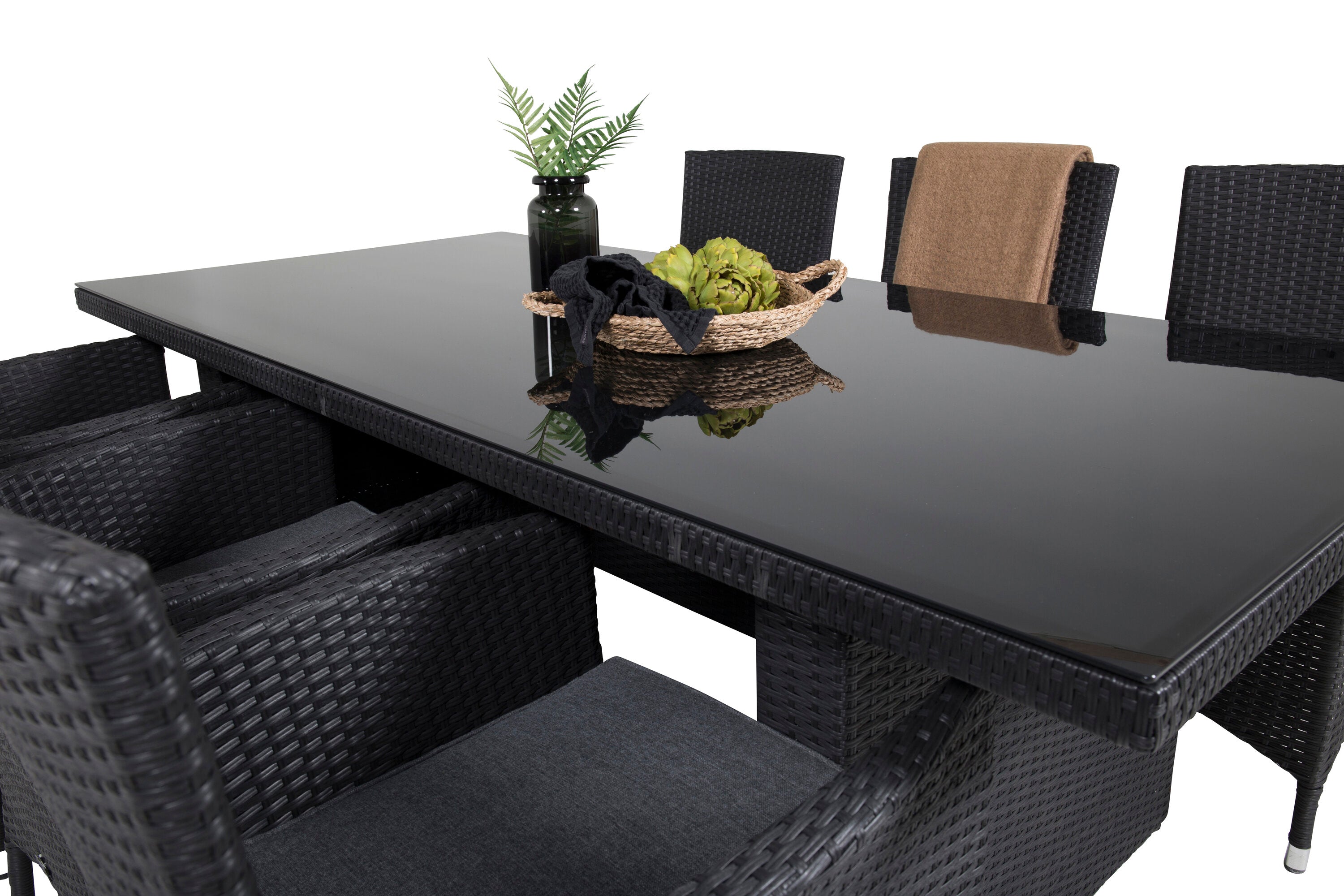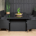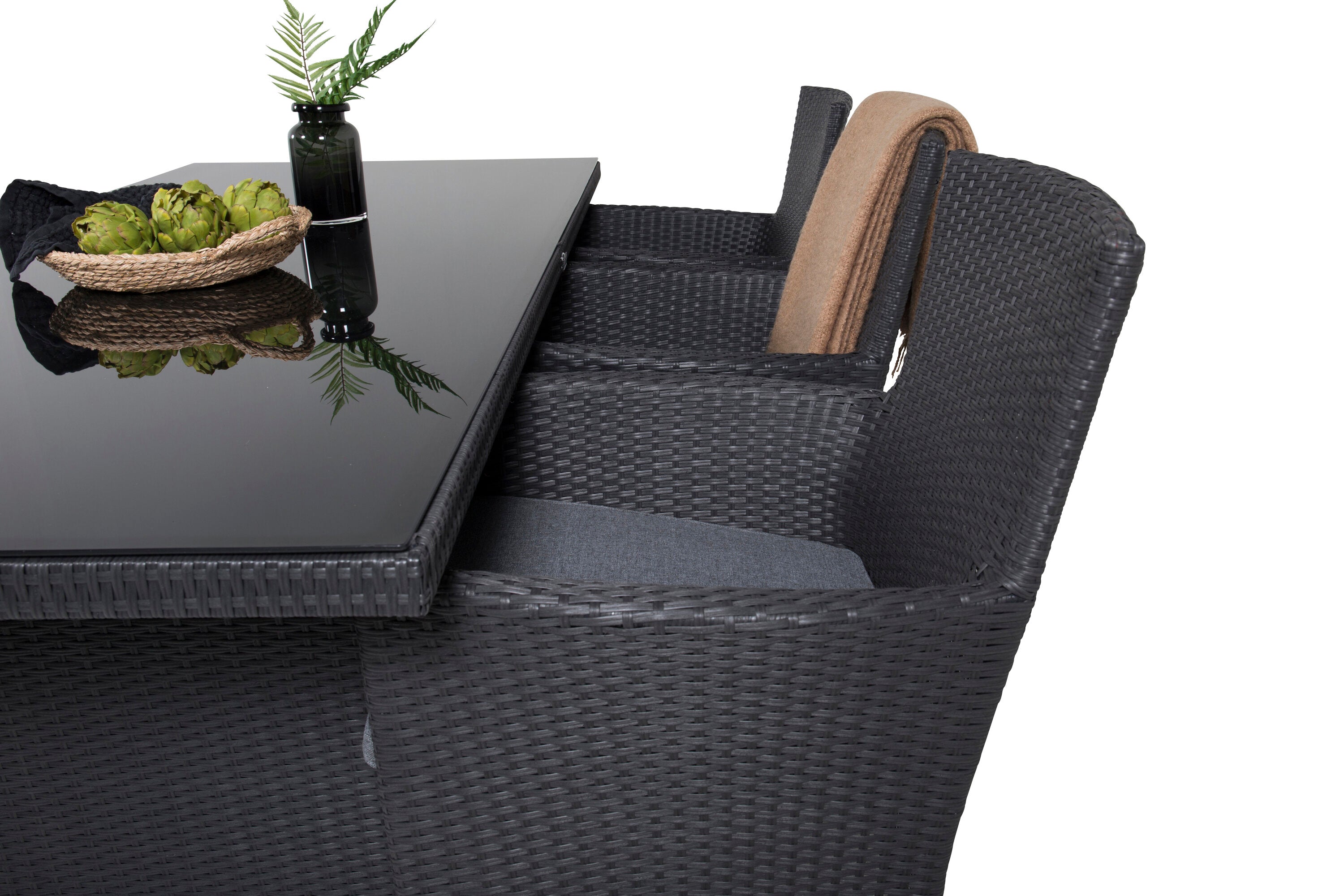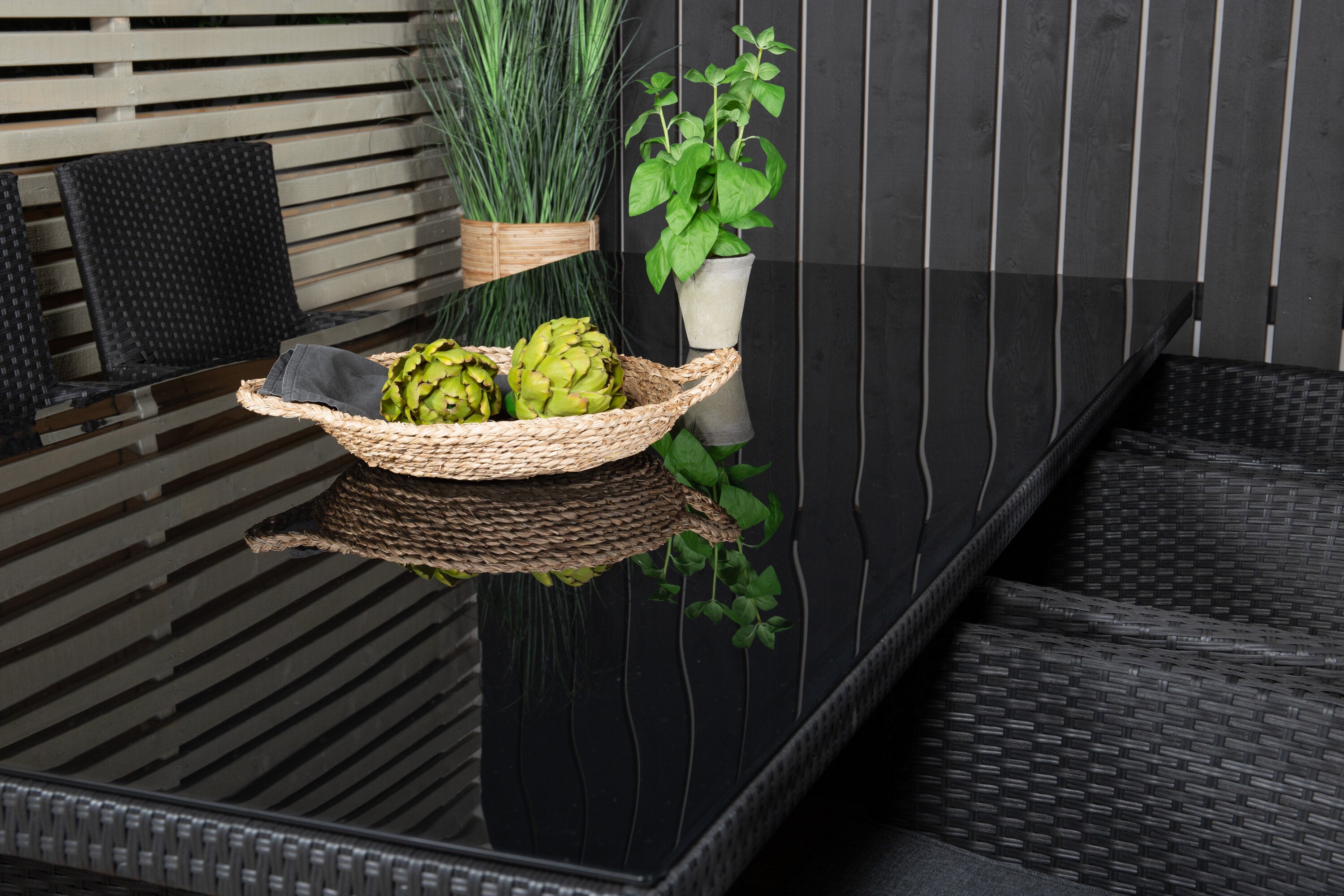 Kombinace stylového jídelního stolu Padova se skleněnou stolovou deskou a jídelních židlí Malin příjemných k sezení dodá vaší terase nebo balkonu kombinaci moderní a luxusní. Pozvěte na mnoho večeří dopředu!