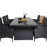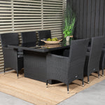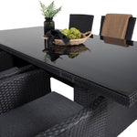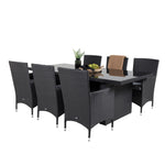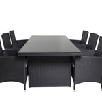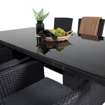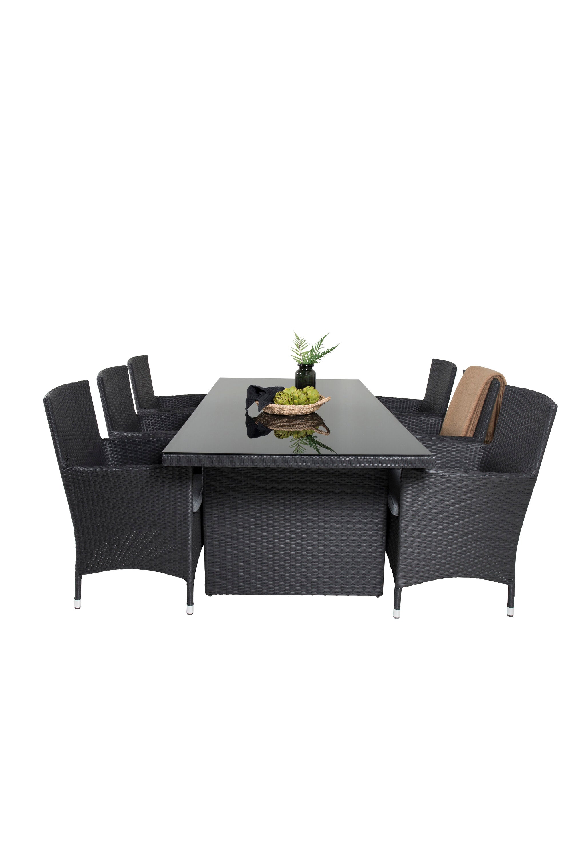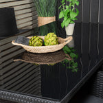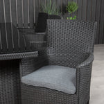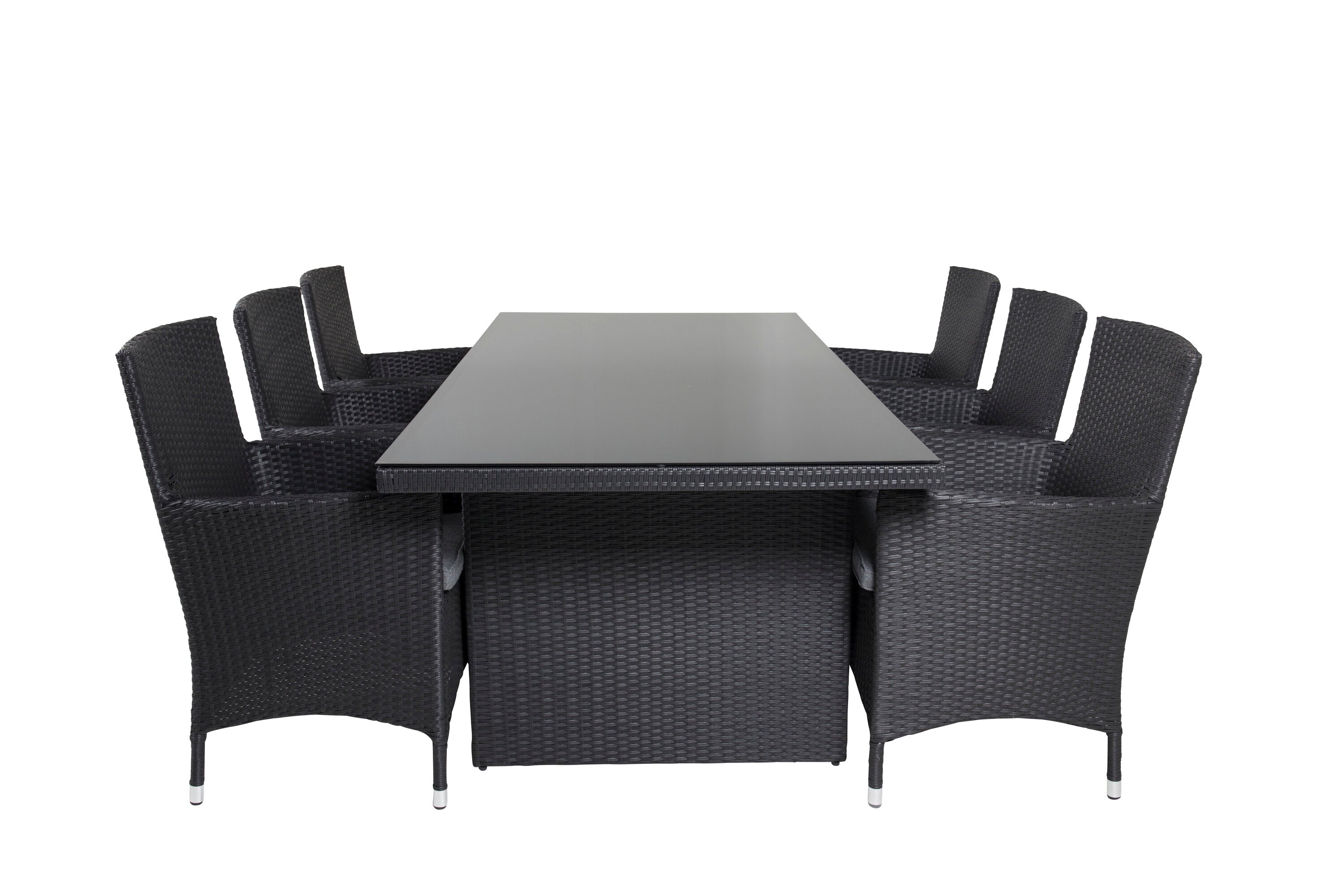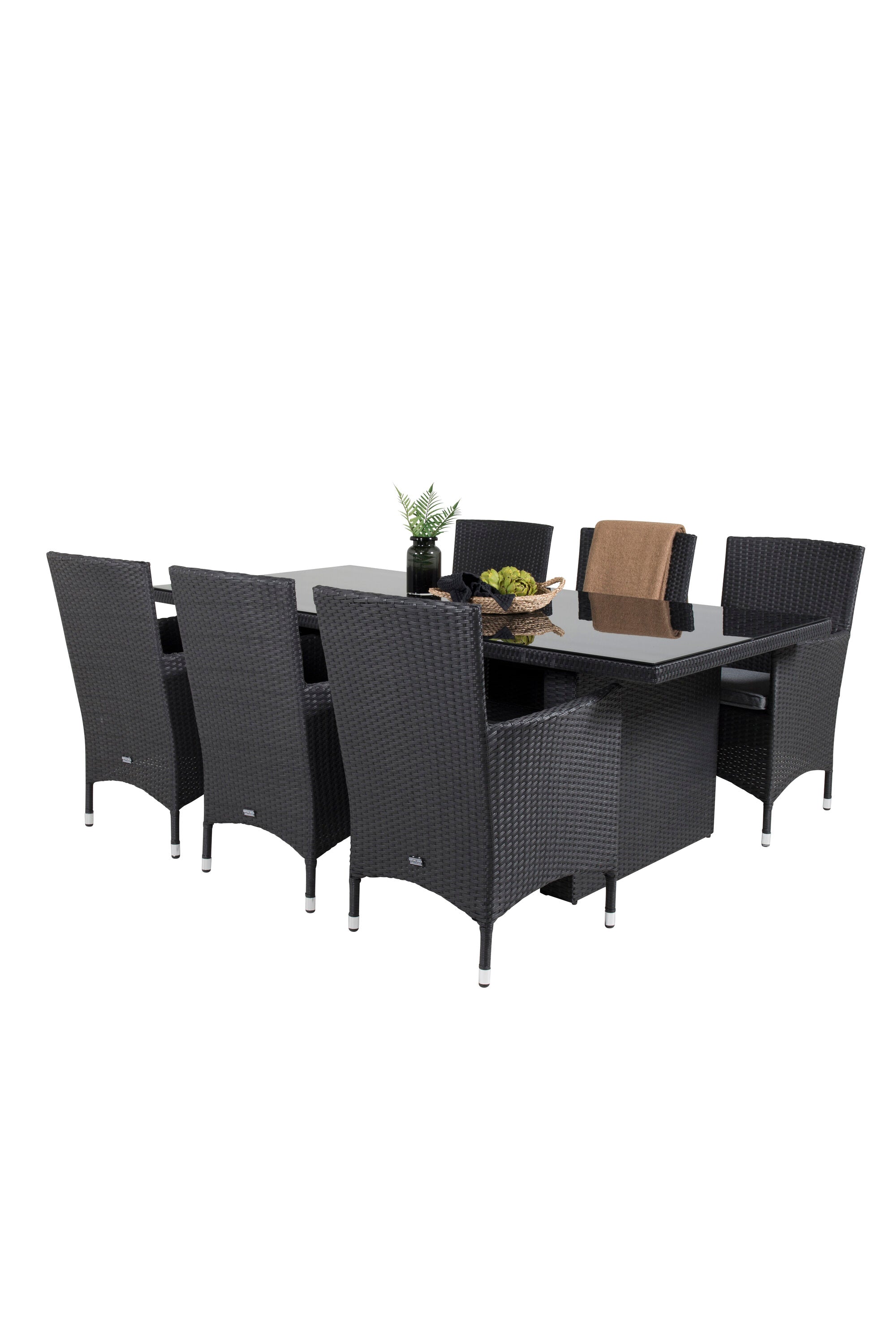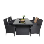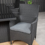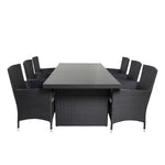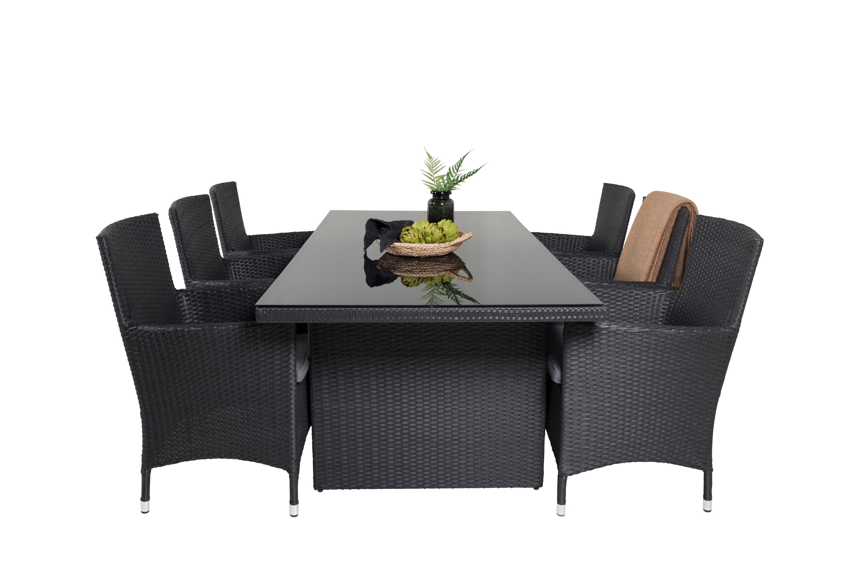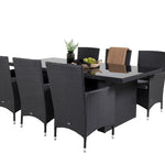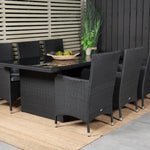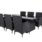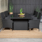 Kombinace stylového jídelního stolu Padova se skleněnou stolovou deskou a jídelních židlí Malin příjemných k sezení dodá vaší terase nebo balkonu kombinaci moderní a luxusní. Pozvěte na mnoho večeří dopředu!