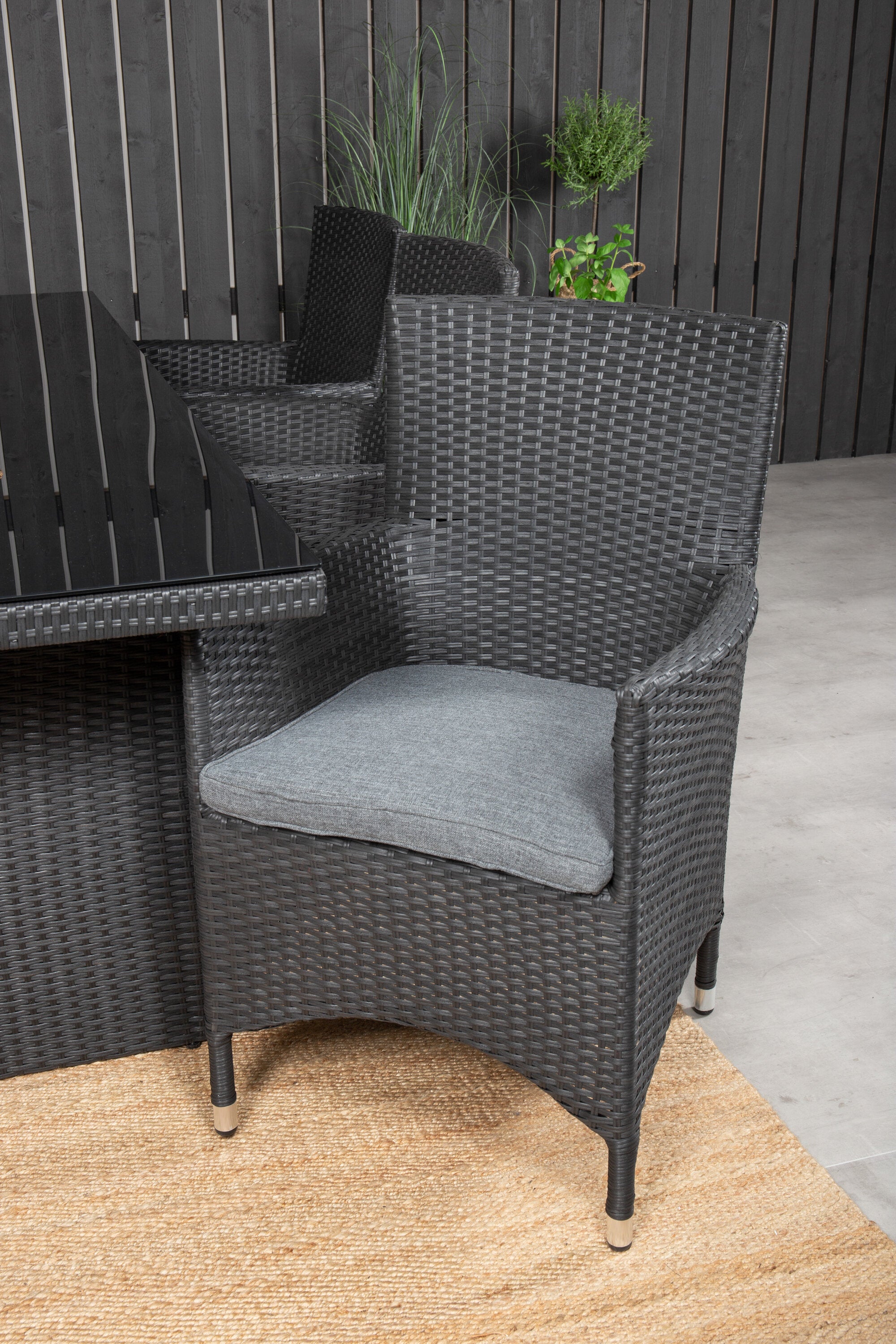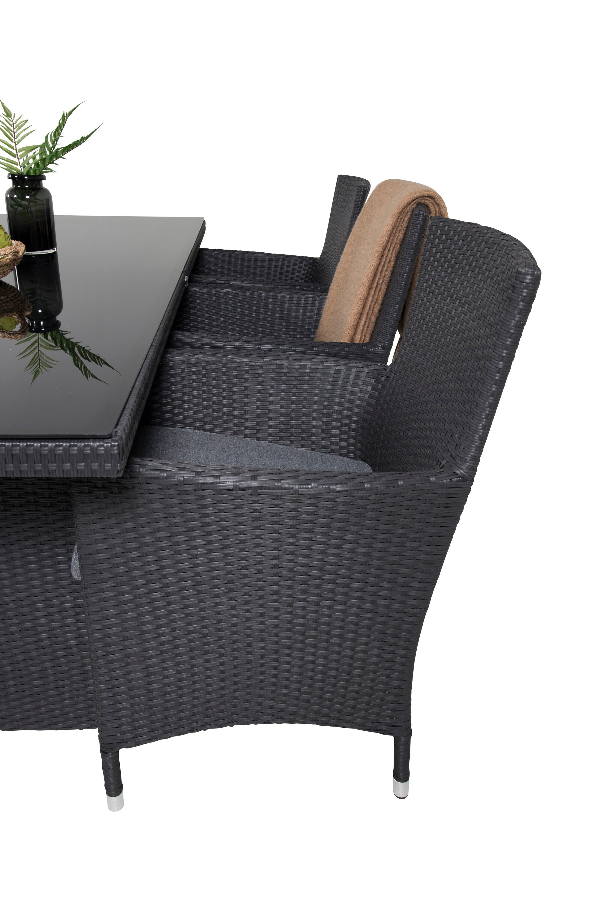 Jídelní stůl Padova 200*100 - Černá+Malin křeslo s polštářem - černá / šedá