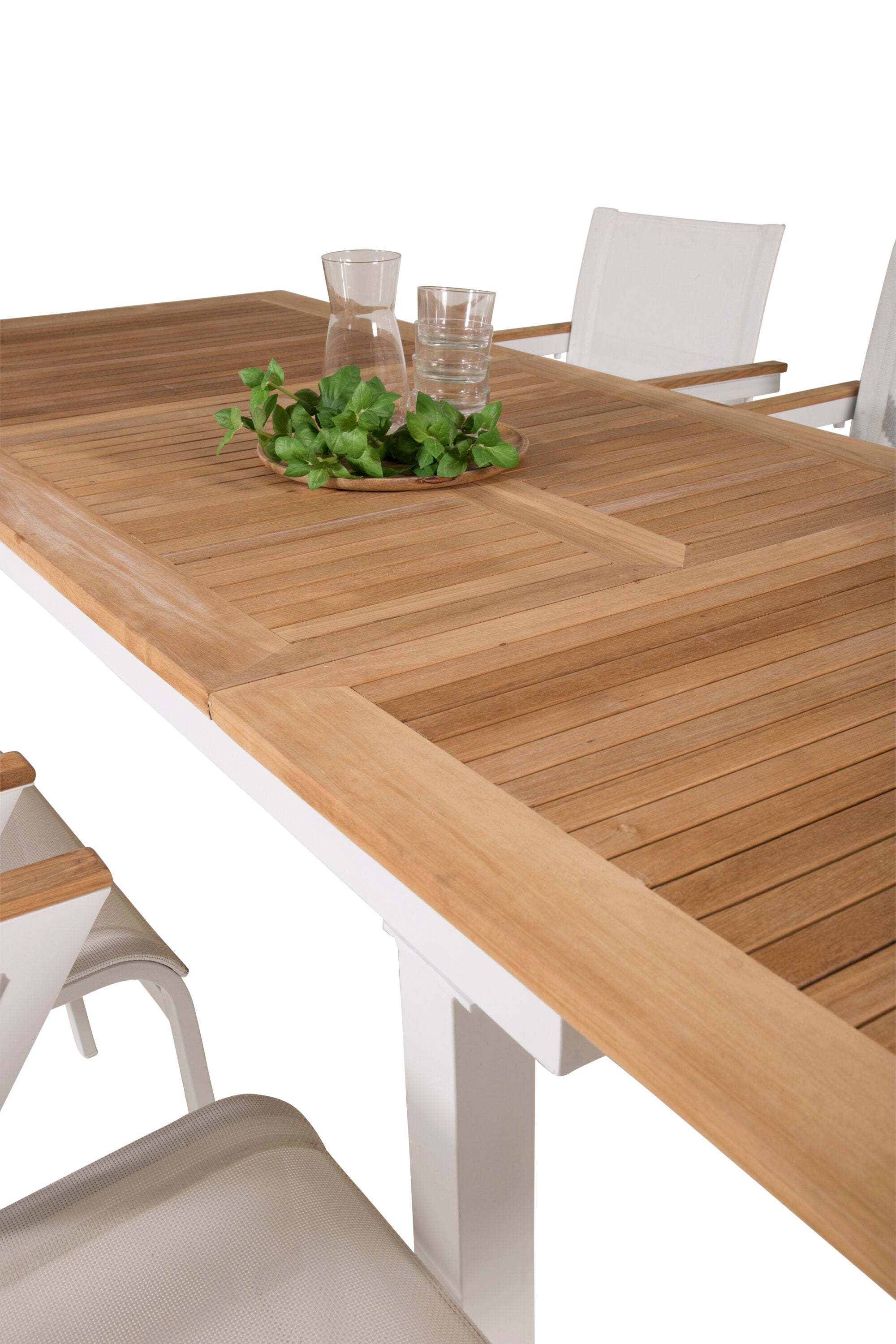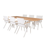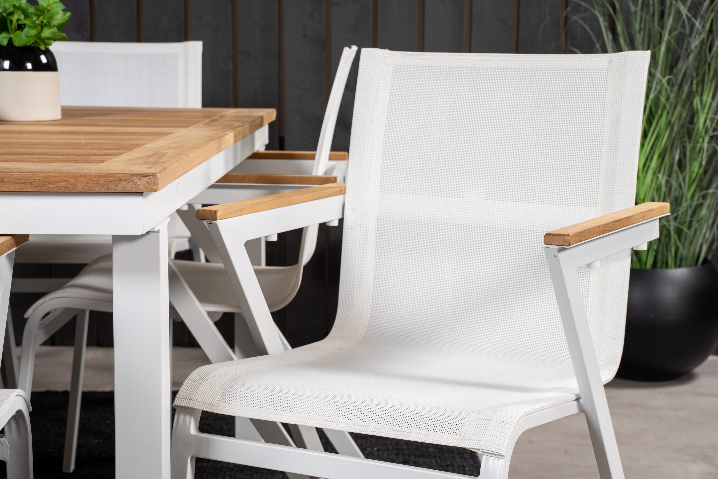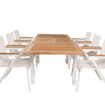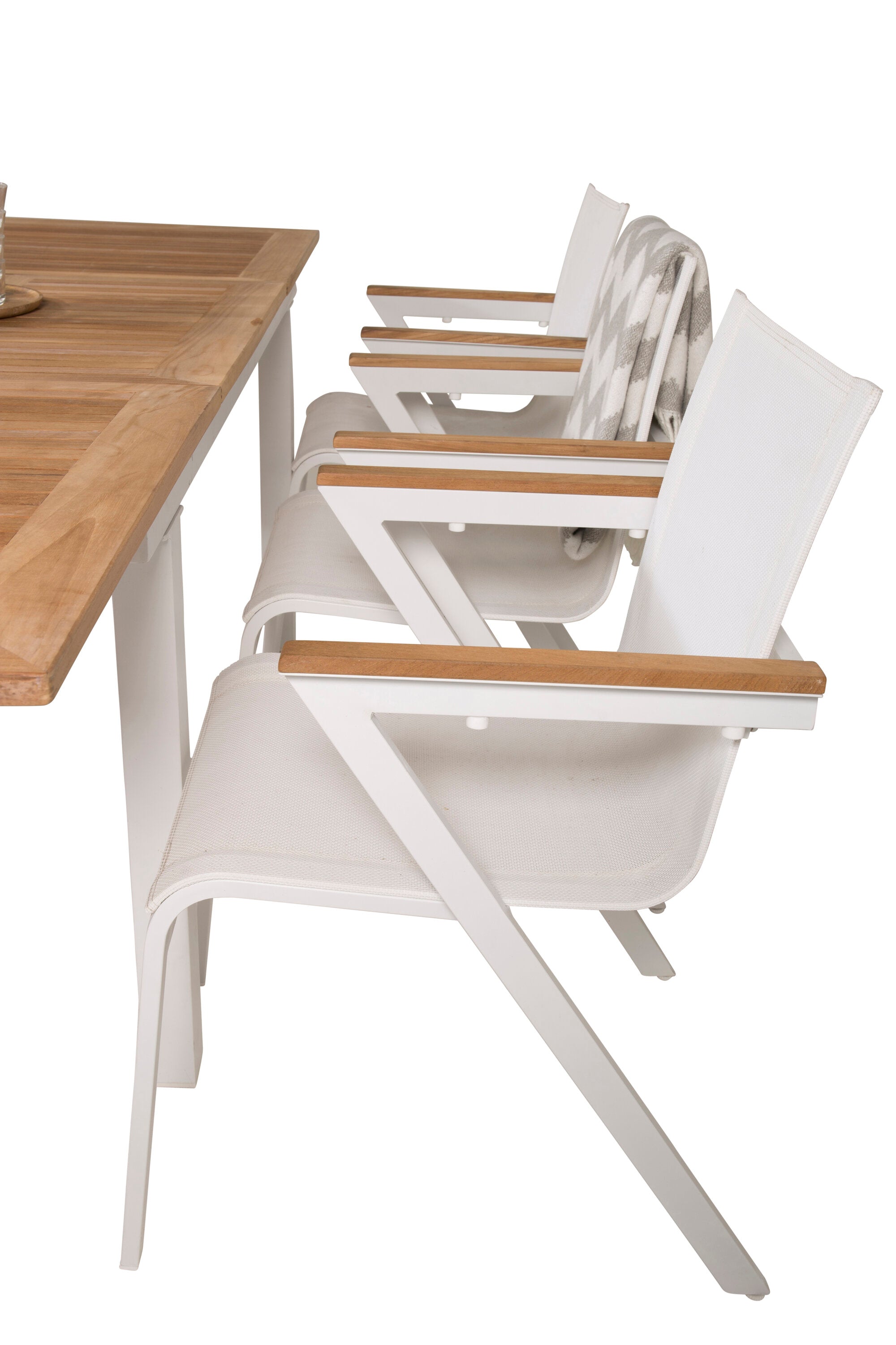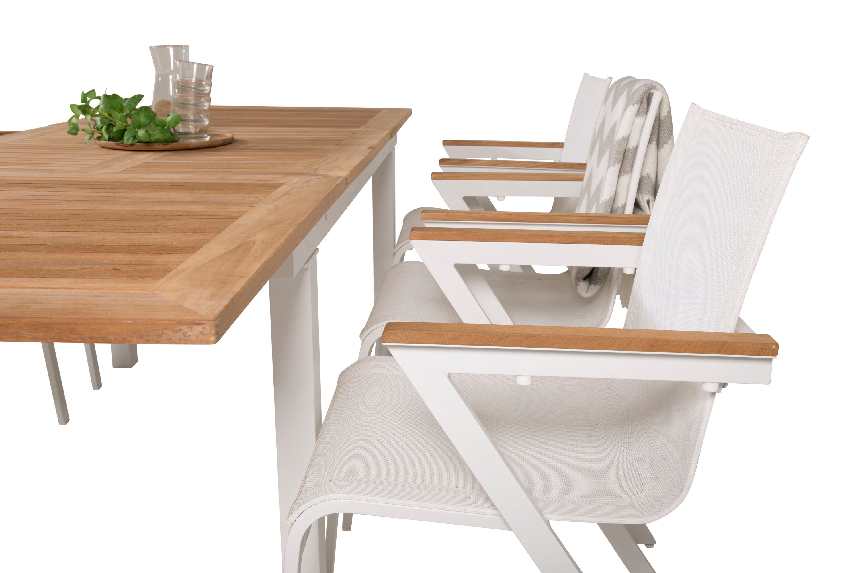 Jídelní stůl Panama 160/240*90 - Bílá Alu / Teak + křeslo Mexico (stohovatelné) - Bílá / Teak _6