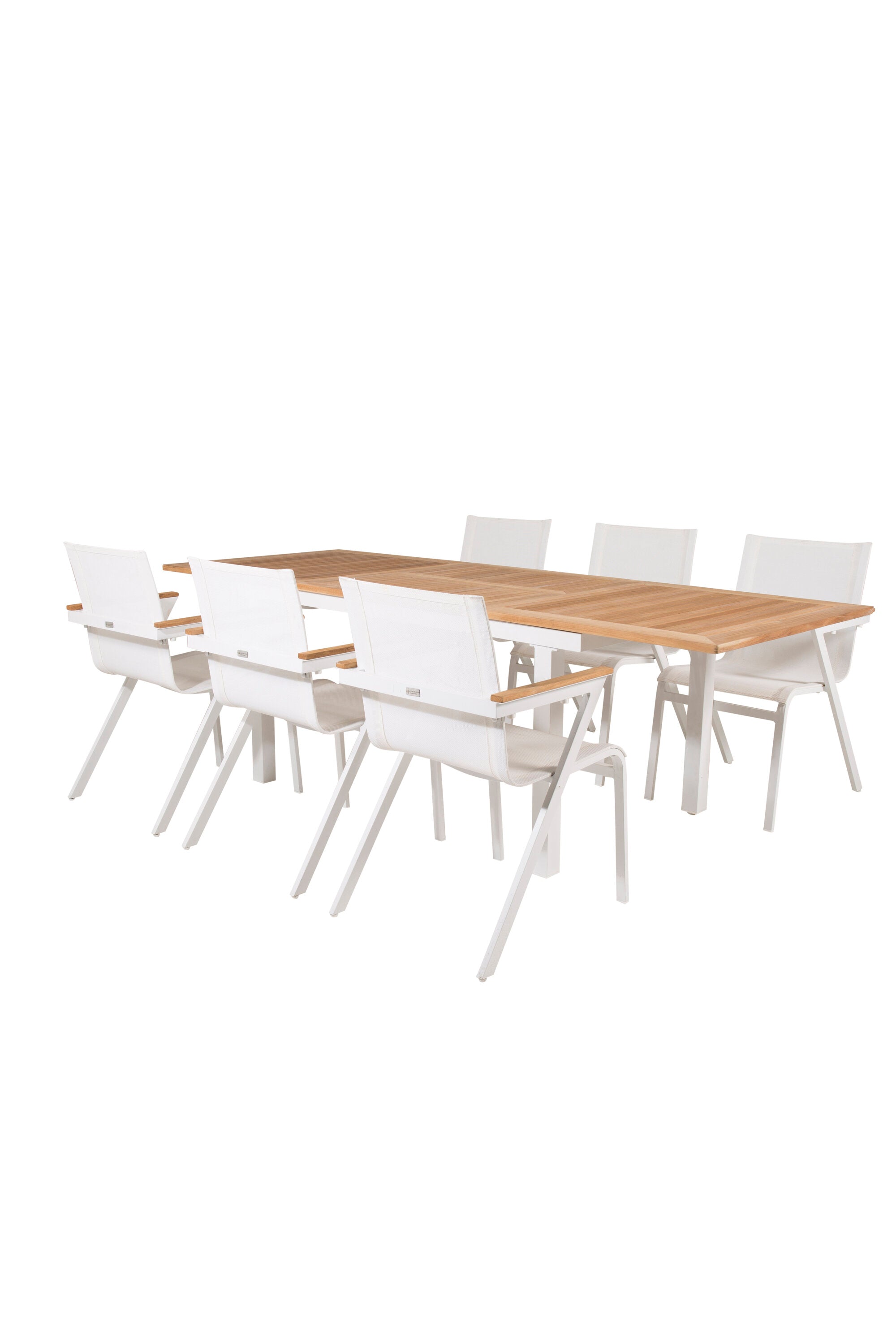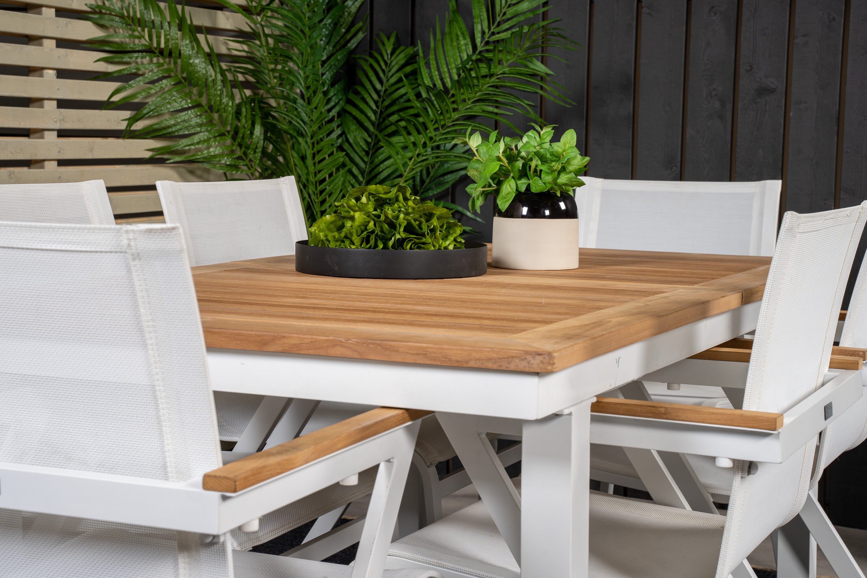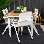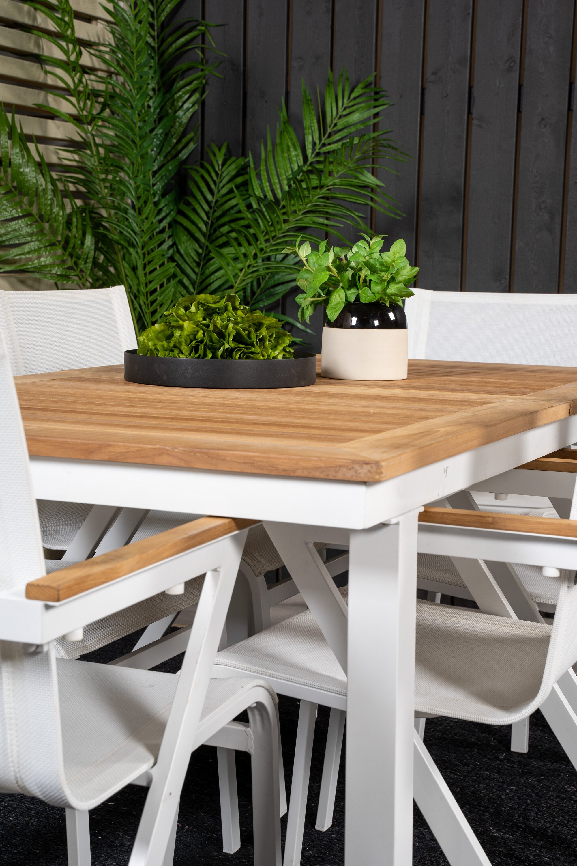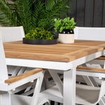 Jídelní stůl Panama 160/240*90 - Bílá Alu / Teak + křeslo Mexico (stohovatelné) - Bílá / Teak _6