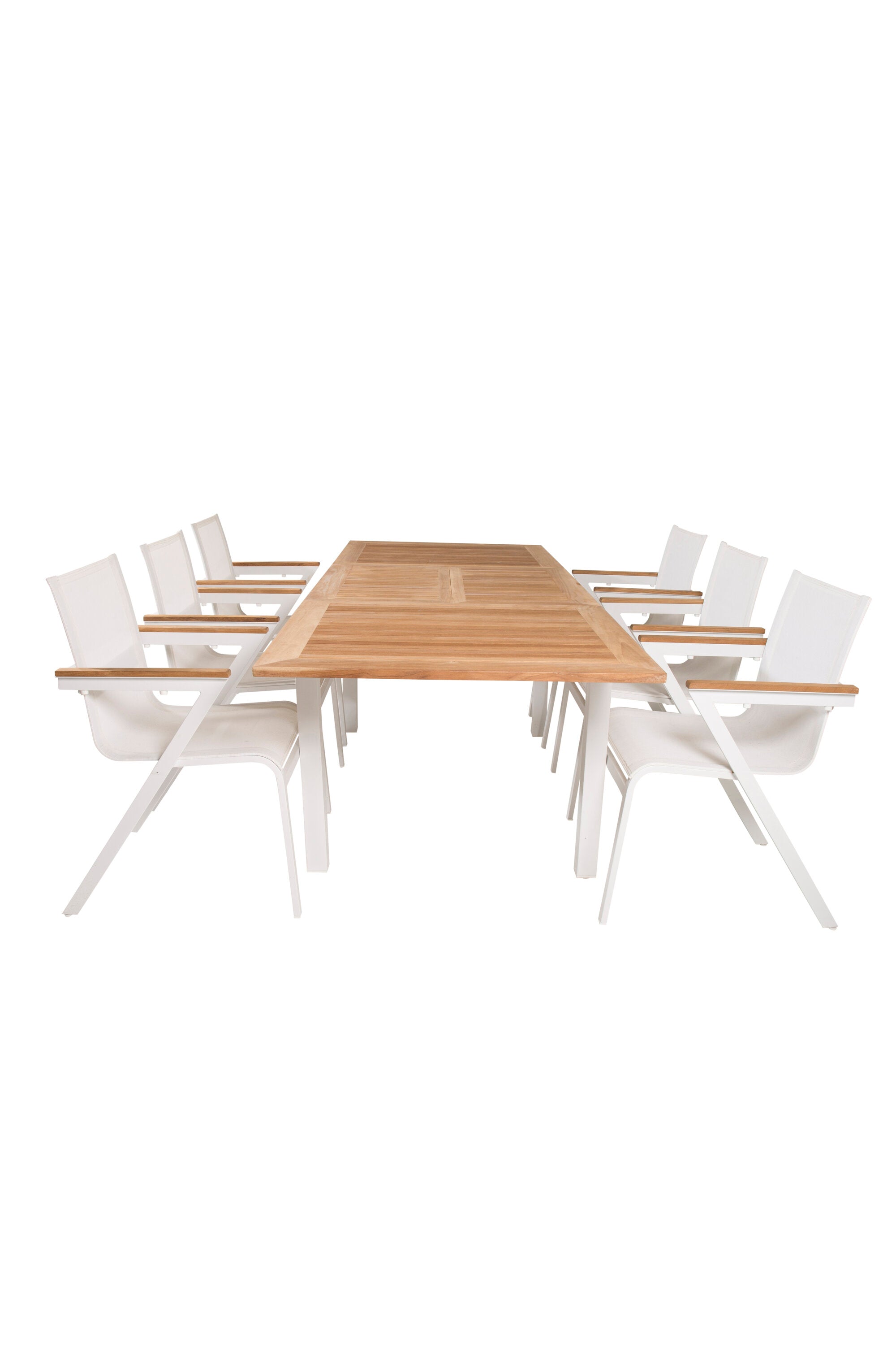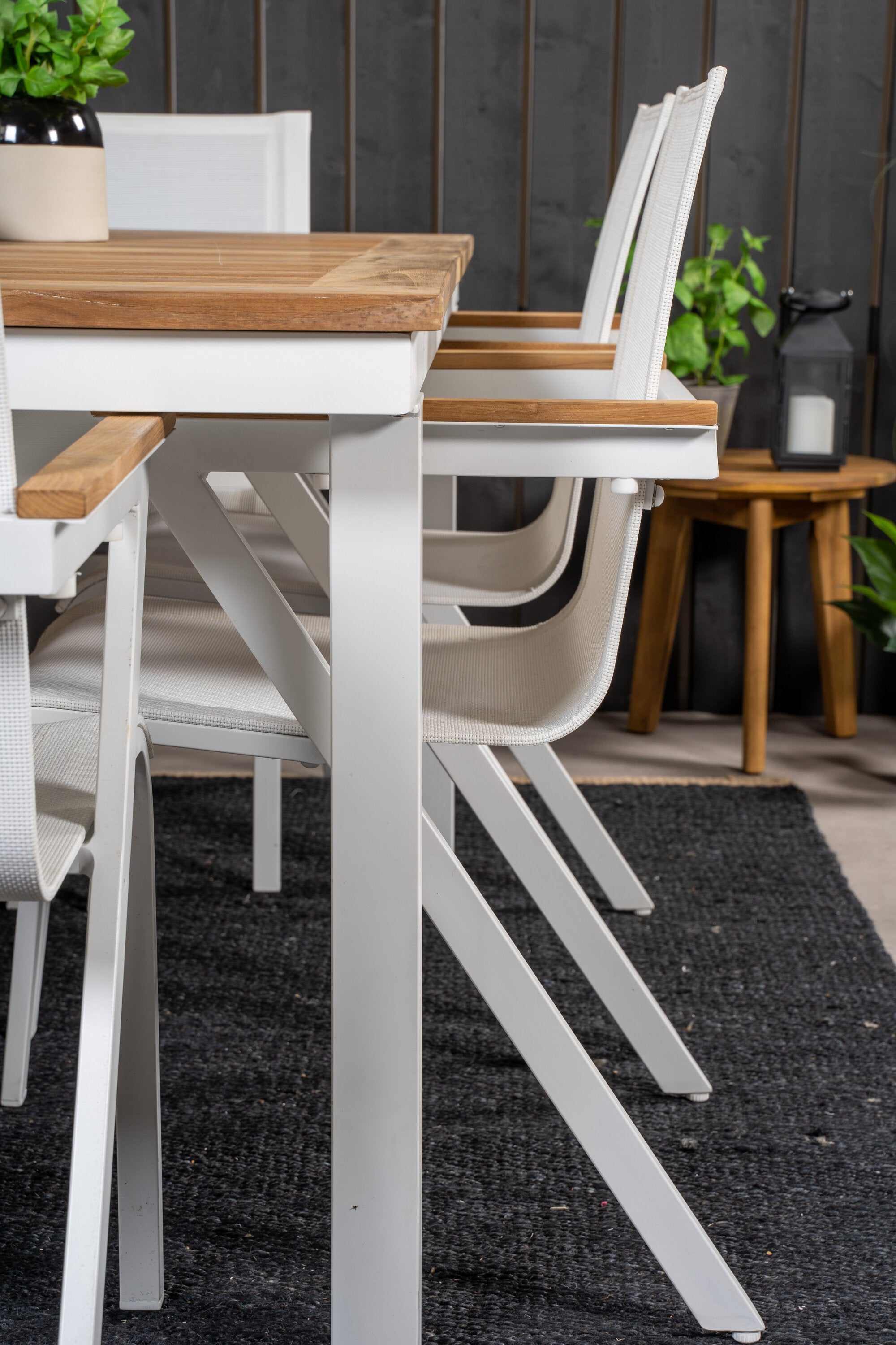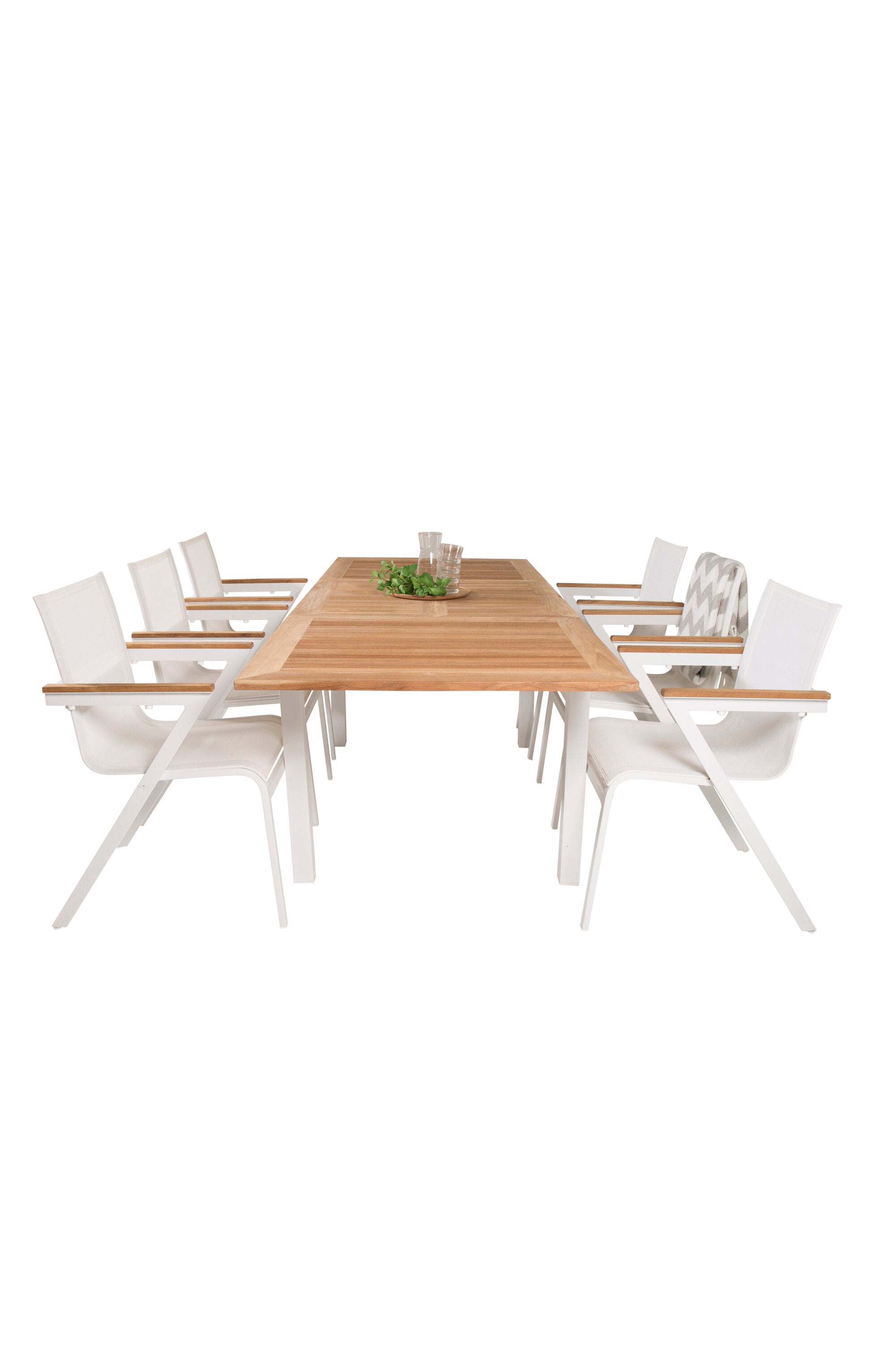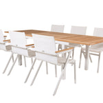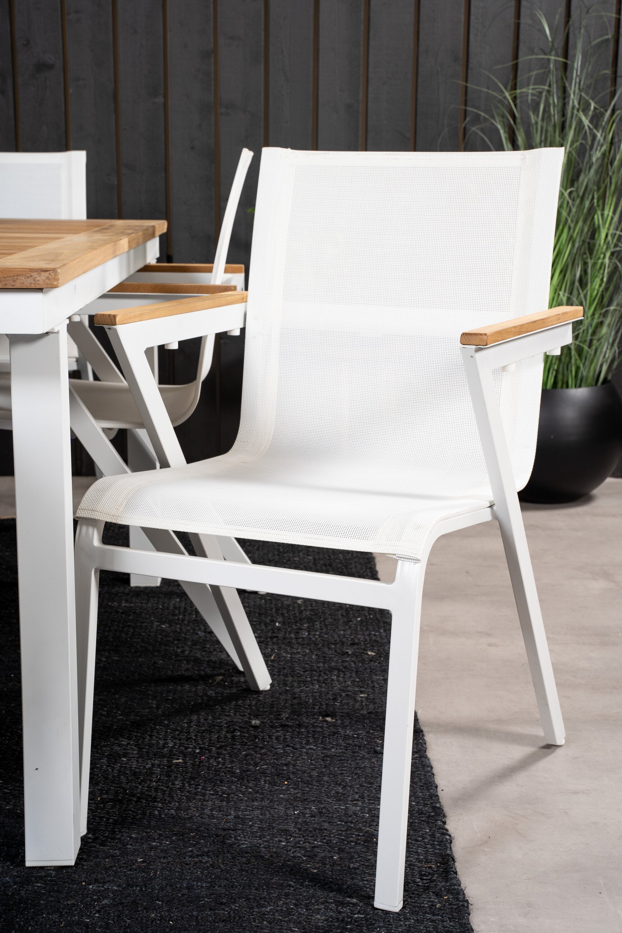 Jídelní stůl Panama 160/240*90 - Bílá Alu / Teak + křeslo Mexico (stohovatelné) - Bílá / Teak _6