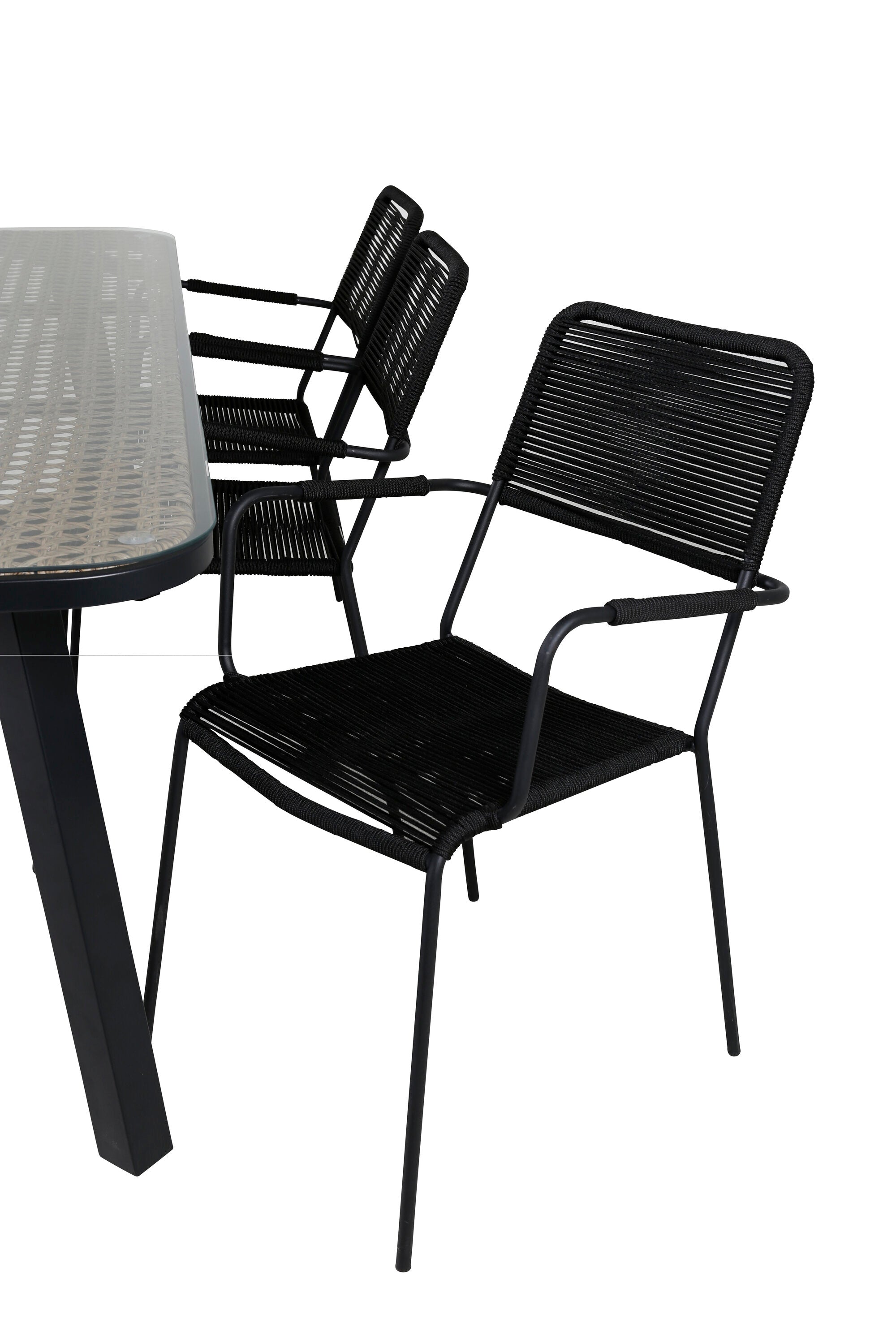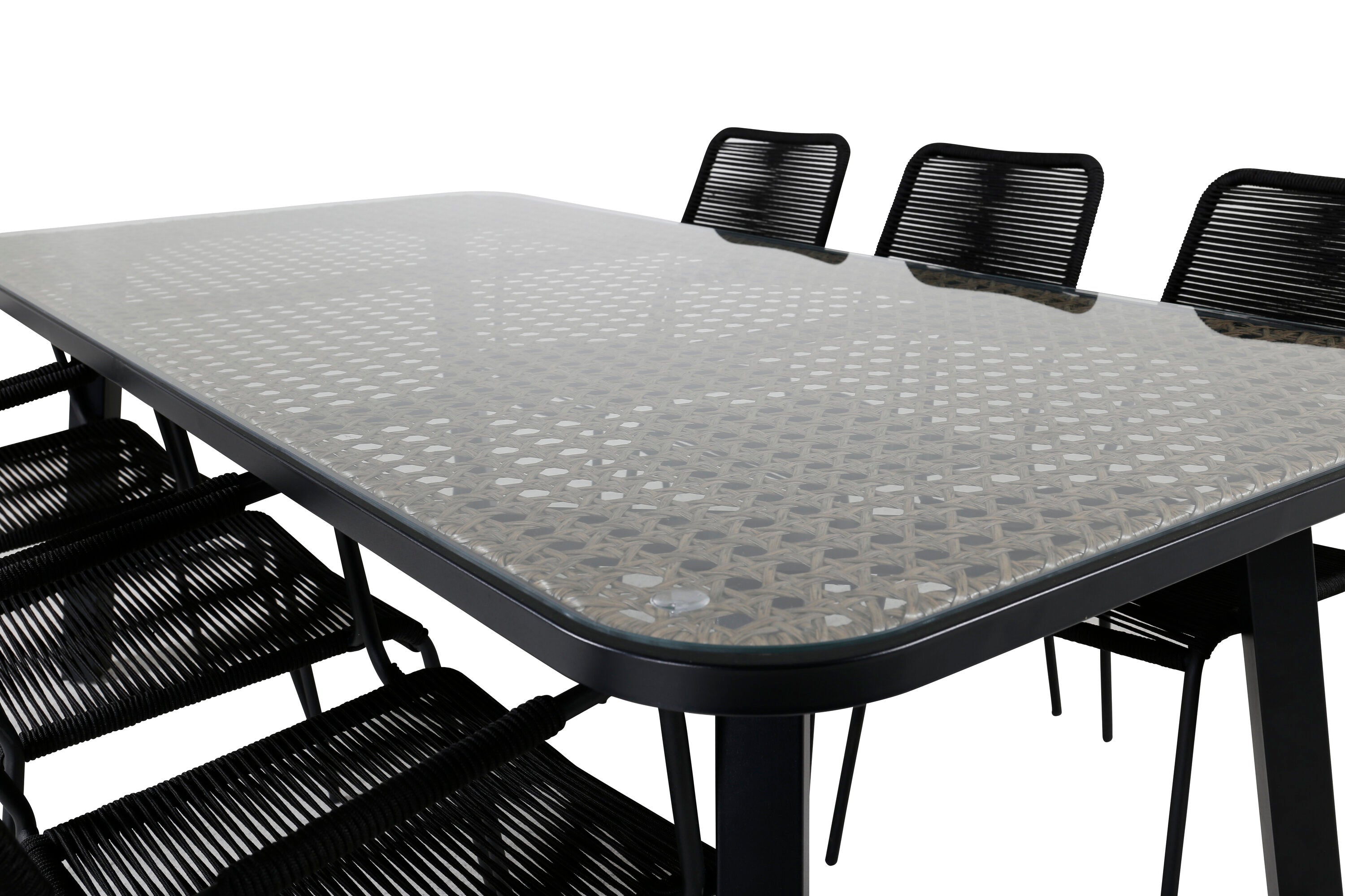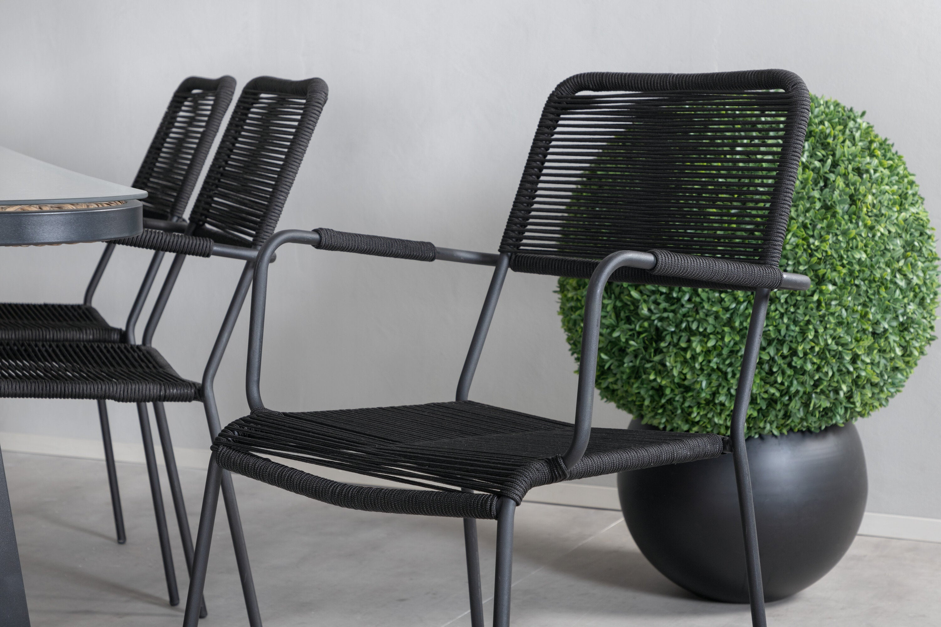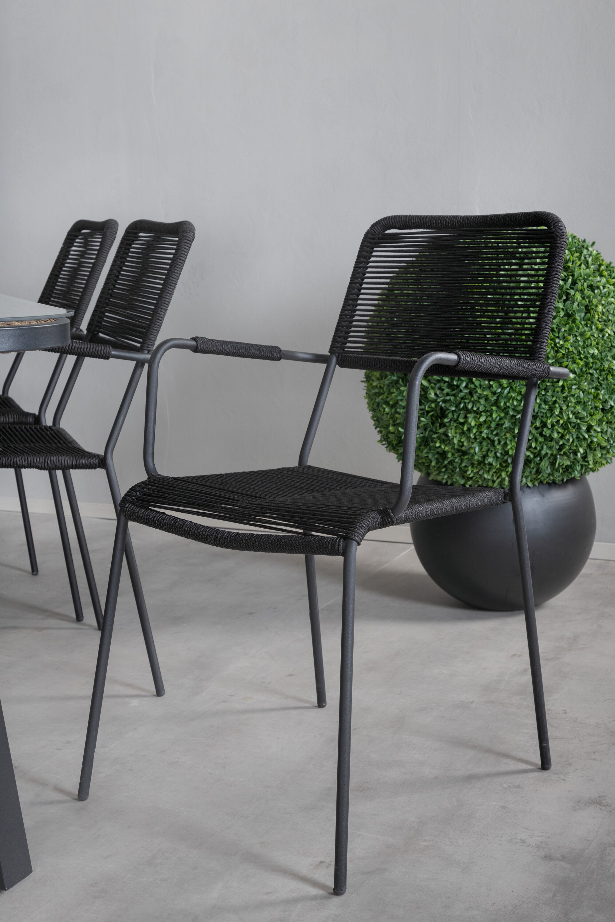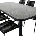 Jídelní stůl Paola - černá ocel / přírodní proutí - 200*100+Křeslo Lindos - černý Alu / černé lano_6
