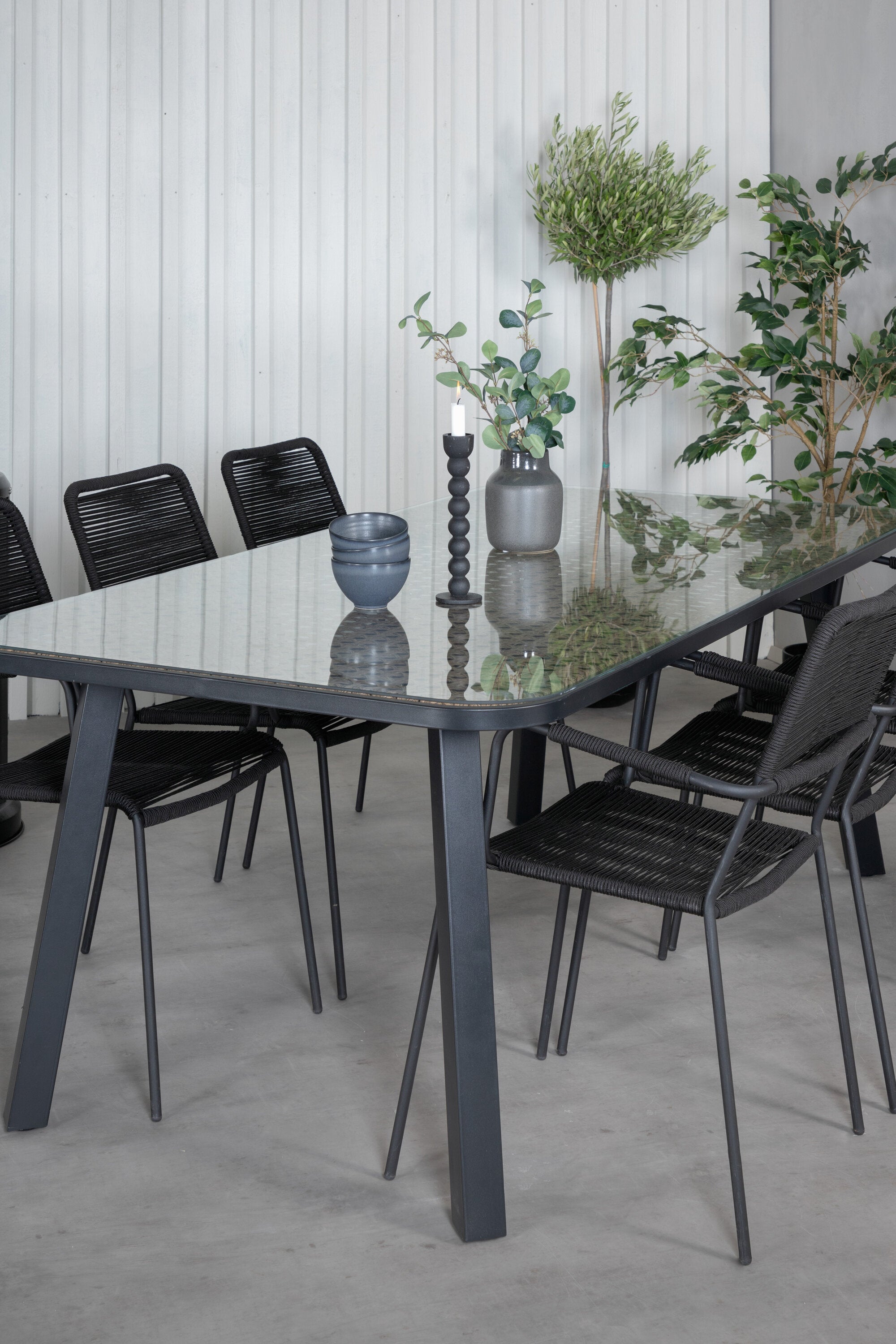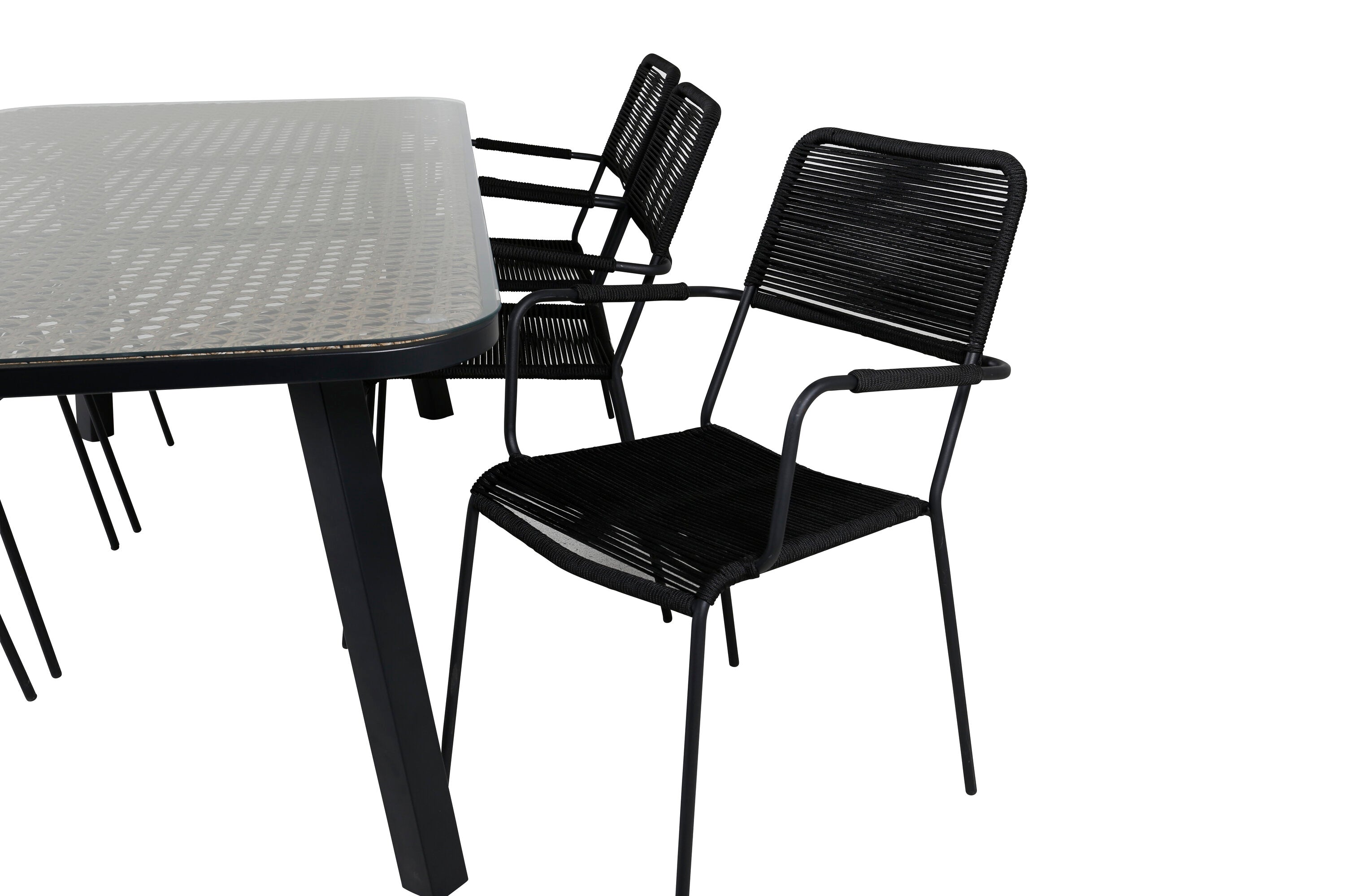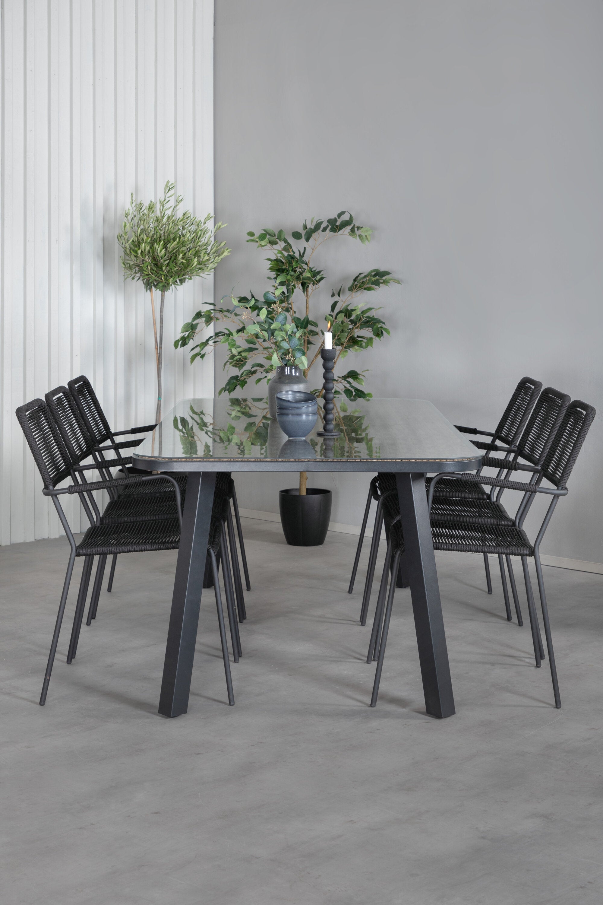 Jídelní stůl Paola - černá ocel / přírodní proutí - 200*100+Křeslo Lindos - černý Alu / černé lano_6
