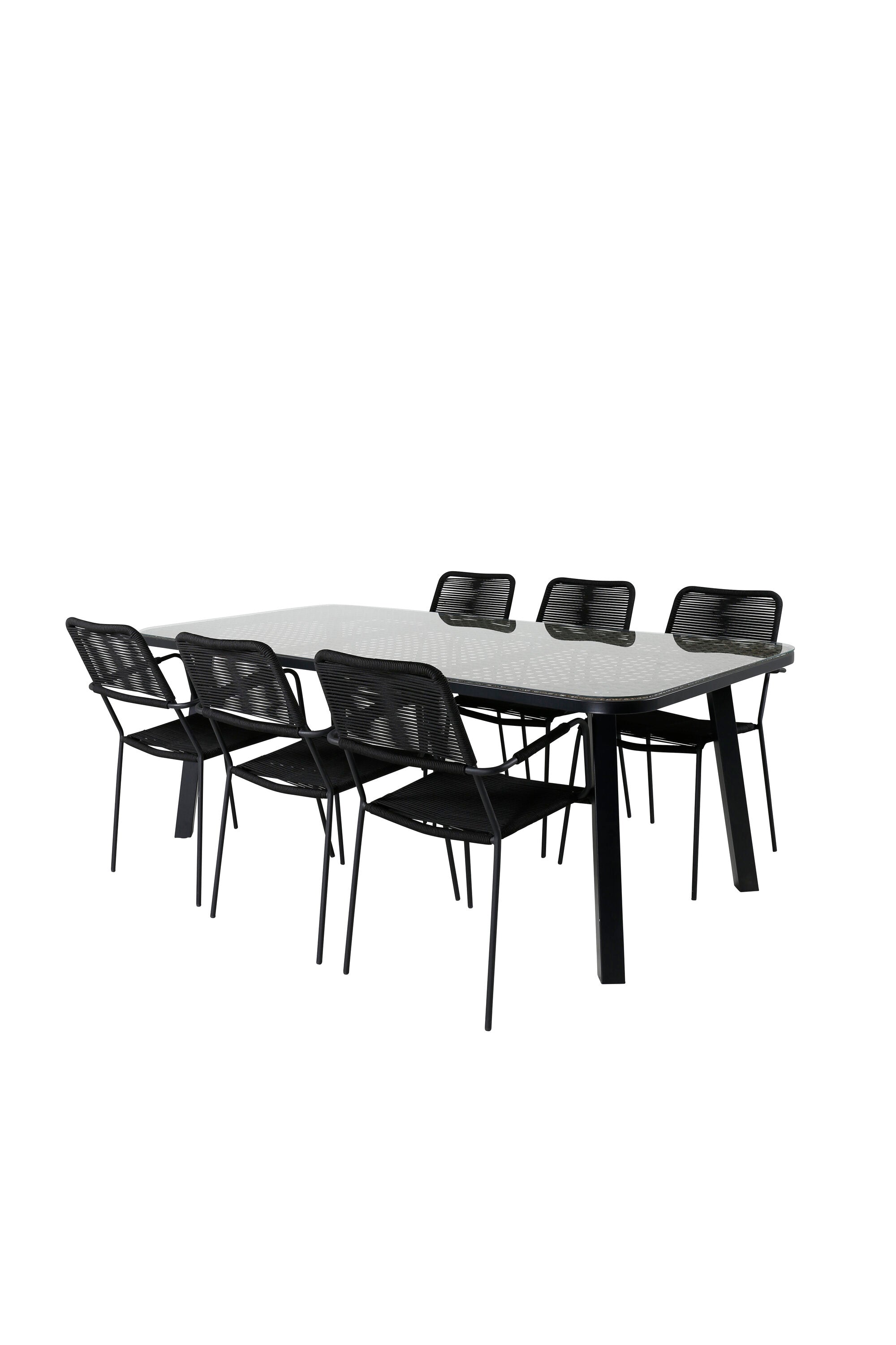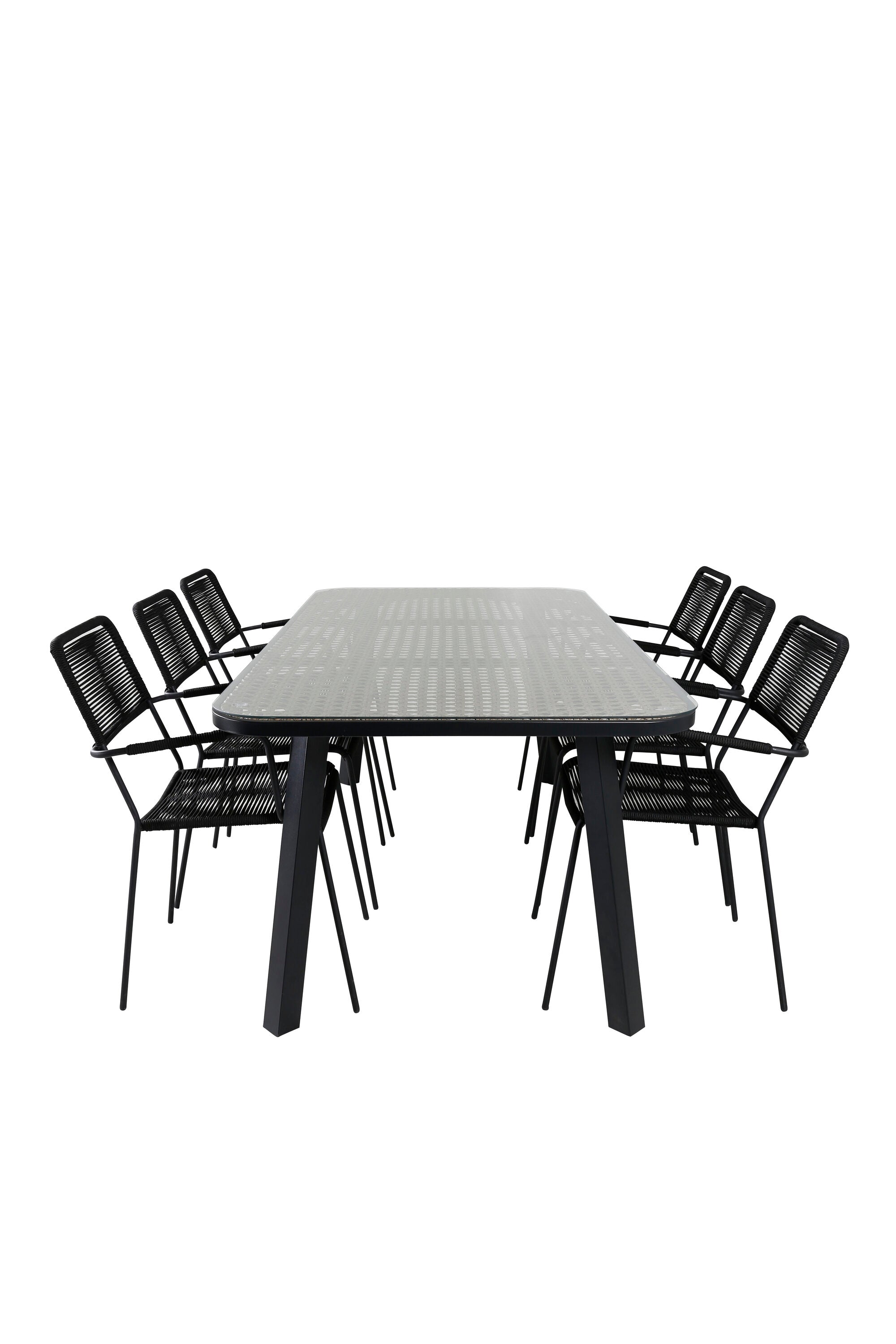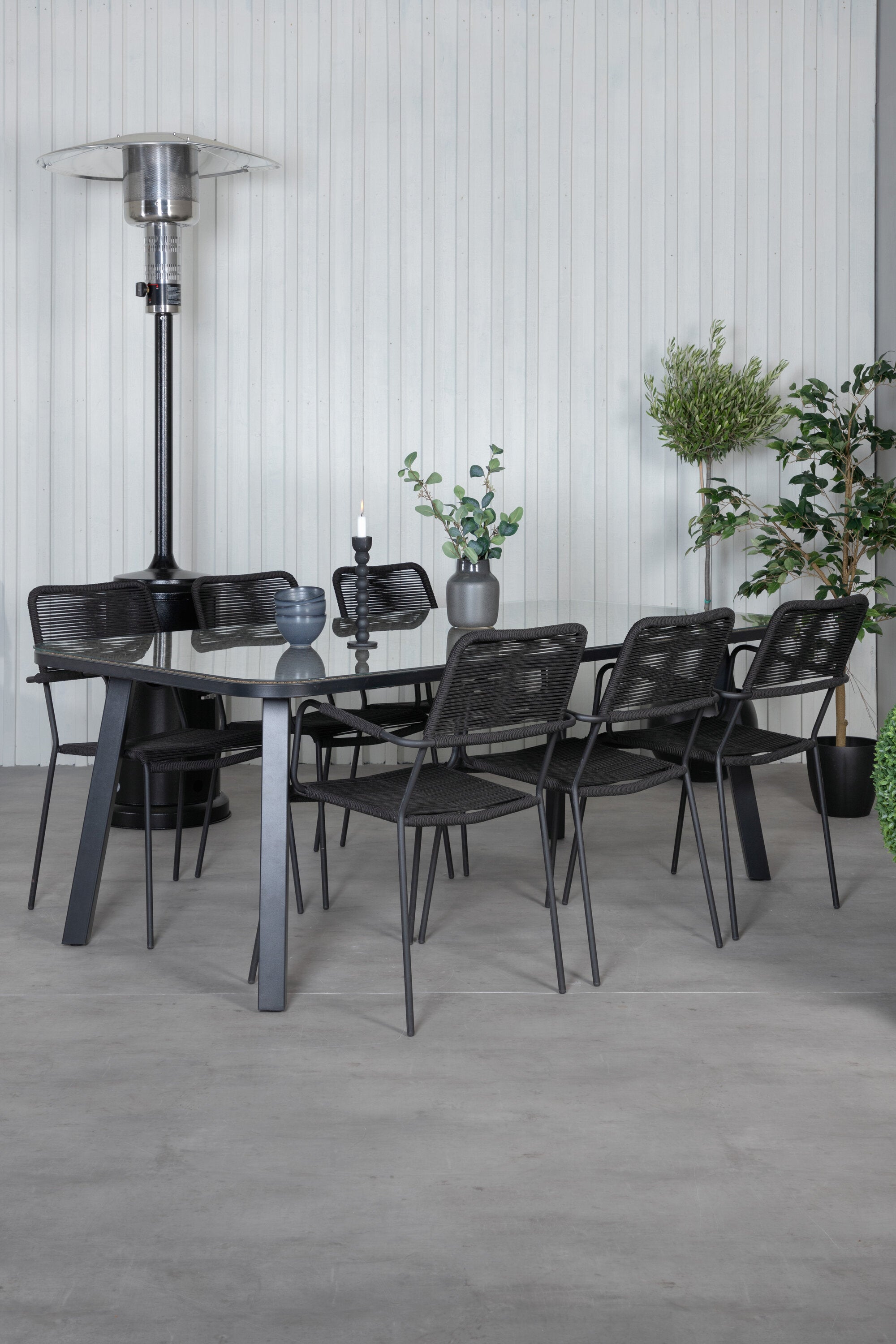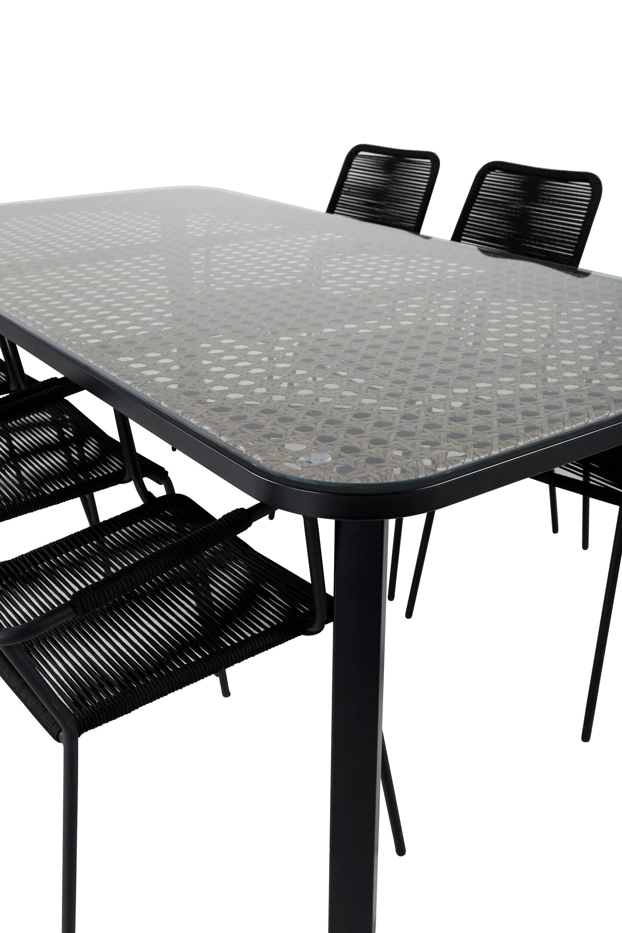 Jídelní stůl Paola - černá ocel / přírodní proutí - 200*100+Křeslo Lindos - černý Alu / černé lano_6