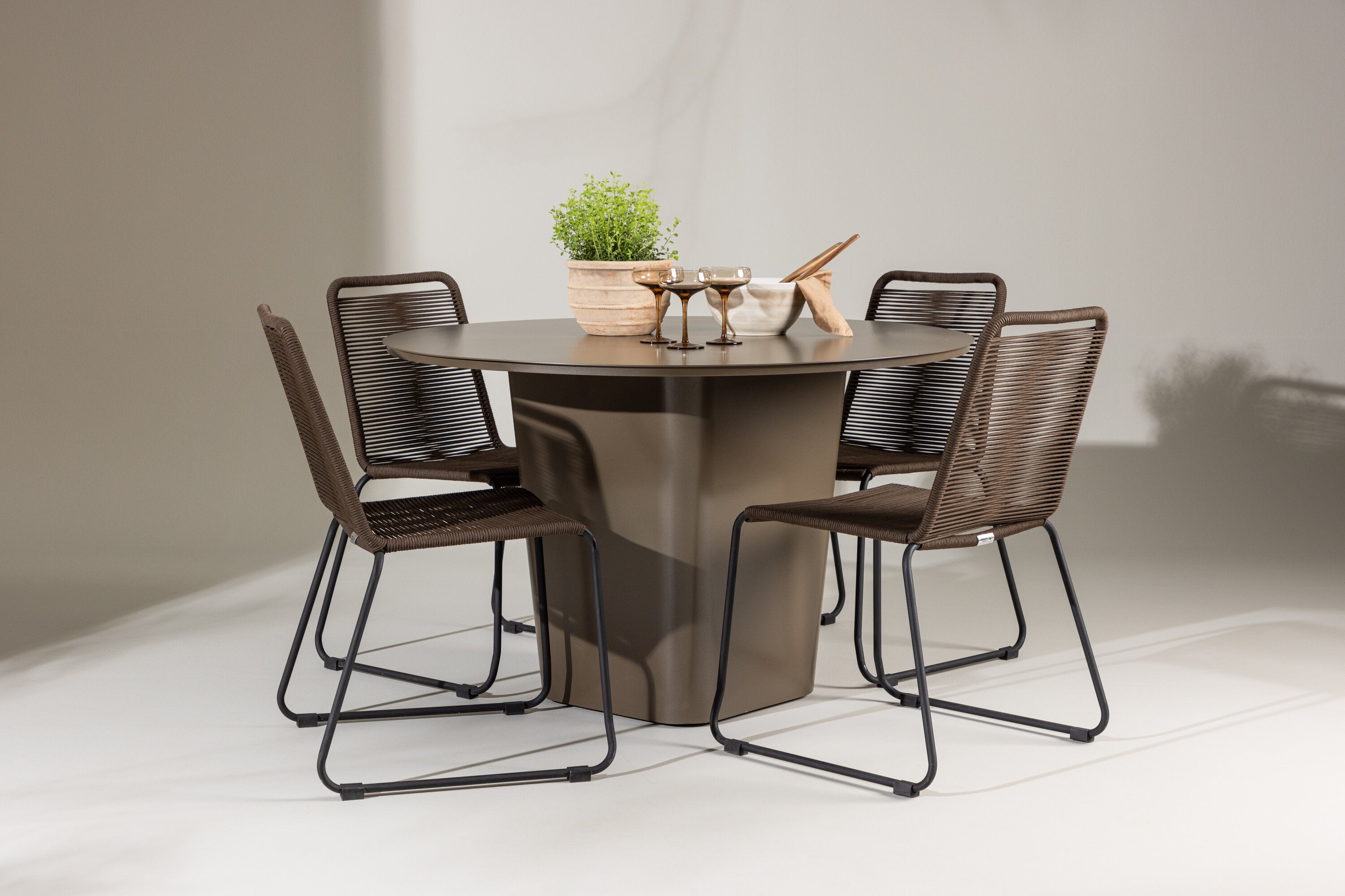 Stůl Santa Fe se svým působivým designem a praktickými funkcemi slouží jako středobod tohoto jídelního setu. Vyrobeno z hnědého hliníkového materiálu, kombinuje odolnost s lehkou konstrukcí a snadnou údržbou. S průměrem 120 cm nabízí dostatek prostoru pro rodinnou večeři nebo pohodové posezení s přáteli venku.