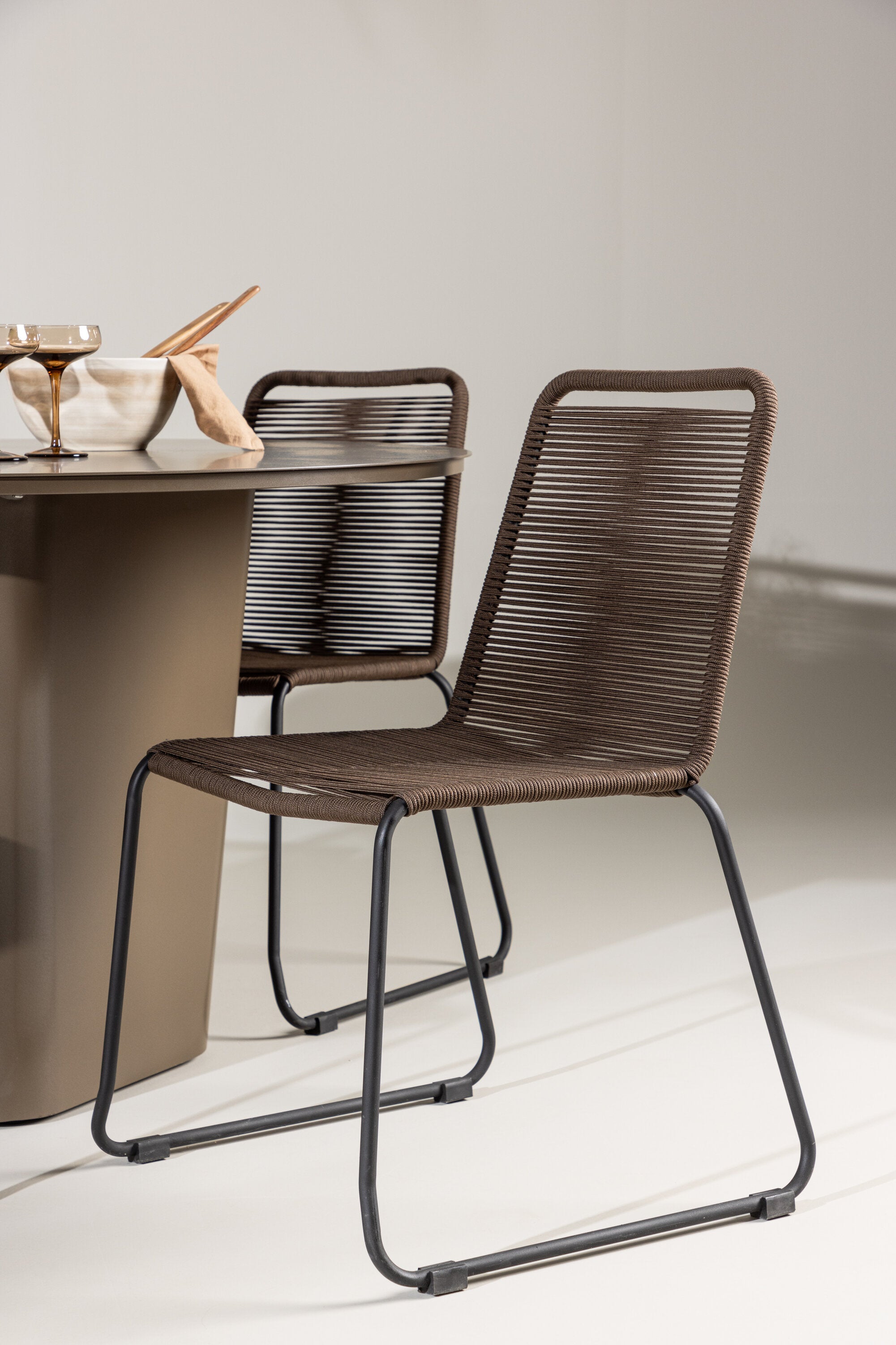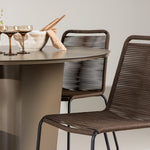 Židle Lindos nabízejí harmonické spojení pohodlí a estetiky. Jejich sedadla jsou vyrobena z robustního hnědého polypropylenového materiálu, který poskytuje přirozený, zemitý pocit. Černé ocelové nohy poskytují pevnou základnu a zároveň přispívají k modernímu minimalistickému stylu.