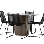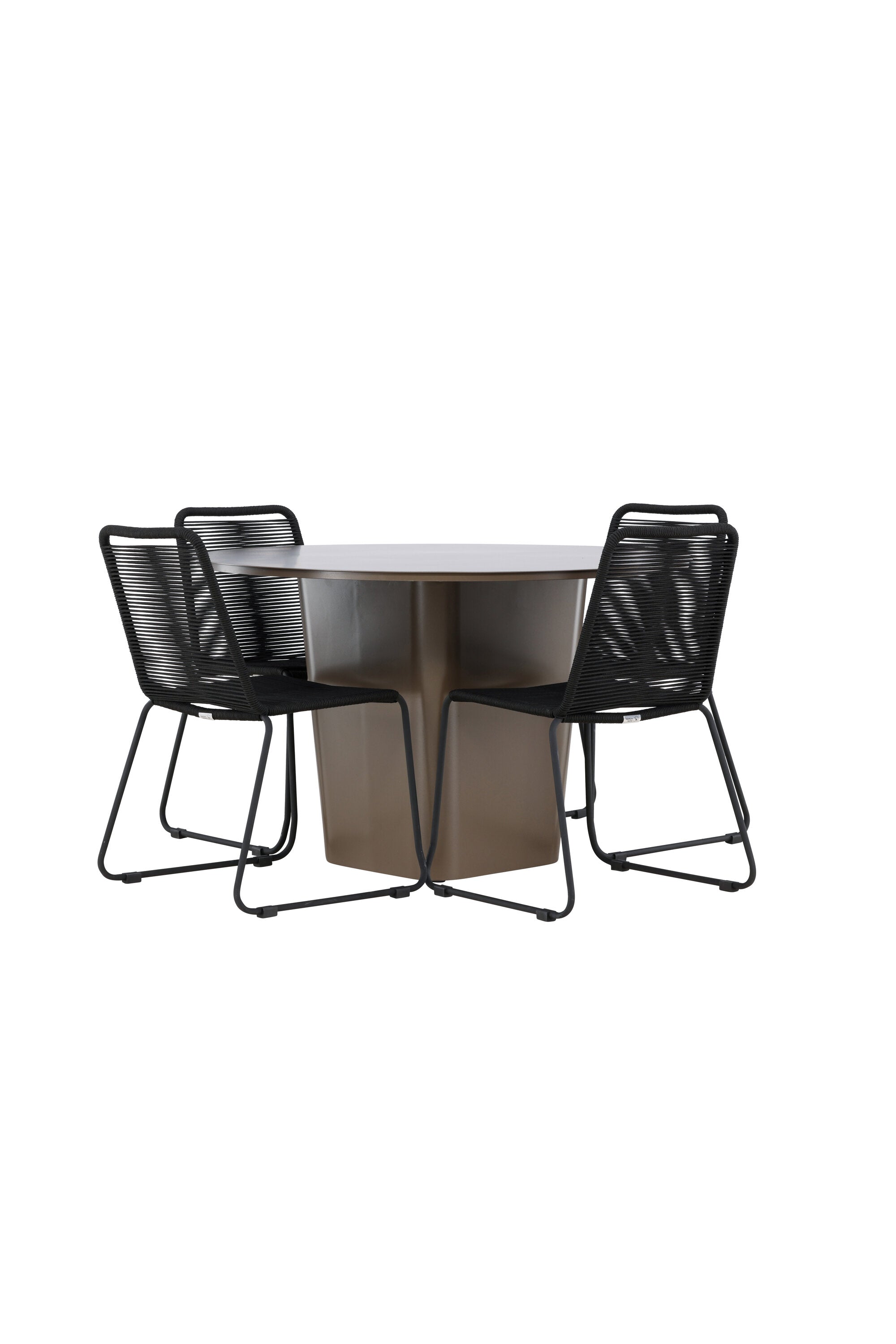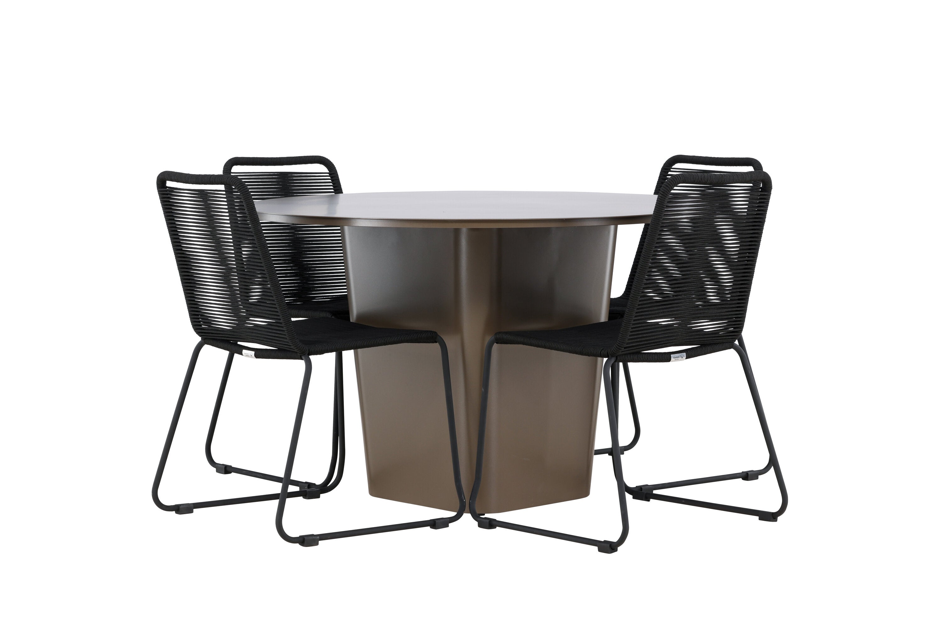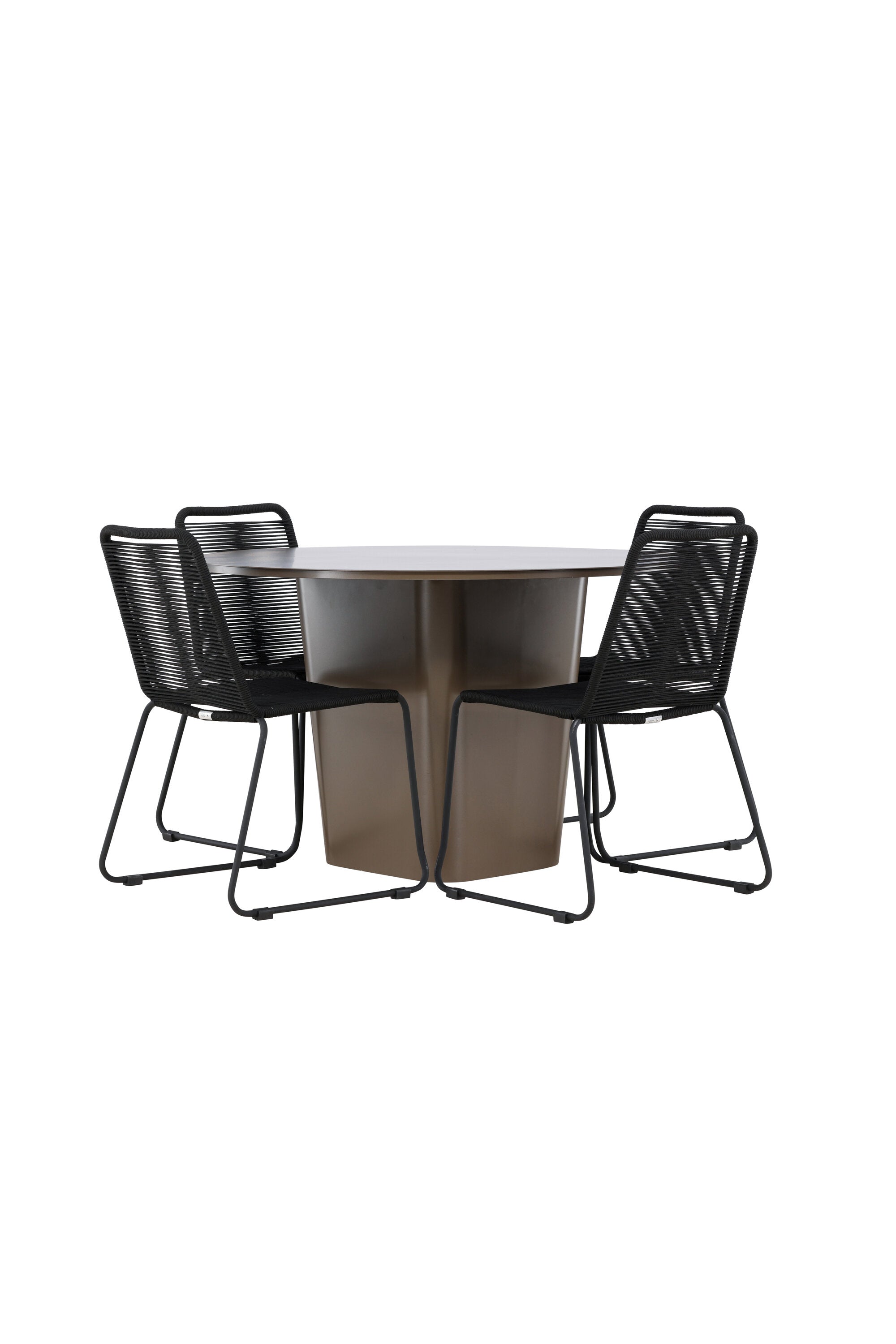 Židle Lindos jsou perfektním doplňkem ke stolu Santa. Černá barva židlí je vyrobena z hliníku pro snadnou údržbu a dlouhou životnost a poskytuje moderní kontrast k hnědému tónu stolu.