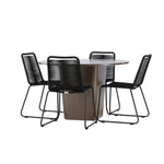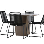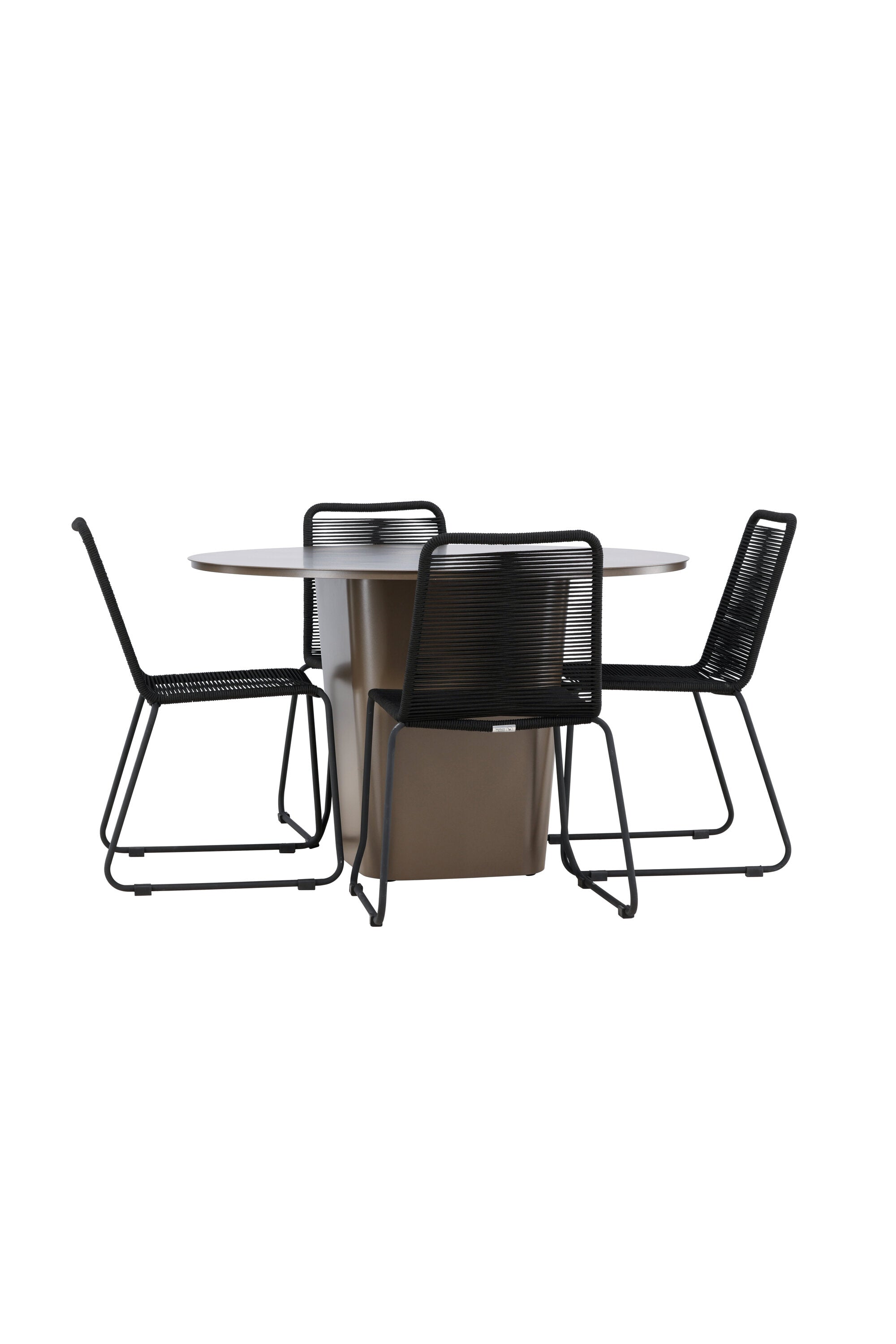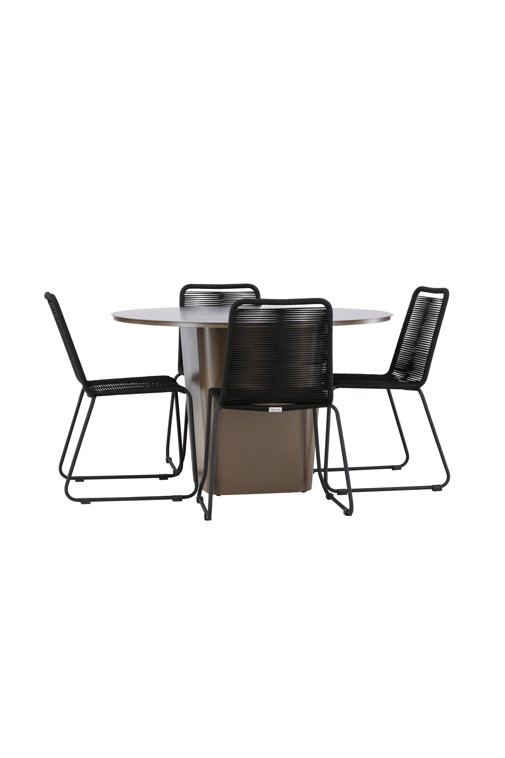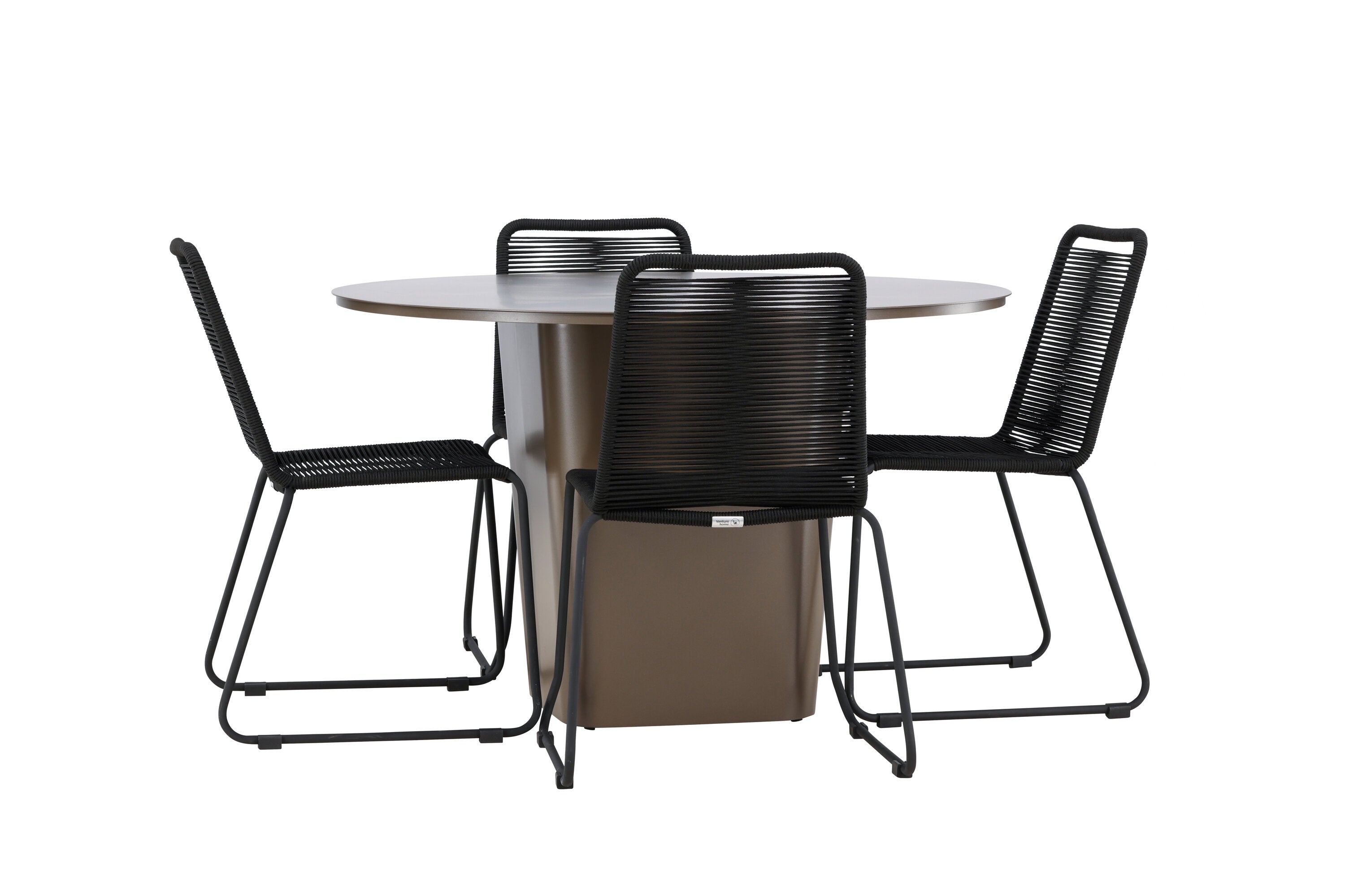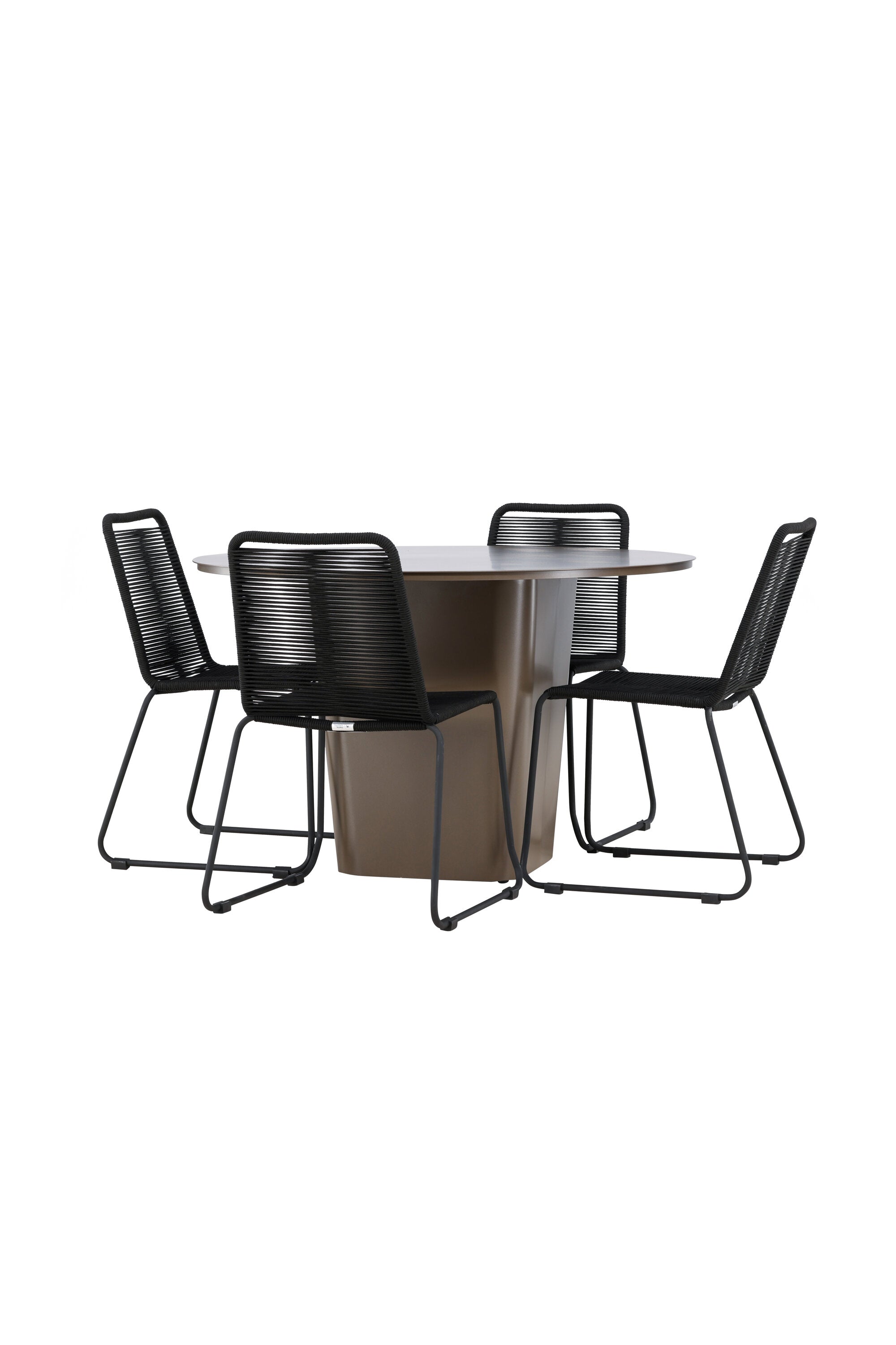 Tato jídelní souprava se čtyřmi židlemi Lindos, které jsou součástí dodávky, nabízí pohodlné a stylové sezení pro malé i velké venkovní akce.