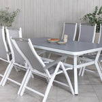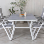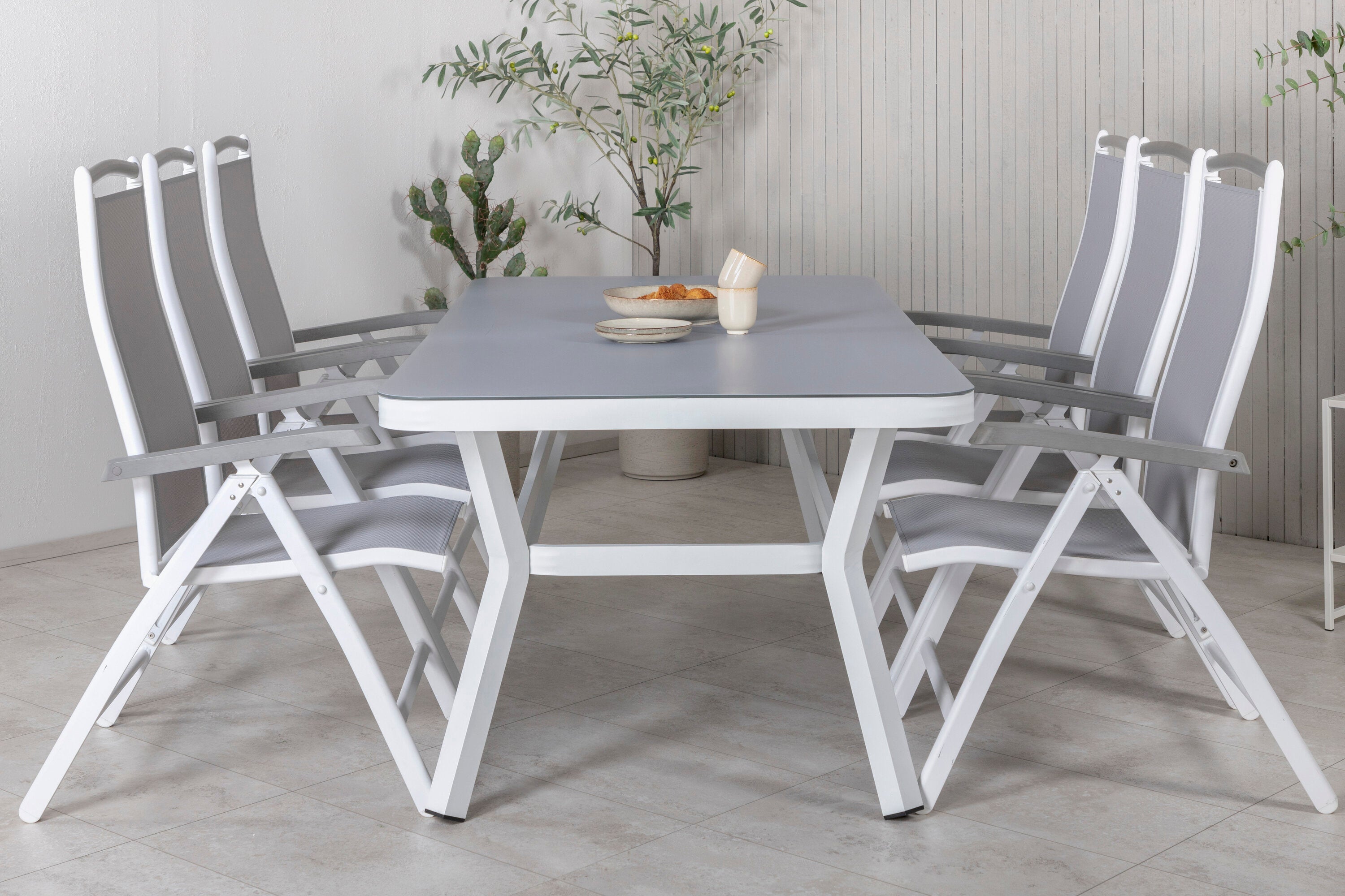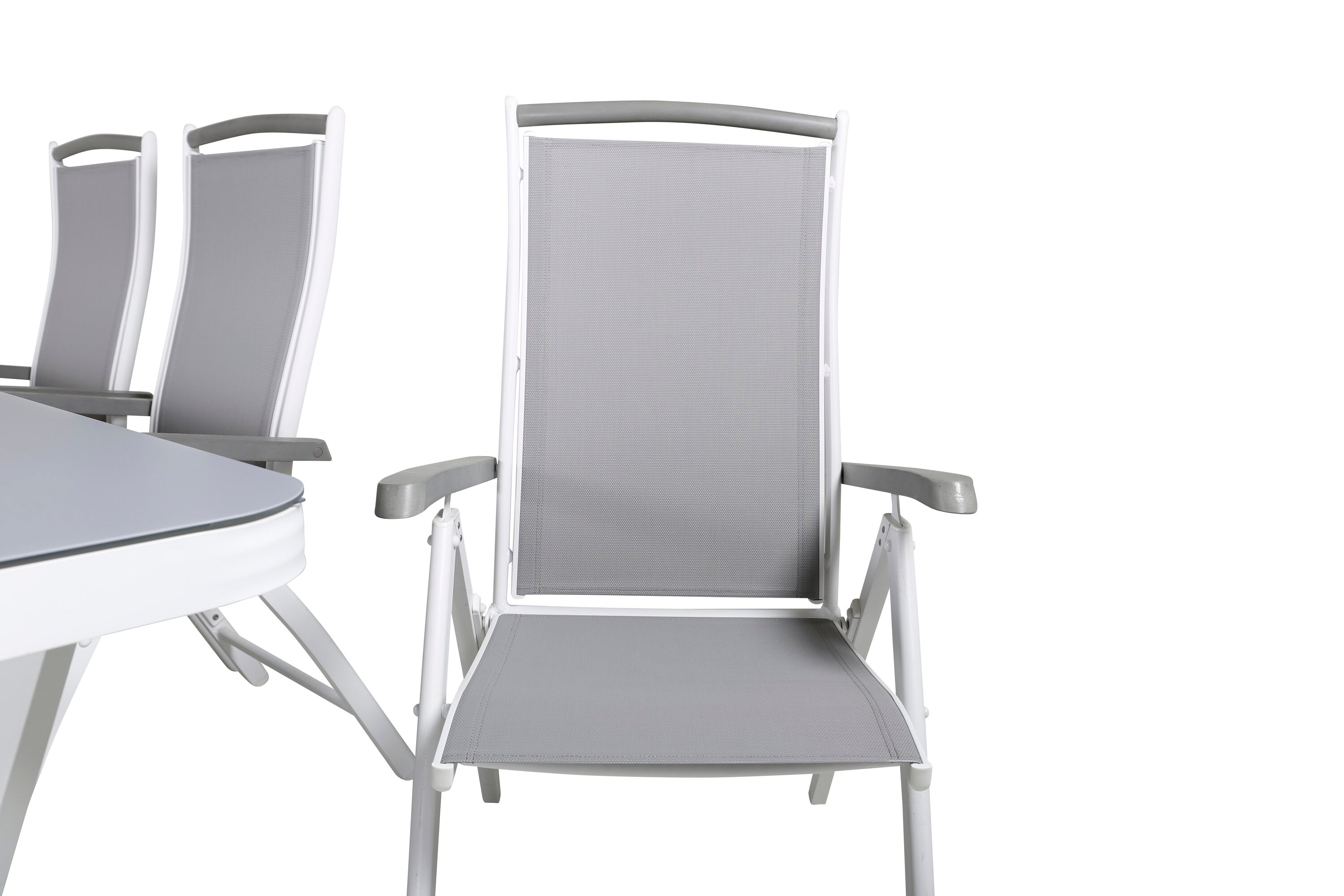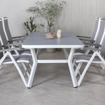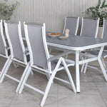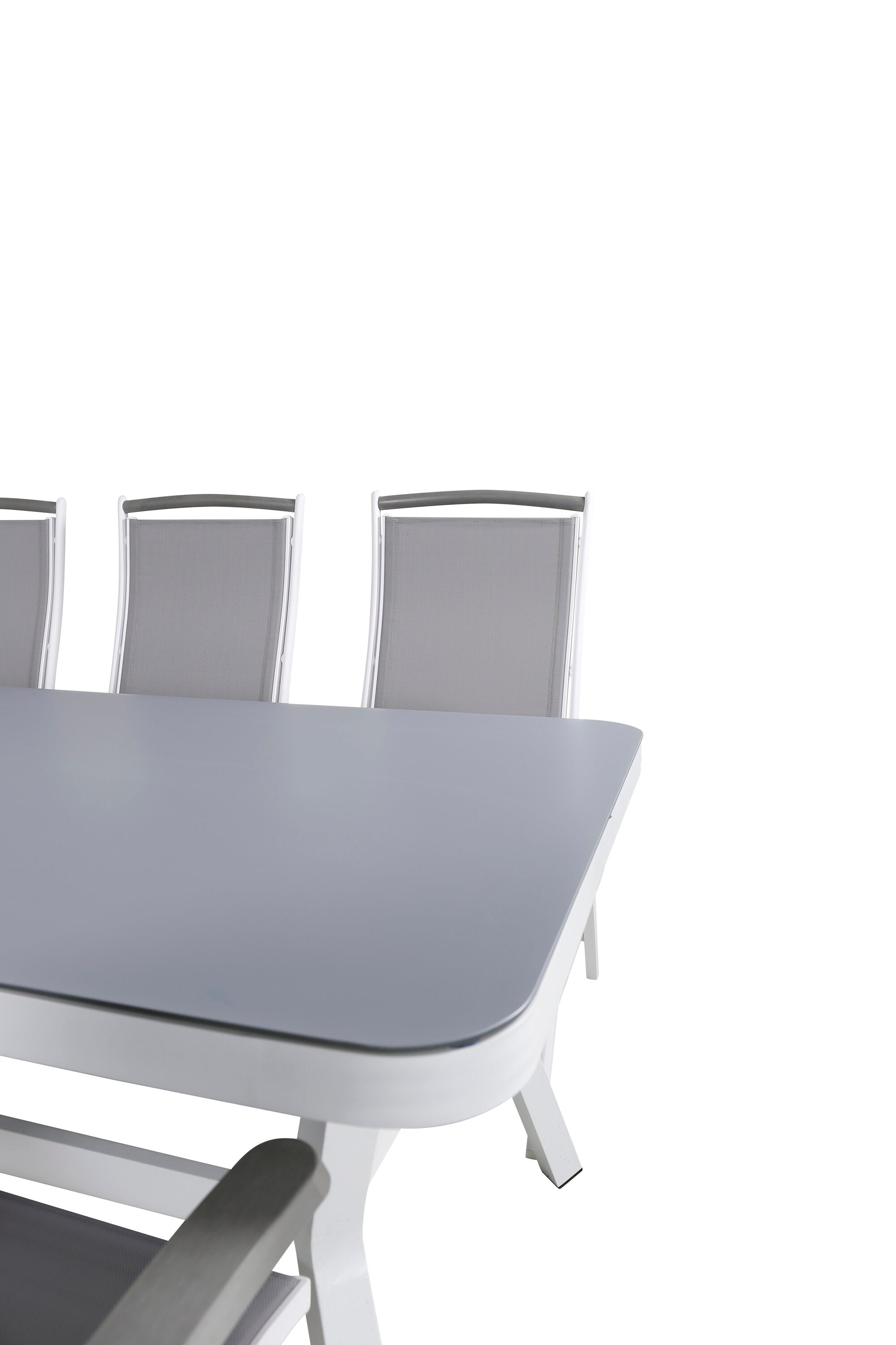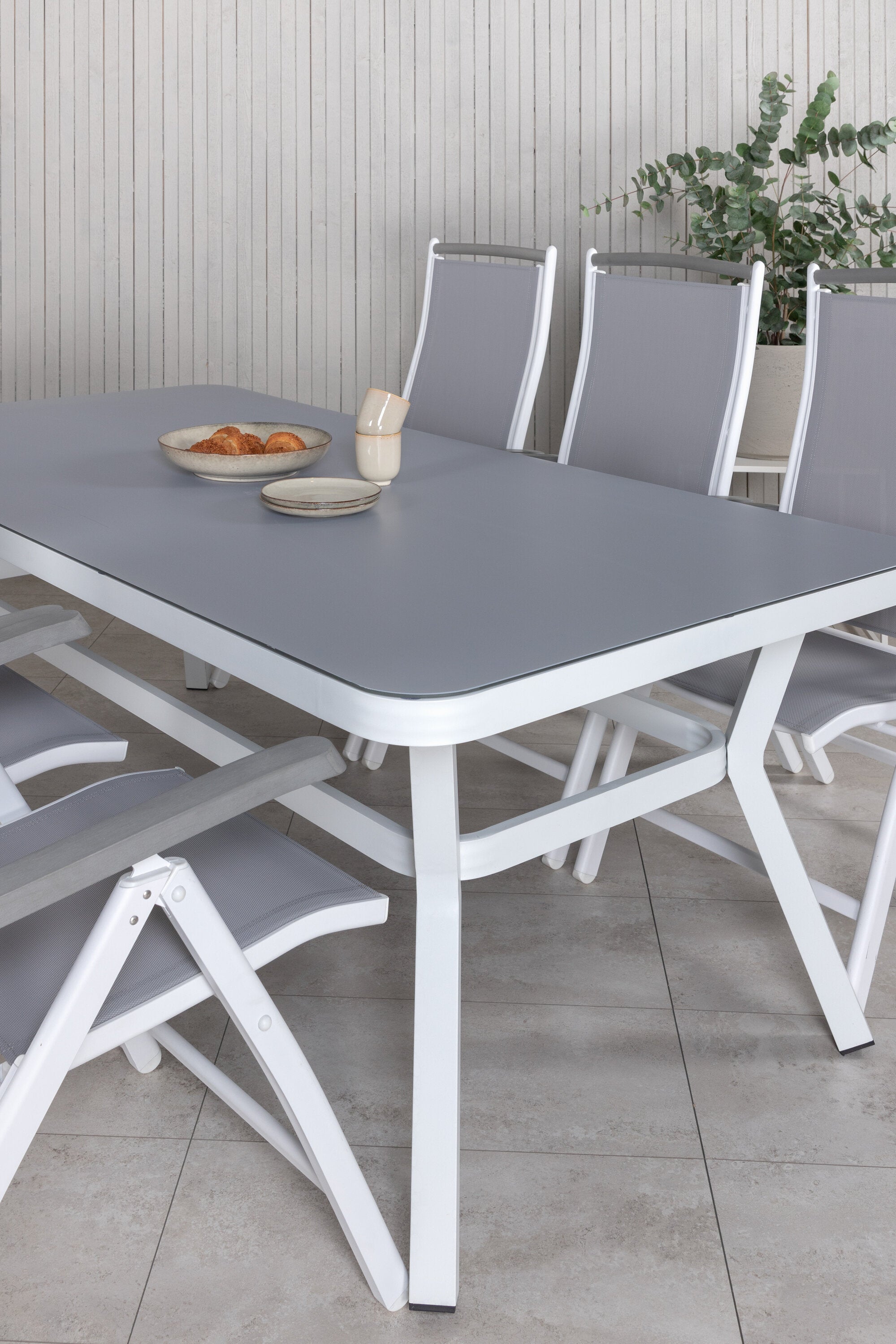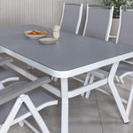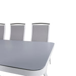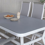 Jídelní stůl Virya - bílá Alu / šedé sklo - velký stůl + židle Albany 5:pos - bílá/šedá_6