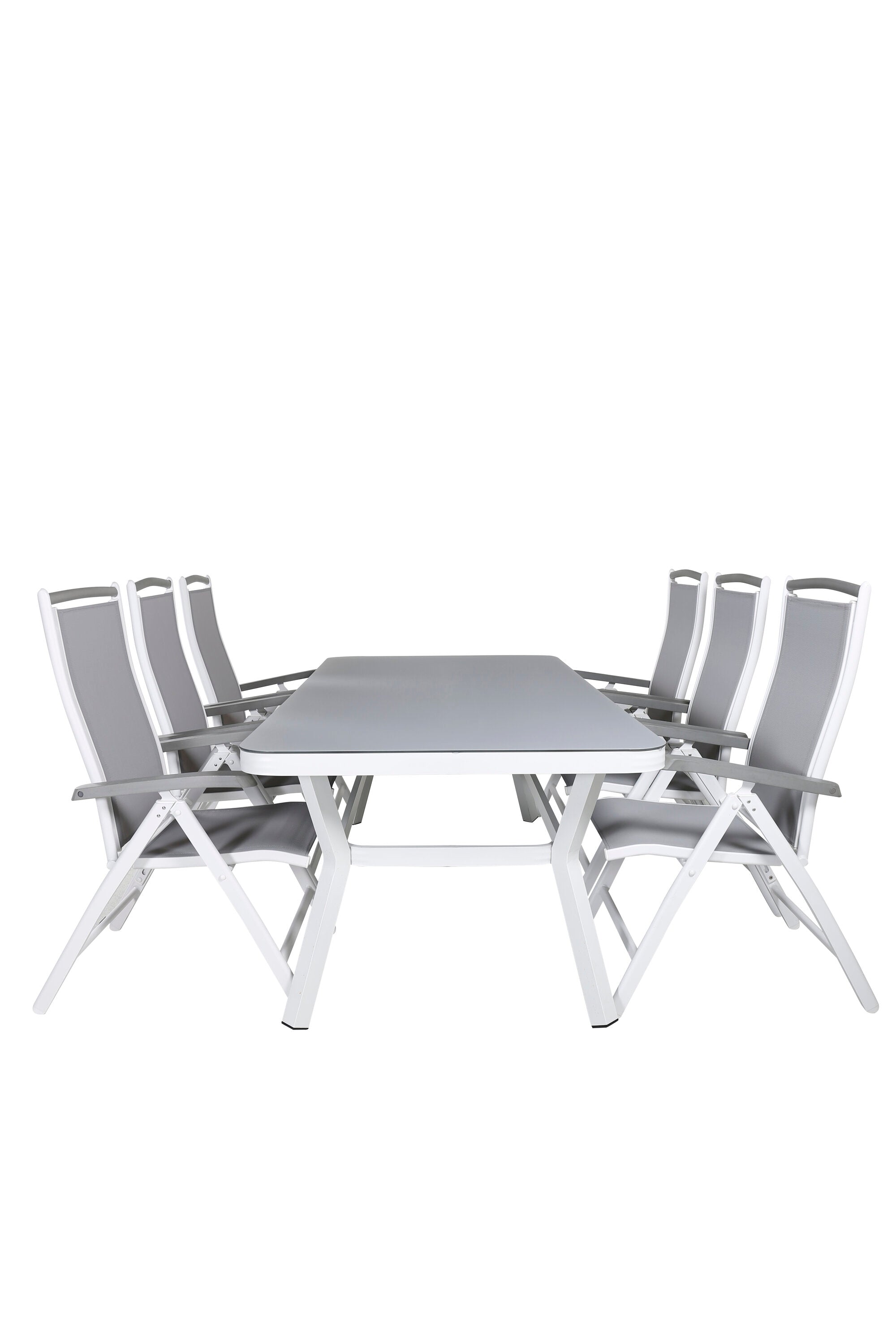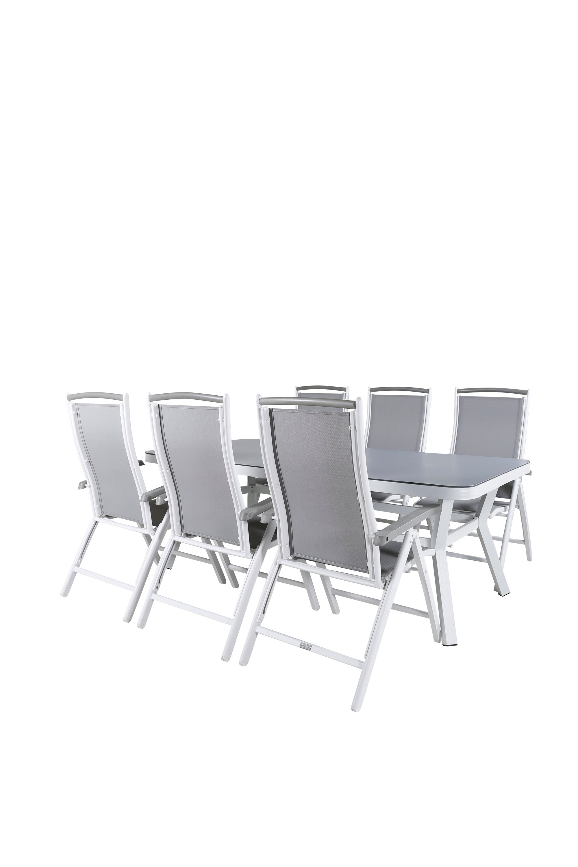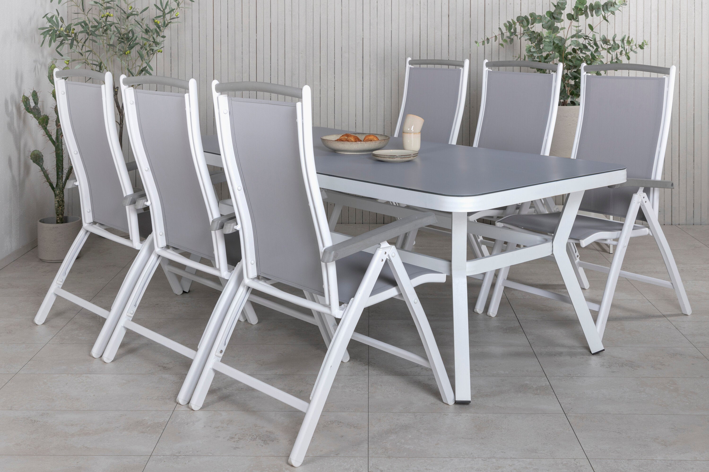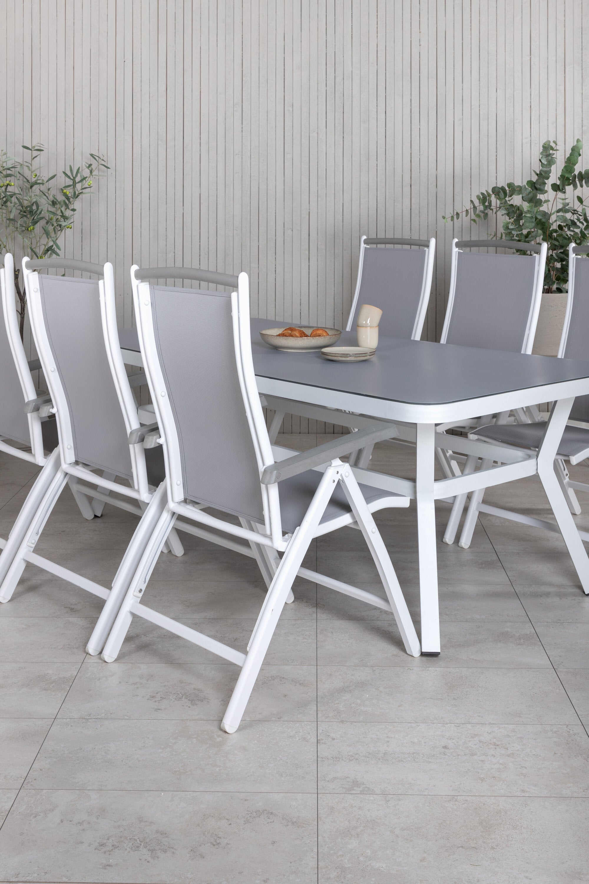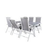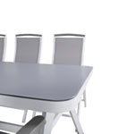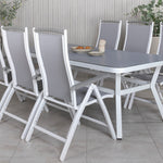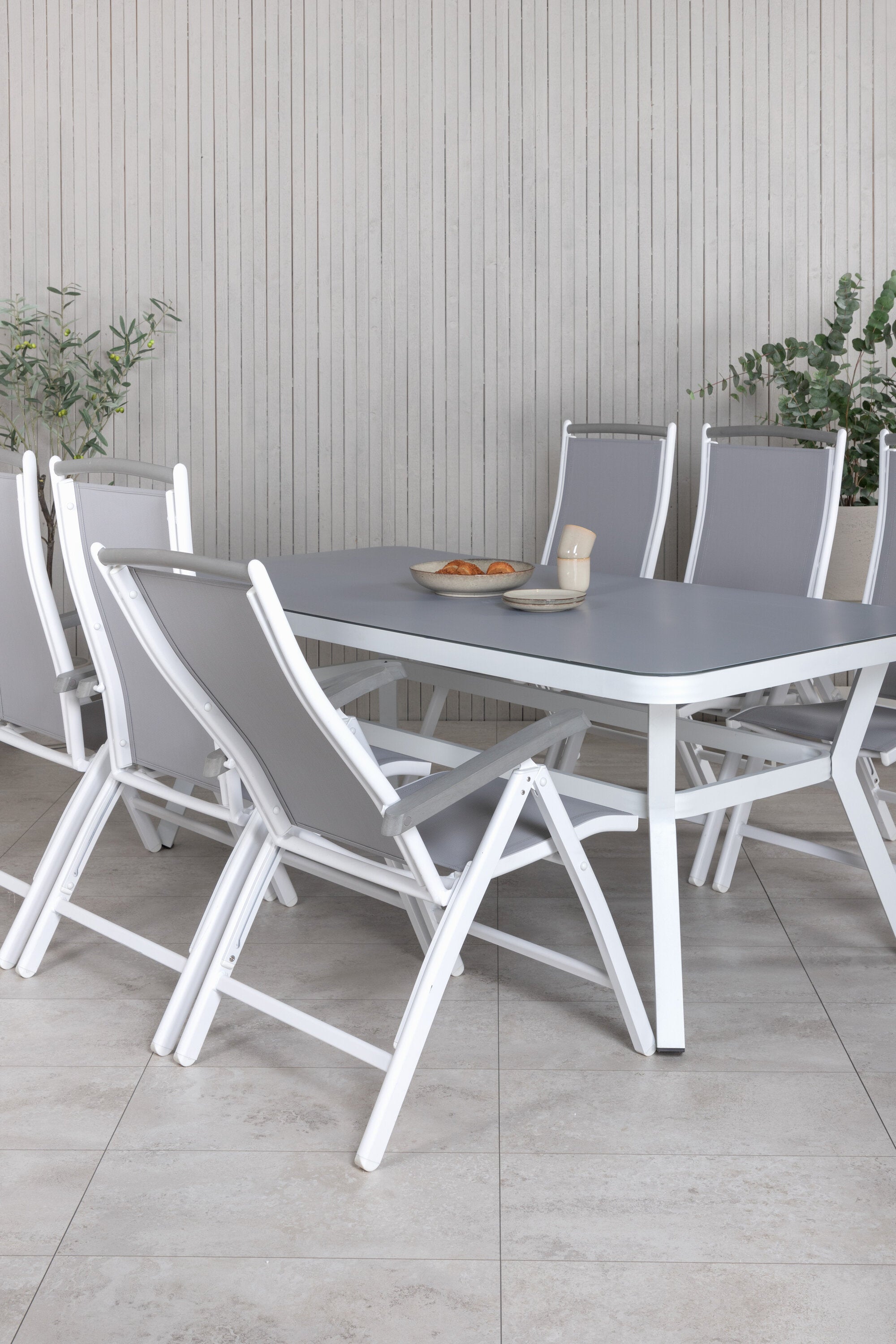 Jídelní stůl Virya - bílá Alu / šedé sklo - velký stůl + židle Albany 5:pos - bílá/šedá_6