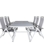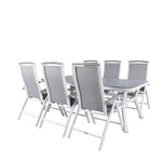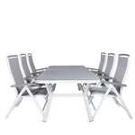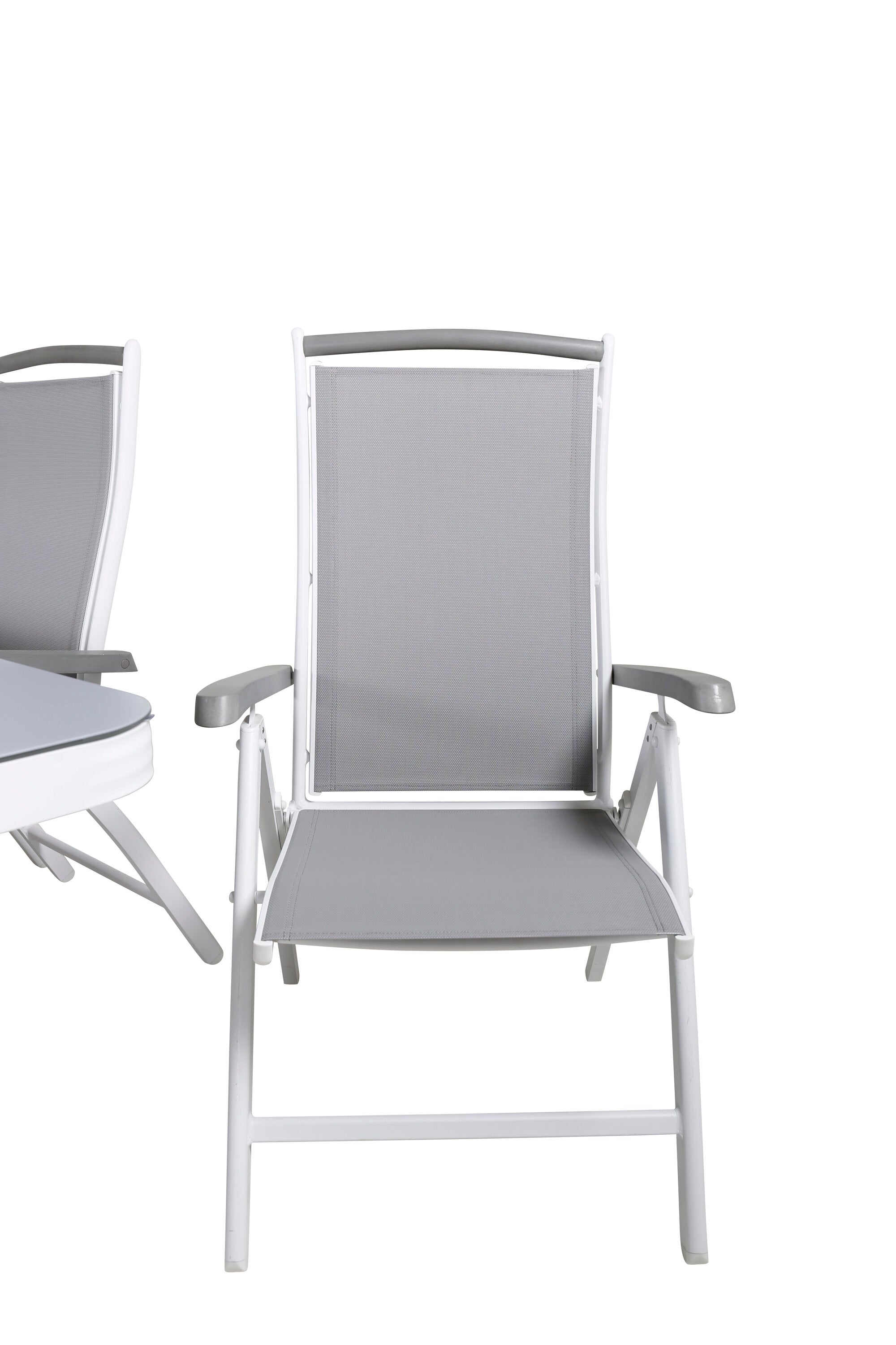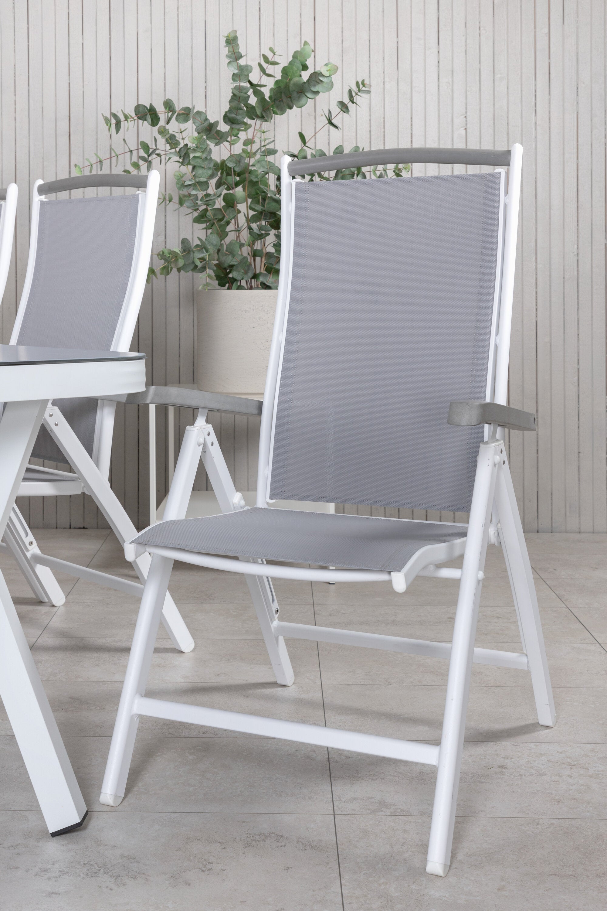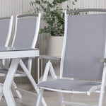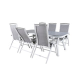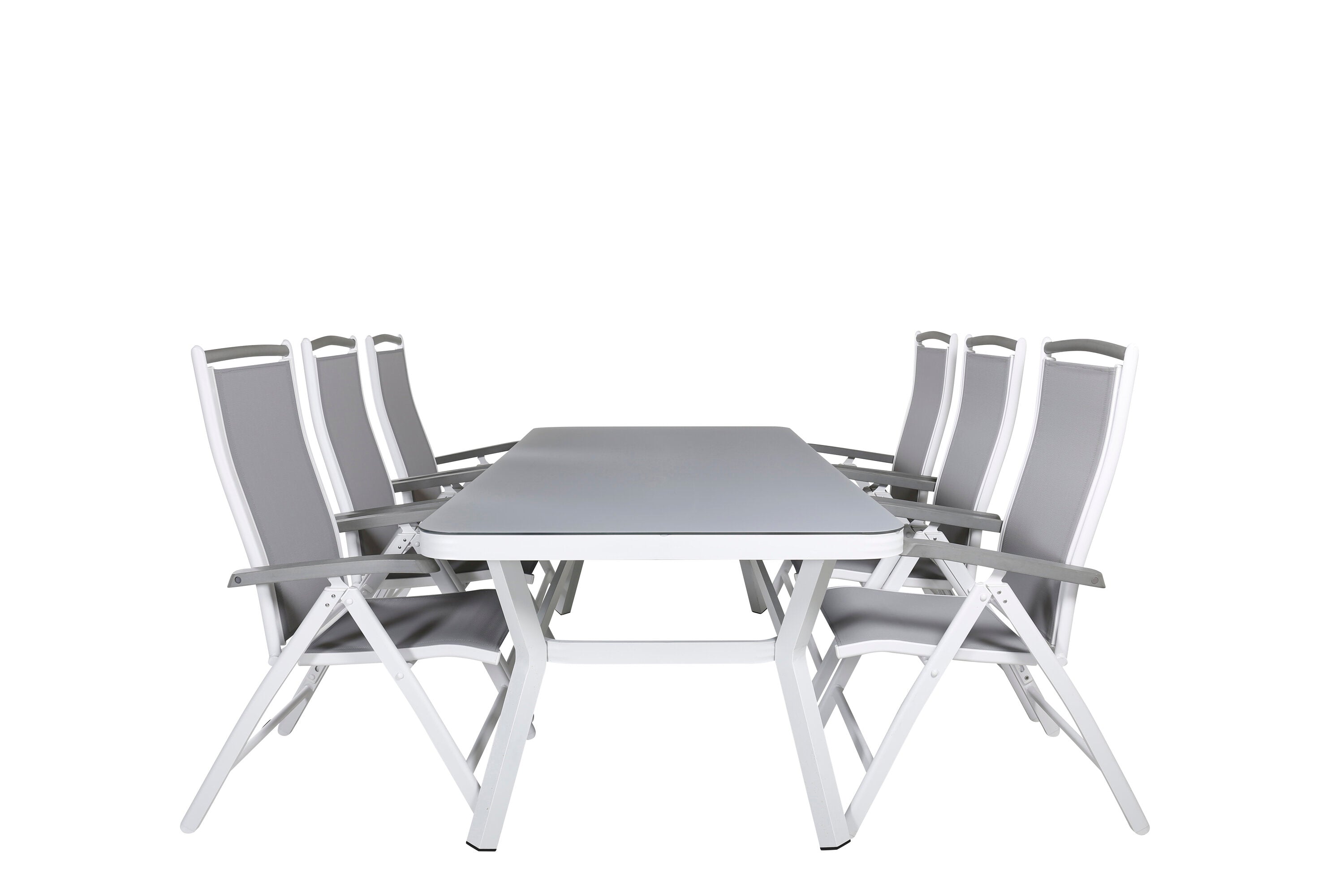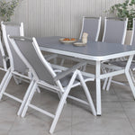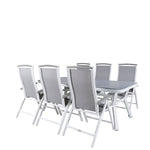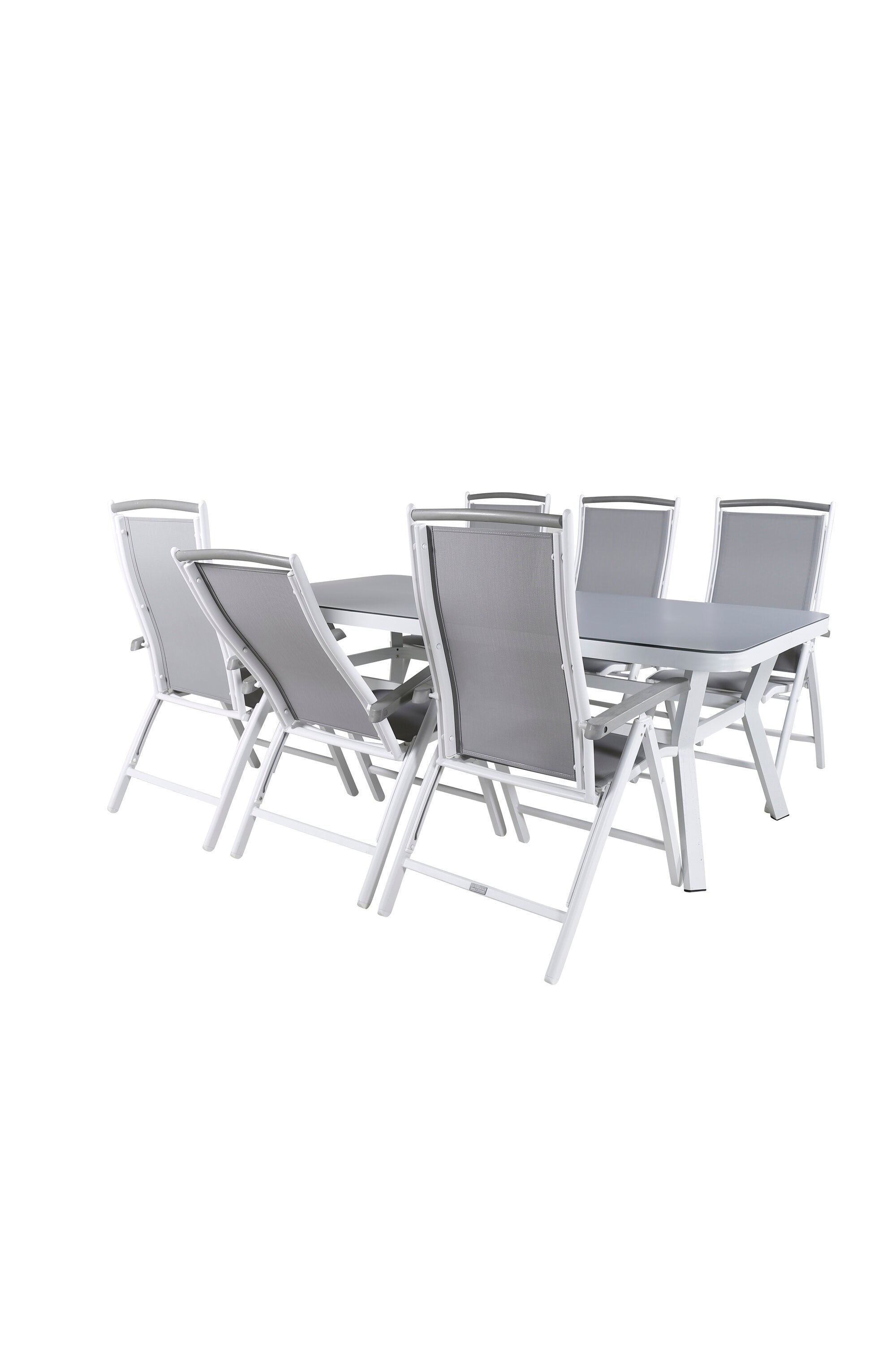 Jídelní stůl Virya - bílá Alu / šedé sklo - velký stůl + židle Albany 5:pos - bílá/šedá_6