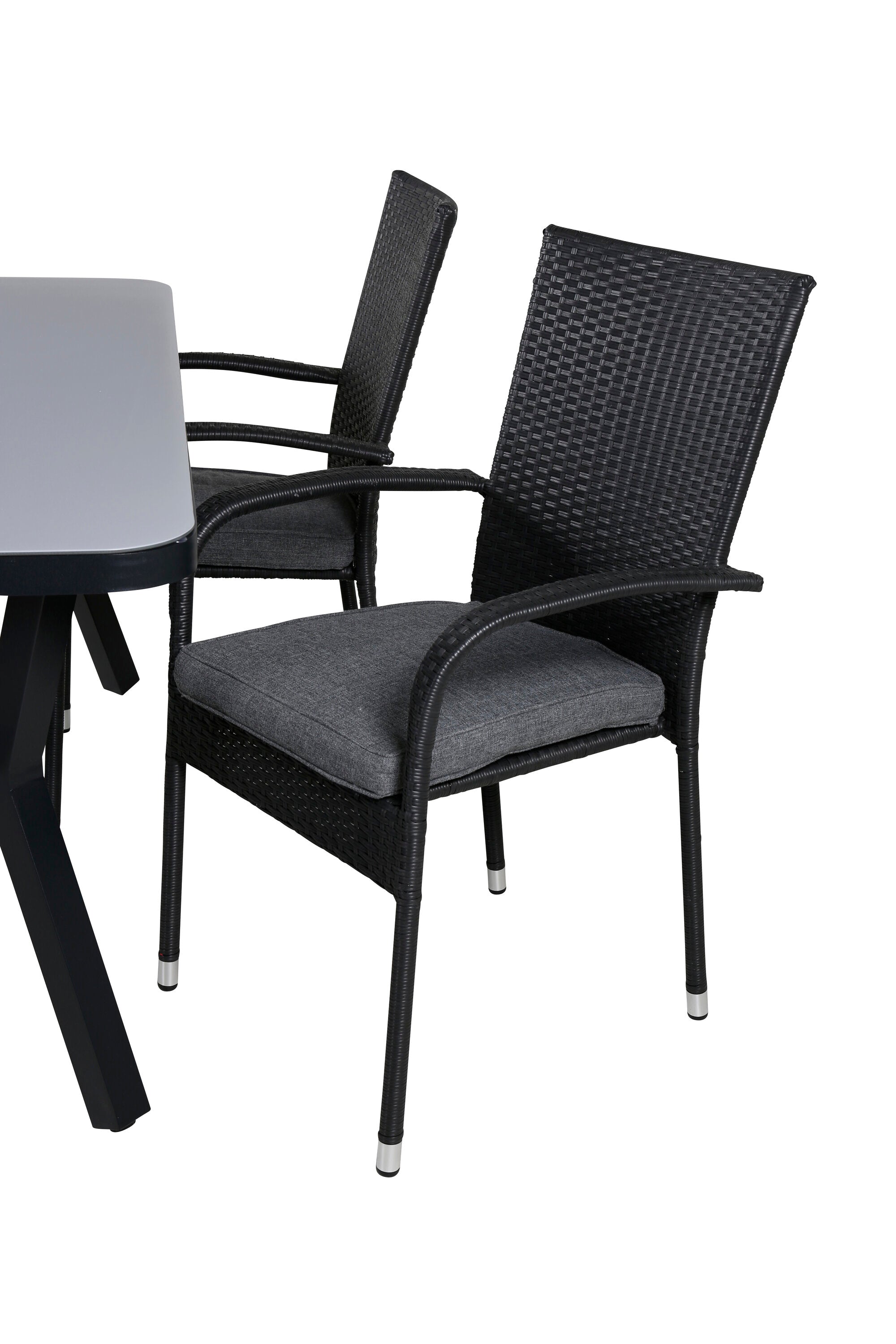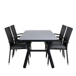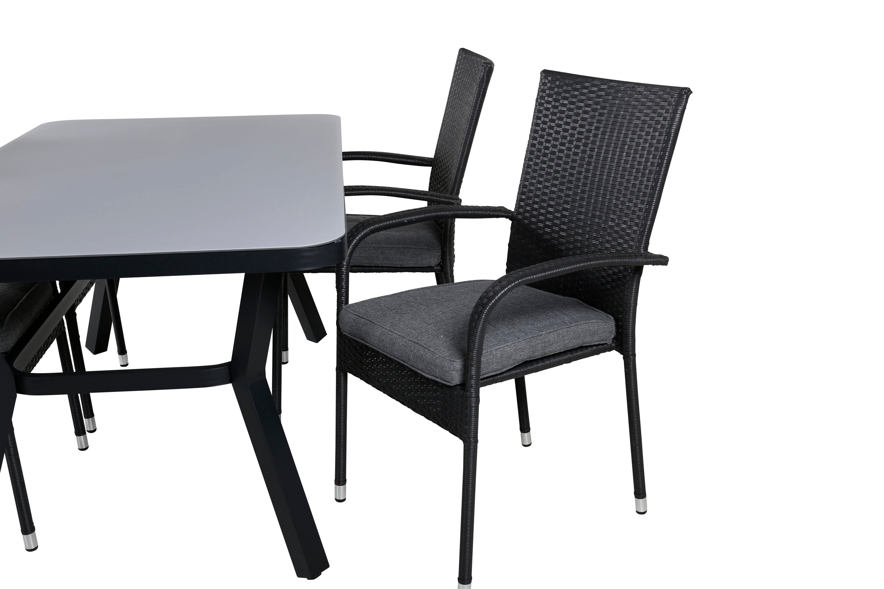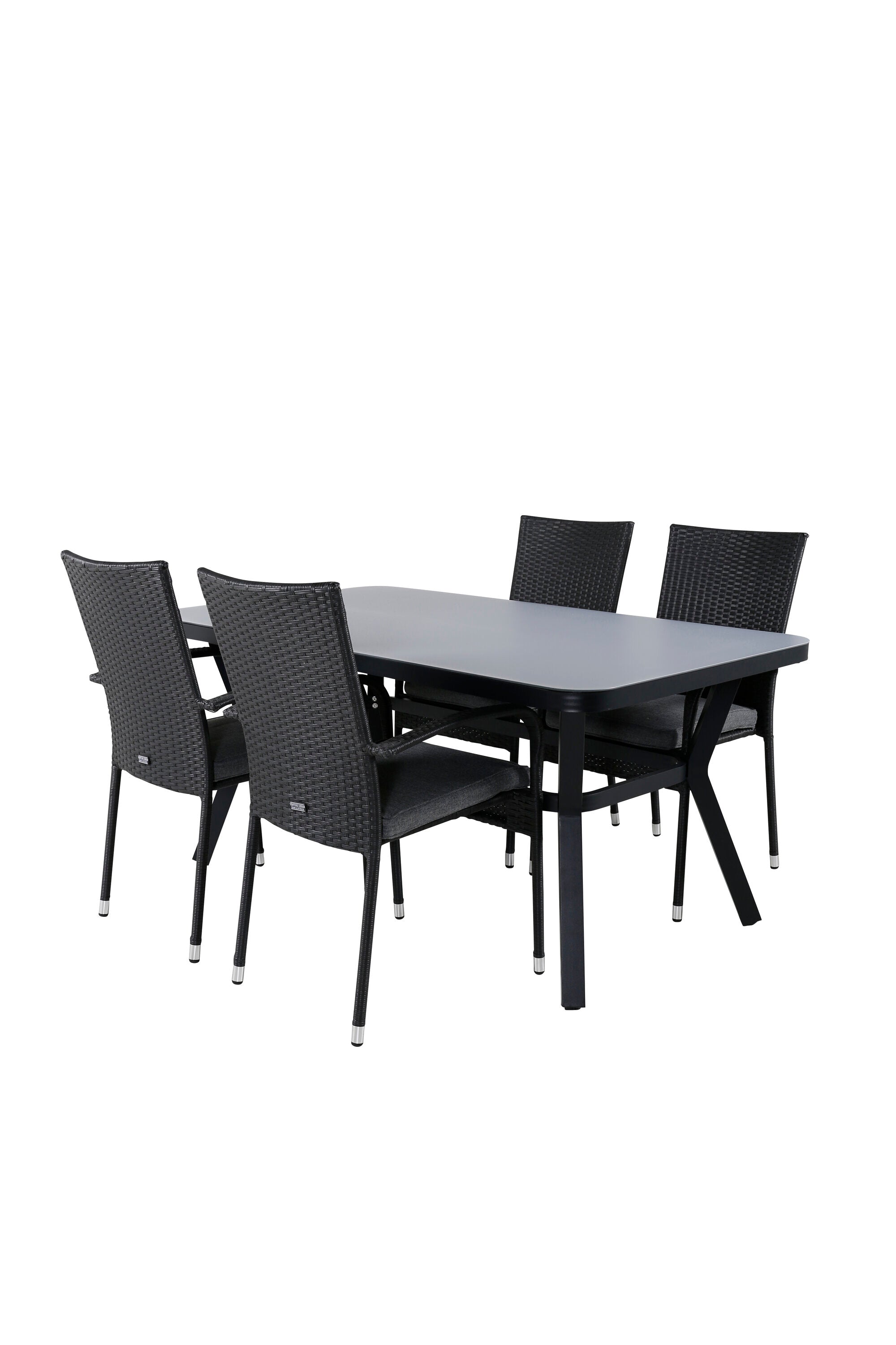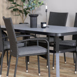 Klasická skupina jídel, která se hodí na většinu teras! Jídelní stůl Virya spolu s židlemi ze série Anna je jako stvořený pro ty, kteří chtějí na balkoně vytvořit útulný a moderní pocit.