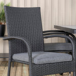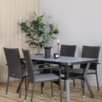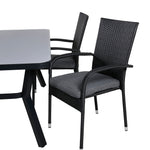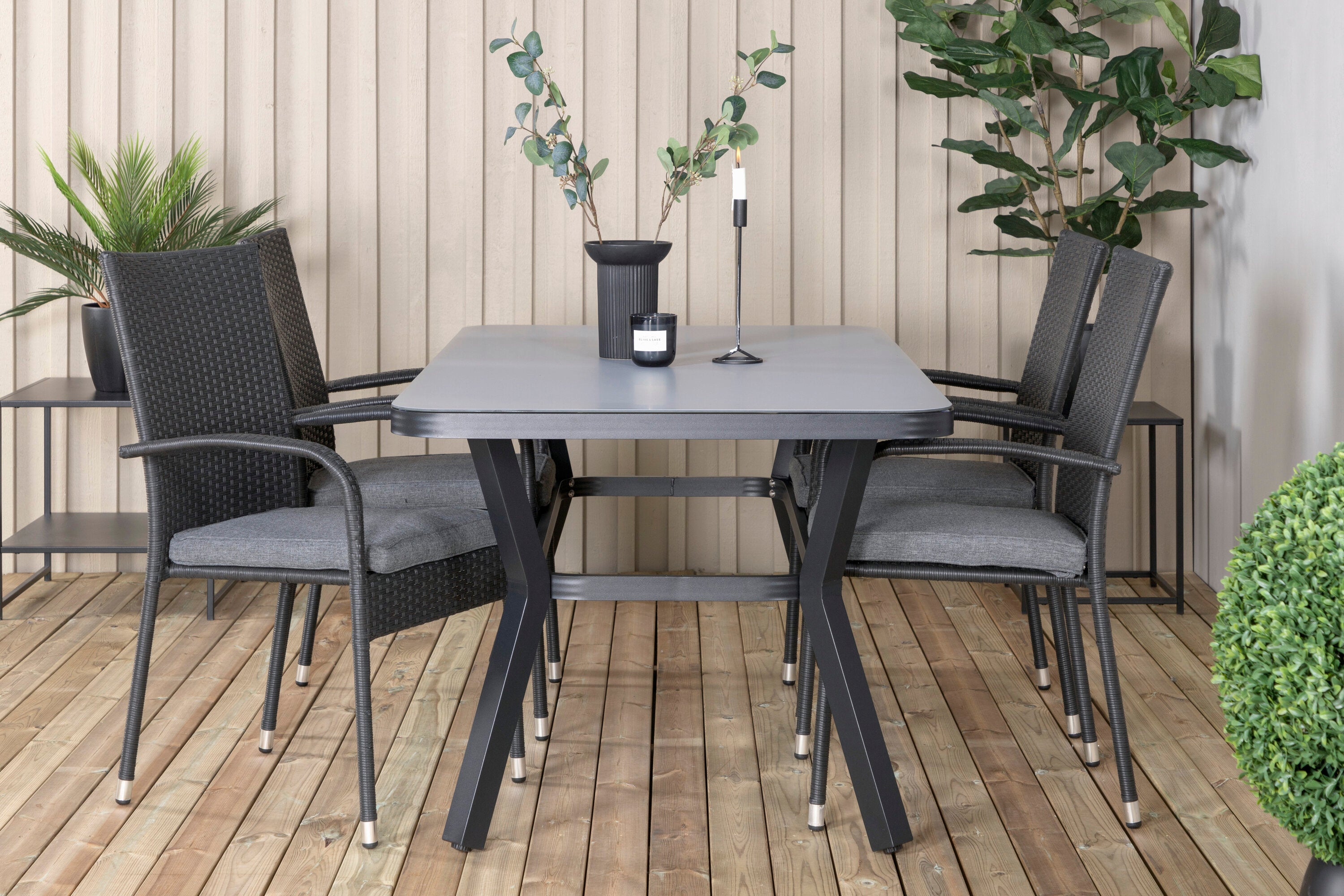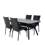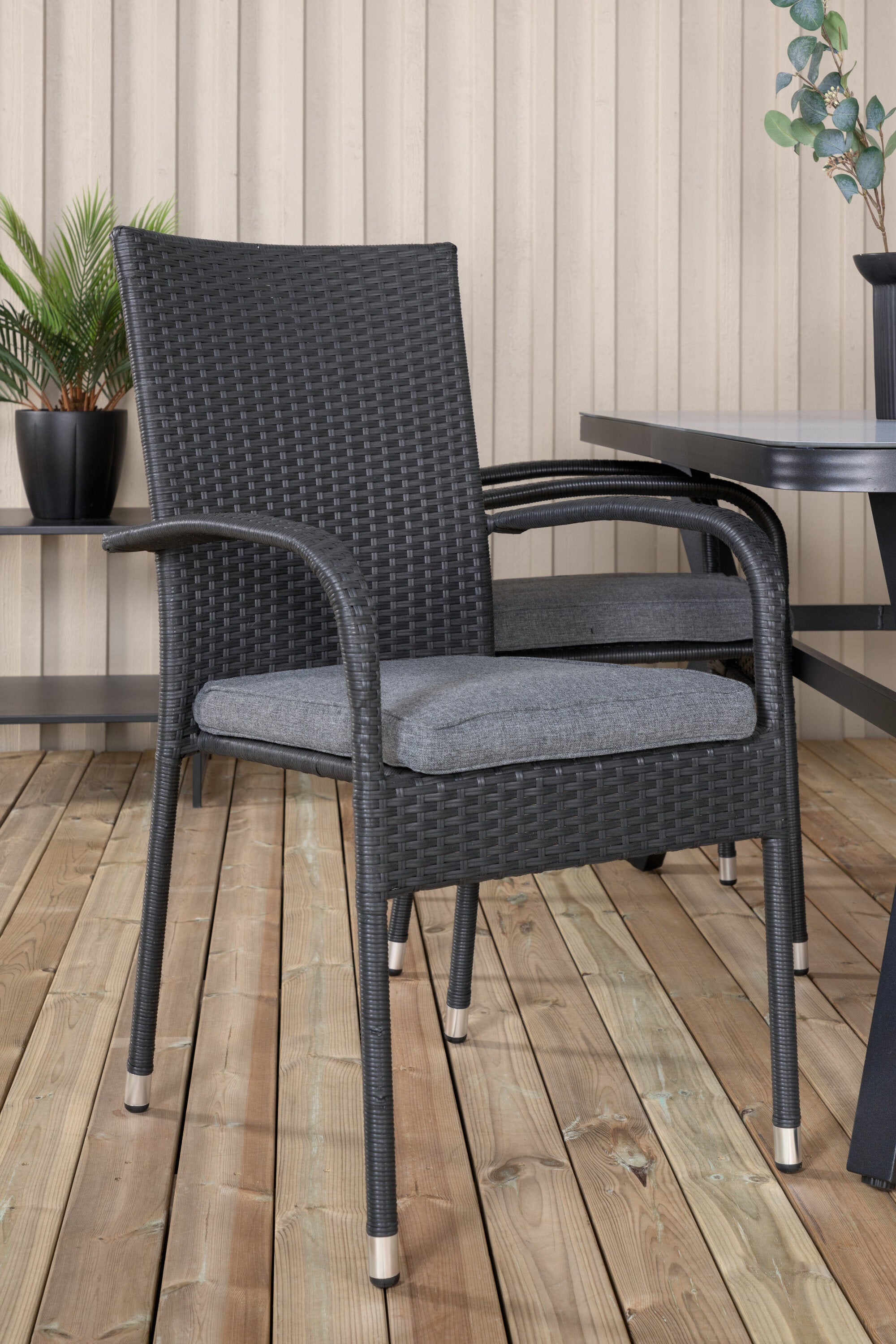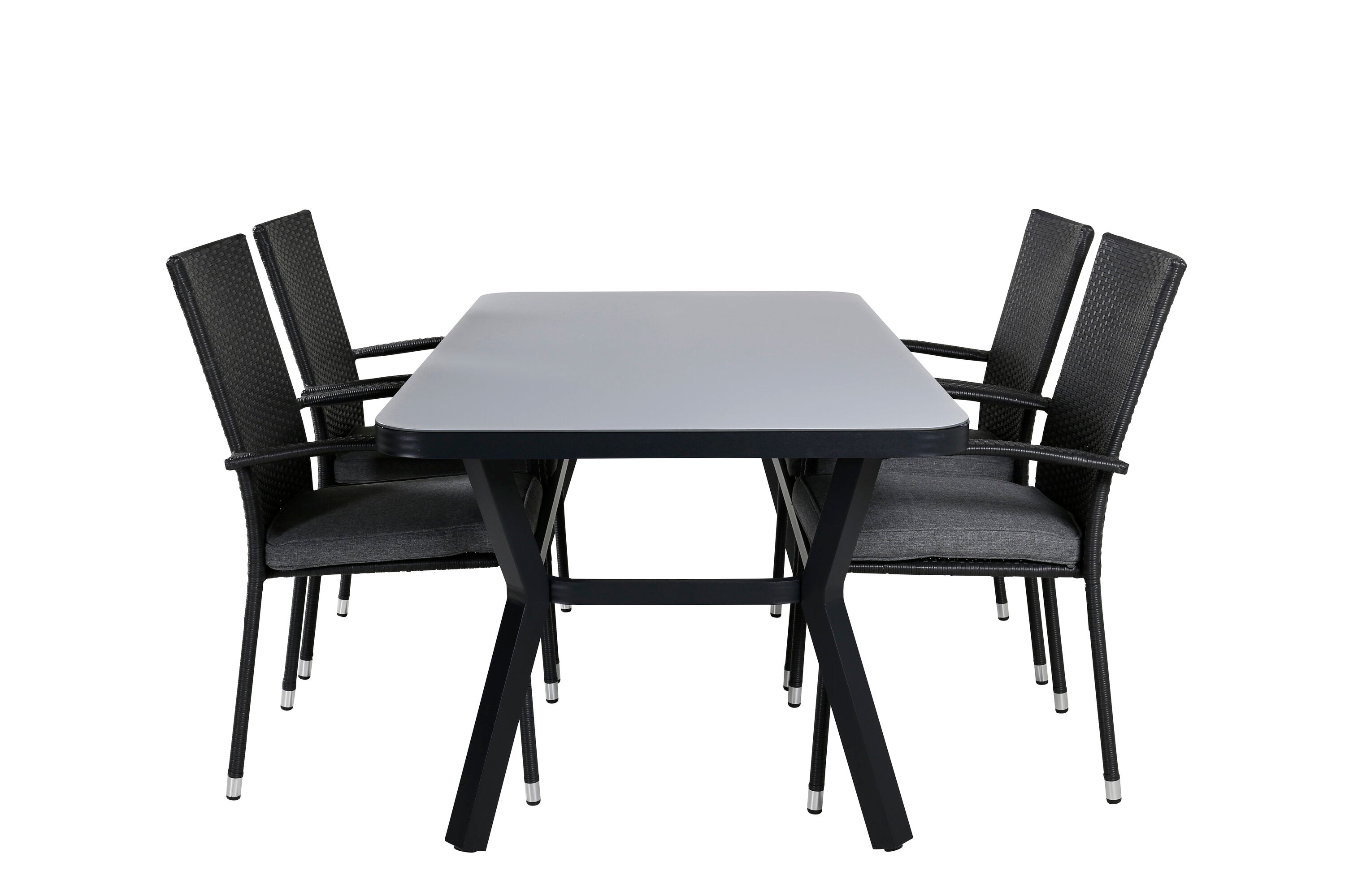 Klasická skupina jídel, která se hodí na většinu teras! Jídelní stůl Virya spolu s židlemi ze série Anna je jako stvořený pro ty, kteří chtějí na balkoně vytvořit útulný a moderní pocit.