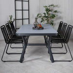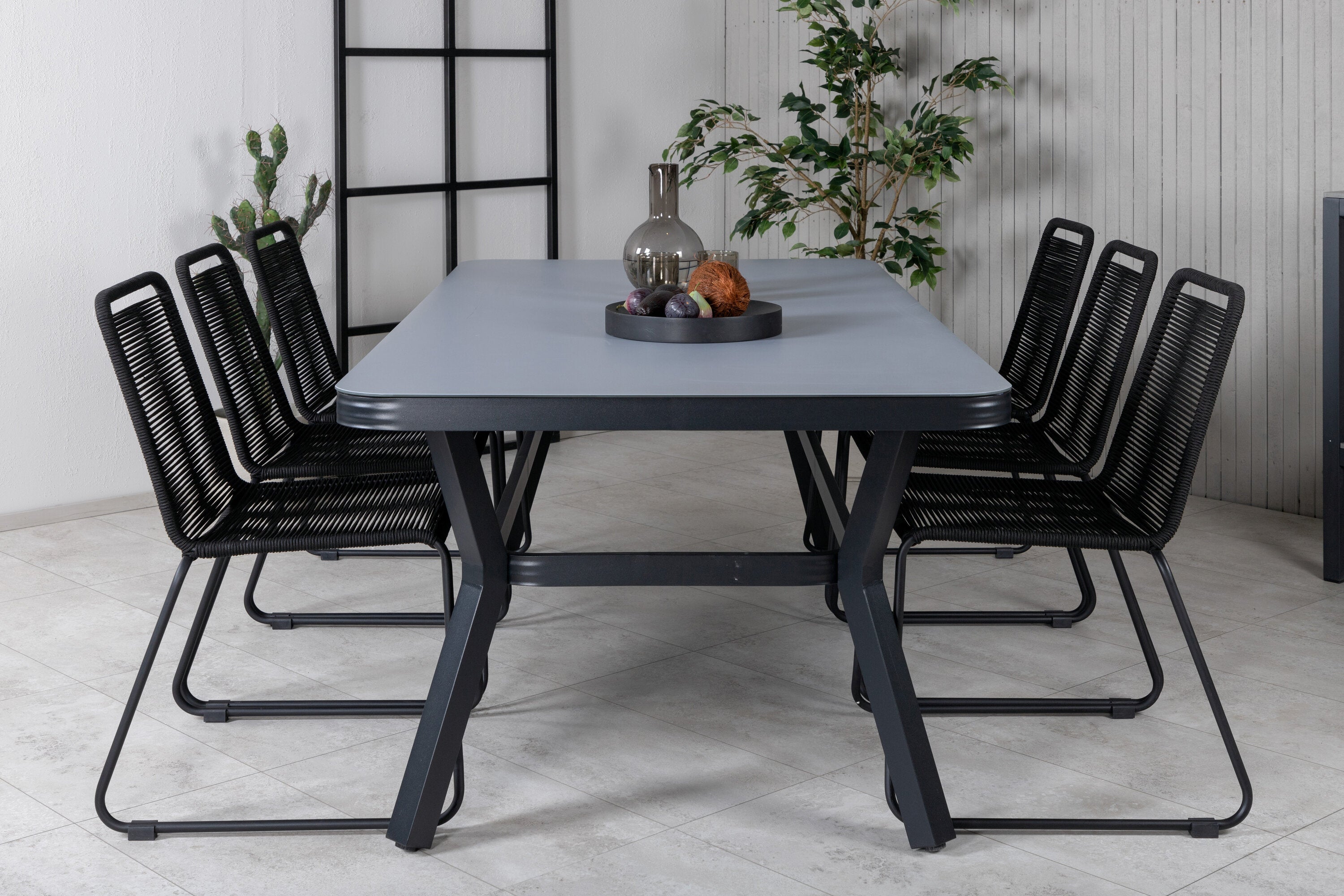 Nákup předem sestavené skupiny potravin je jak trendově bezpečný, tak praktický! Zde kombinujeme náš jídelní stůl Virya s našimi jídelními židlemi Lindos vhodnými k sezení. Nechte terasu charakterizovat vaši novou poutavou skupinu jídel.