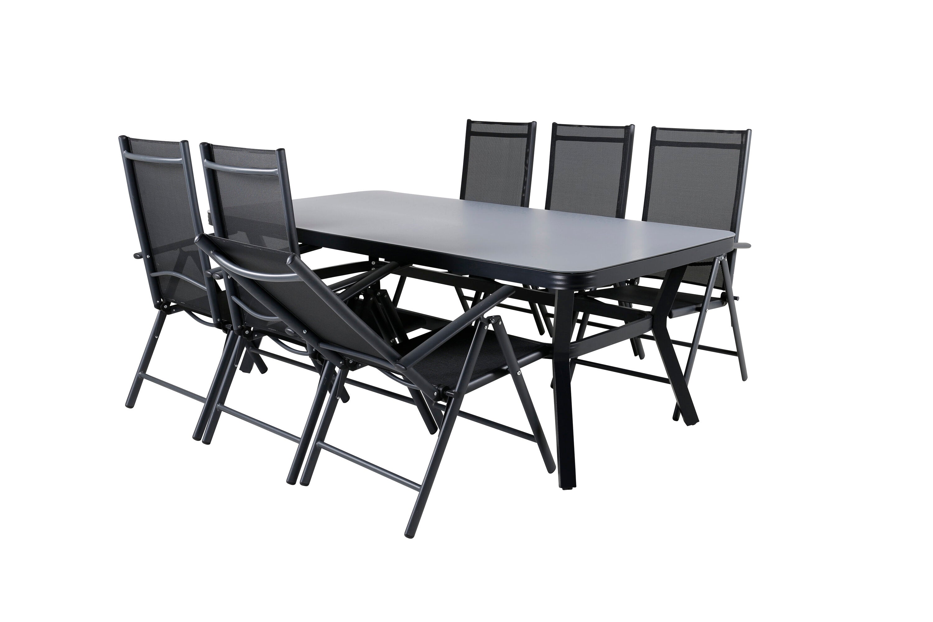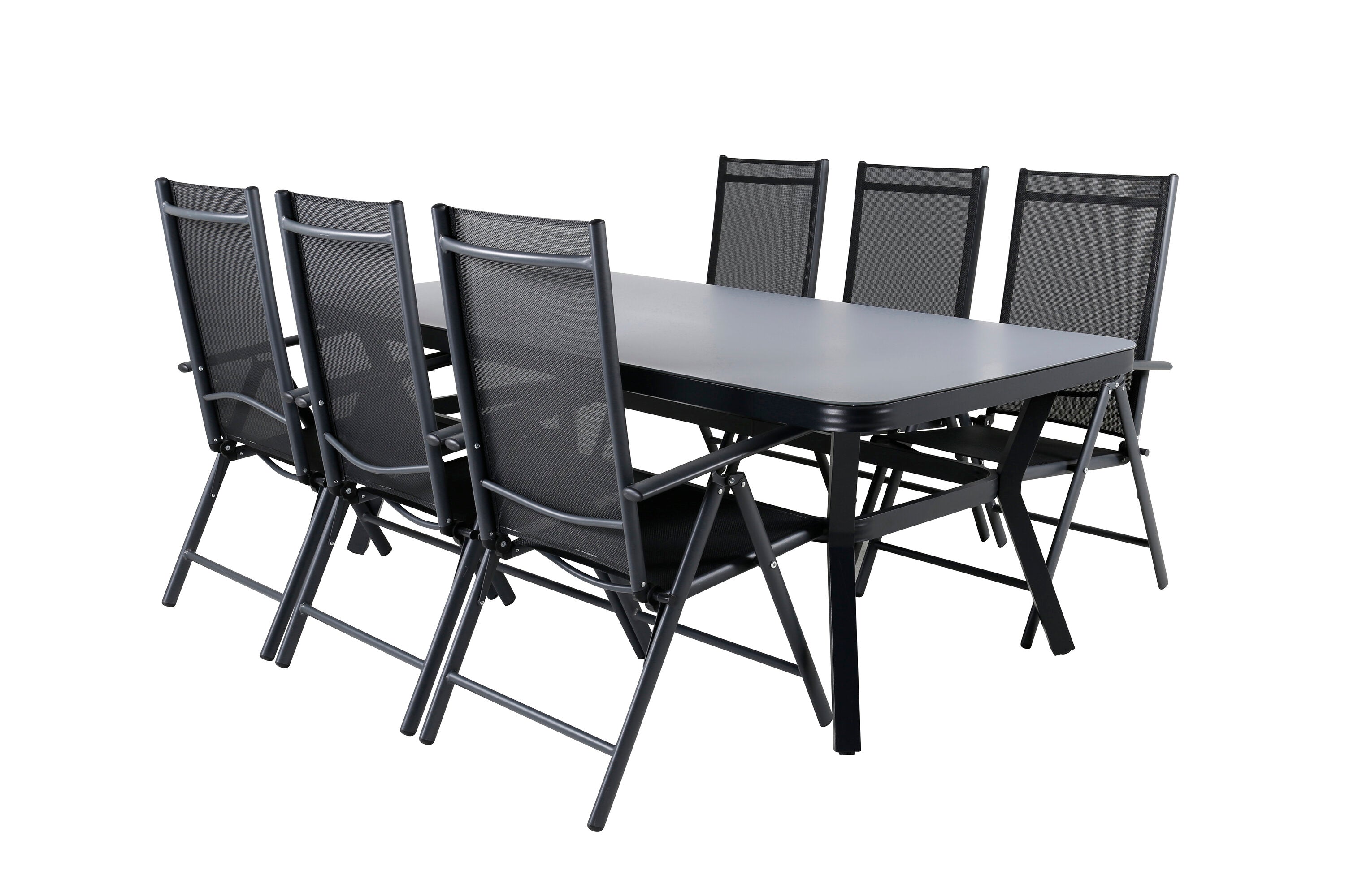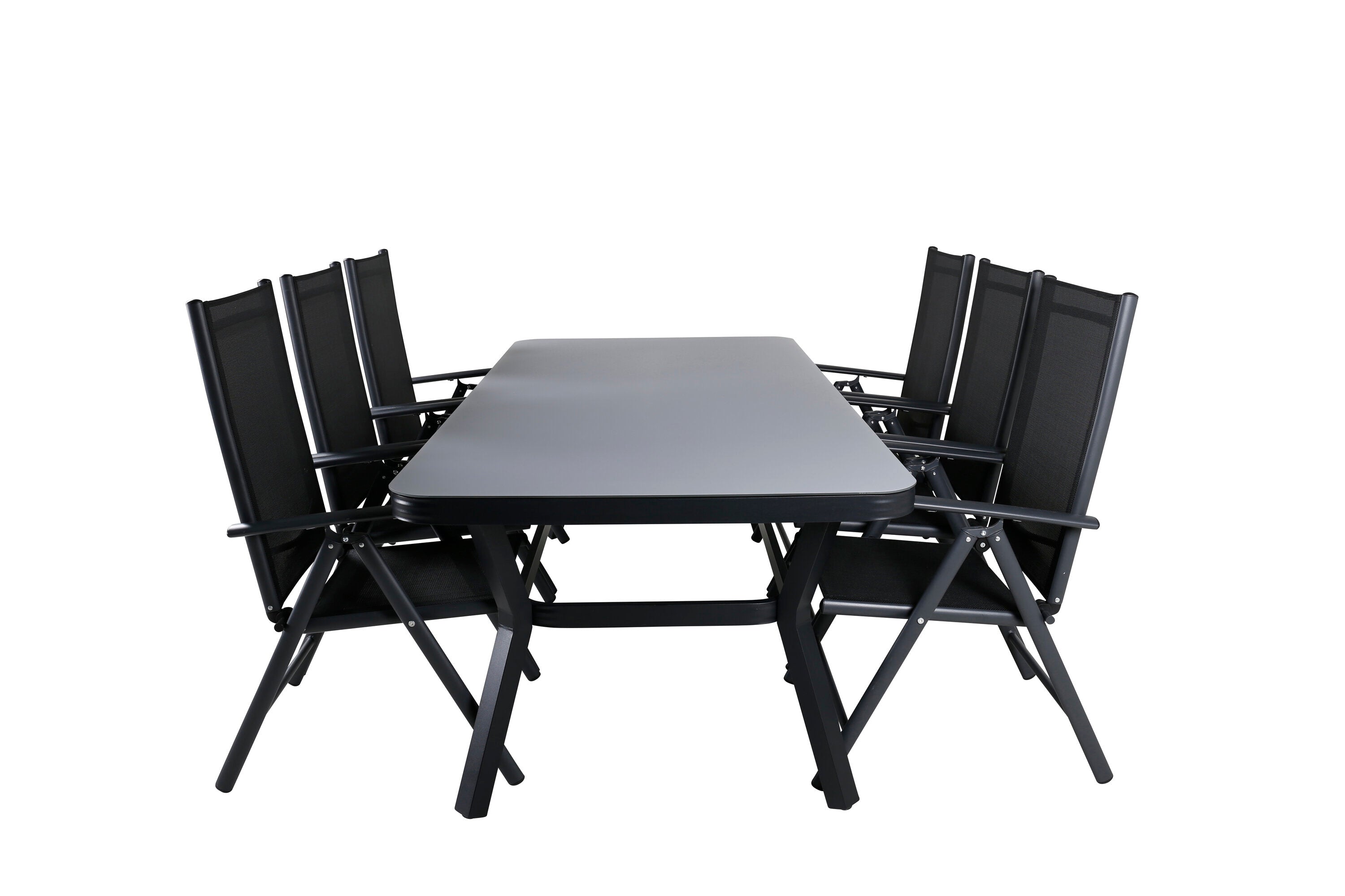 Jídelní stůl Virya - černá Alu / šedé sklo - velký stůl + židle Break 5:pos - Black/Black_6