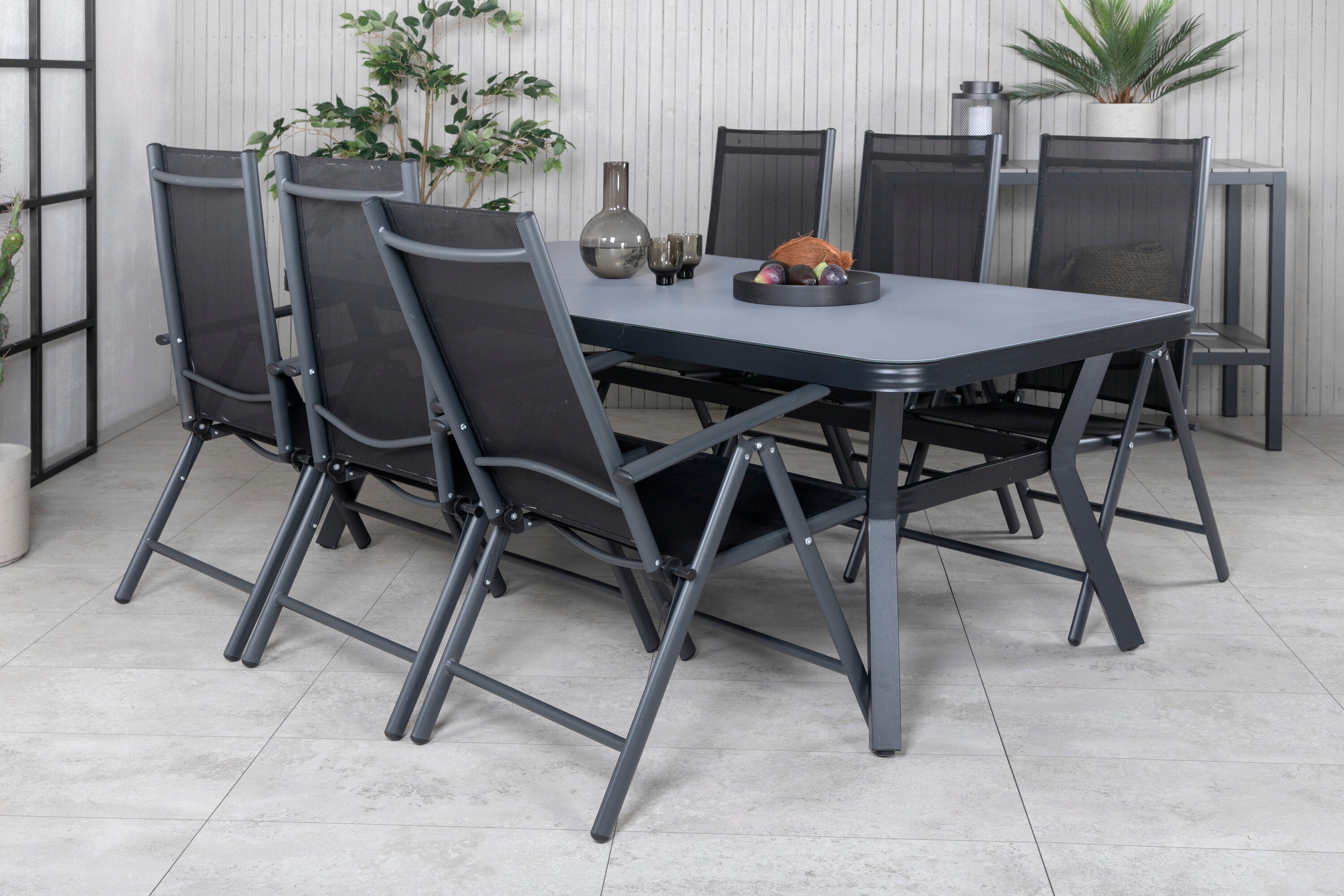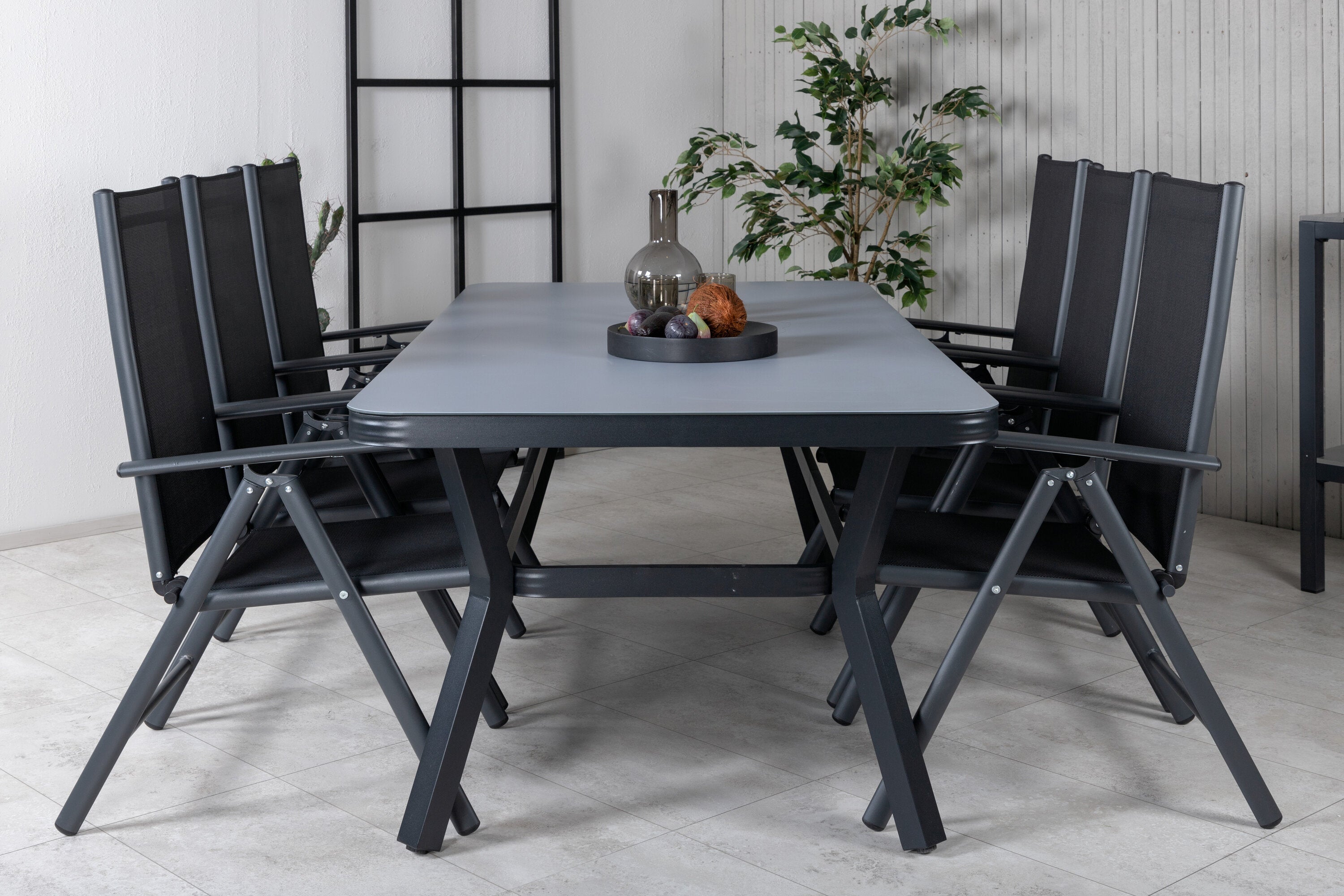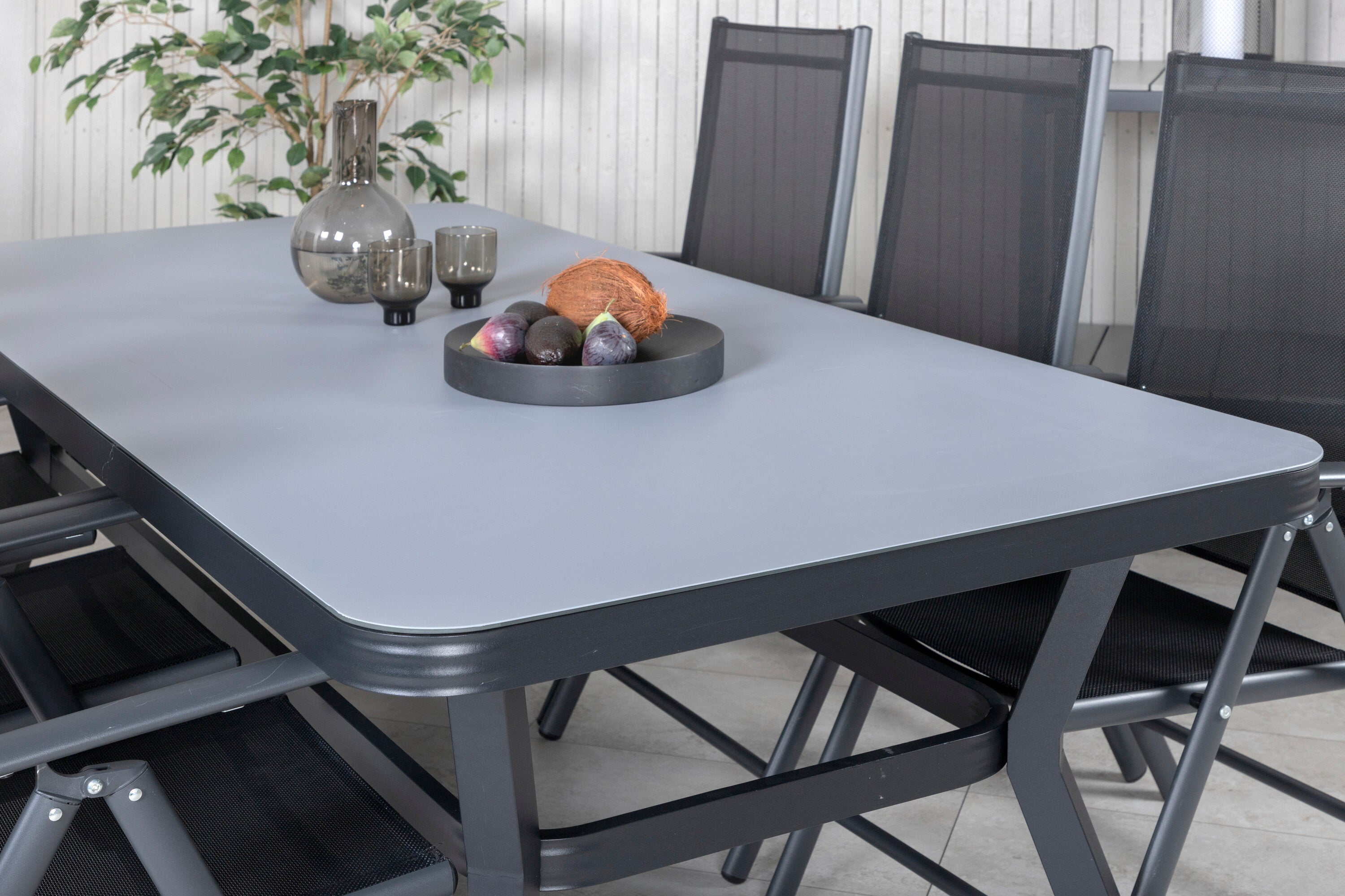 Nechte toto krásně sladěné jídlo s moderním nádechem stát se přirozeným místem setkávání na balkóně. Jídelní židle Break mají dobrý komfort a jídelní stůl Viryrya znamená, že se nemusíte bát, že by všichni měli místo.