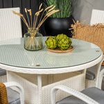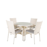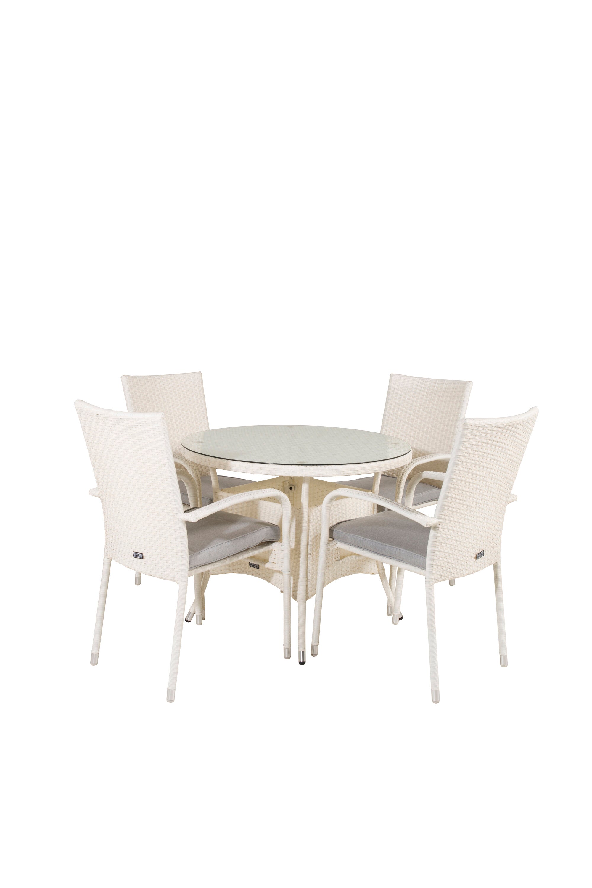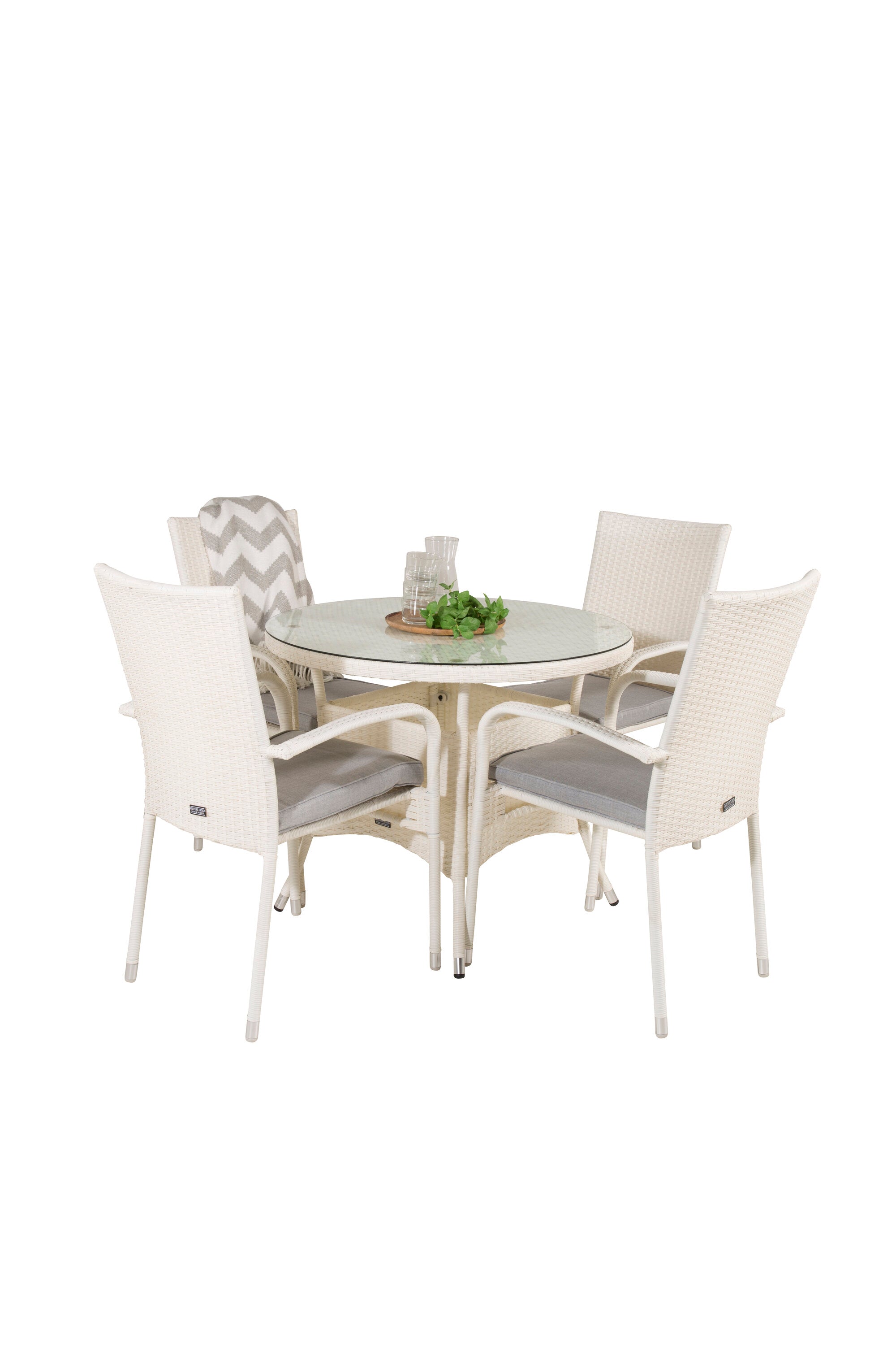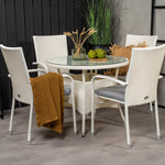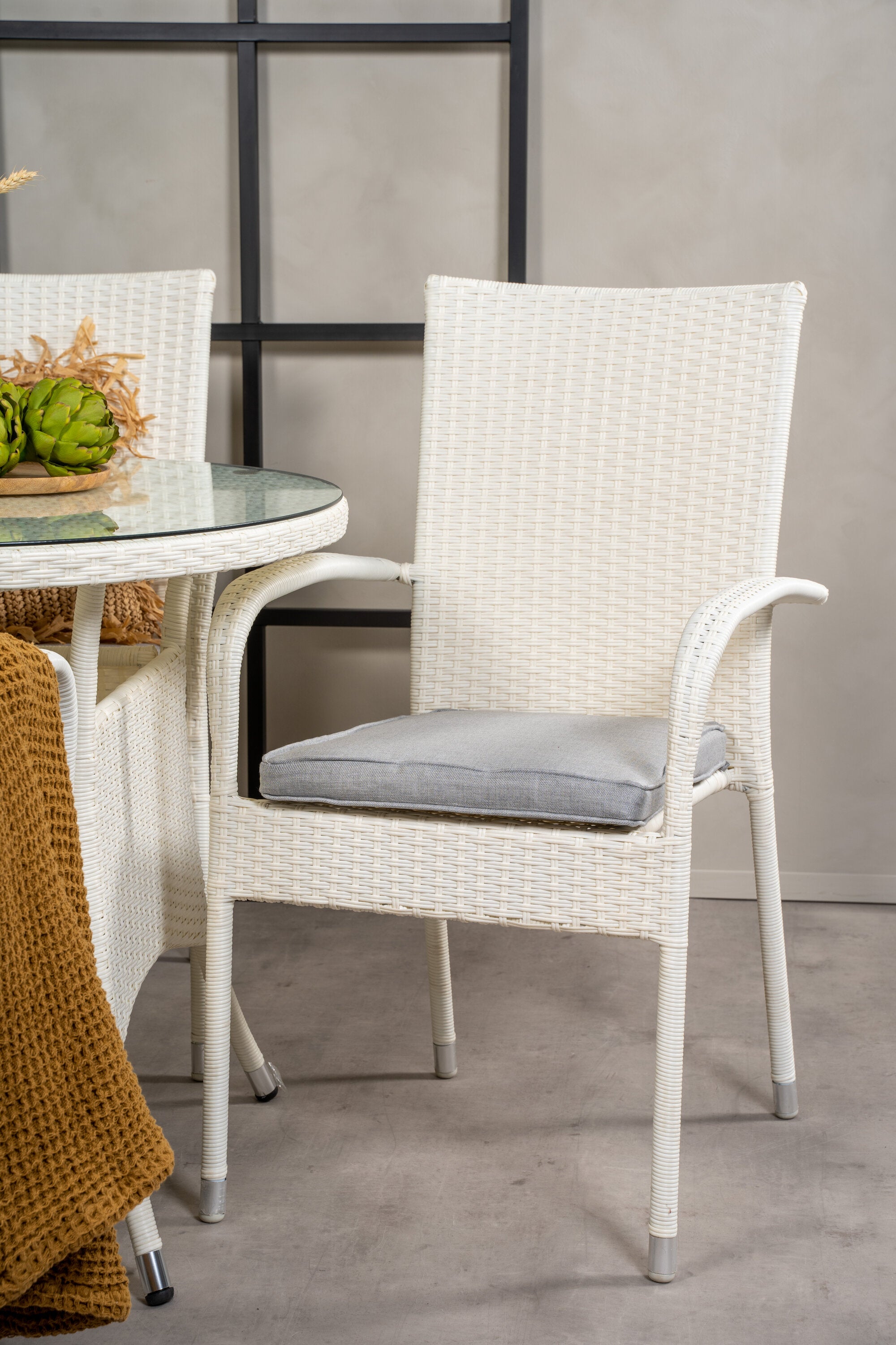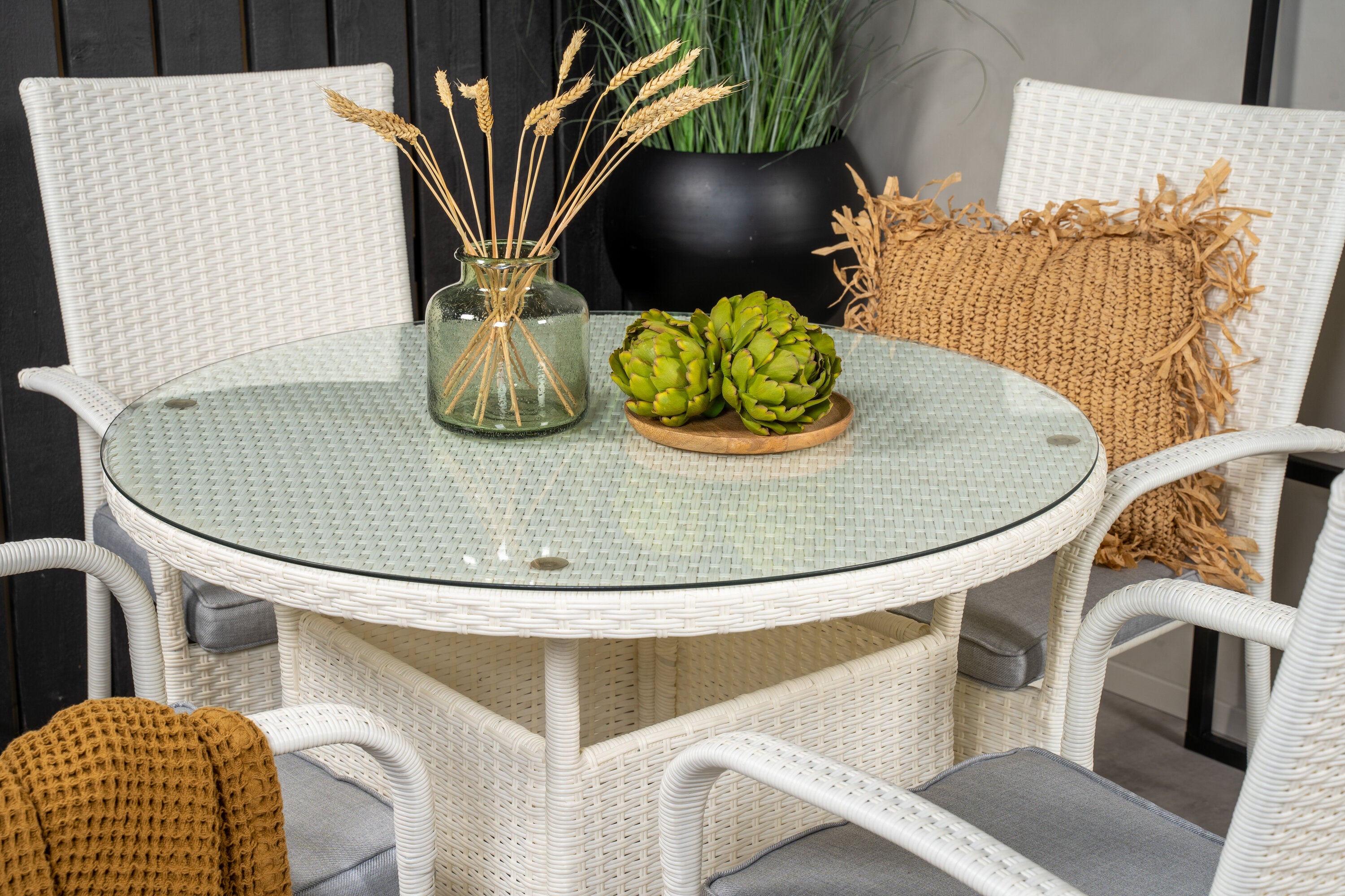 Náš moderní jídelní stůl Volta spolu s pohodlnými jídelními židlemi ze série Anna. Zde získáte skupinu potravin, která přímo vštěpuje luxus a eleganci. Oblečte svou terasu nebo terasu jiným dekorem všude kolem, stejně tak dobré pro každodenní život jako na párty!