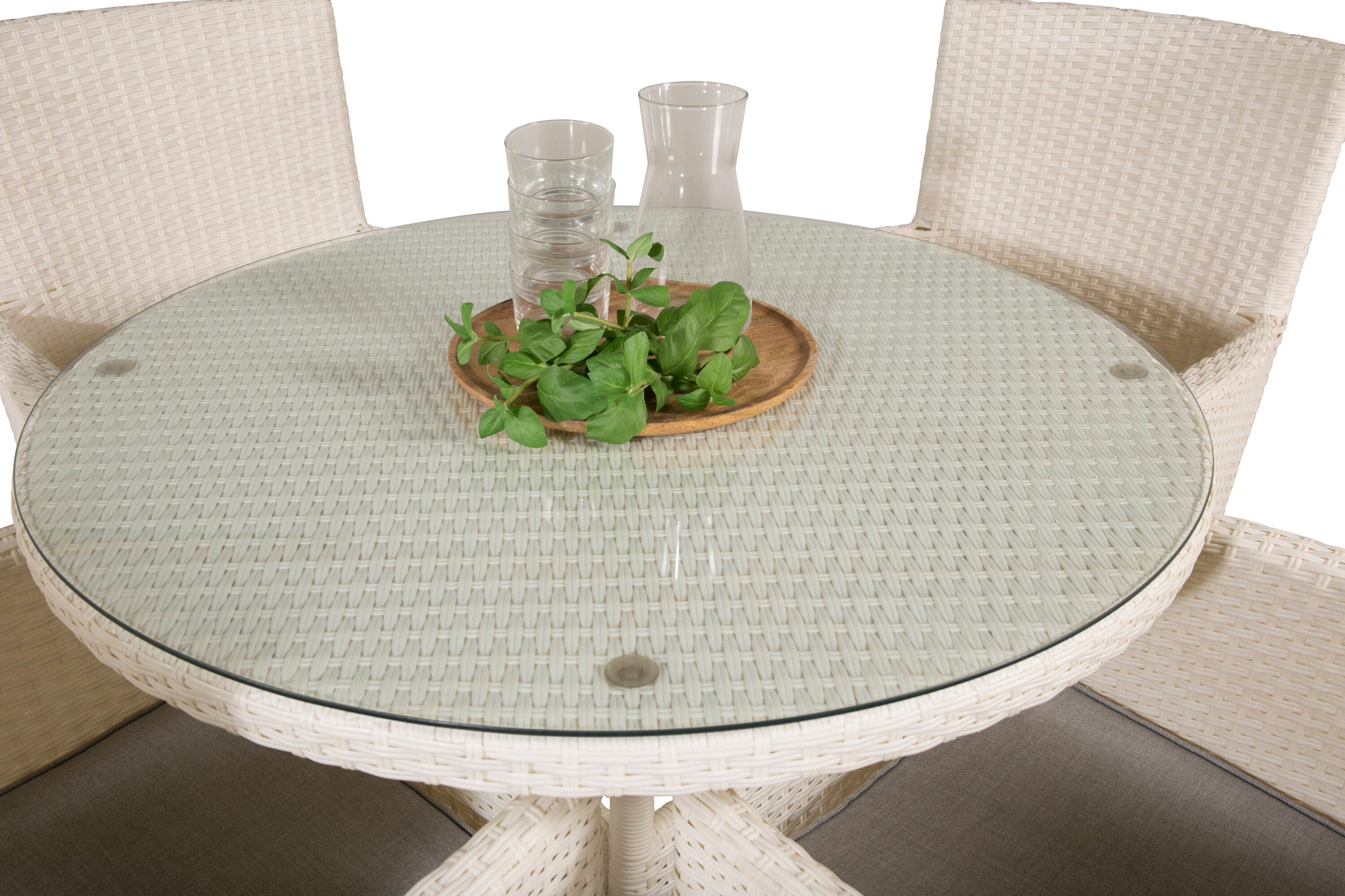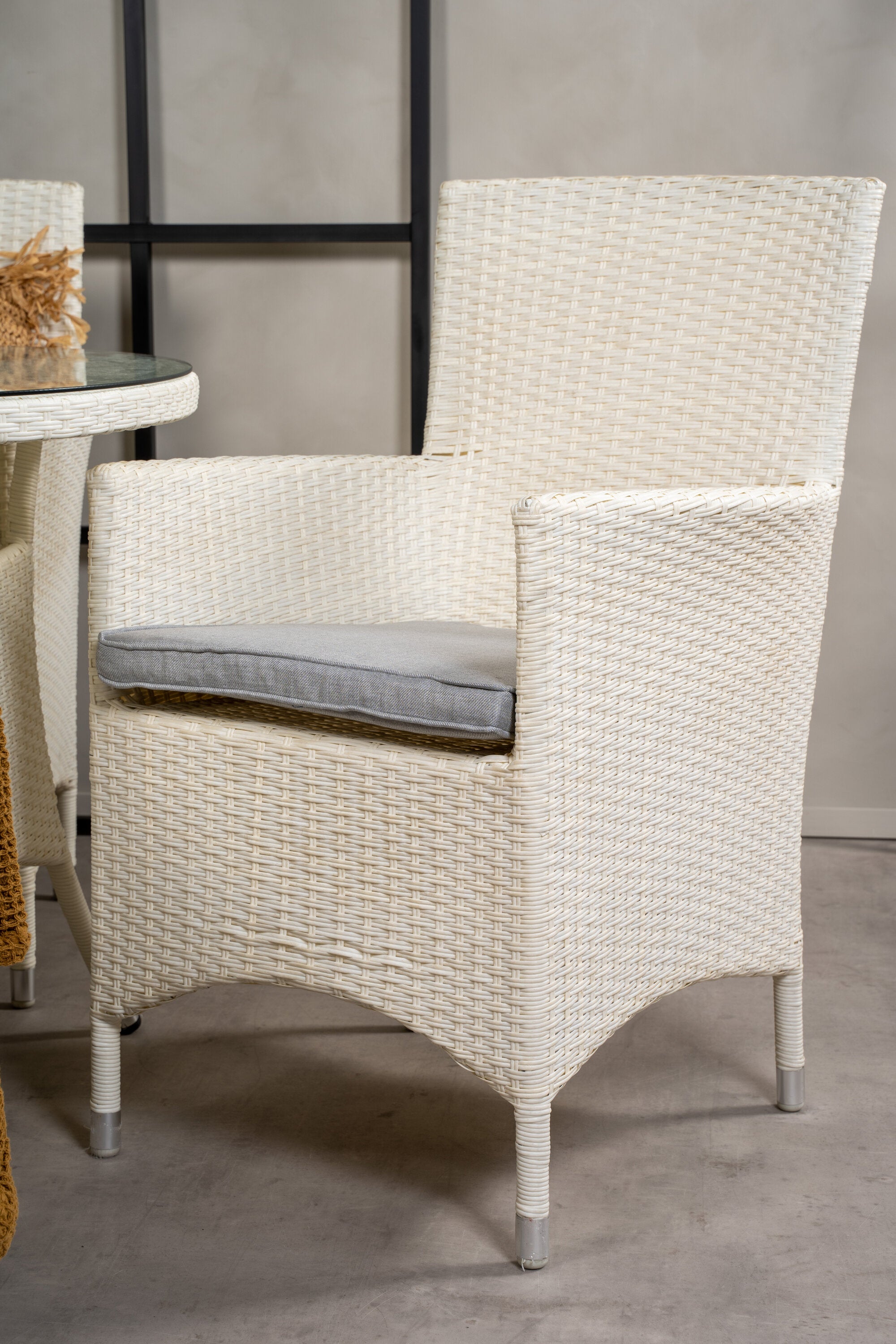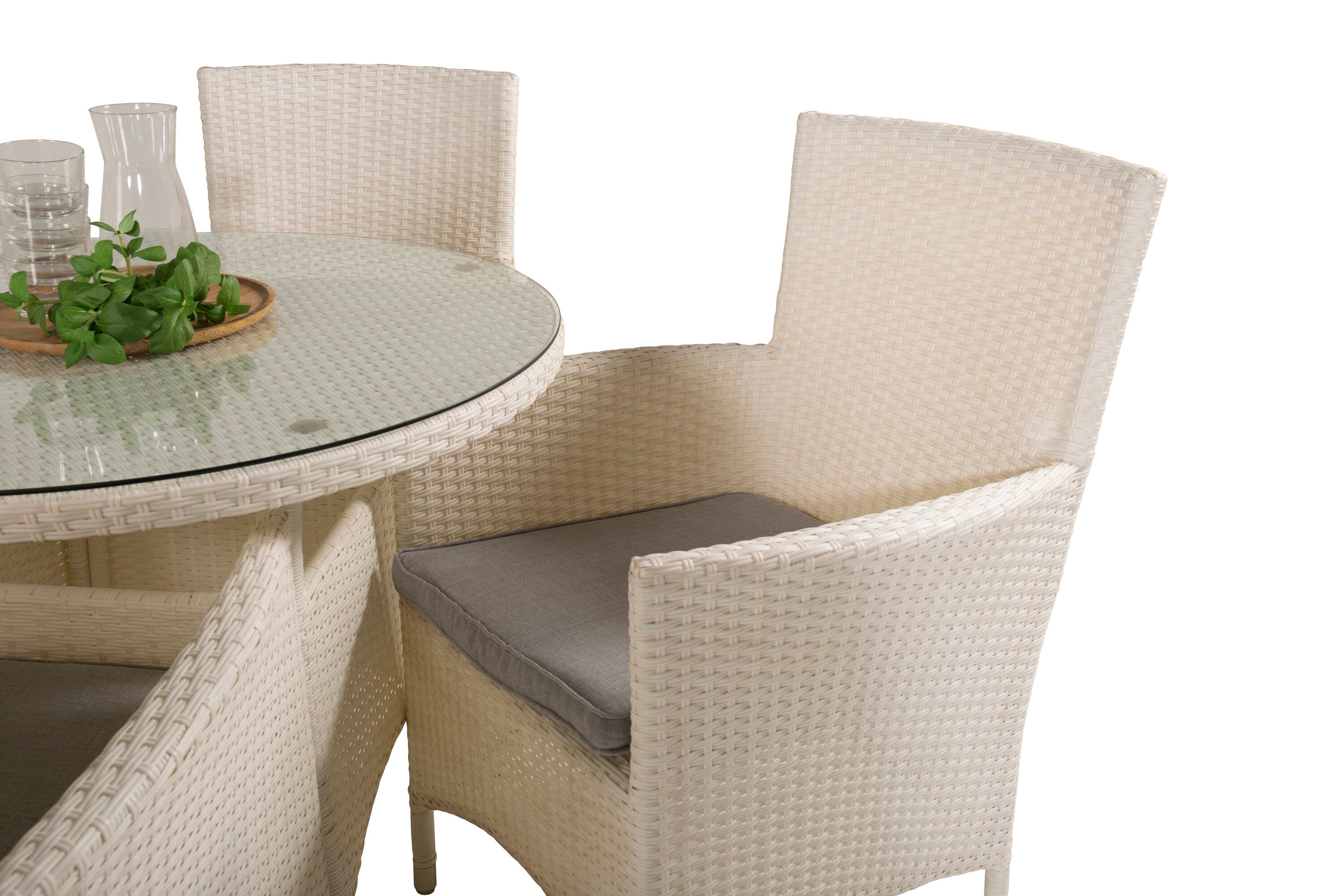 Jídelní stůl Volta - Bílá - ø90+Malin Područka s polštářem - Bílá / Šedá cushion_4