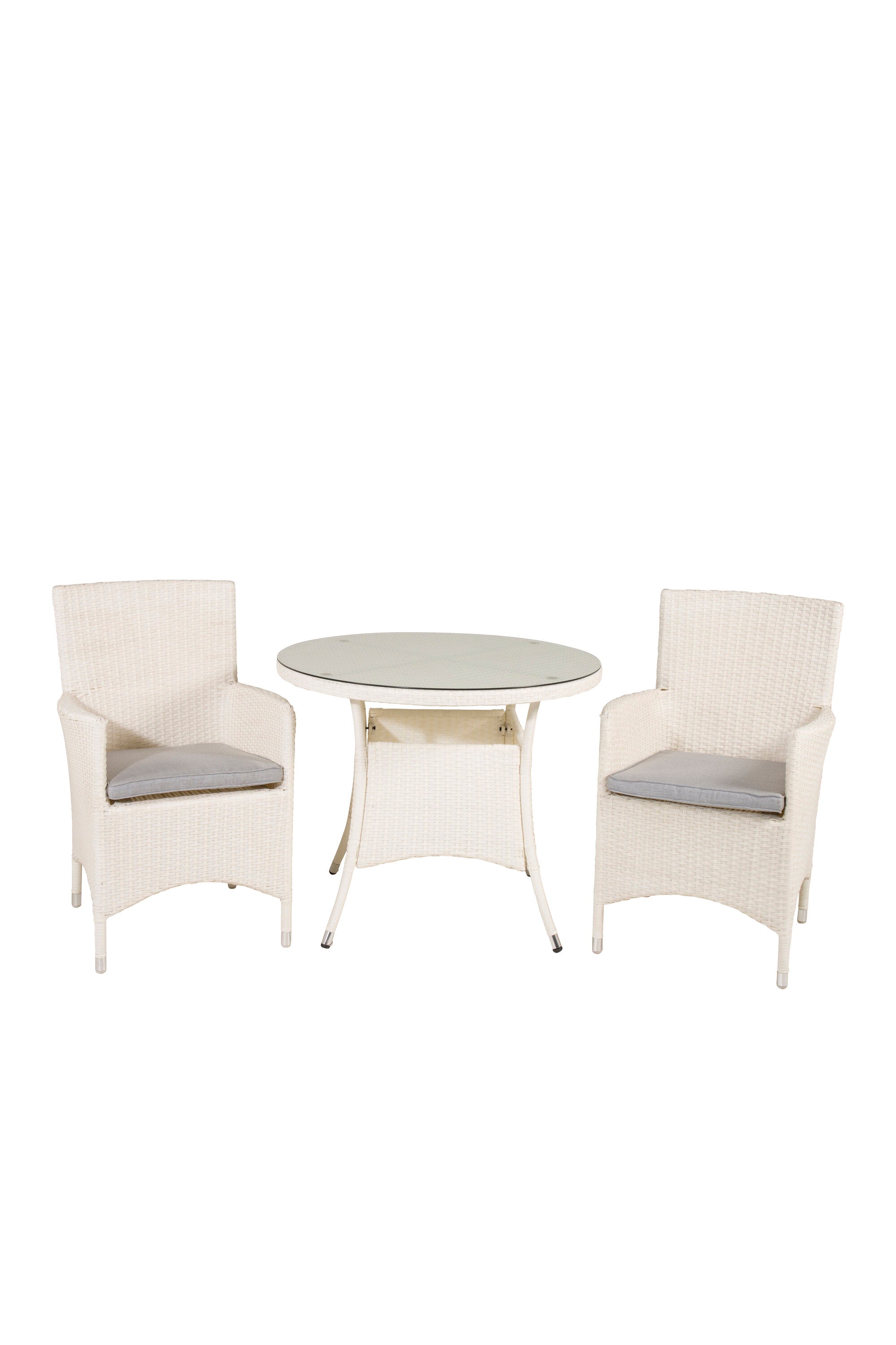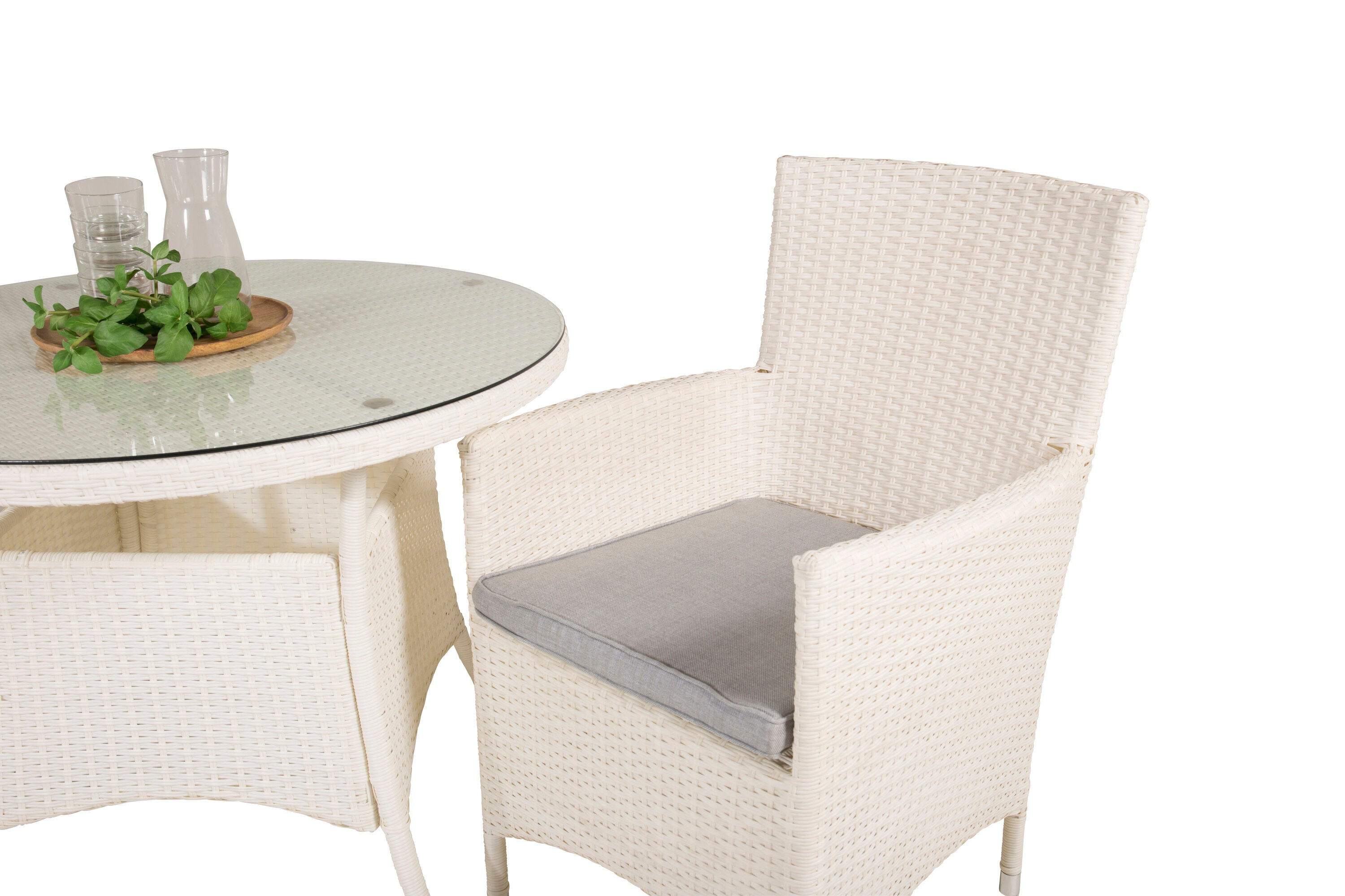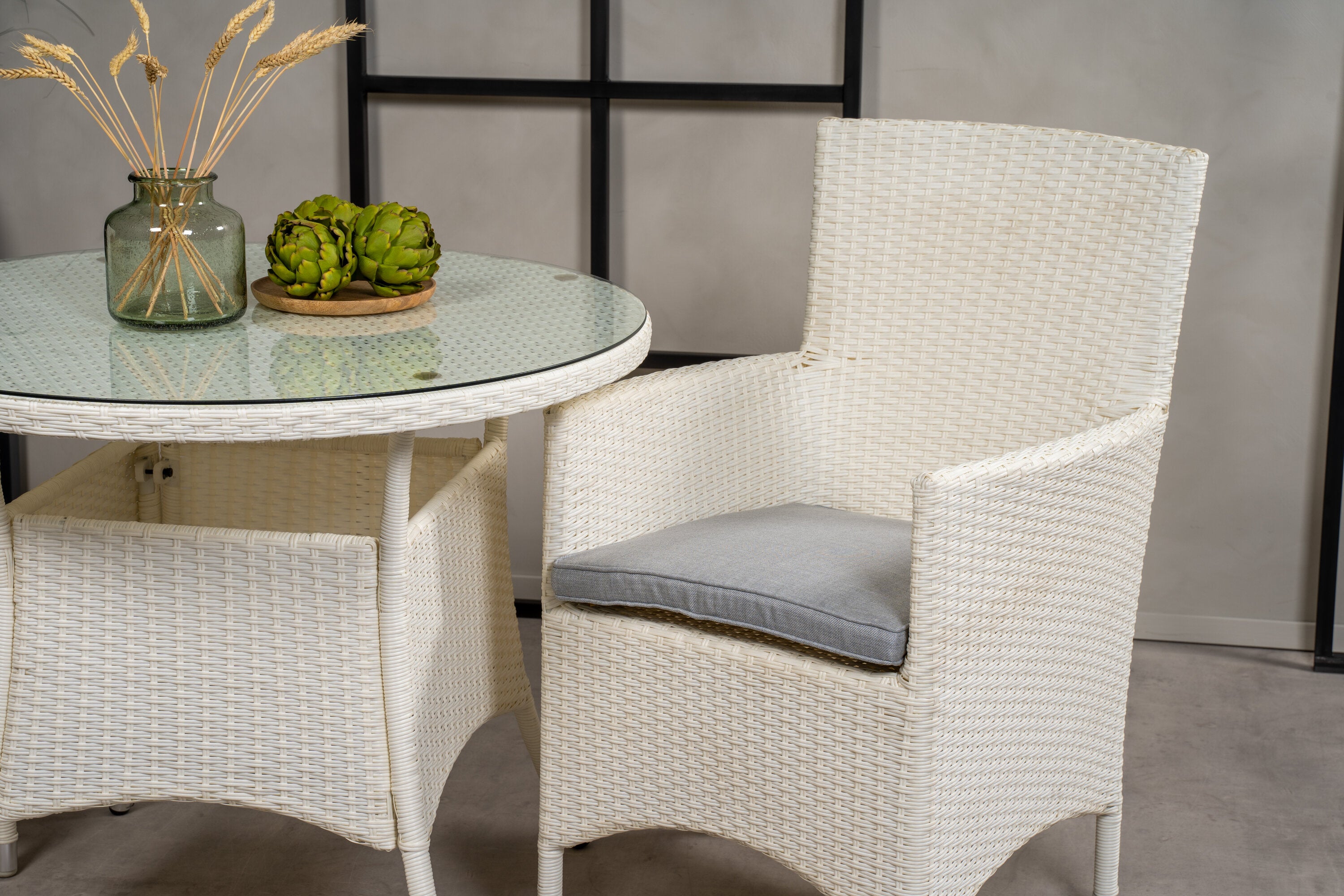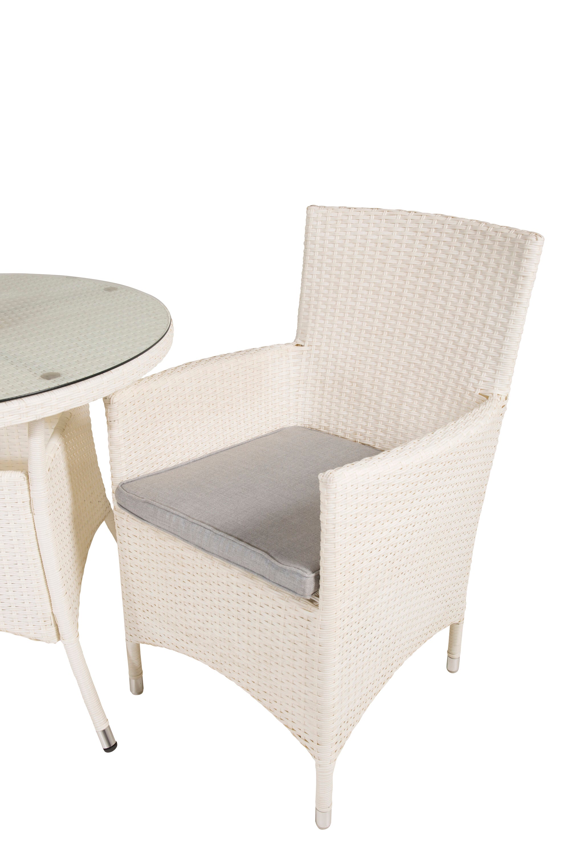 Jídelní stůl Volta - Bílý - ø90+Malin křeslo s polštářem - Bílý / Šedý polštář_2
