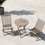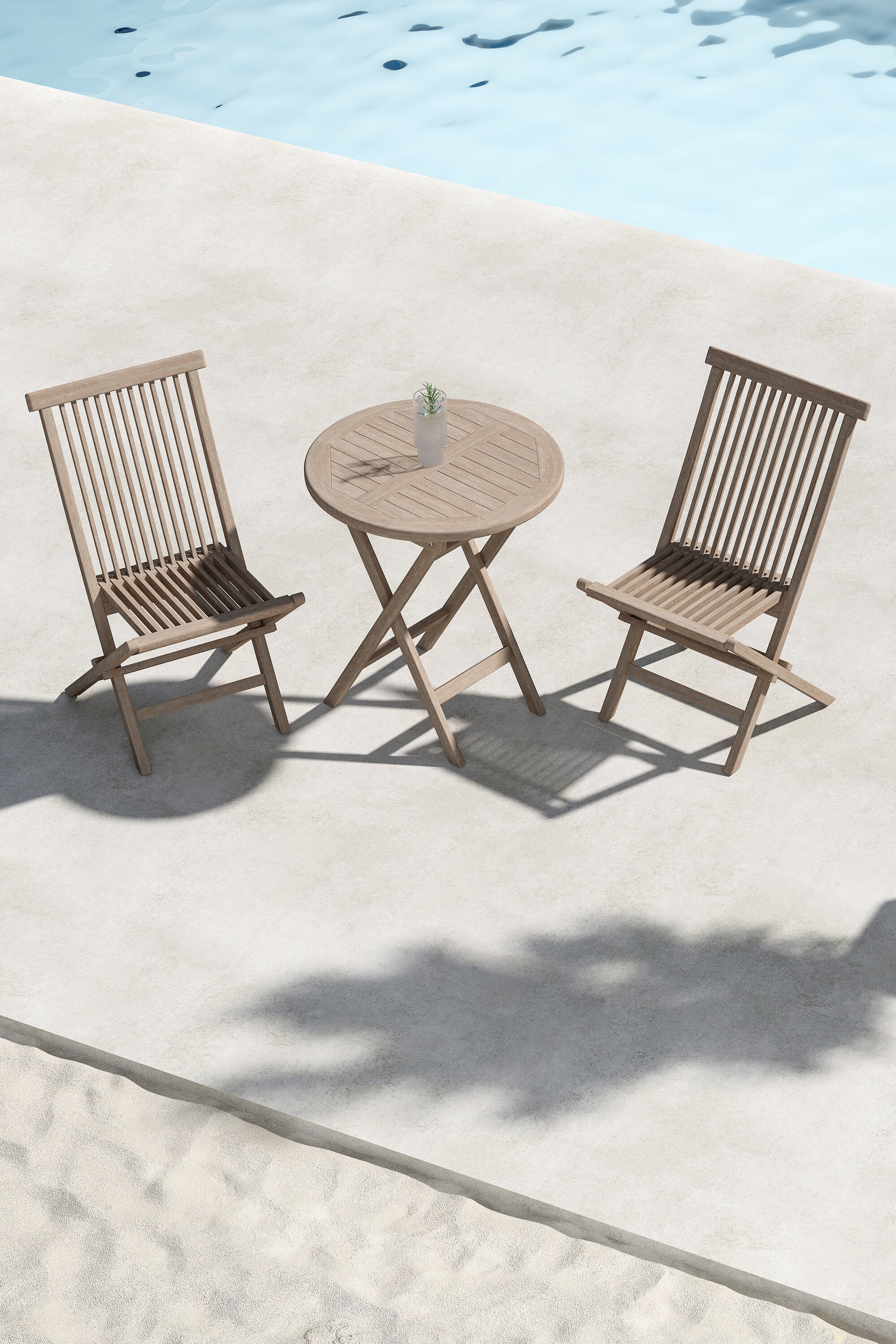 Vytvořte si okouzlující a příjemný kavárenský koutek s kavárenským setem Kenya, který se skládá z kavárenského stolu Kenya a dvou židlí Kenya. Tato nadčasová jídelní souprava z teaku s bílenou povrchovou úpravou kombinuje klasický design s přírodními materiály, ideální na balkón, terasu nebo zahradu.