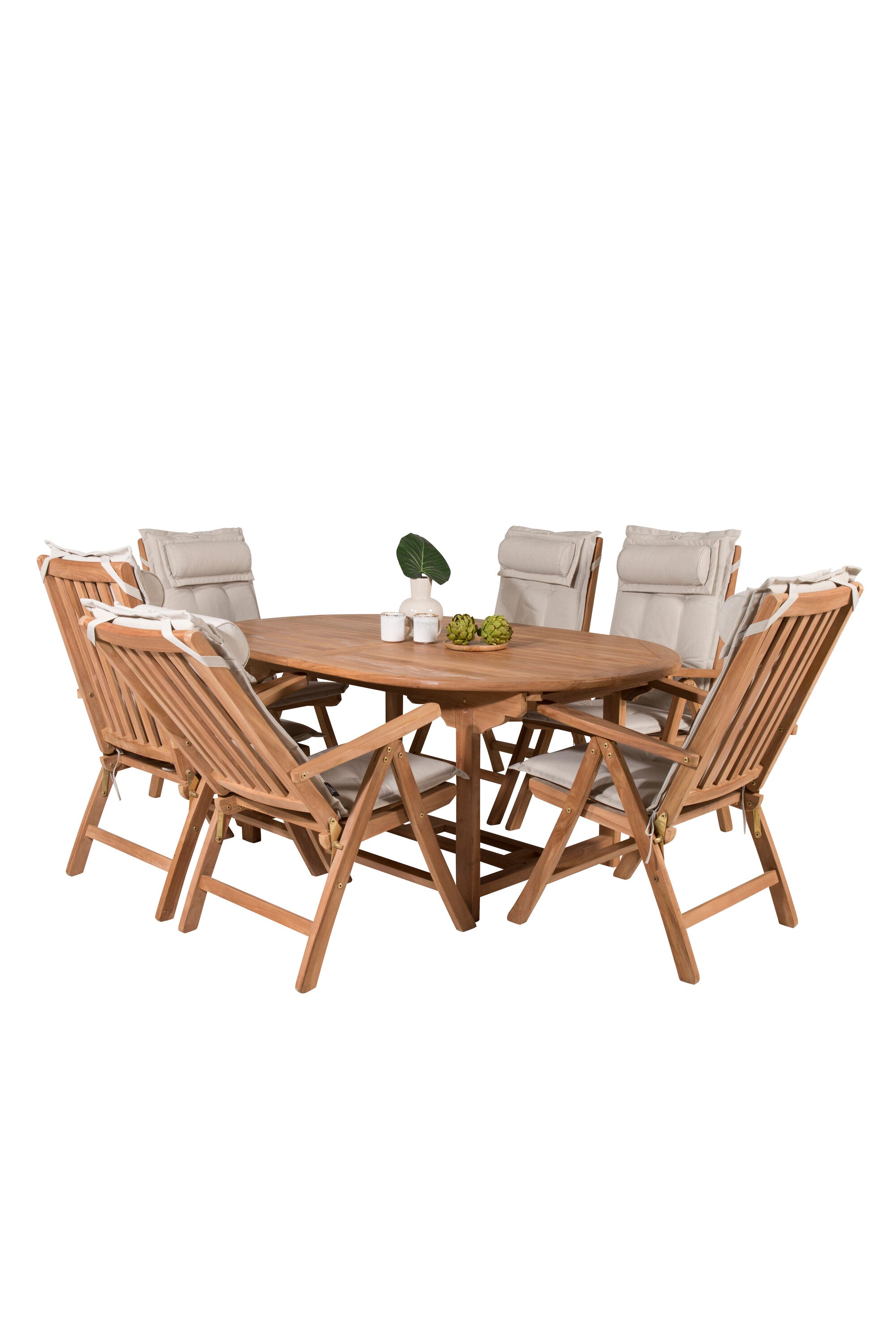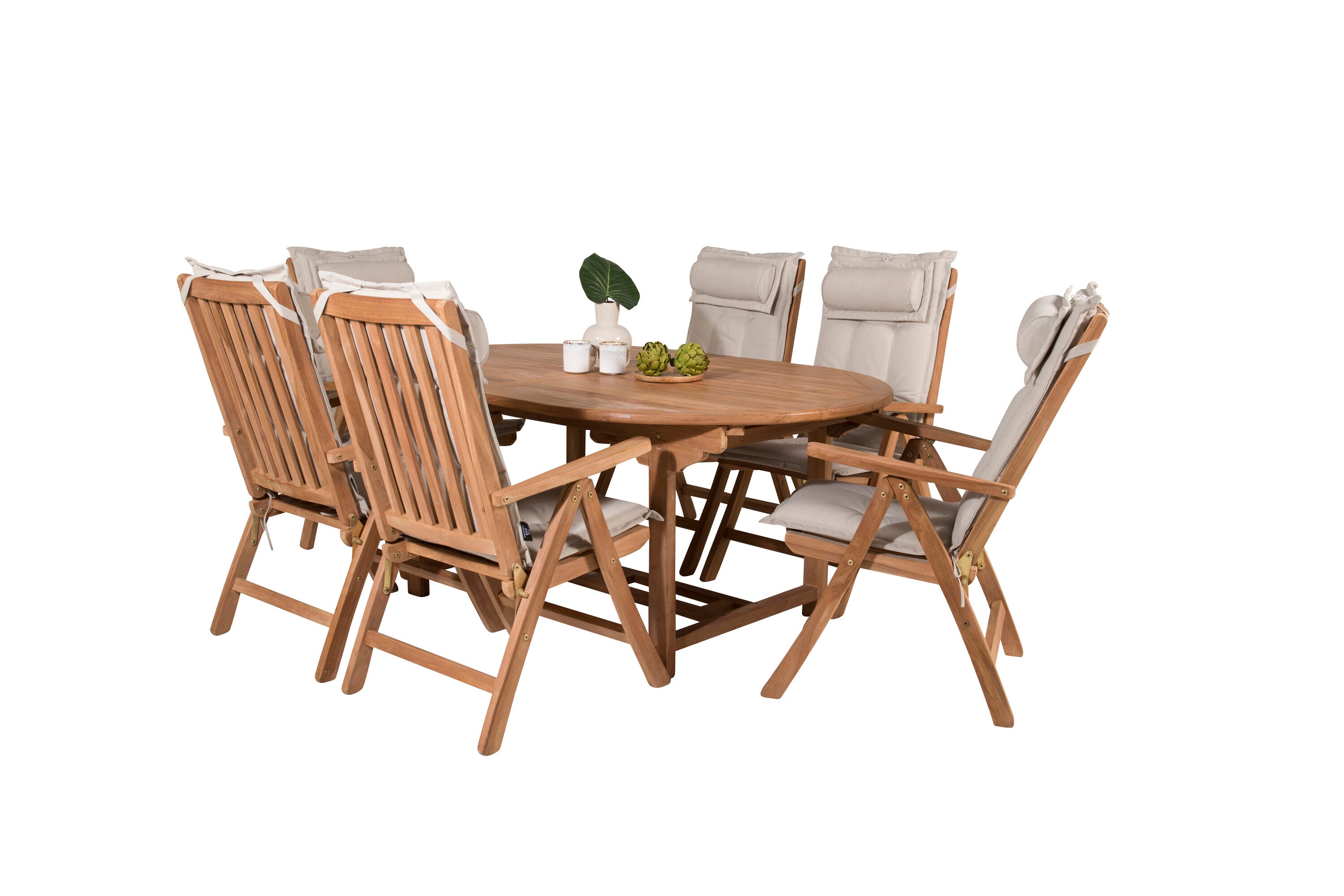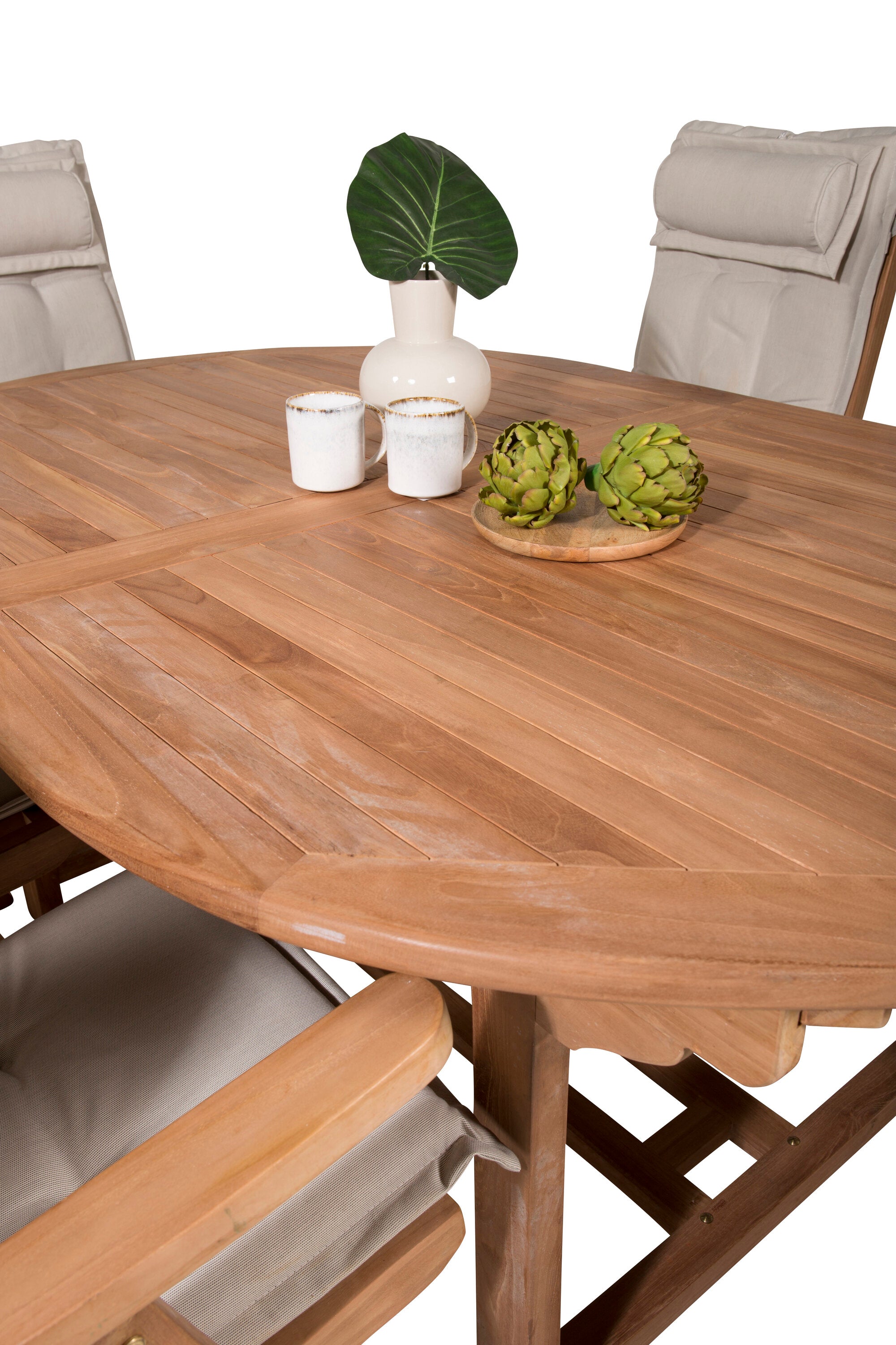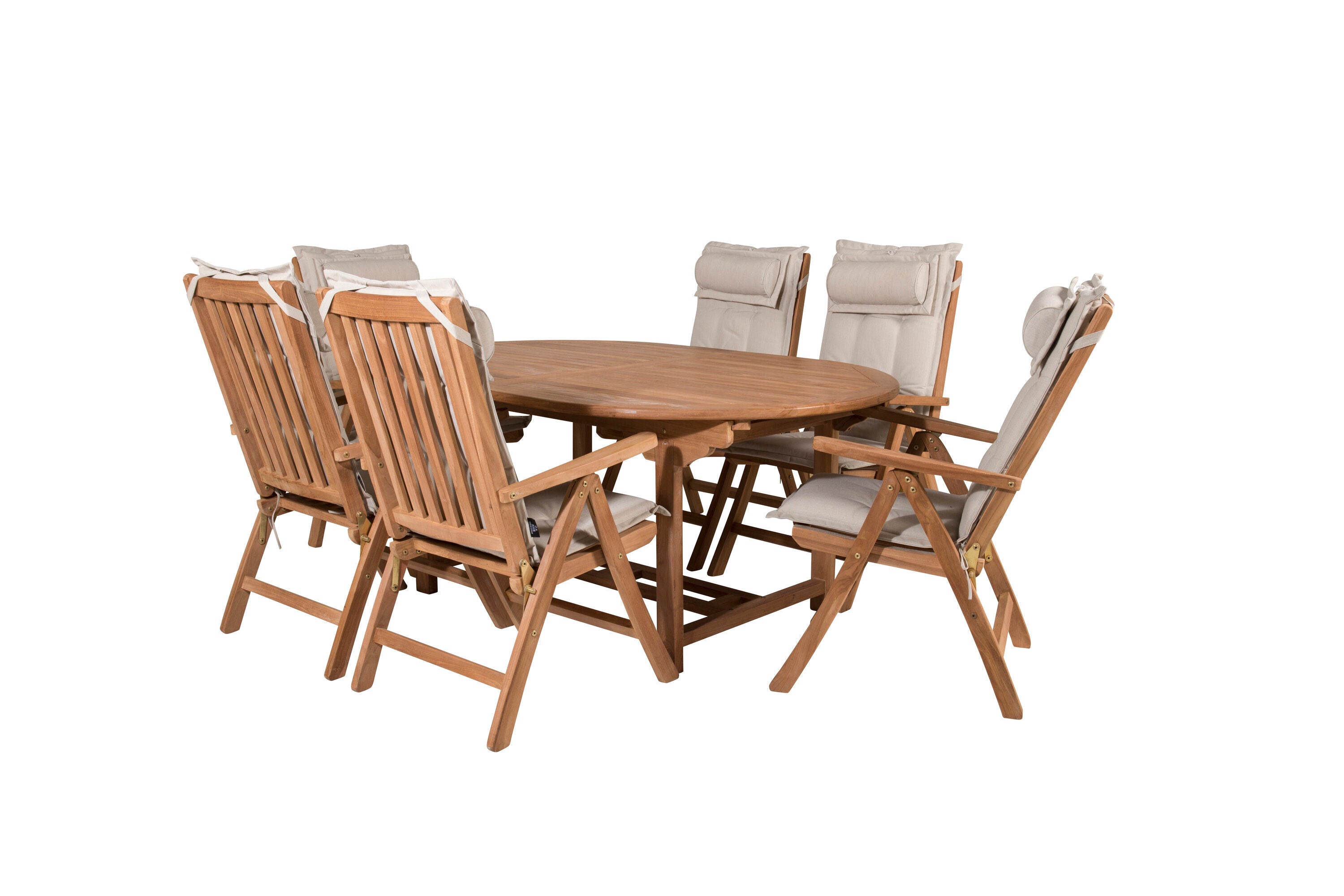 Kenya Oválný jídelní stůl 180/240*120*H75 -Teak+Keňa 5-polohová skládací židle - Teak_6