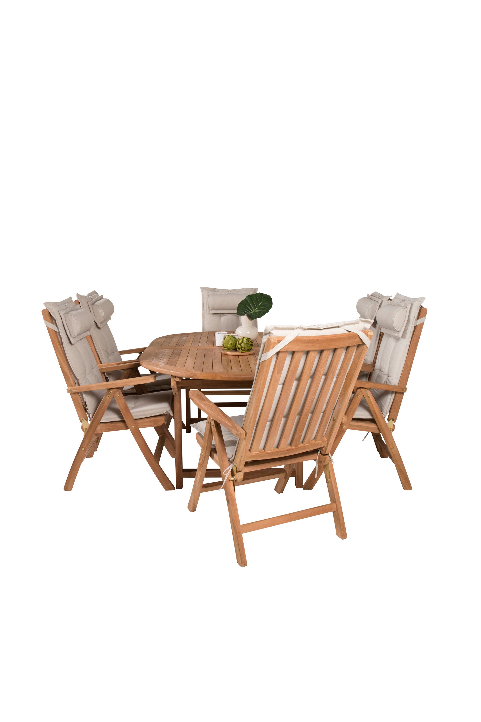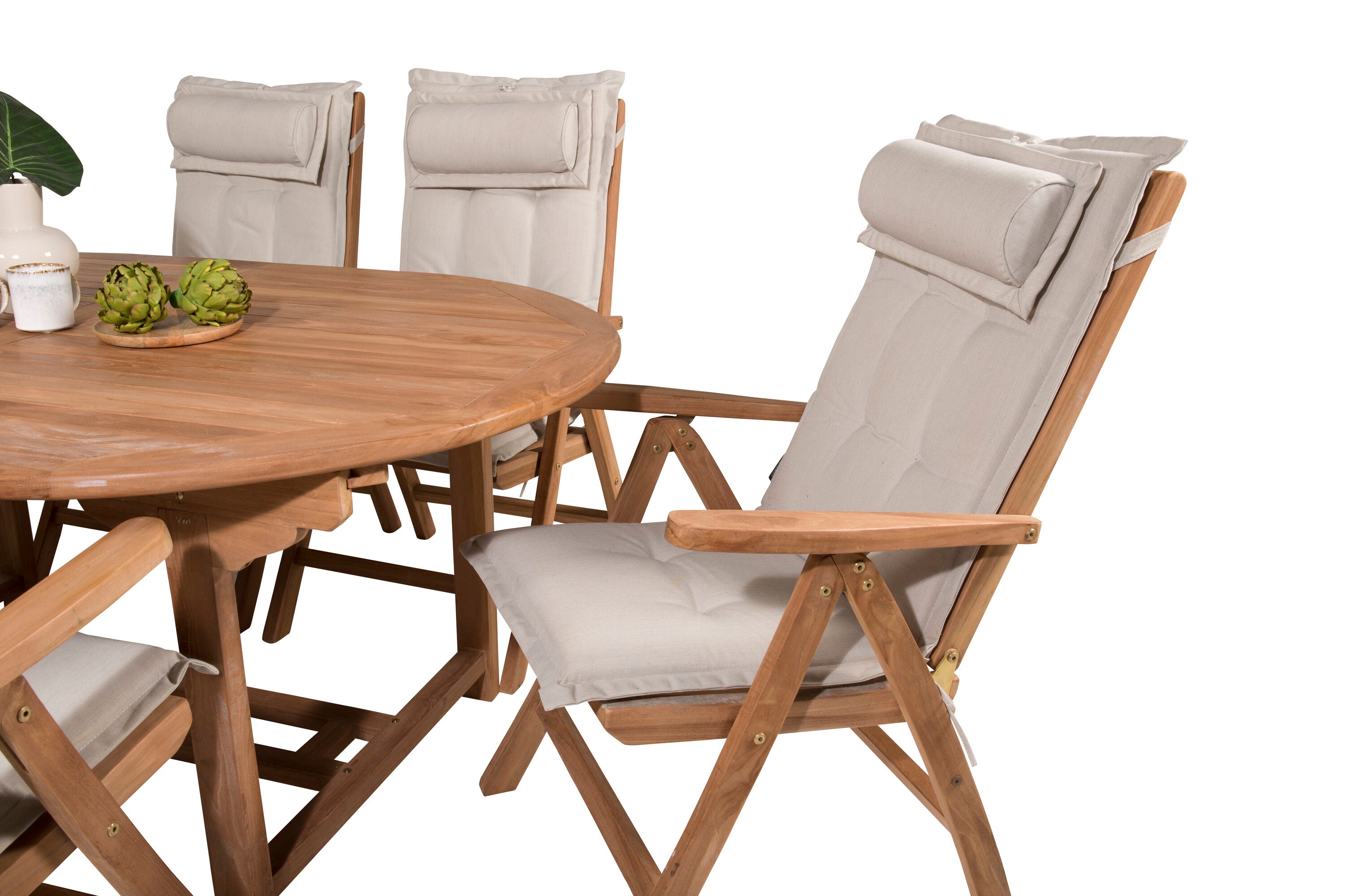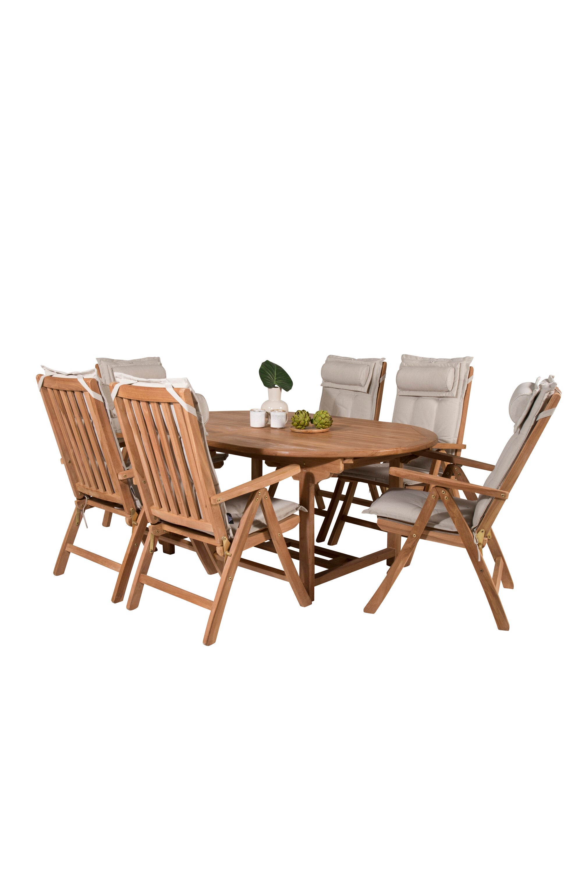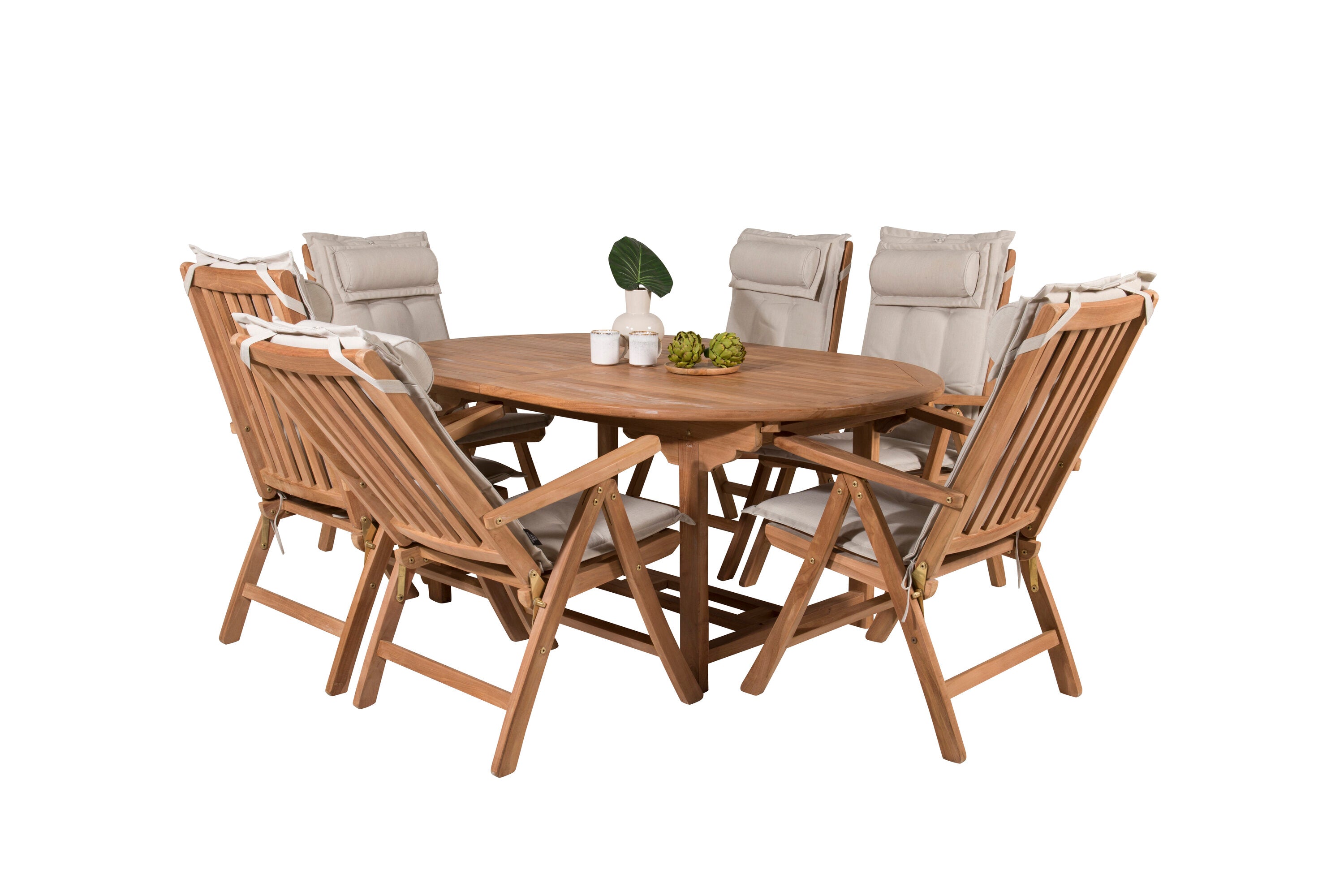 Kenya Oválný jídelní stůl 180/240*120*H75 -Teak+Keňa 5-polohová skládací židle - Teak_6