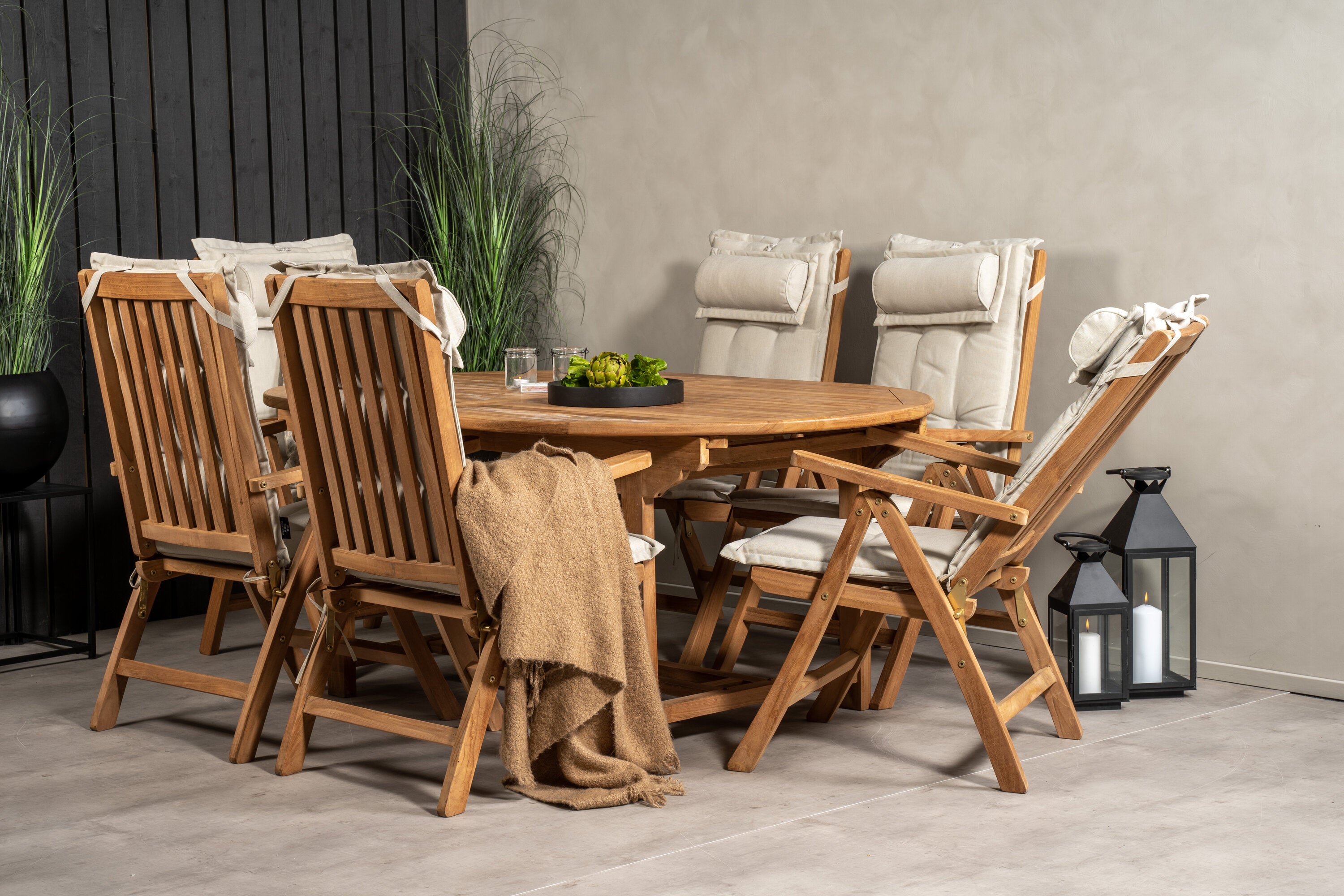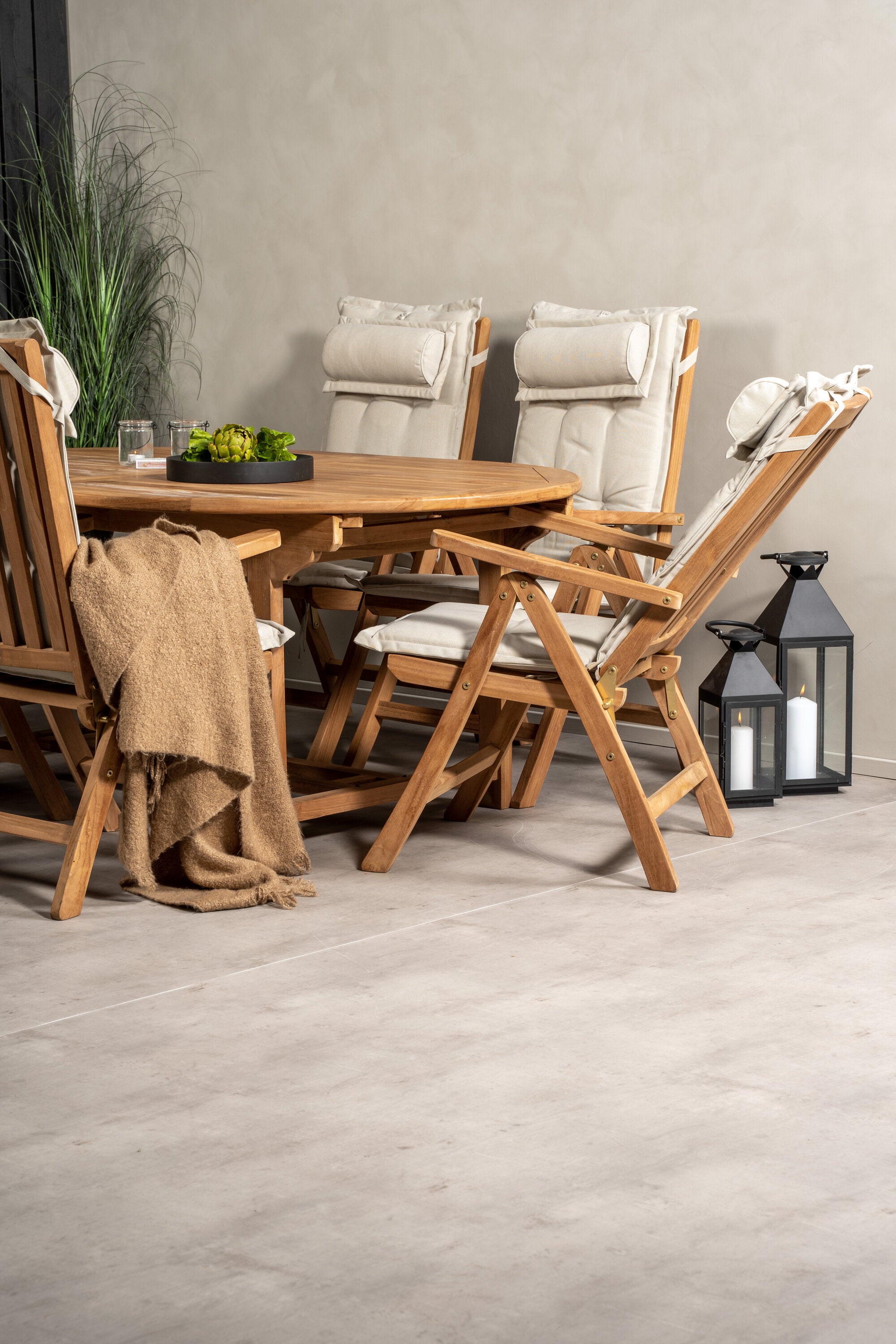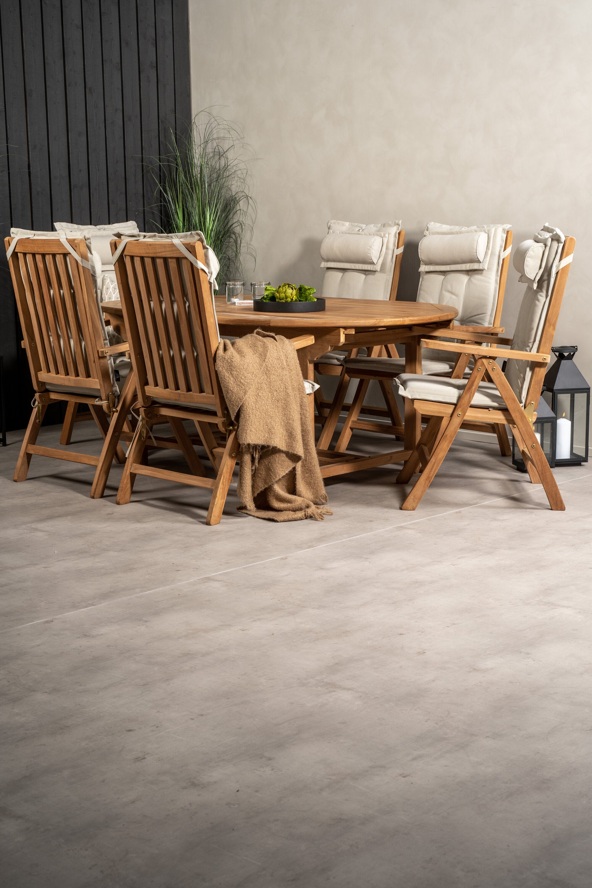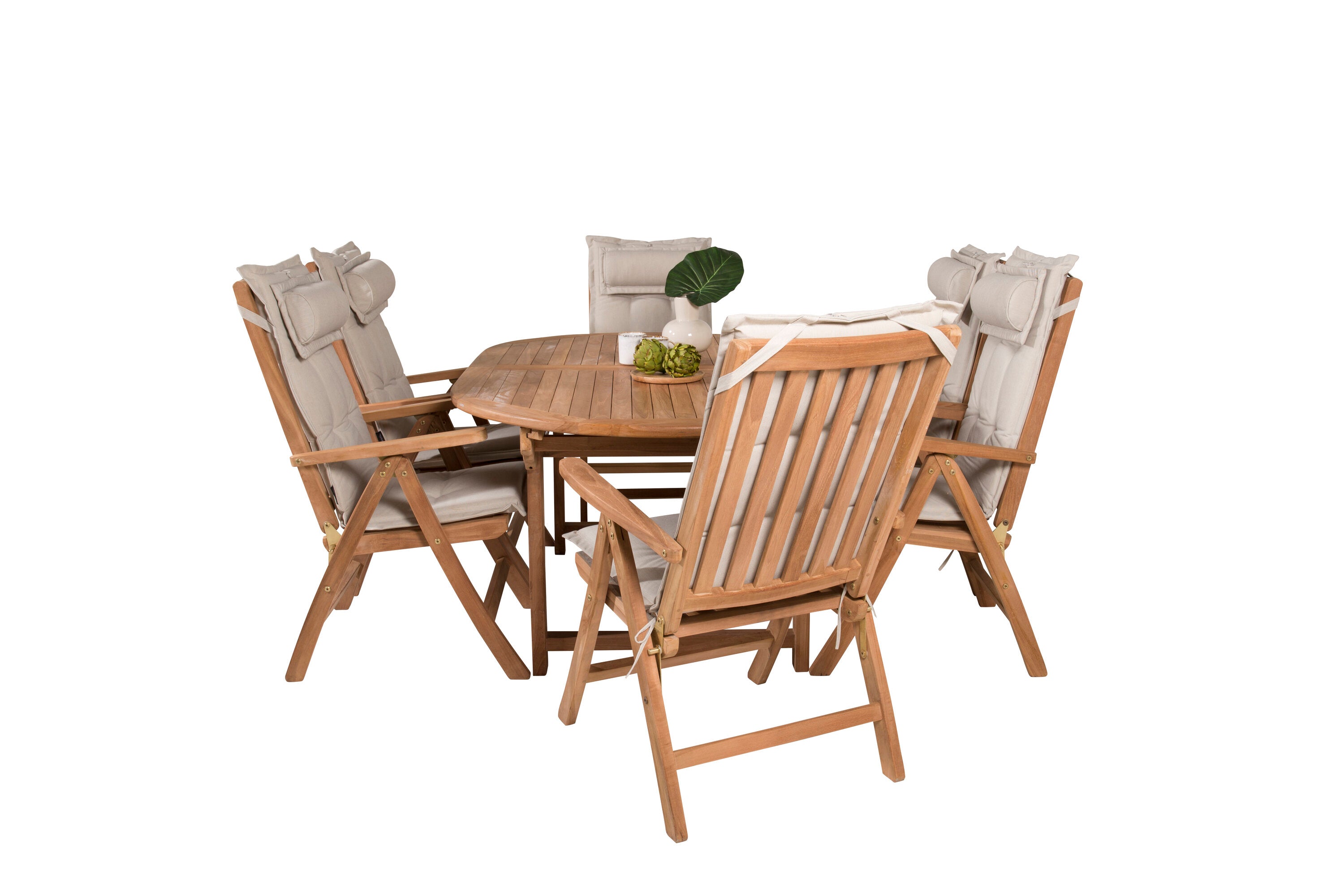 Kenya Oválný jídelní stůl 180/240*120*H75 -Teak+Keňa 5-polohová skládací židle - Teak_6