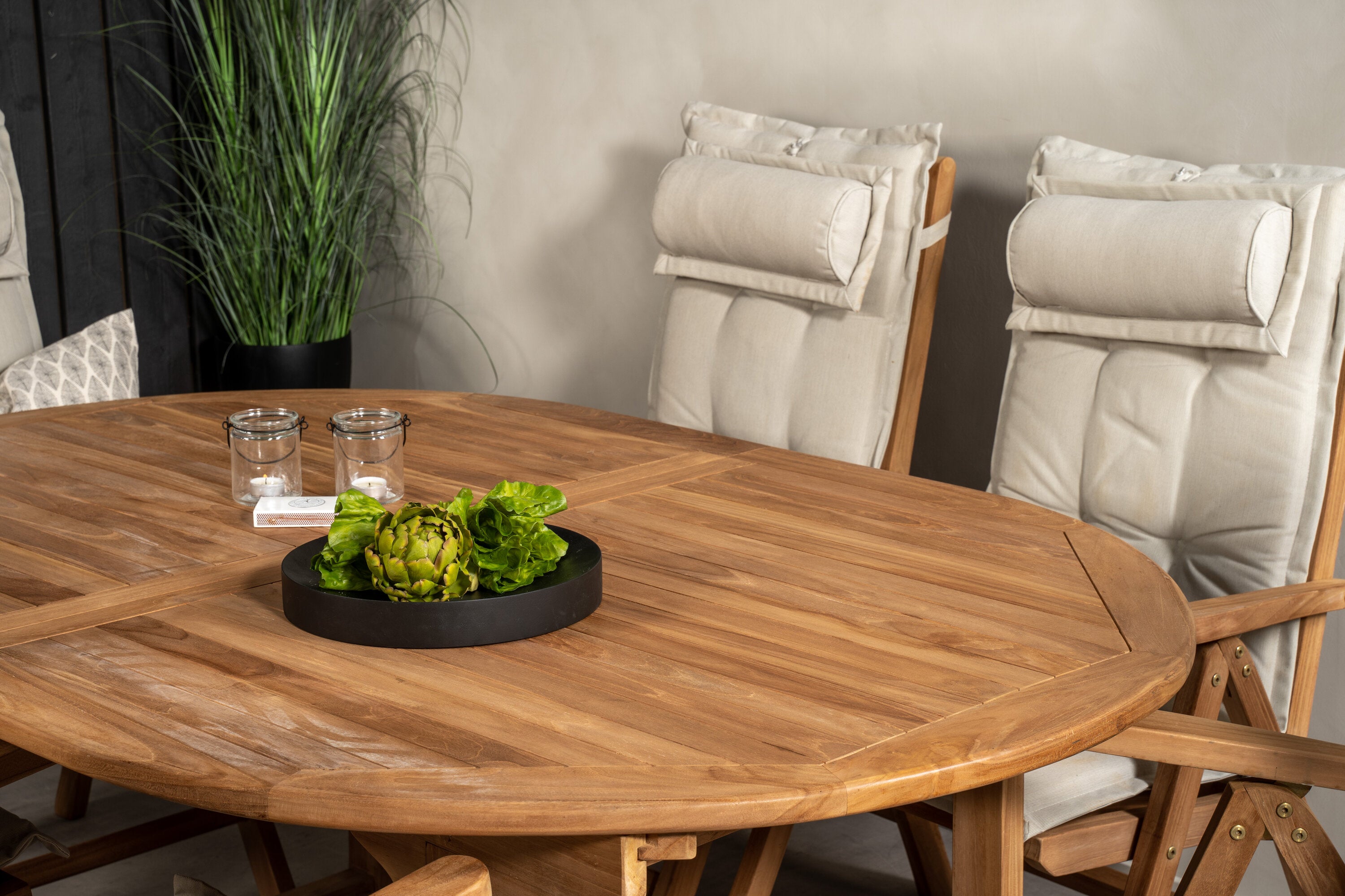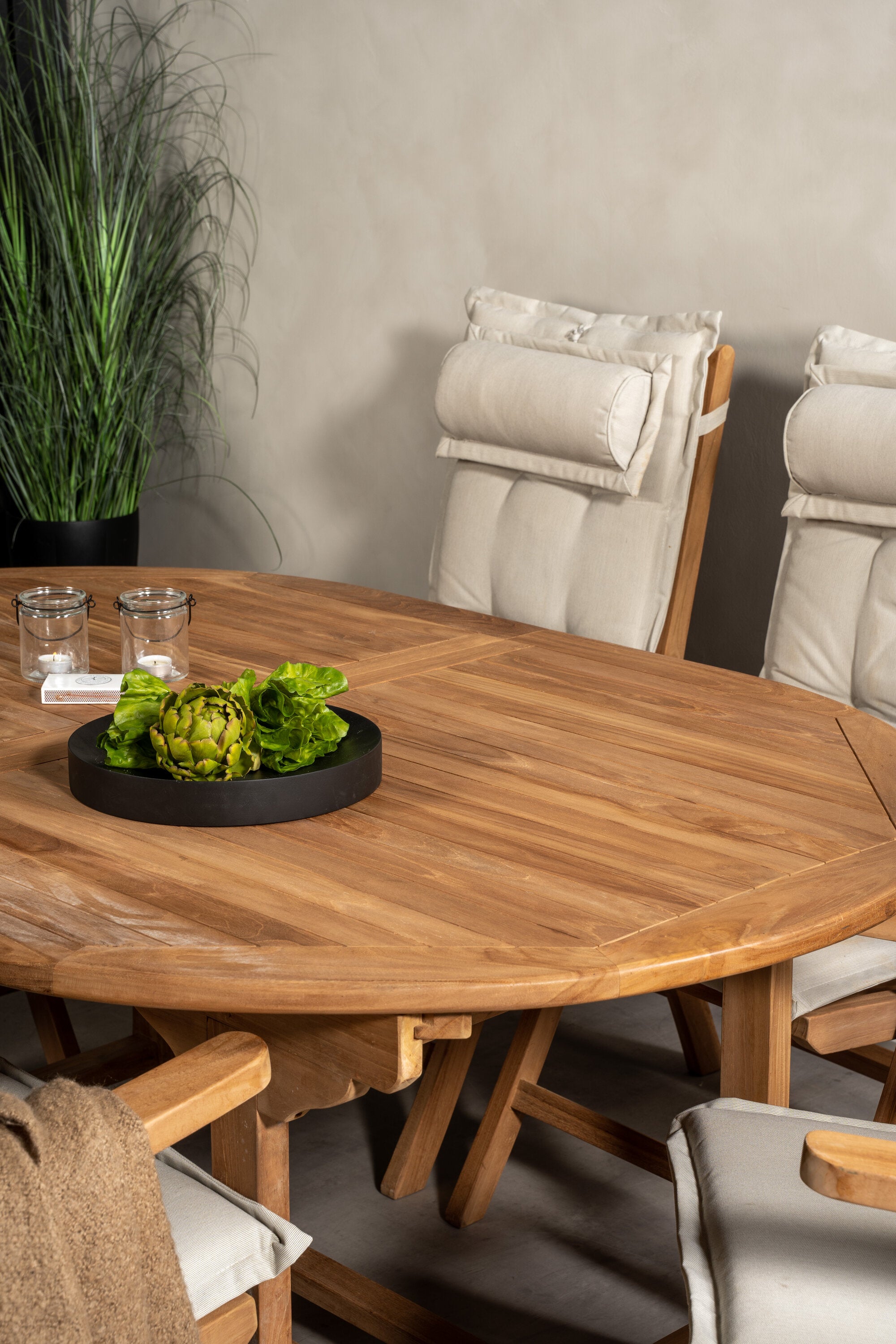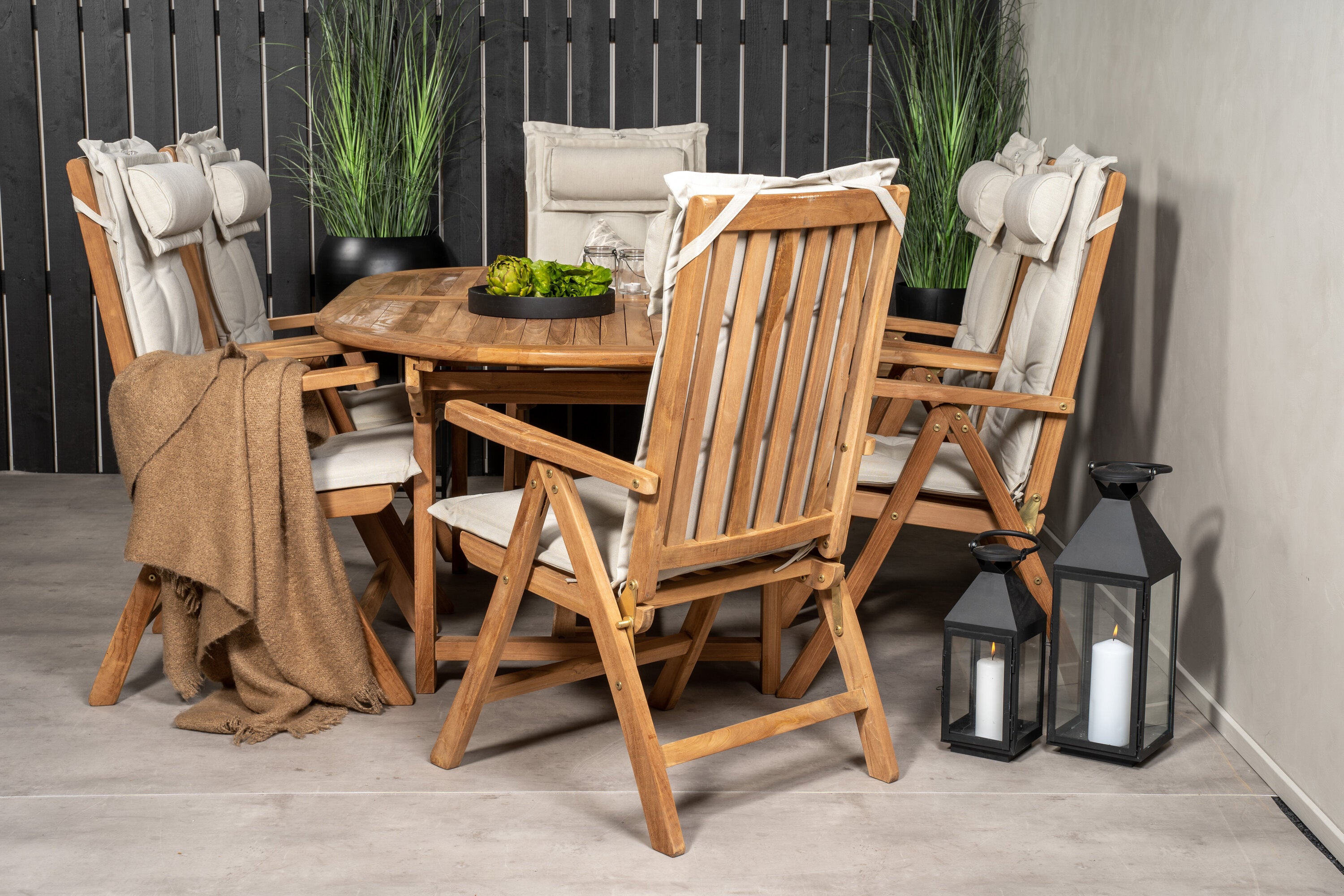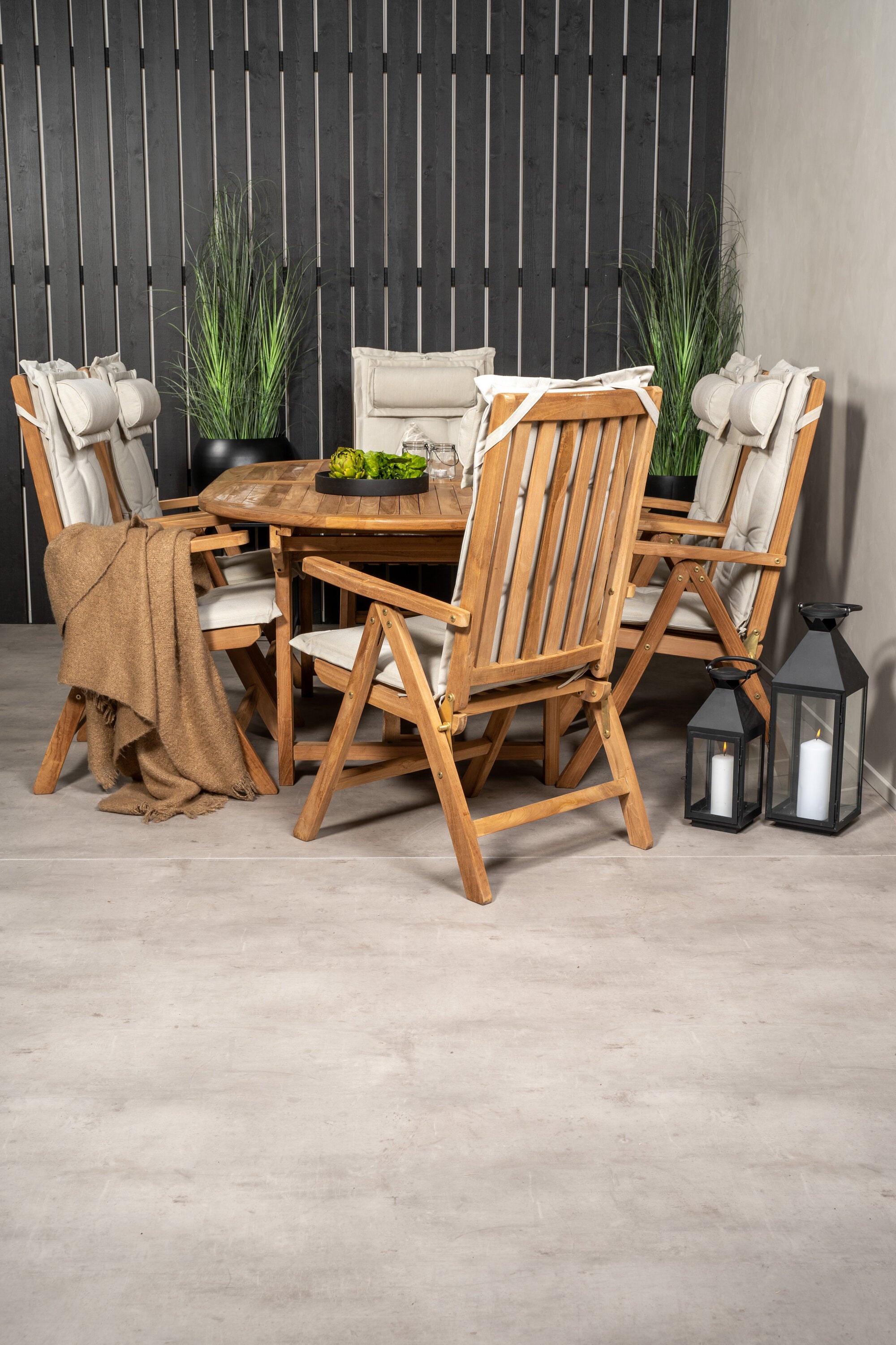 Kenya Oválný jídelní stůl 180/240*120*H75 -Teak+Keňa 5-polohová skládací židle - Teak_6