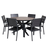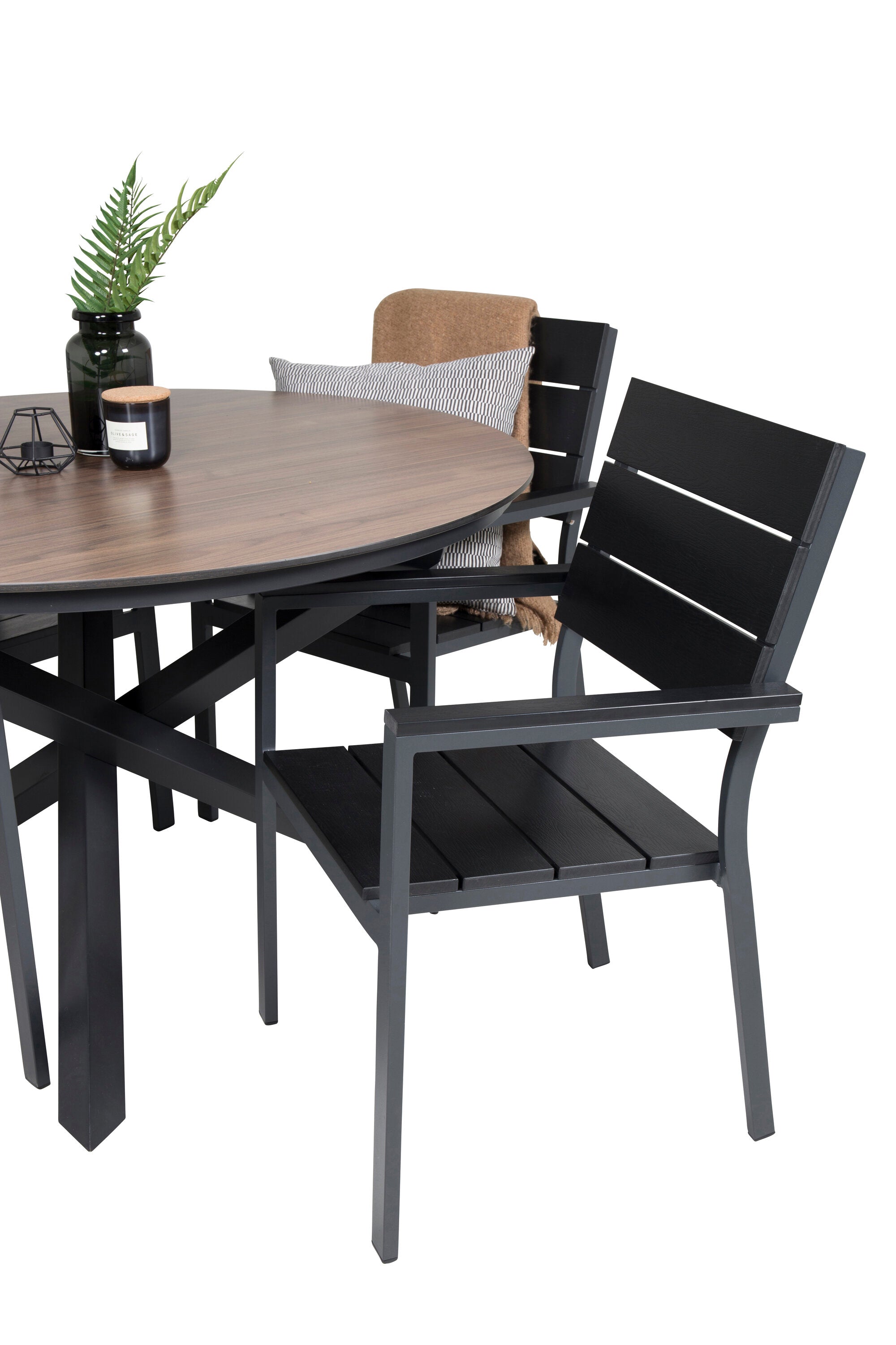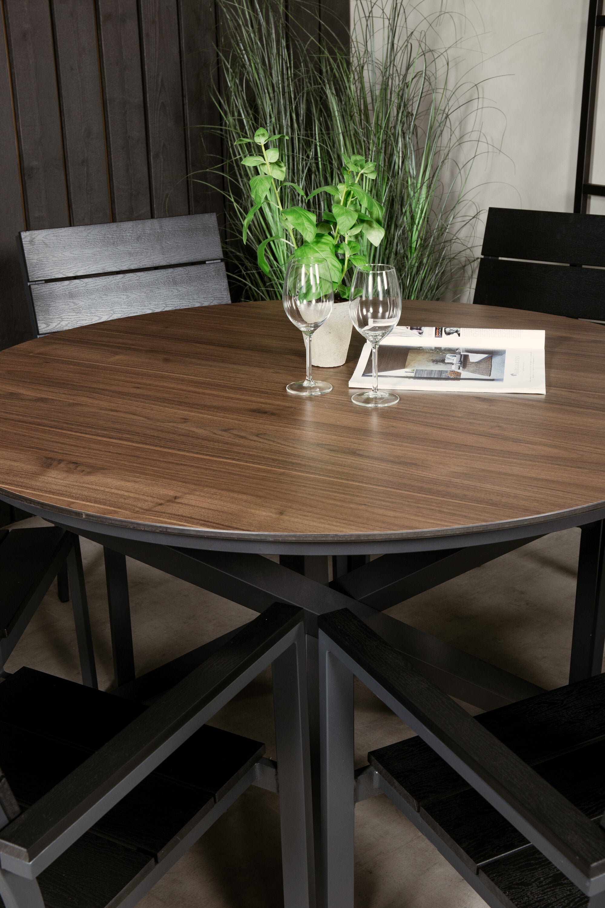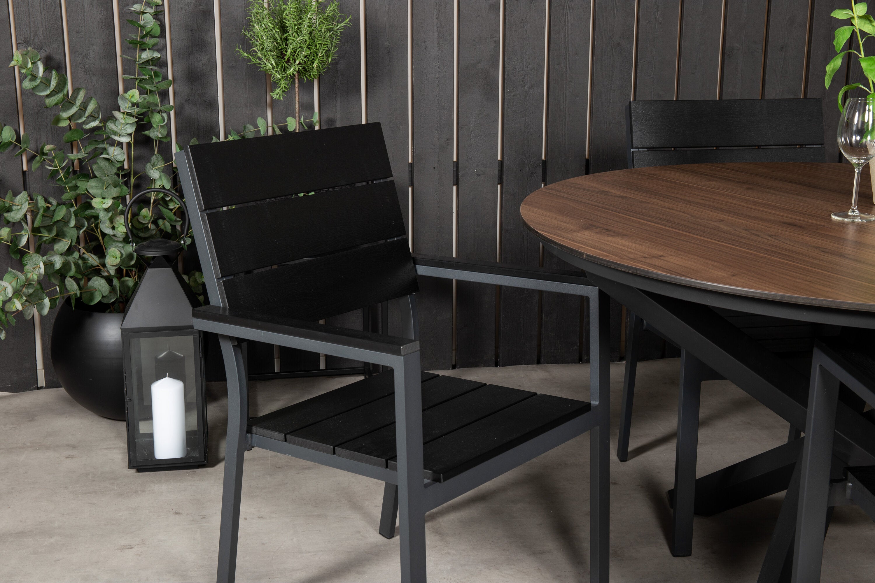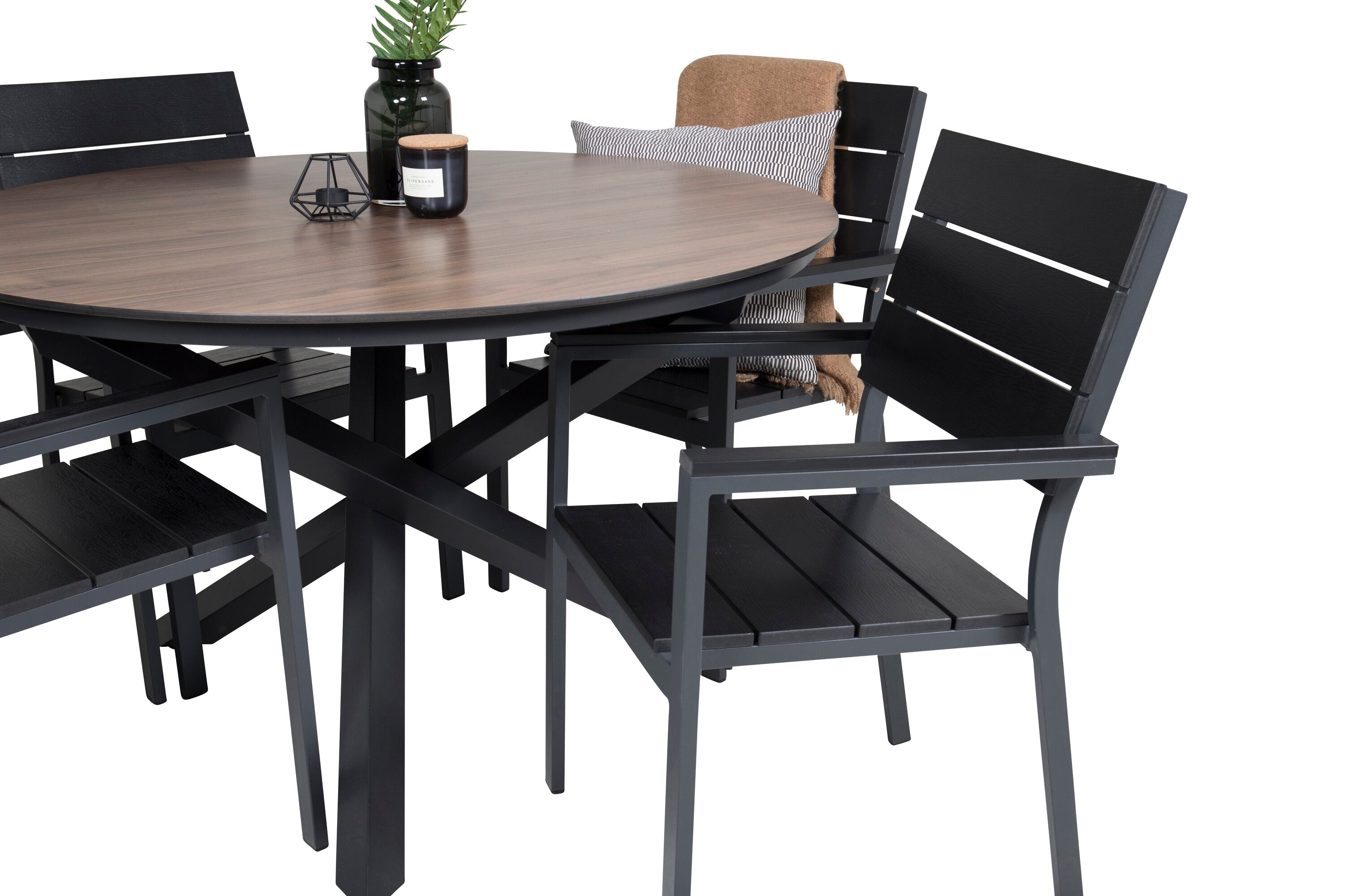Kulatý jídelní stůl Llama 120 - černý Alu / Hnědý HPL - Židle na patro (stohovatelné) - Black Alu / Black Aintwood 6