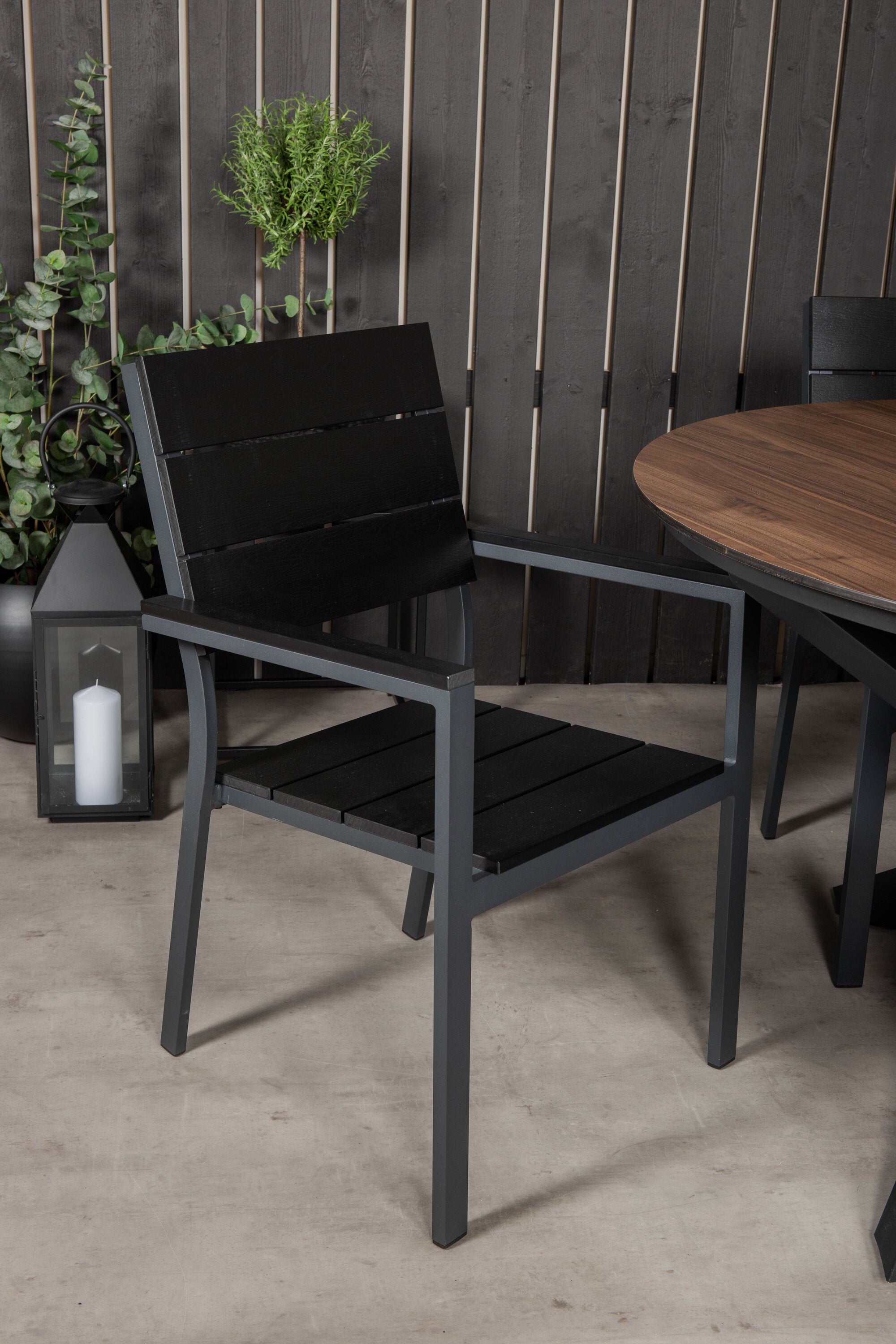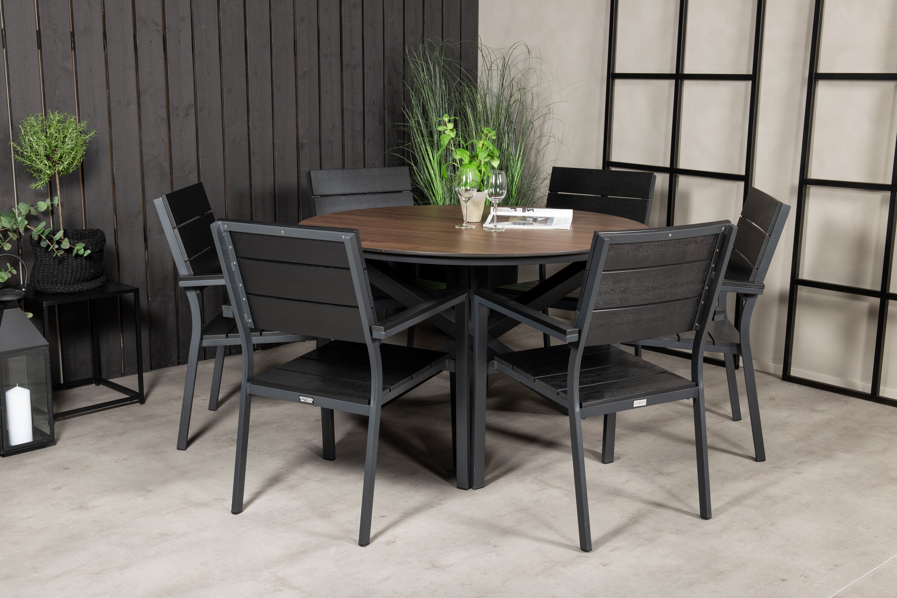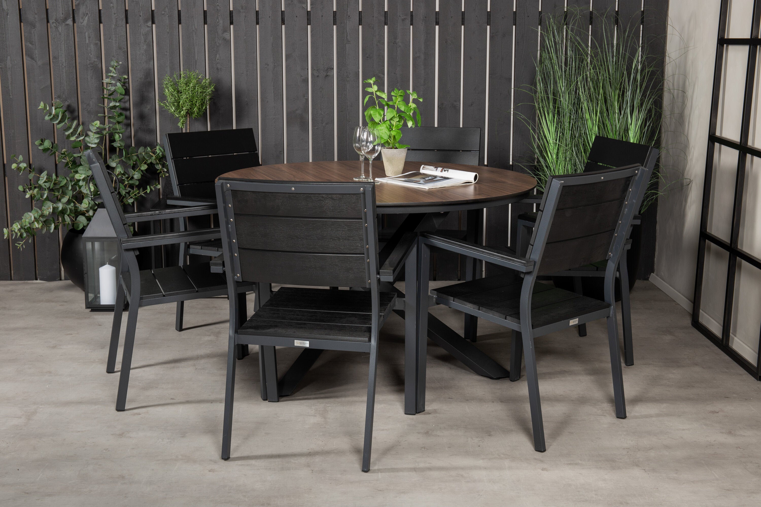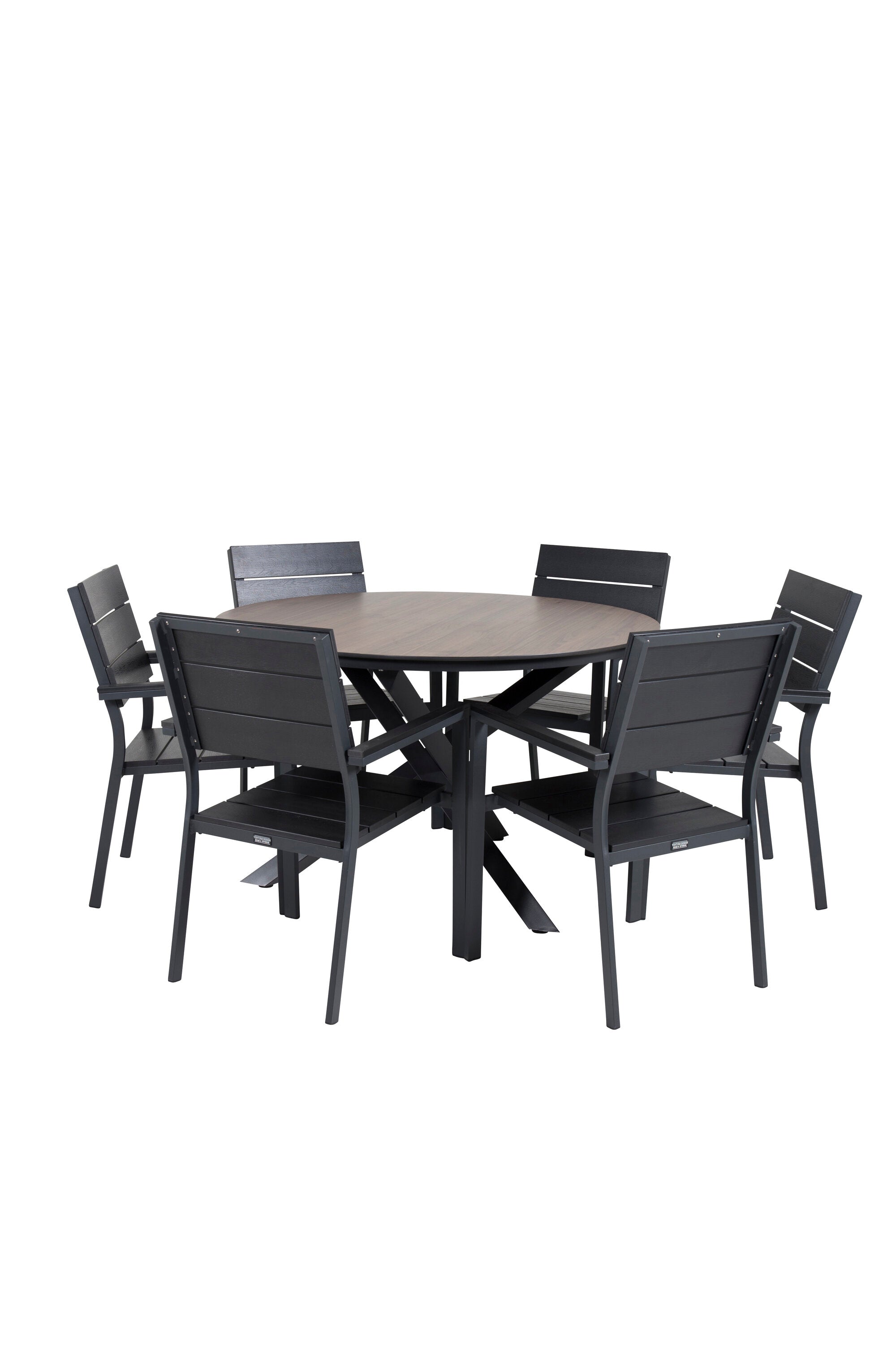 Kulatý jídelní stůl Llama 120 - černý Alu / Hnědý HPL - Židle na patro (stohovatelné) - Black Alu / Black Aintwood 6