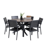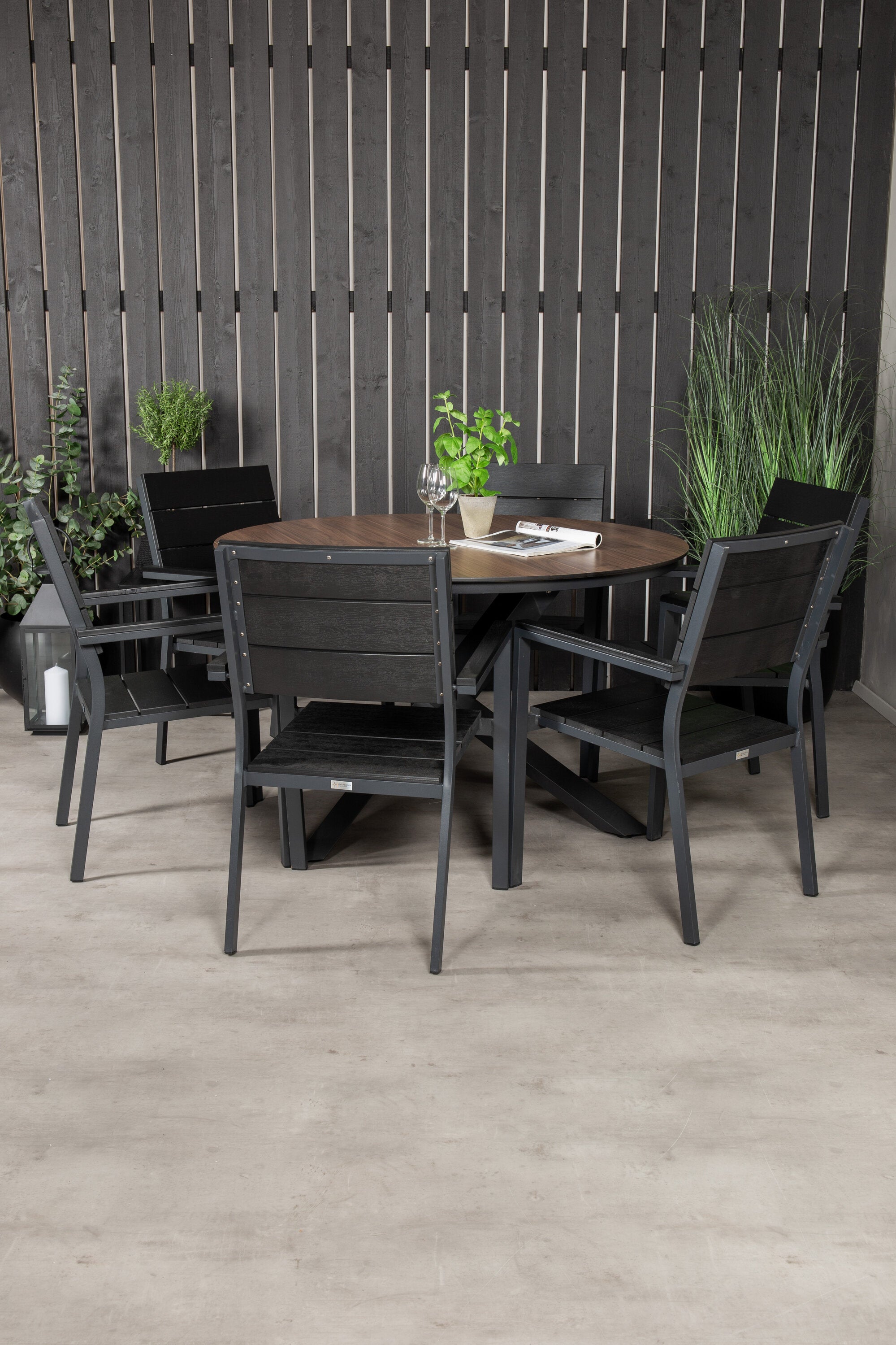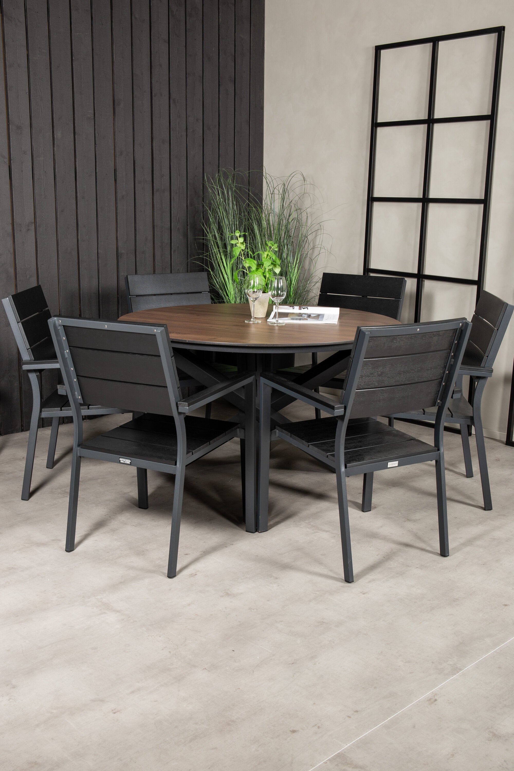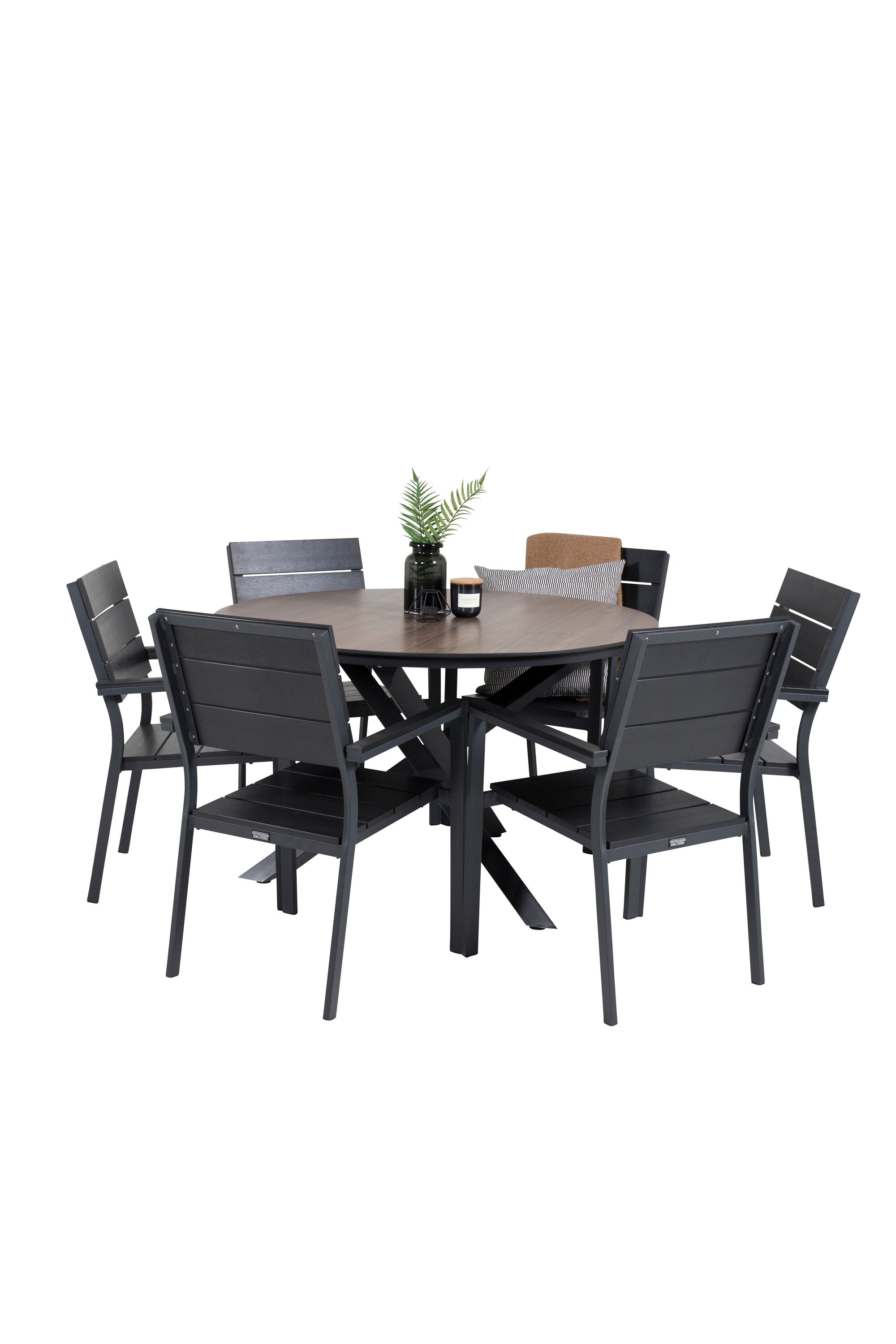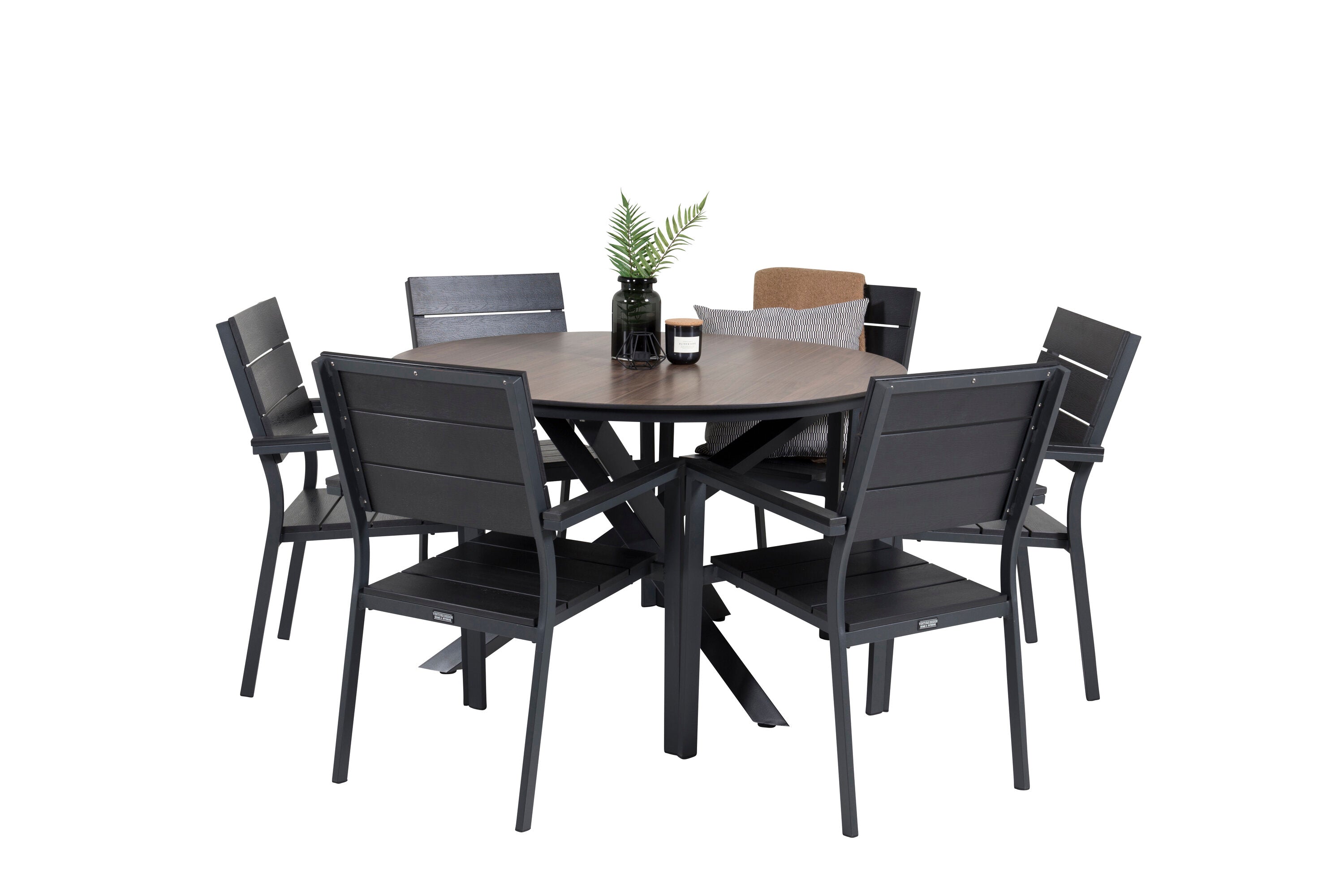 Kulatý jídelní stůl Llama 120 - černý Alu / Hnědý HPL - Židle na patro (stohovatelné) - Black Alu / Black Aintwood 6