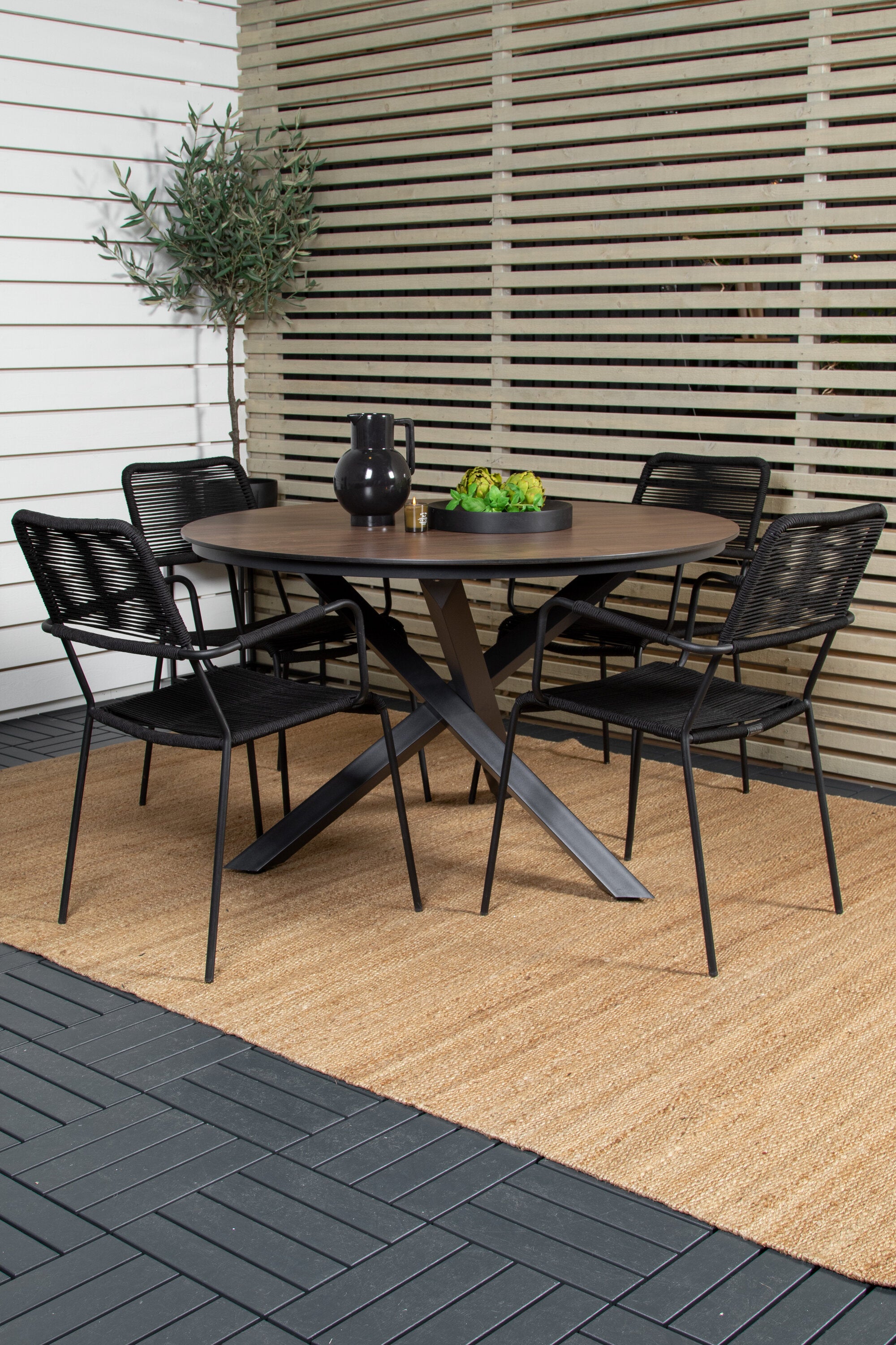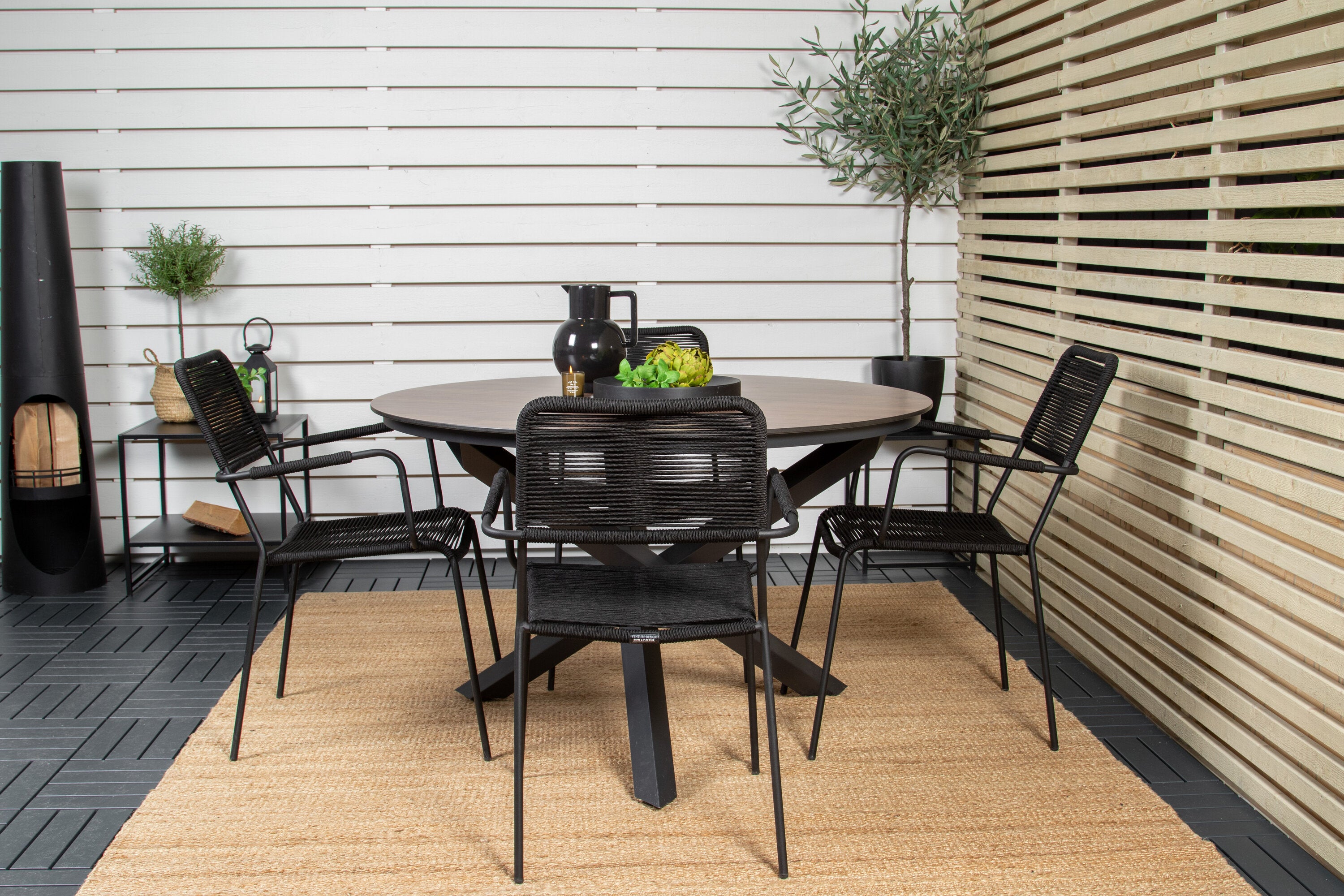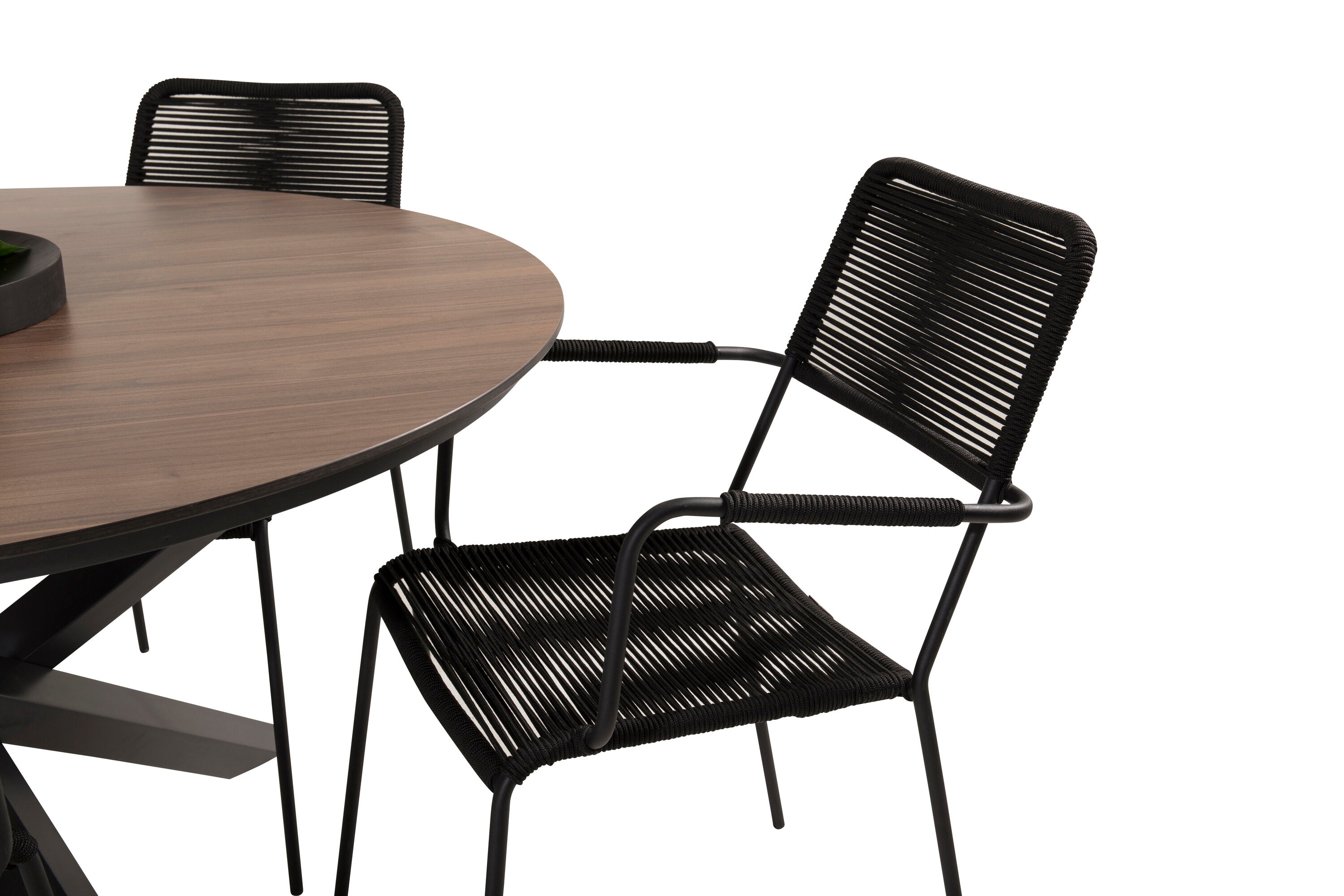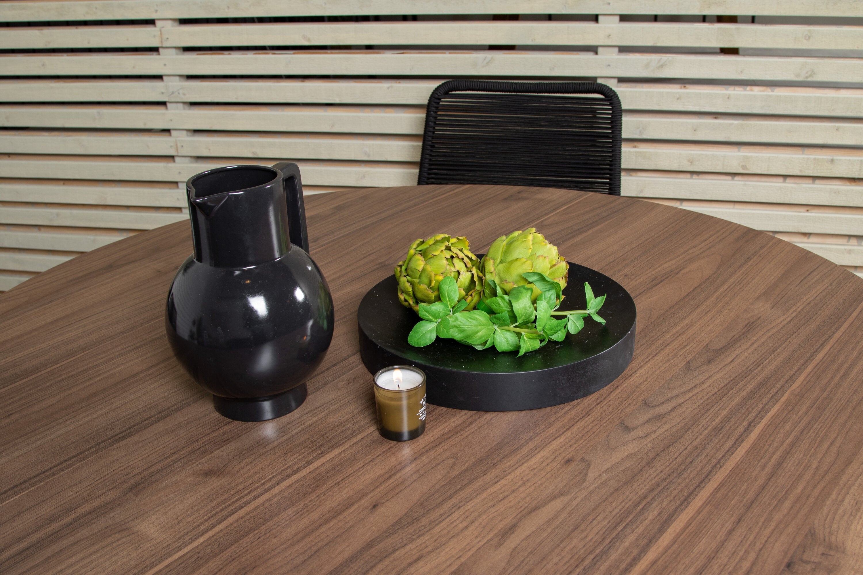 Kulatý jídelní stůl Llama 140 - Černá Alu / Hnědá HPL+Lindos Křeslo - Černá Alu / Black Rope_4