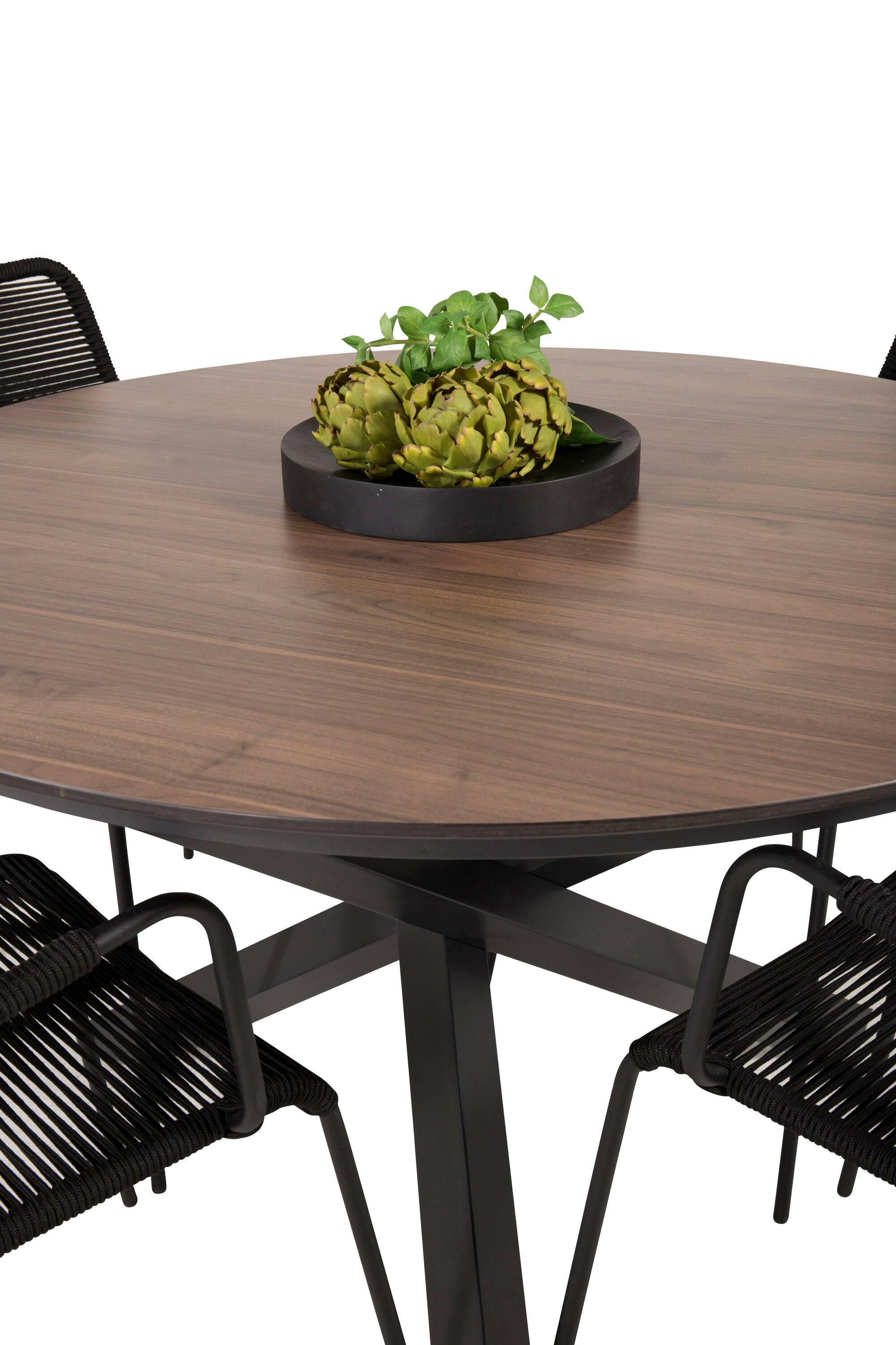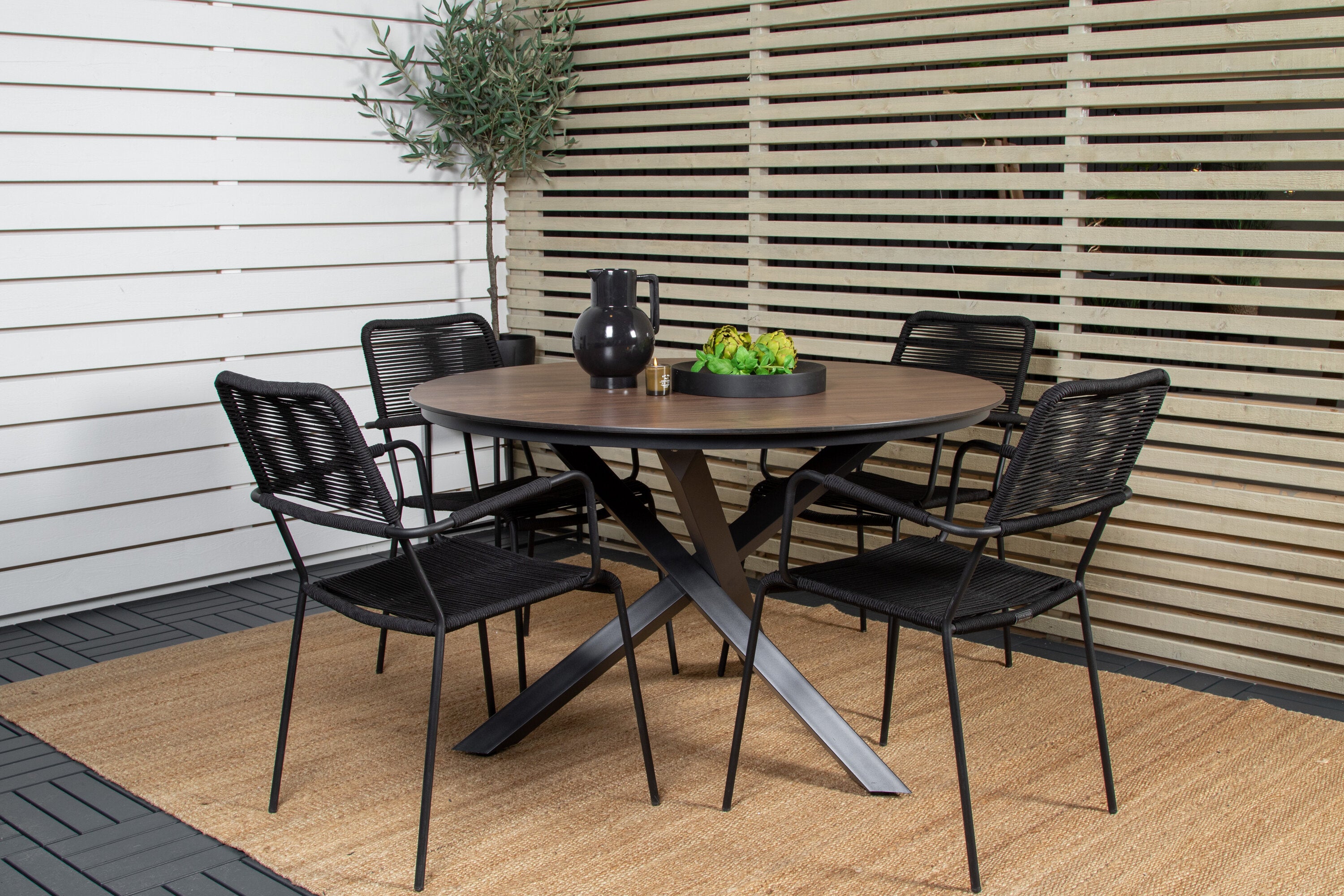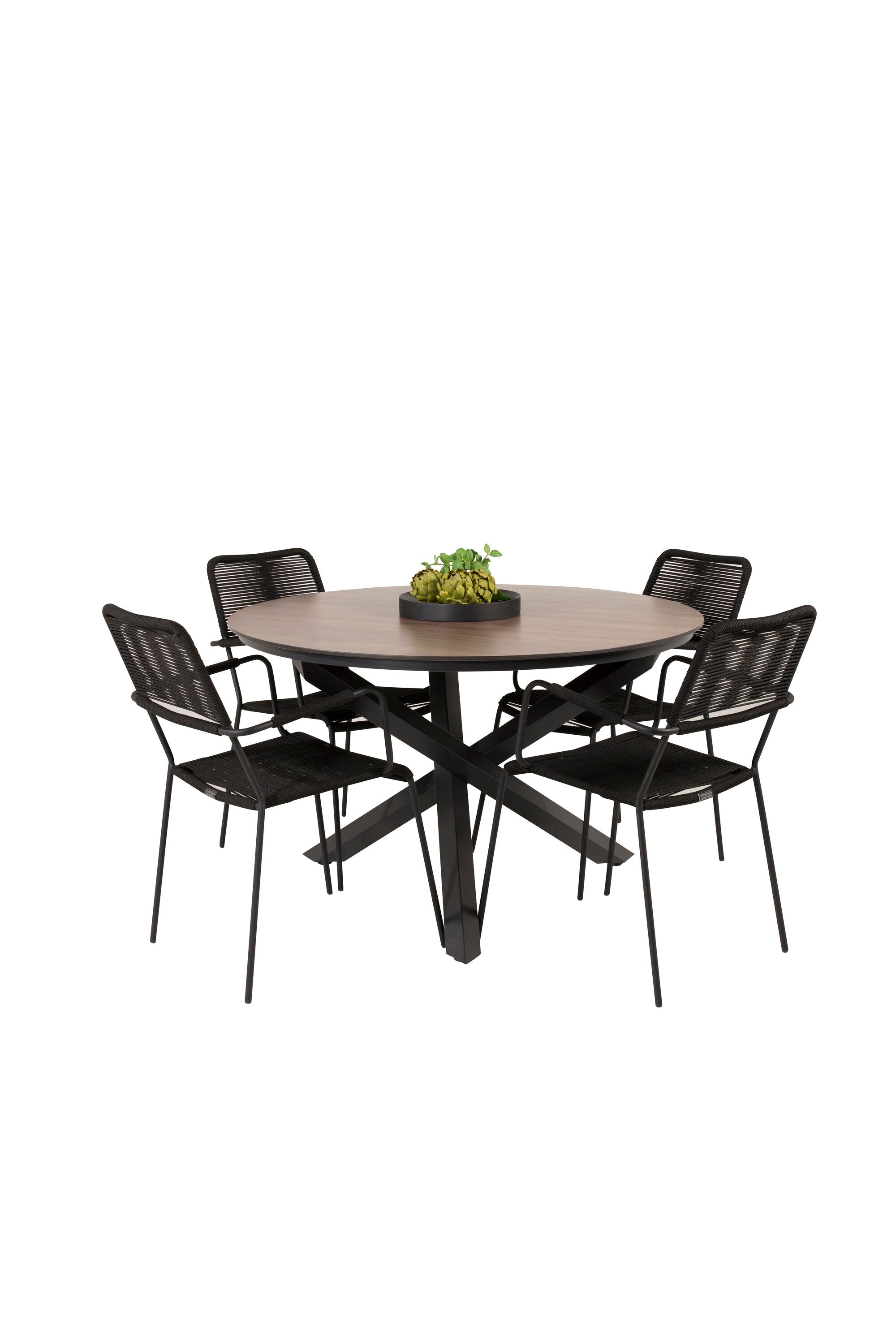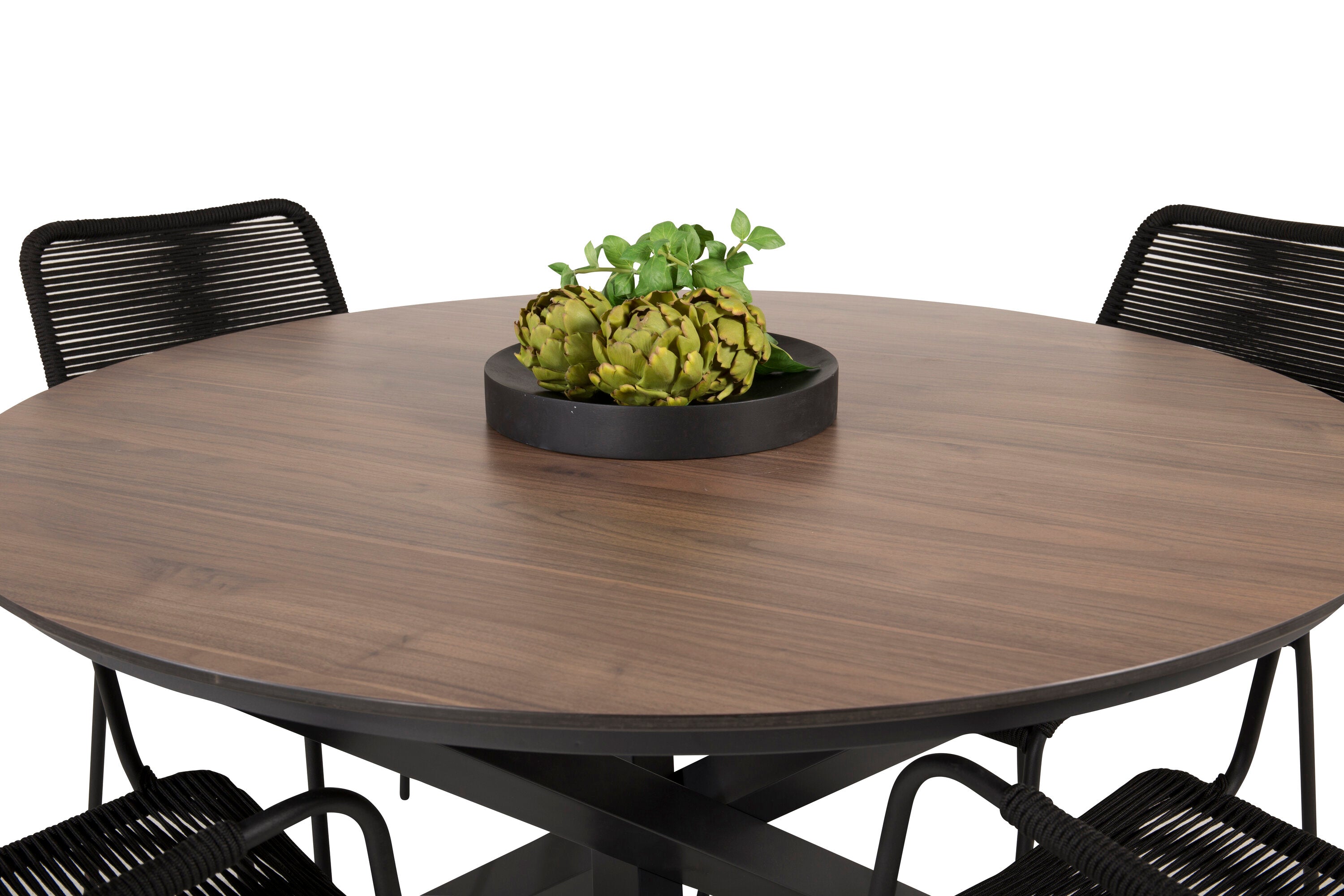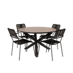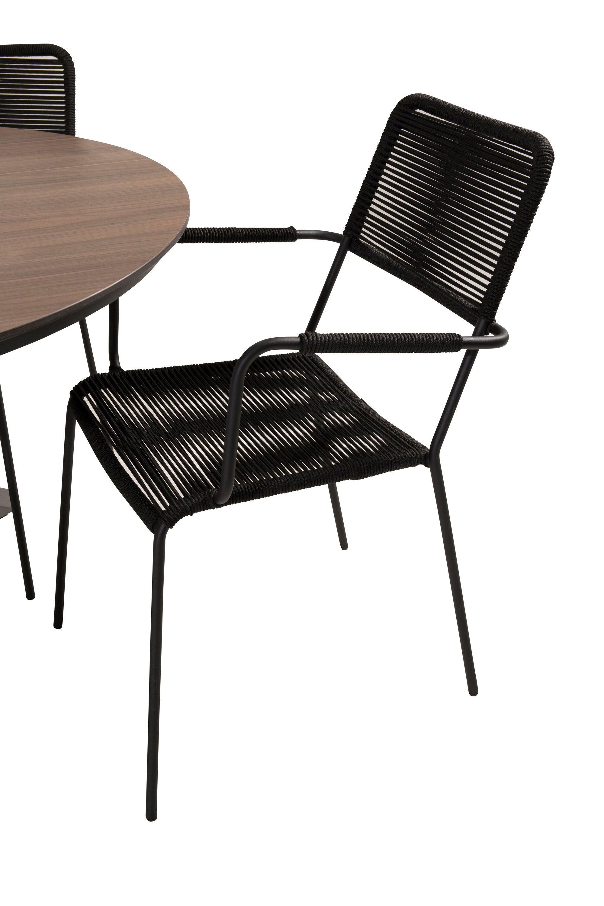 Kulatý jídelní stůl Llama 140 - Černá Alu / Hnědá HPL+Lindos Křeslo - Černá Alu / Black Rope_4