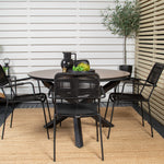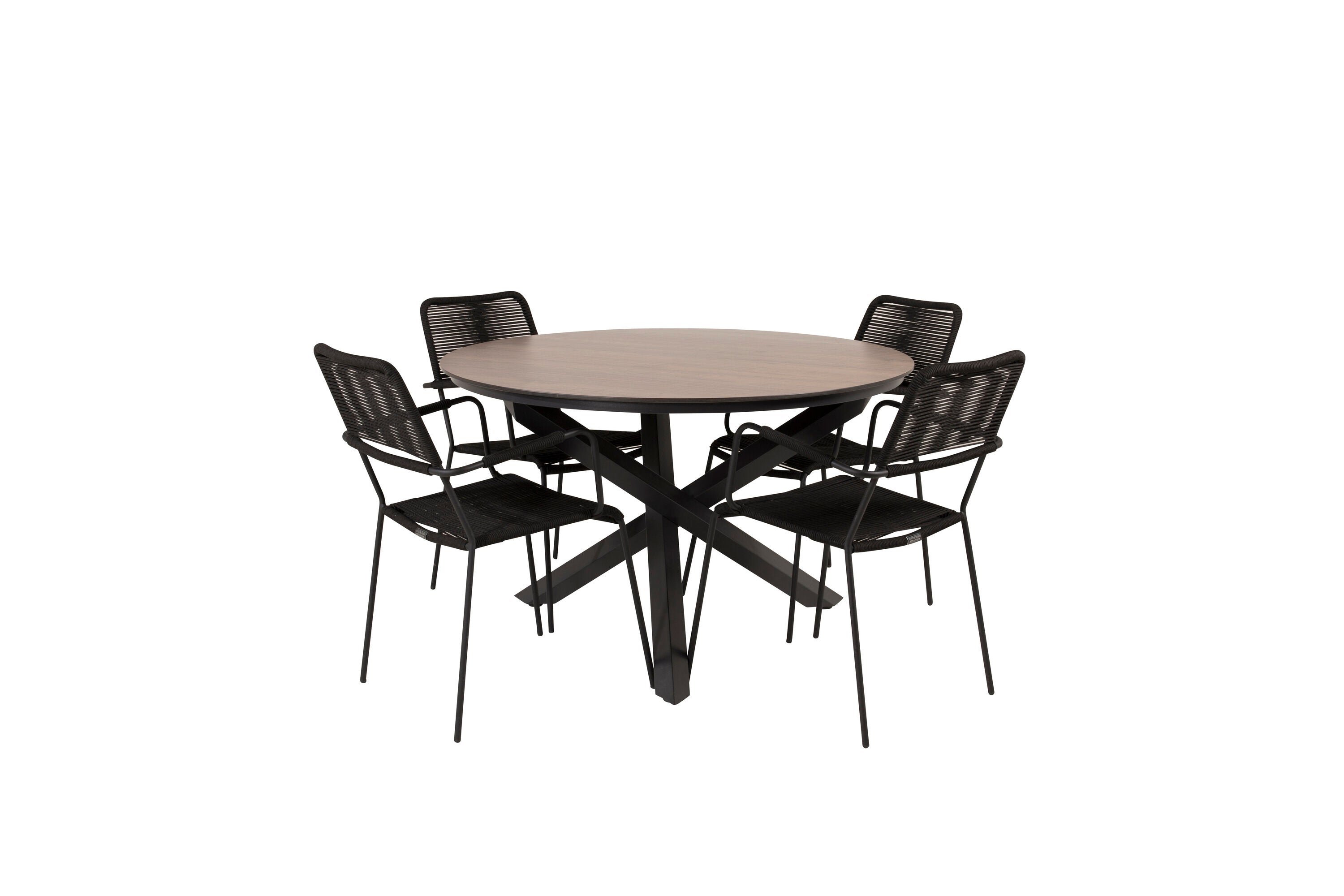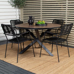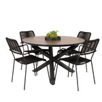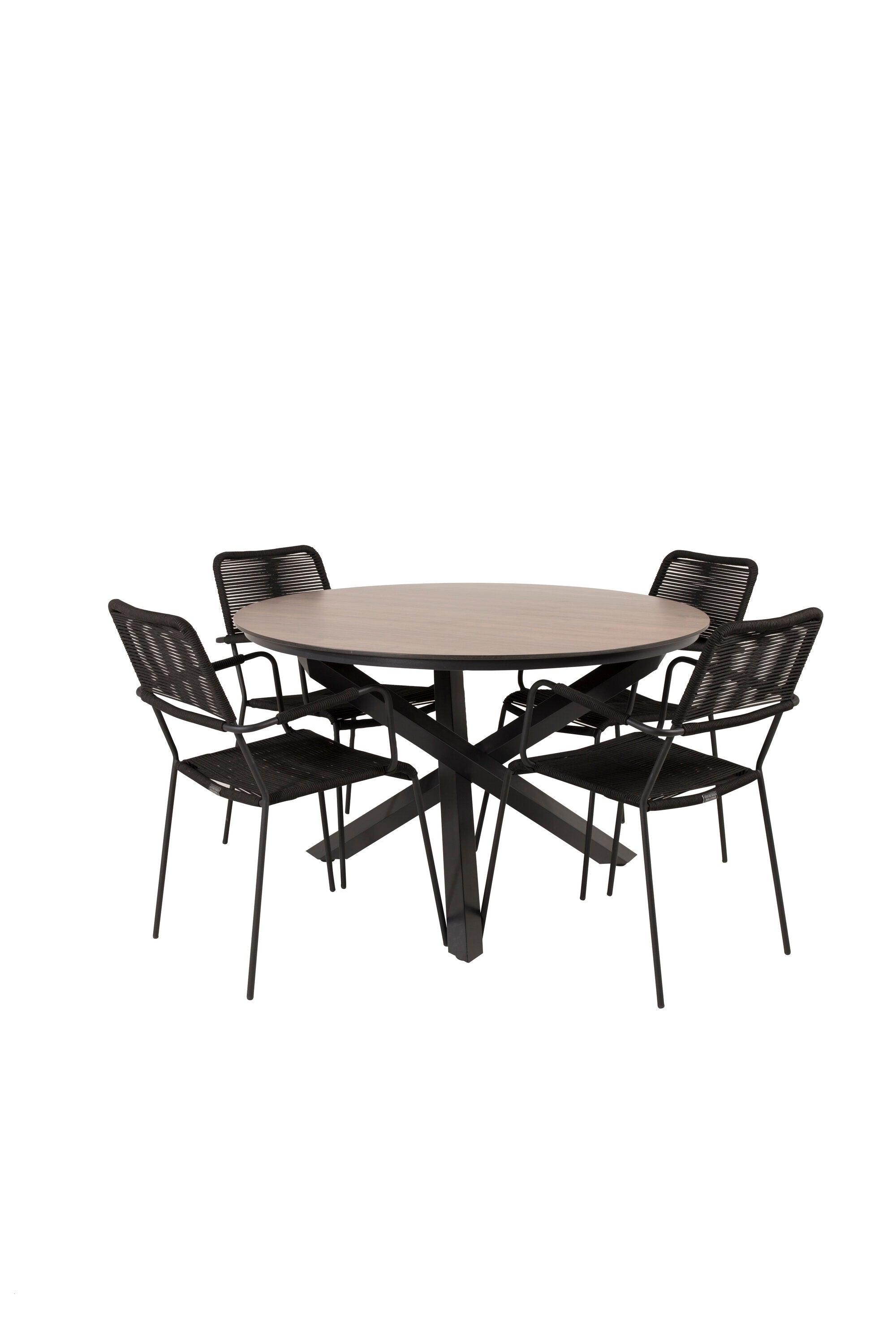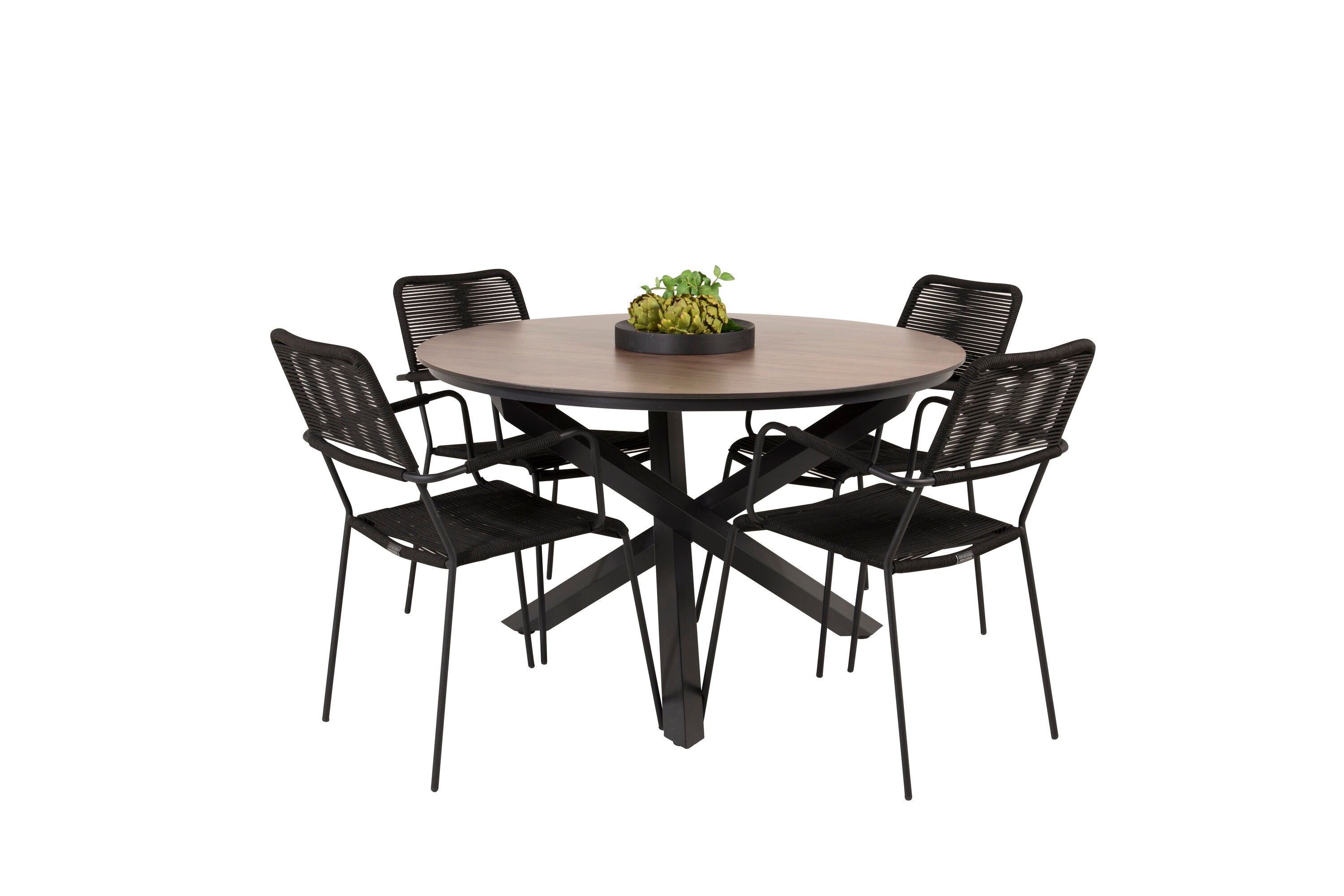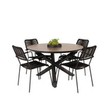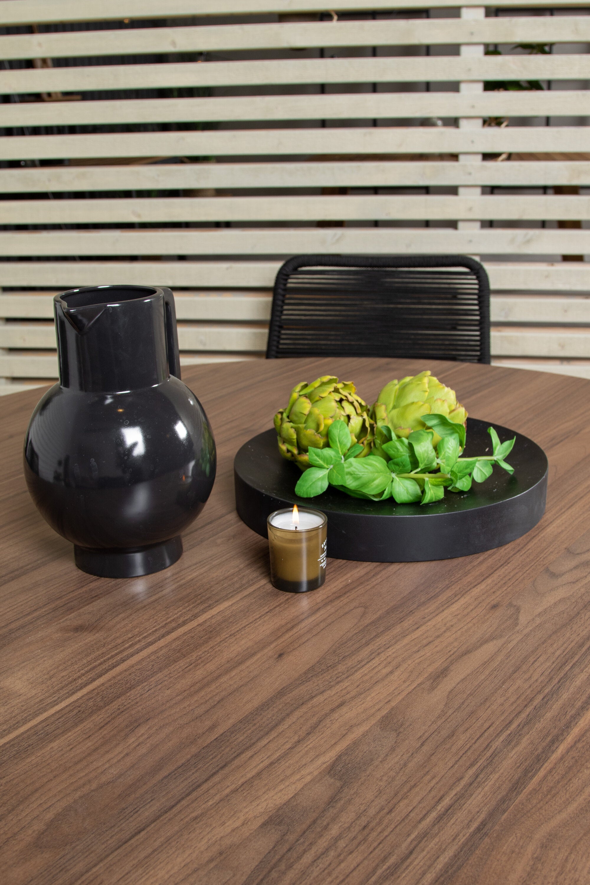 Kulatý jídelní stůl Llama 140 - Černá Alu / Hnědá HPL+Lindos Křeslo - Černá Alu / Black Rope_4