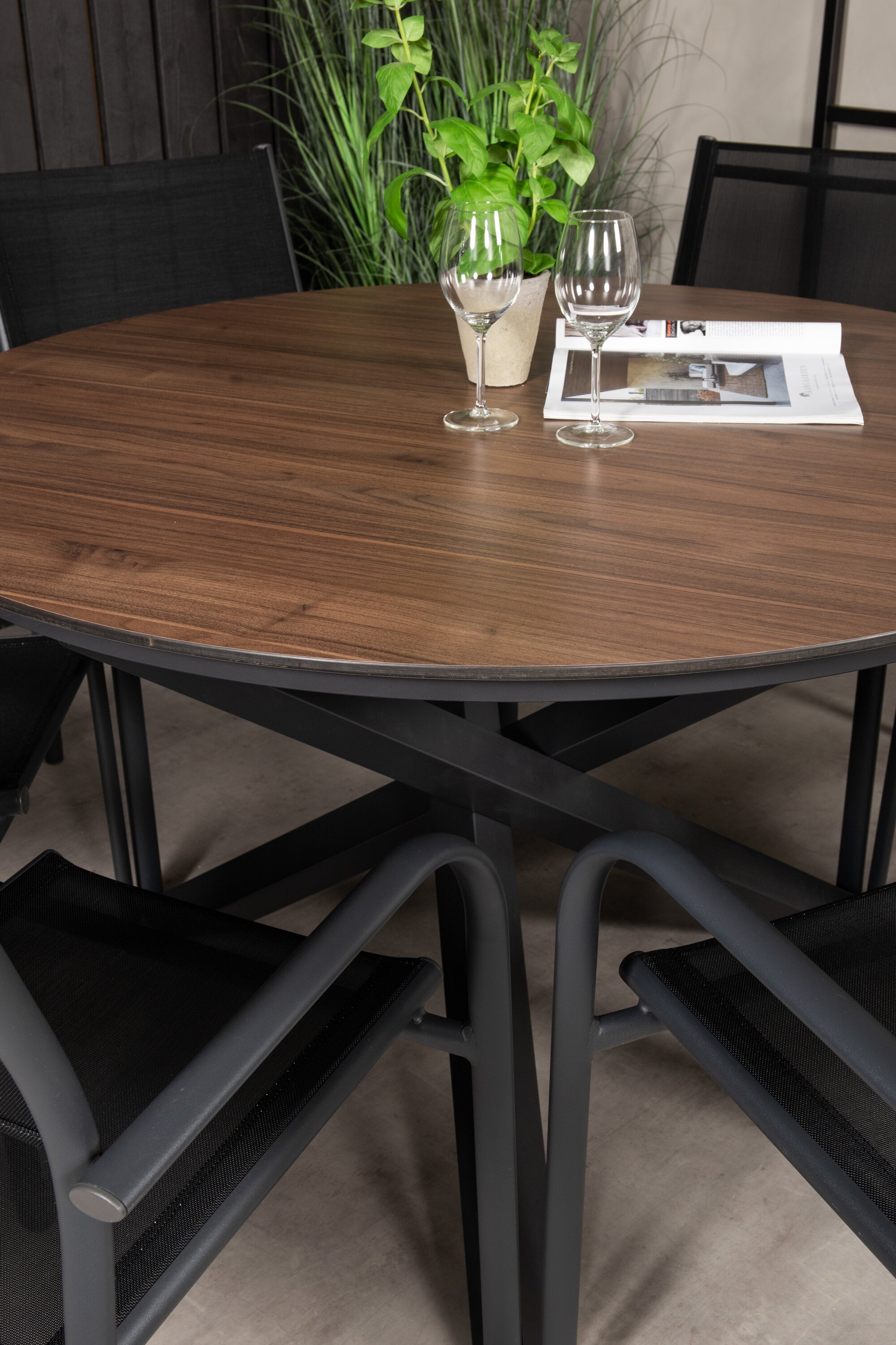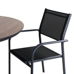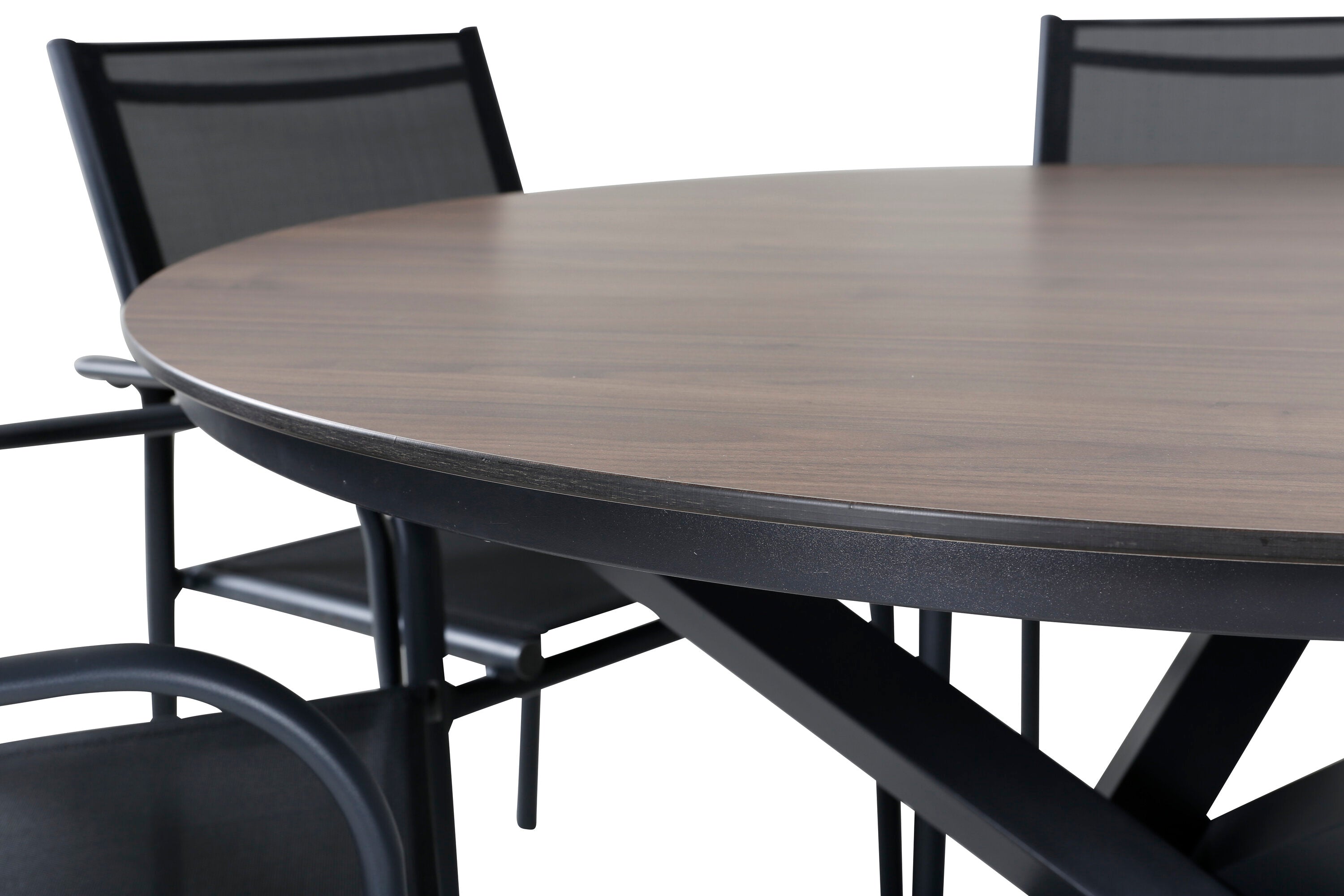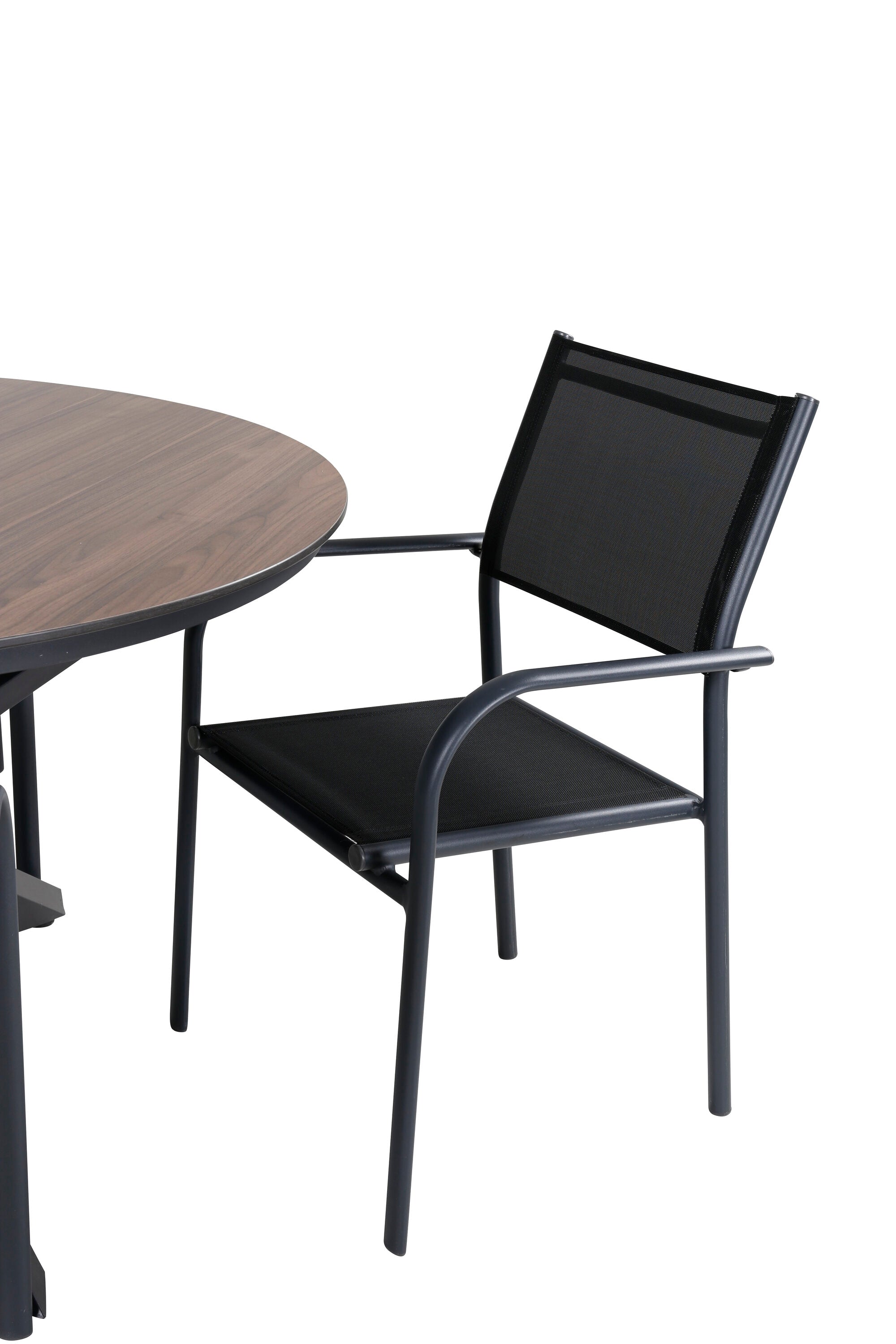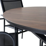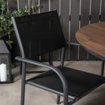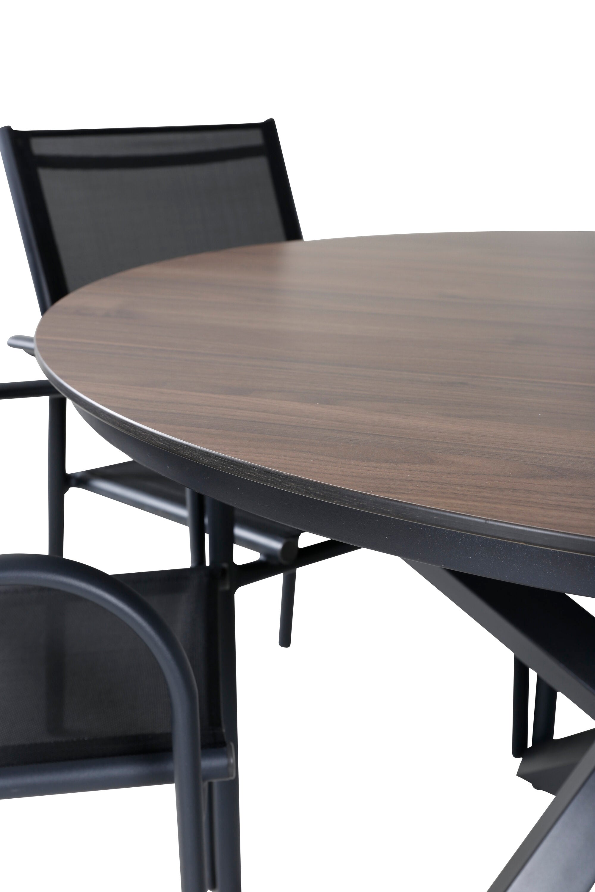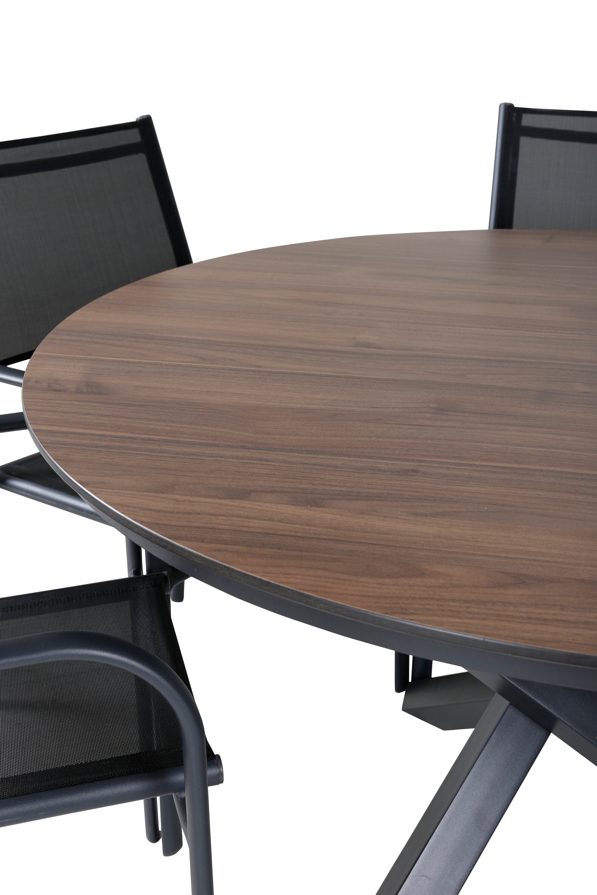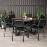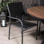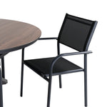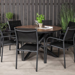 Kulatý jídelní stůl Llama 140 - Černá Alu / Hnědá HPL+Santorini područková židle (stohovatelné) - Černá Alu / Černá Textilene_6