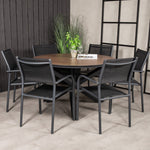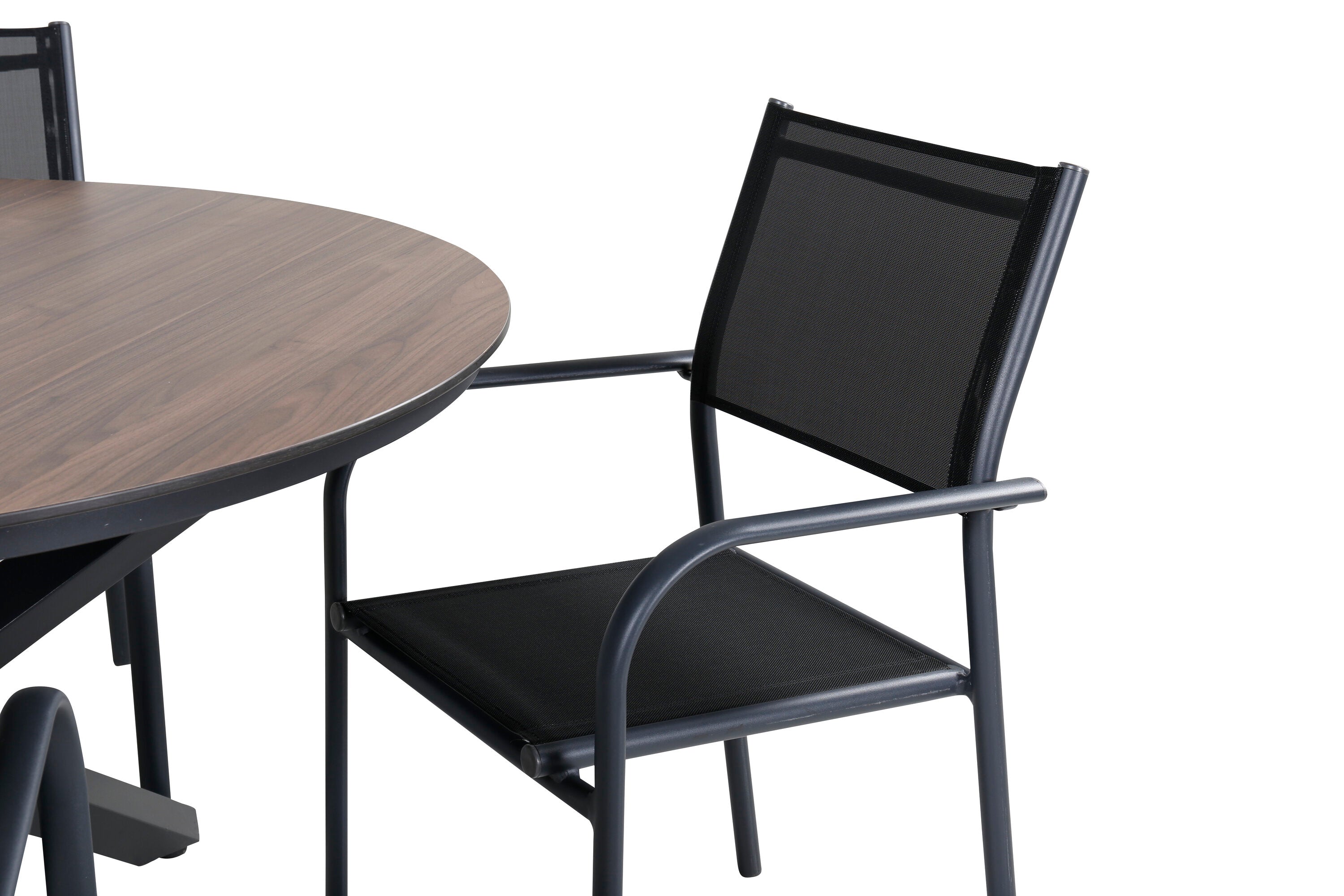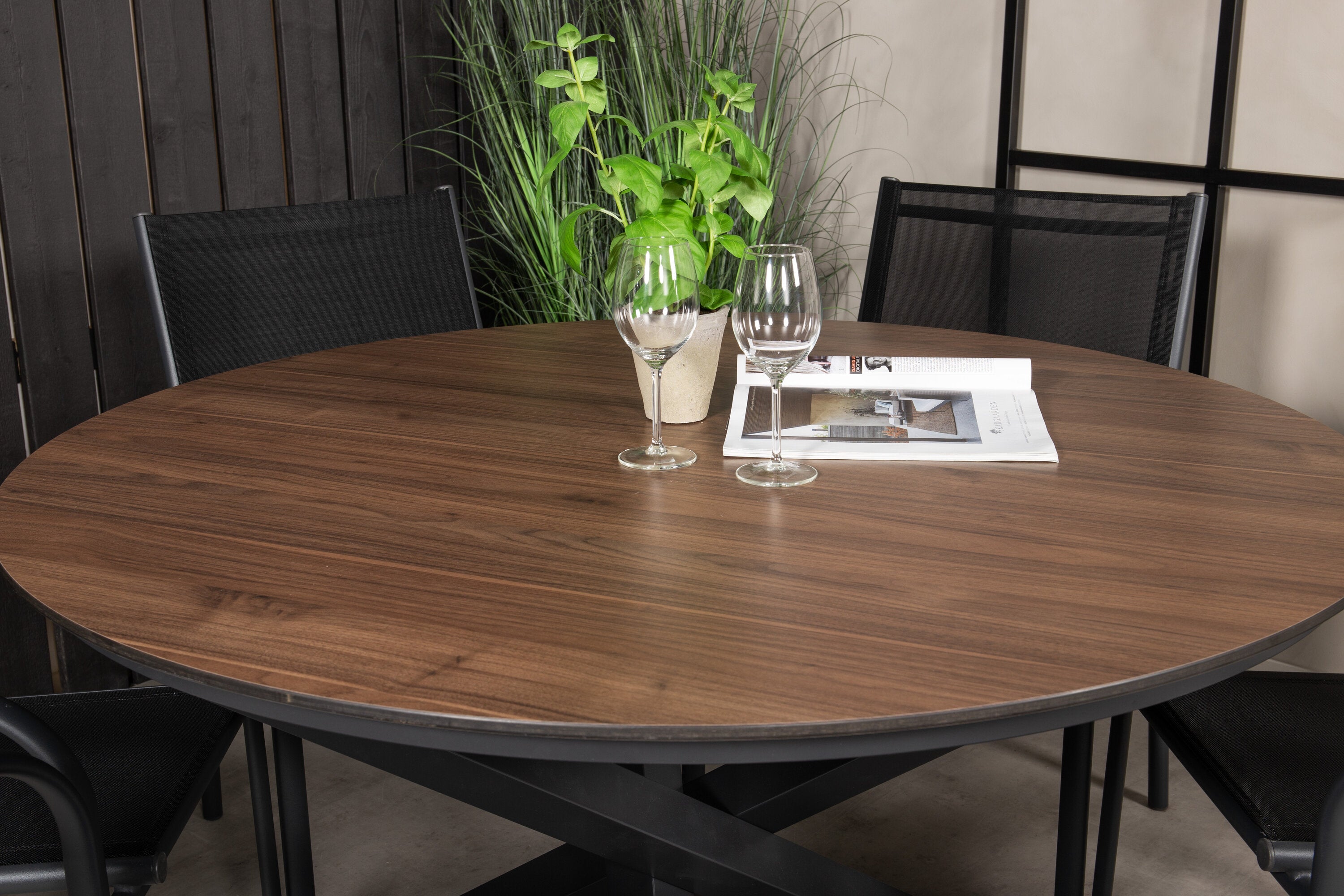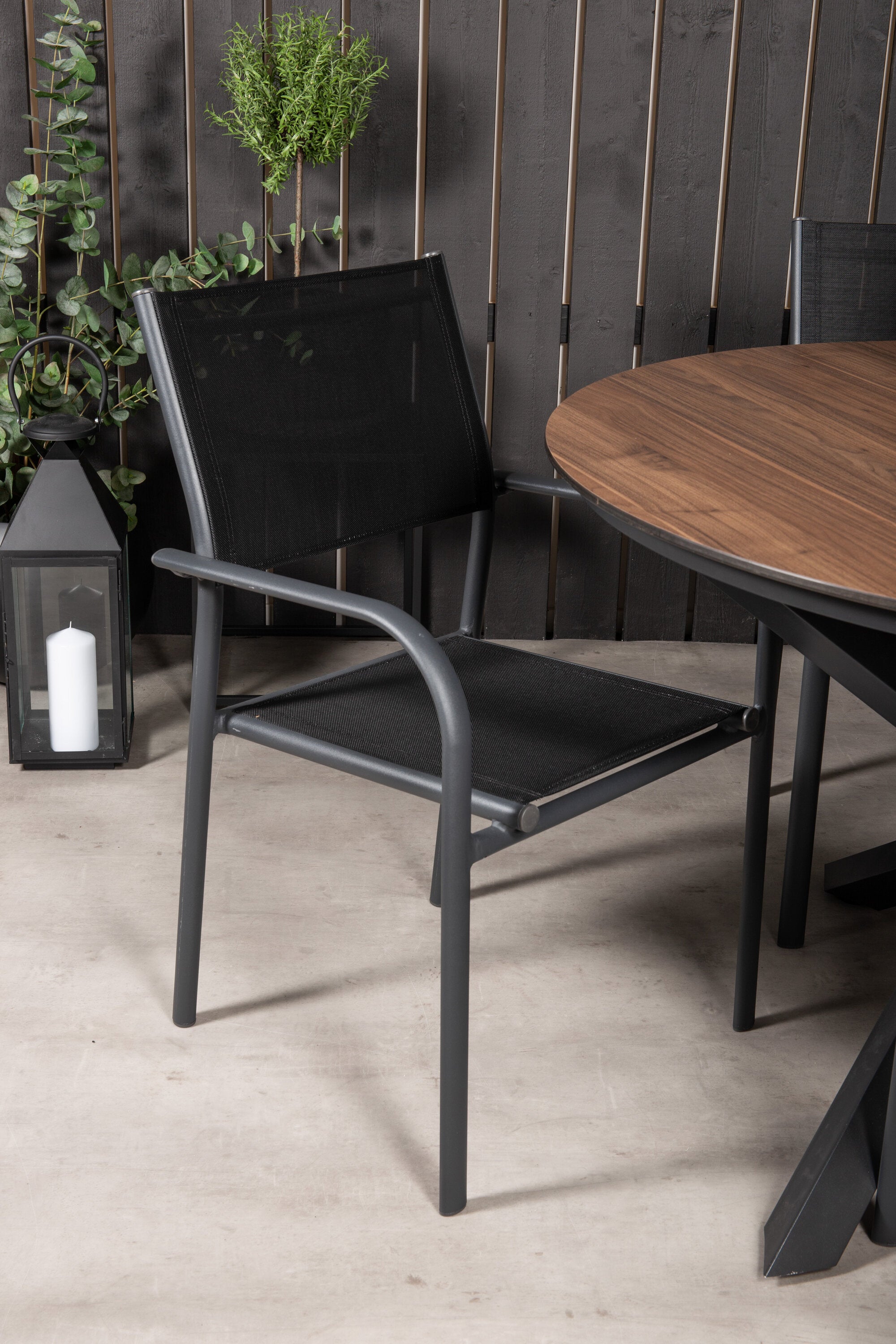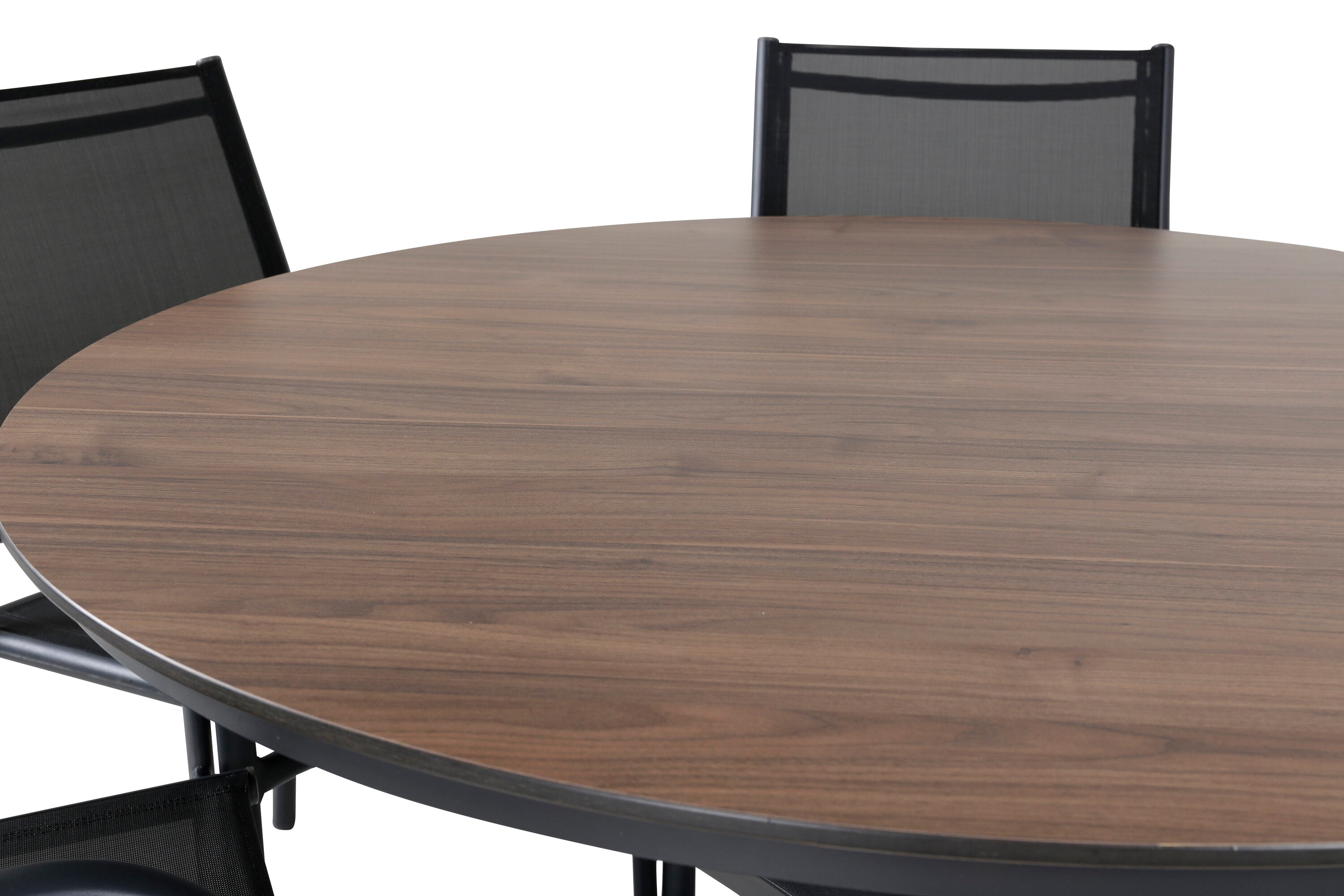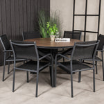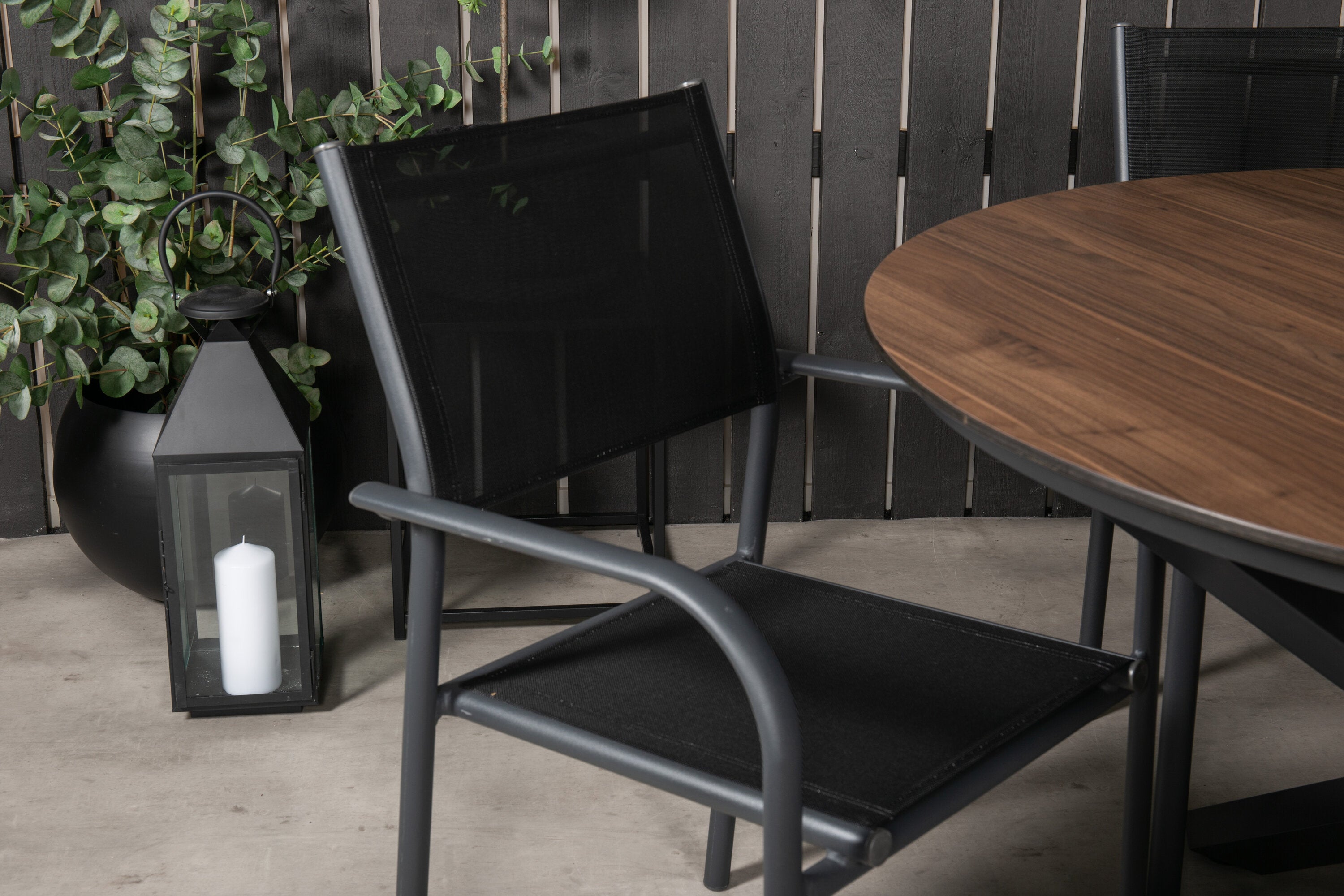 Kulatý jídelní stůl Llama 140 - Černá Alu / Hnědá HPL+Santorini područková židle (stohovatelné) - Černá Alu / Černá Textilene_6