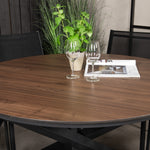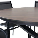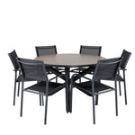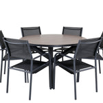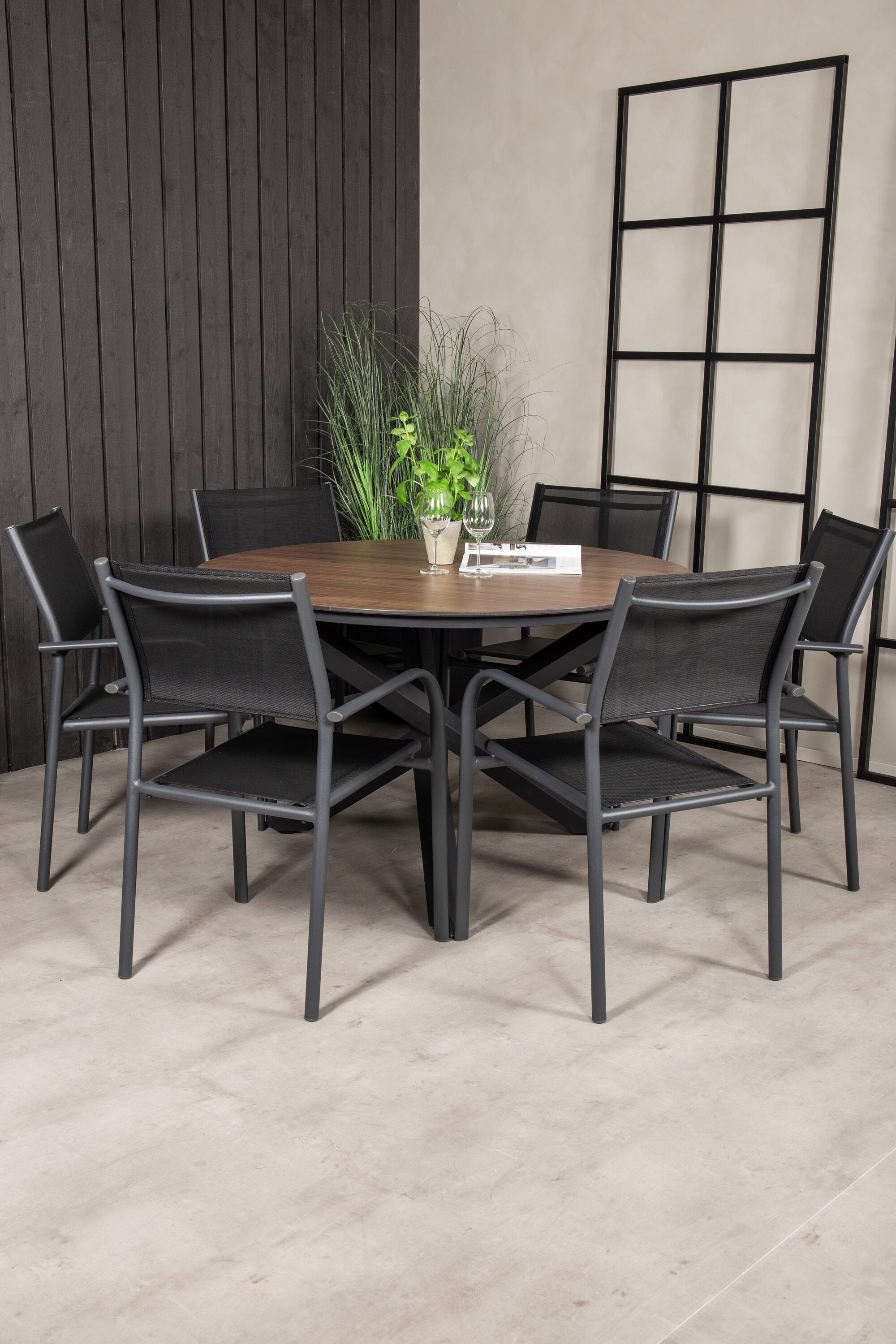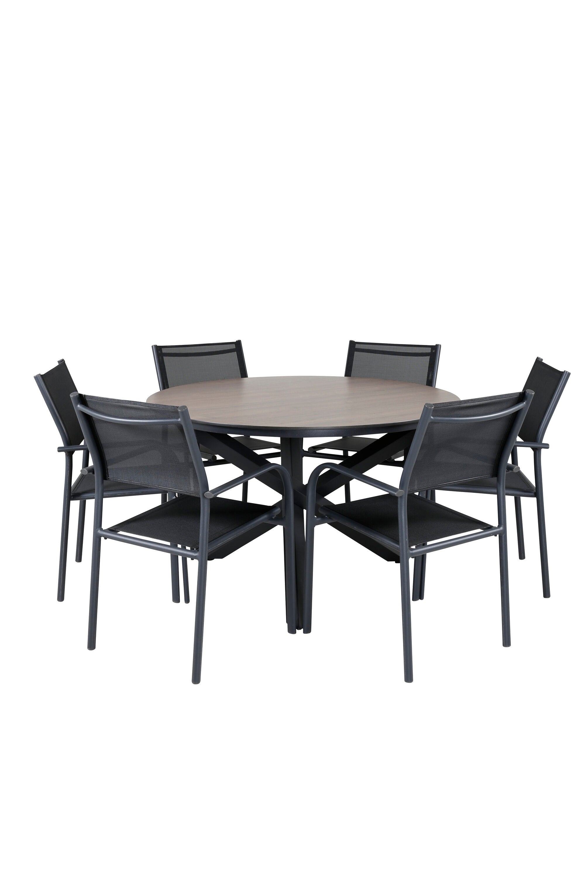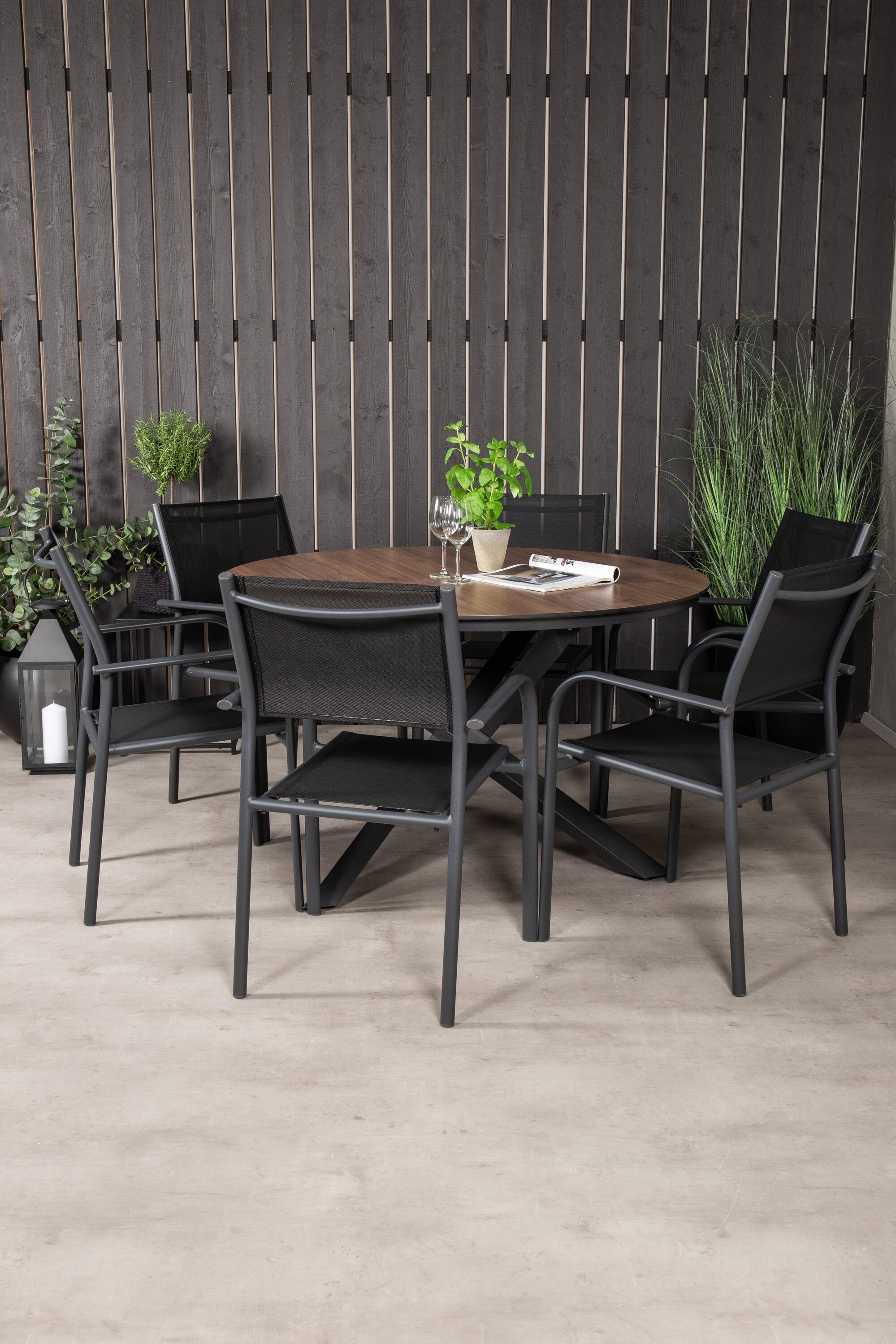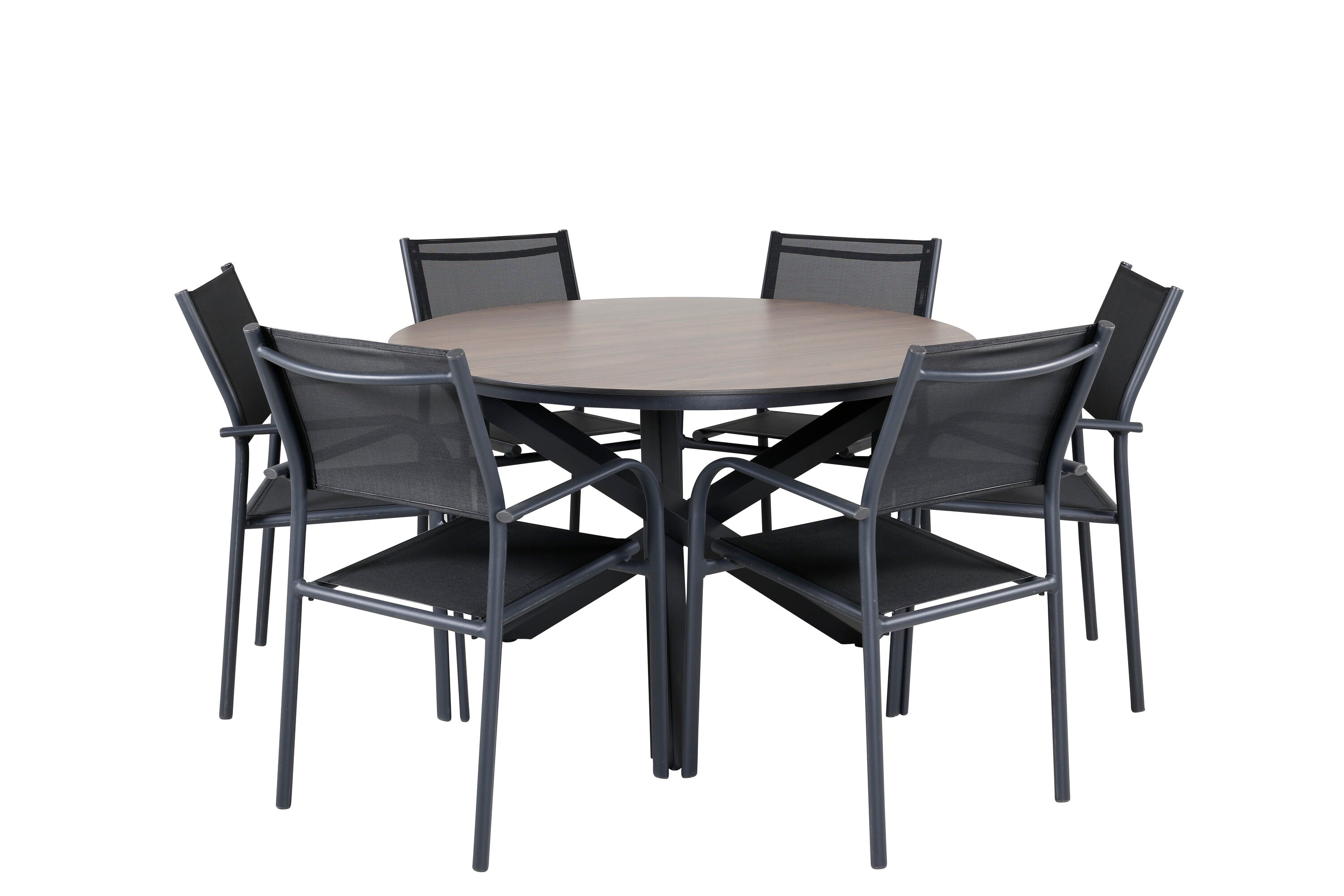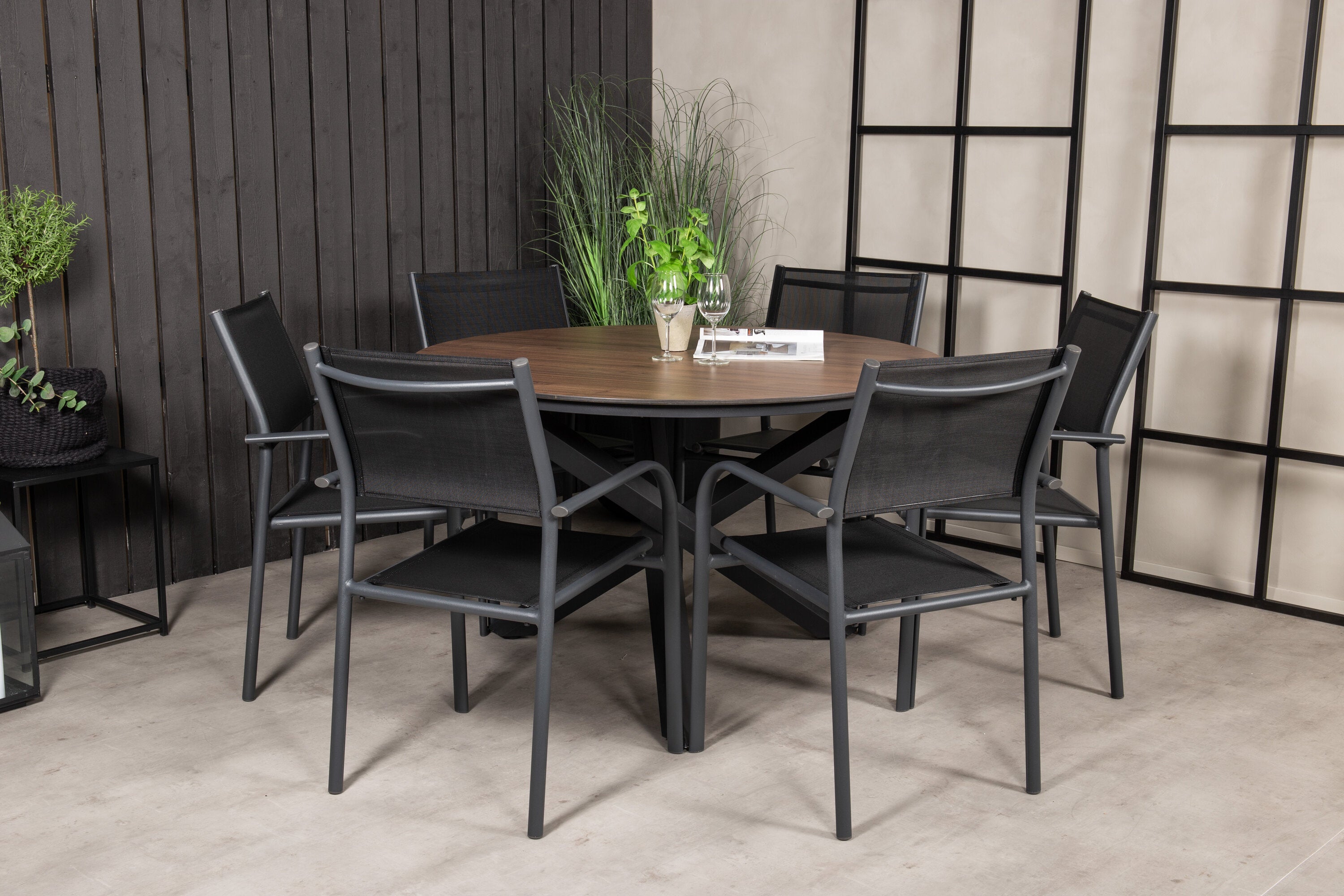 Kulatý jídelní stůl Llama 140 - Černá Alu / Hnědá HPL+Santorini područková židle (stohovatelné) - Černá Alu / Černá Textilene_6