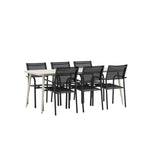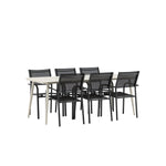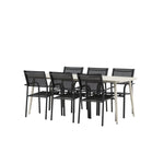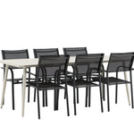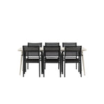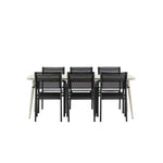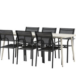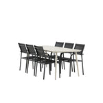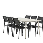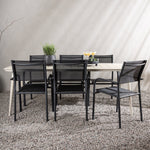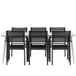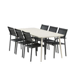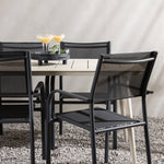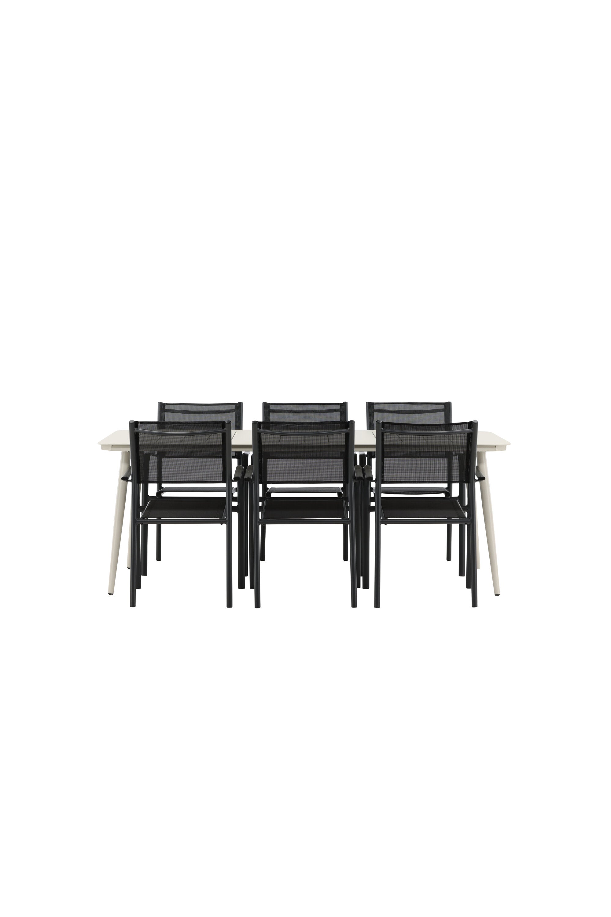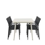 Lina Jídelní stůl – Béžová – 200*90 _1+ křeslo Santorini (stohovatelné) – Černá alu / Černá textilie _6