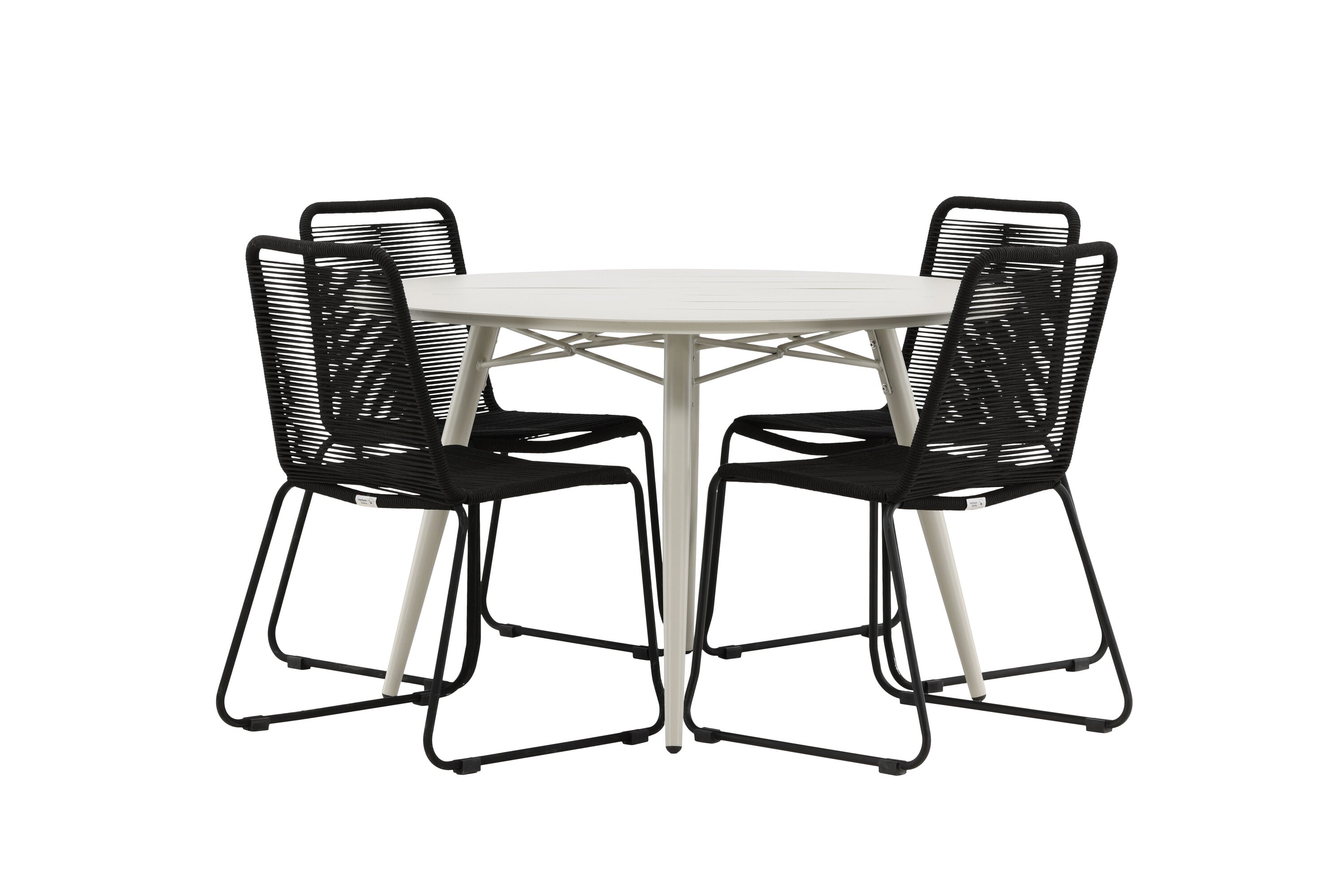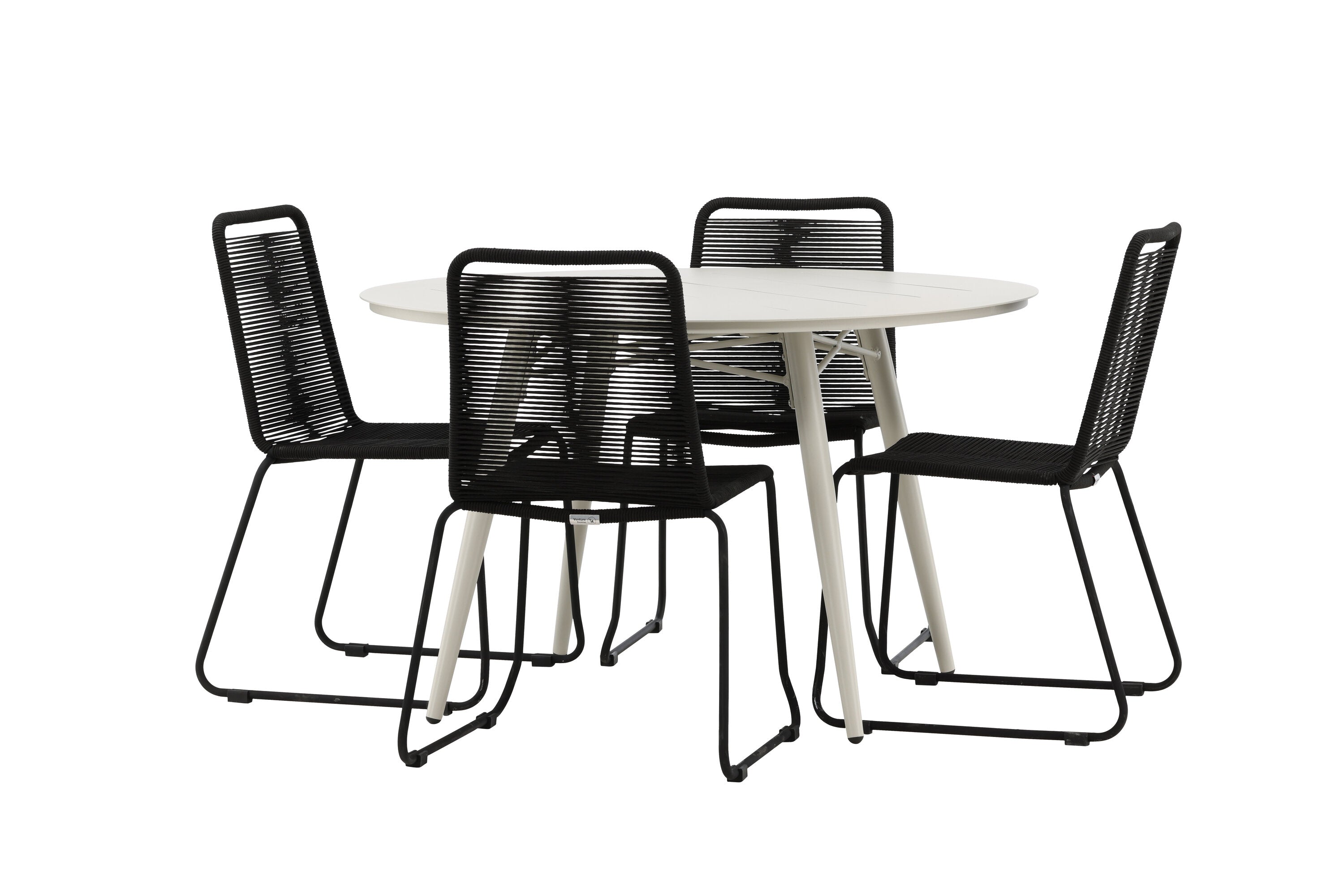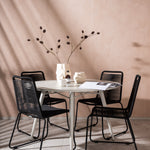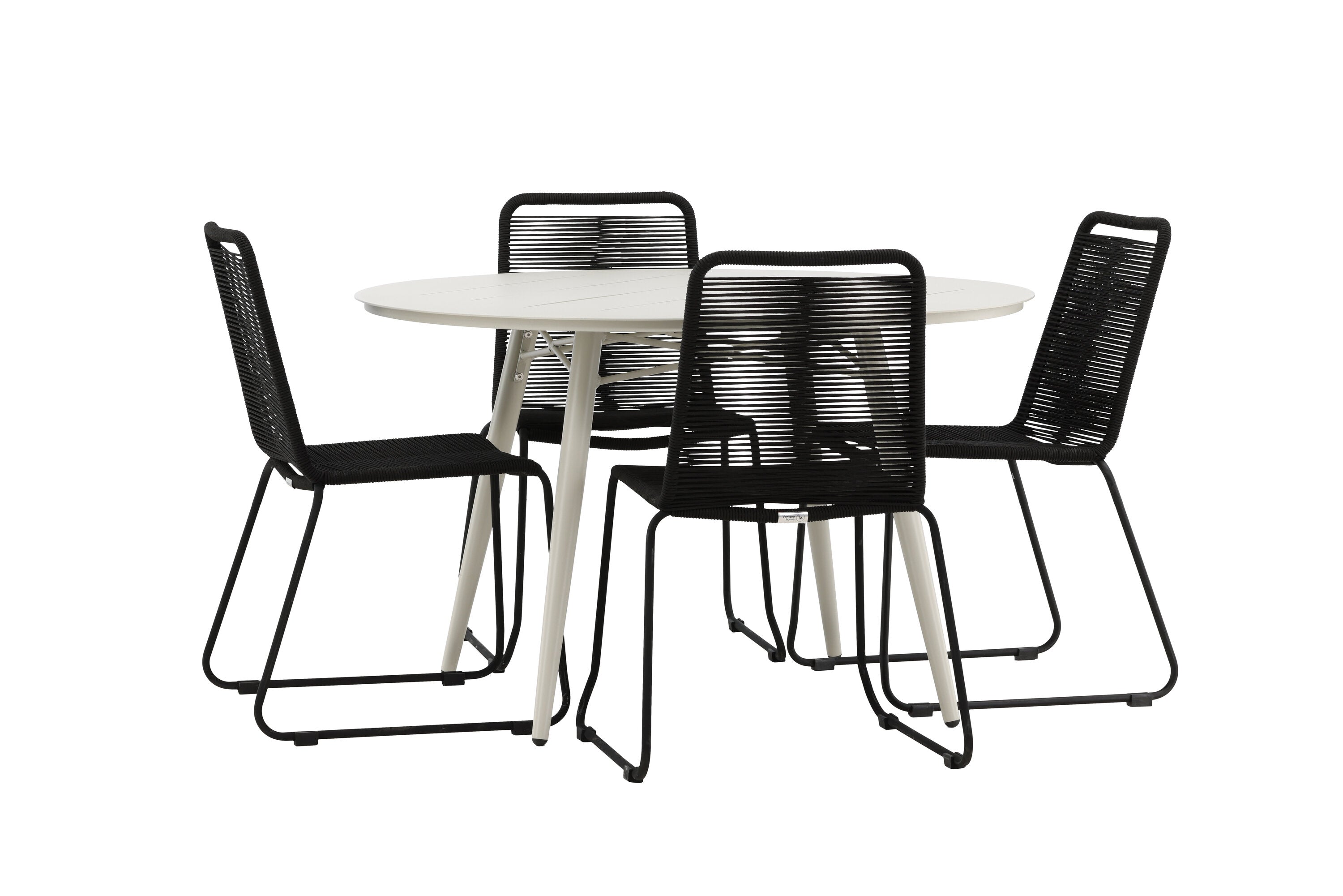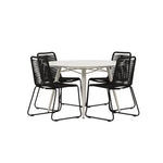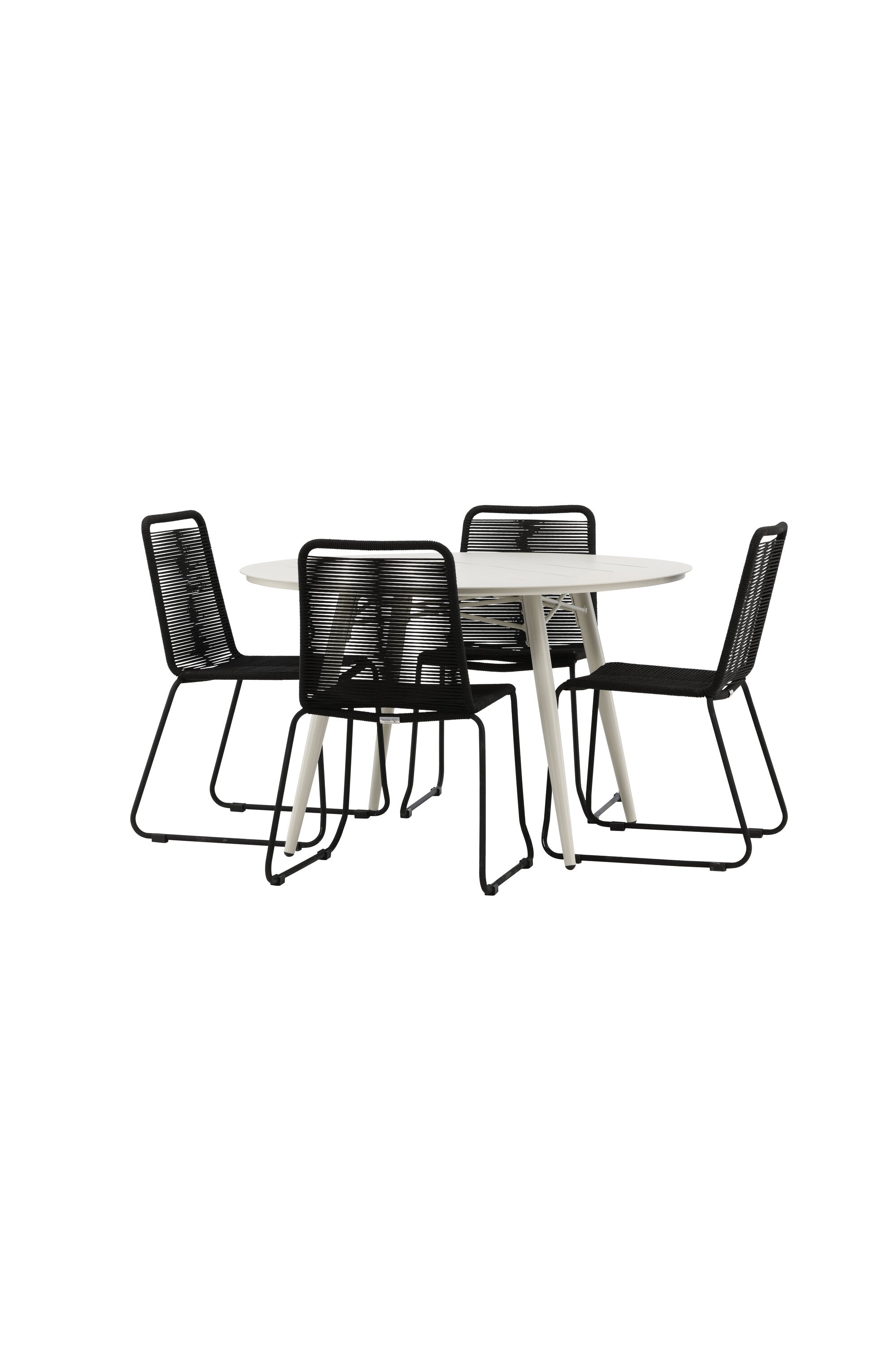 Lina Jídelní stůl - Béžový - Kulatý 120 cm _1+ Lindos Stohovací židle - Black Alu / Black Rope _4
