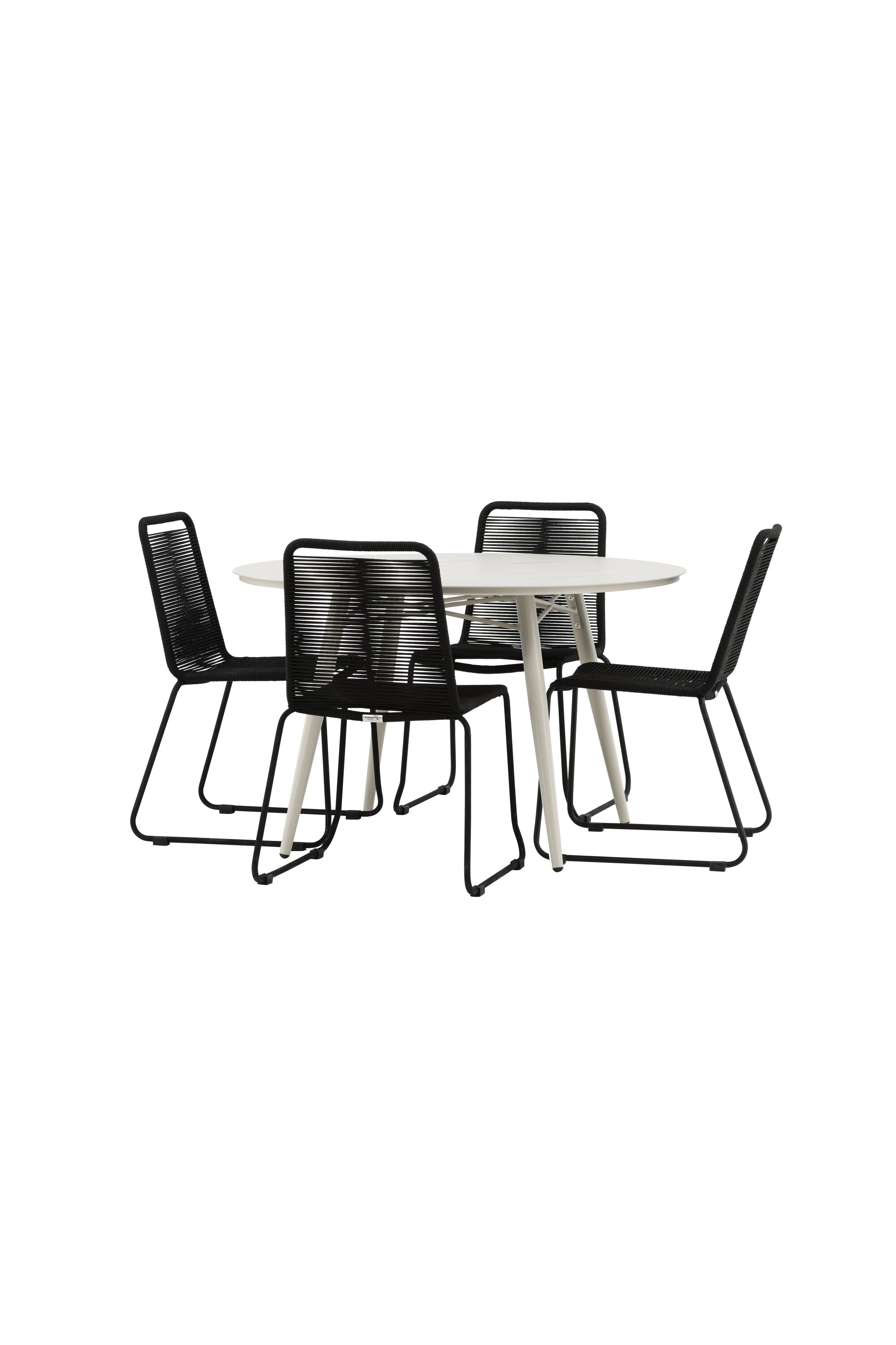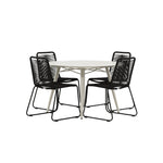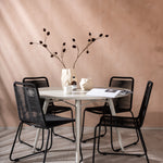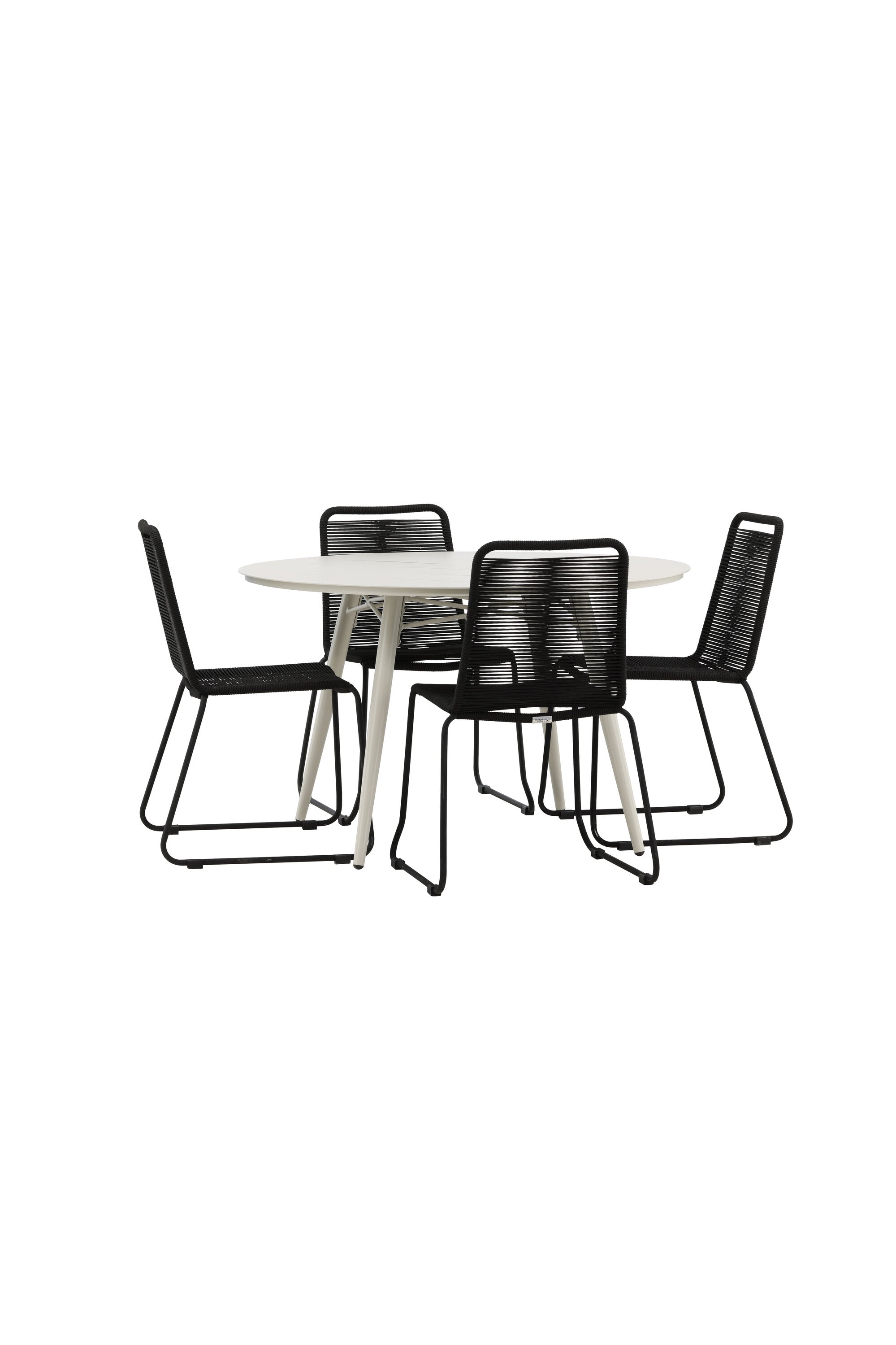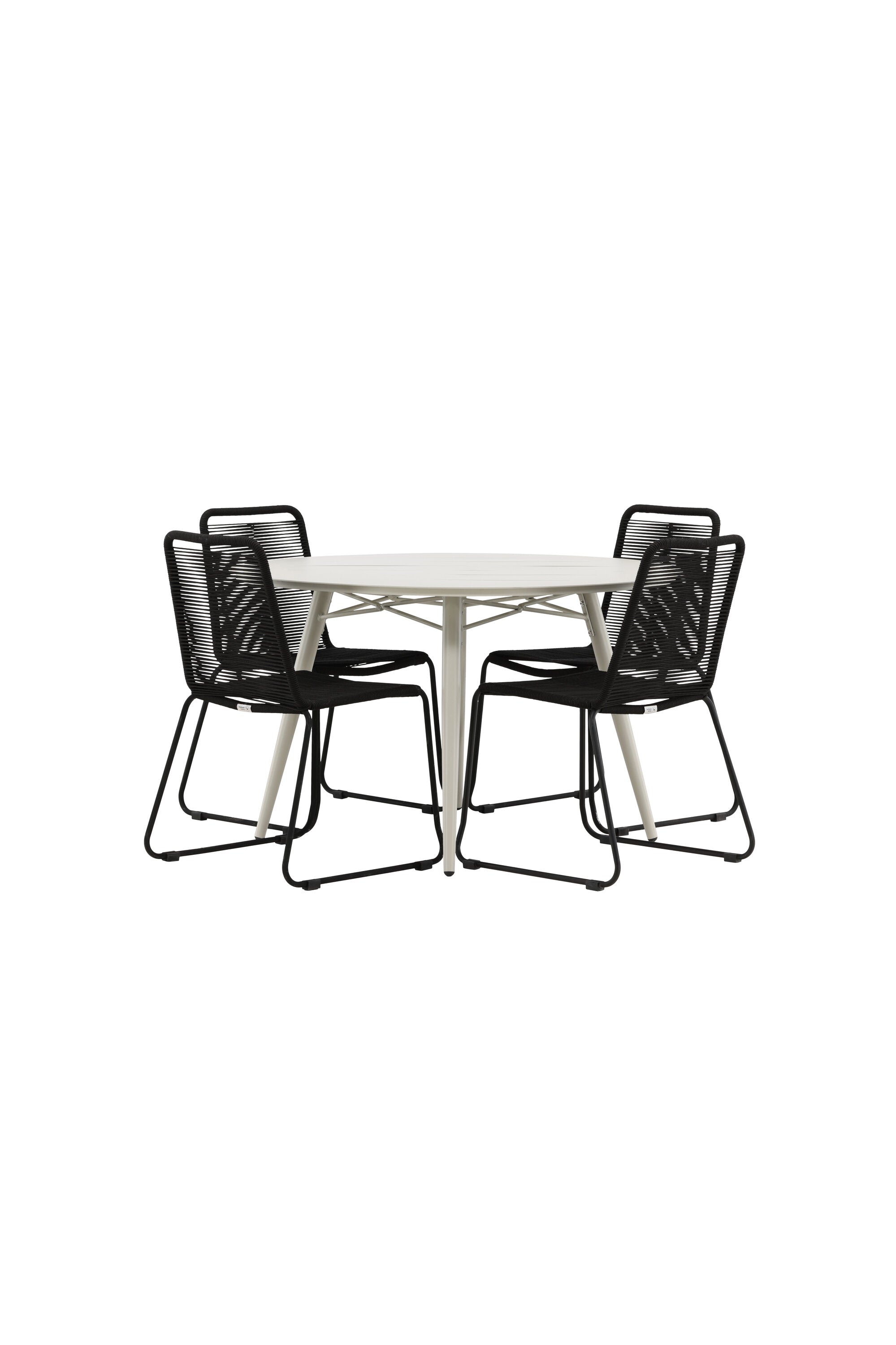 Lina Jídelní stůl - Béžový - Kulatý 120 cm _1+ Lindos Stohovací židle - Black Alu / Black Rope _4